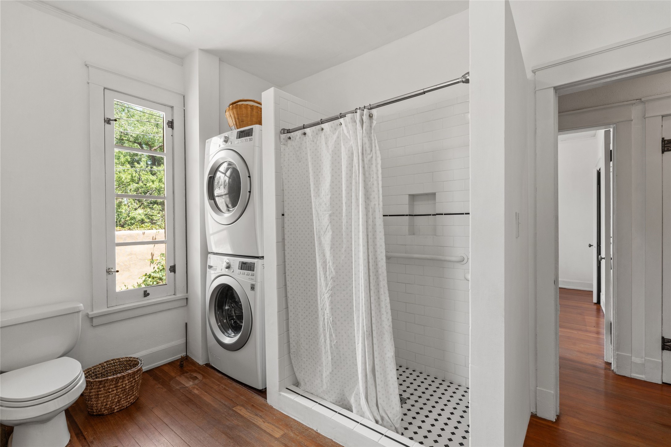 Be in the middle of it all! Iconic Santa Fe home in the Guadalupe District. A few easy blocks from the Historic Santa Fe Plaza and even closer to the Santa Fe Railyard Arts District and Farmer's Market. Seventy-five steps to the nearest coffee shop, 50 steps to the nearest restaurant. The house is light and airy with beautiful windows in every room still sporting their original 1930's brass hardware. The home has an open living and dining area with pocket doors, and a fireplace with Vermont Castings wood stove insert. The spacious kitchen looks out on the peaceful back yard and large, partially shaded redwood deck. There are two bedrooms and a large bathroom with both a shower and an elegant claw footed tub. Throughout the house there are wood floors including the kitchen and bathroom. The property is private, surrounded by a gated partial adobe wall and coyote fences with two covered off street parking spaces within the walled area. This super location is verry walkable, close to art galleries, shopping grocery stores museums, parks and access to Santa Fe's trail system--the best of Santa Fe is right out your front door from this lovely home, such a rare opportunity.