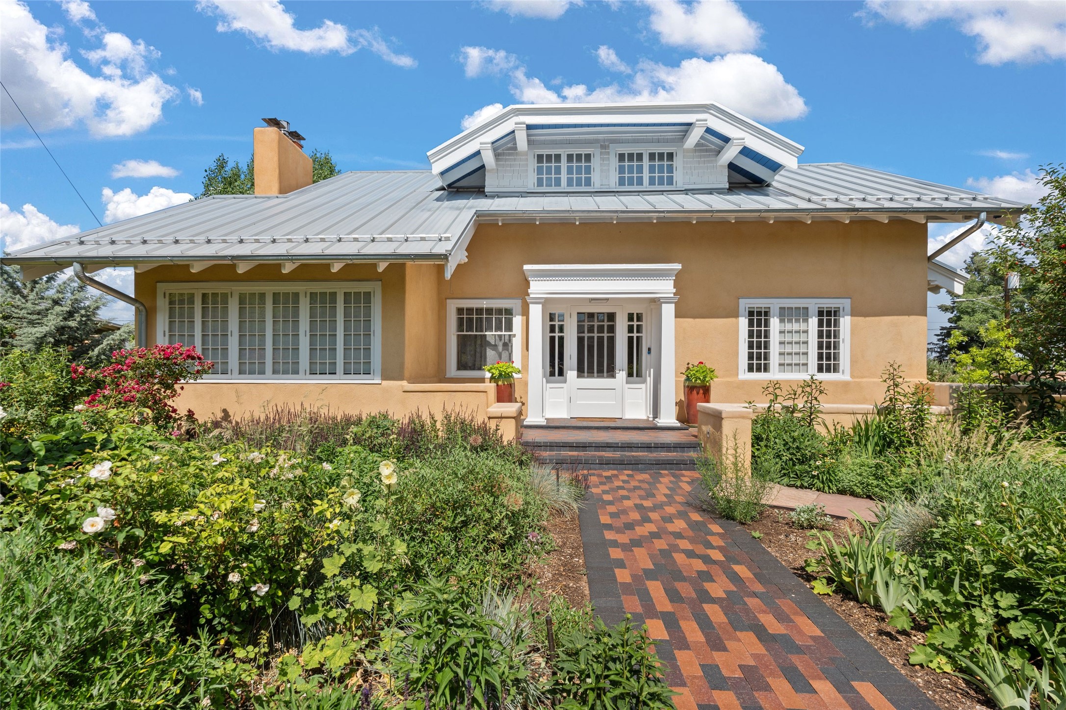 Here's an opportunity to own a rare and special Craftsman-style home in South Capitol. The magnificent, flowering grounds, quality and scale separate this property from its surroundings, making it one of the most charming and irreplaceable properties in this sought-after downtown neighborhood. The over 3,000 square-foot, 4-bedroom, 3-bathroom, two-story home is complimented by a detached 450-square foot studio. Originally restored by award-winning builder Tierra Concepts, the historical home has updated finishes that are refined and timeless. The first level contains the elegant kitchen, primary bedroom suite, dining room, and flexible entertaining and relaxation spaces. The upstairs fits a den and three bedrooms or offices, sharing a full bathroom. Throughout the interior spaces are charming details and accents, like a reading nook built into the stairwell landing. A finished basement provides surprisingly ample storage, hard to find elsewhere downtown. While wrapped in a nostalgic package of a past architectural era, the house holds a Gold LEED certification. Modern updates include a whole-house water treatment system, high-efficiency furnace, on-demand water heater, ERV air circulation system, and rainwater catchment cisterns. Despite the bounties of the home and studio, the real highlight are the stunning landscaped grounds. Flagstone paths meander past fountains and blooming garden beds to sitting areas tucked away behind masks of purple, yellow, red flowers. Outside the kitchen is a brick patio beneath a wooden pergola, overlooking the fire pit seating area. The privacy and serenity of the property is in contrast to its in-town and walkable location. 904 Don Gaspar is a world of privacy in the heart of Santa Fe, offering a rare balance of history and design.