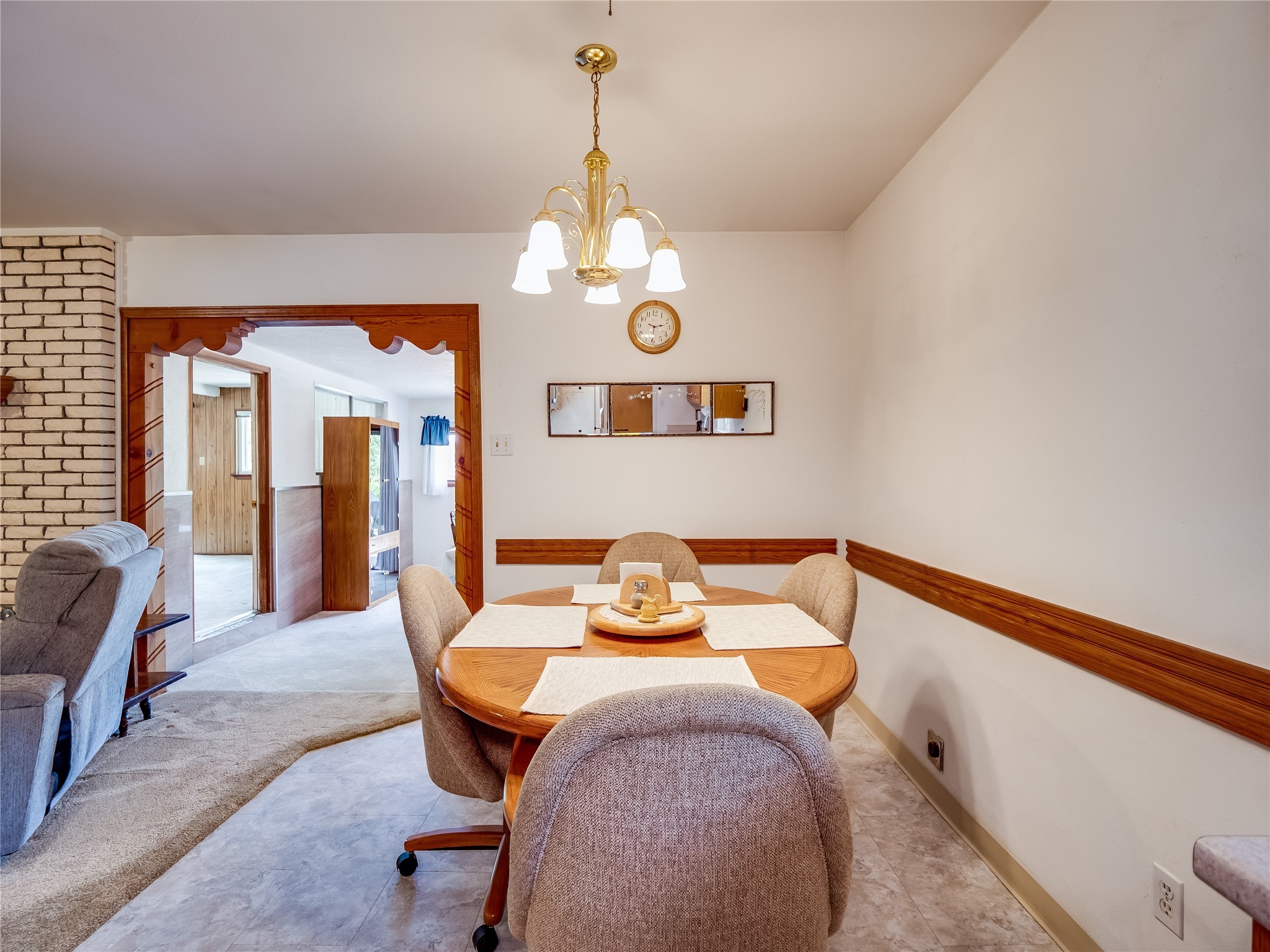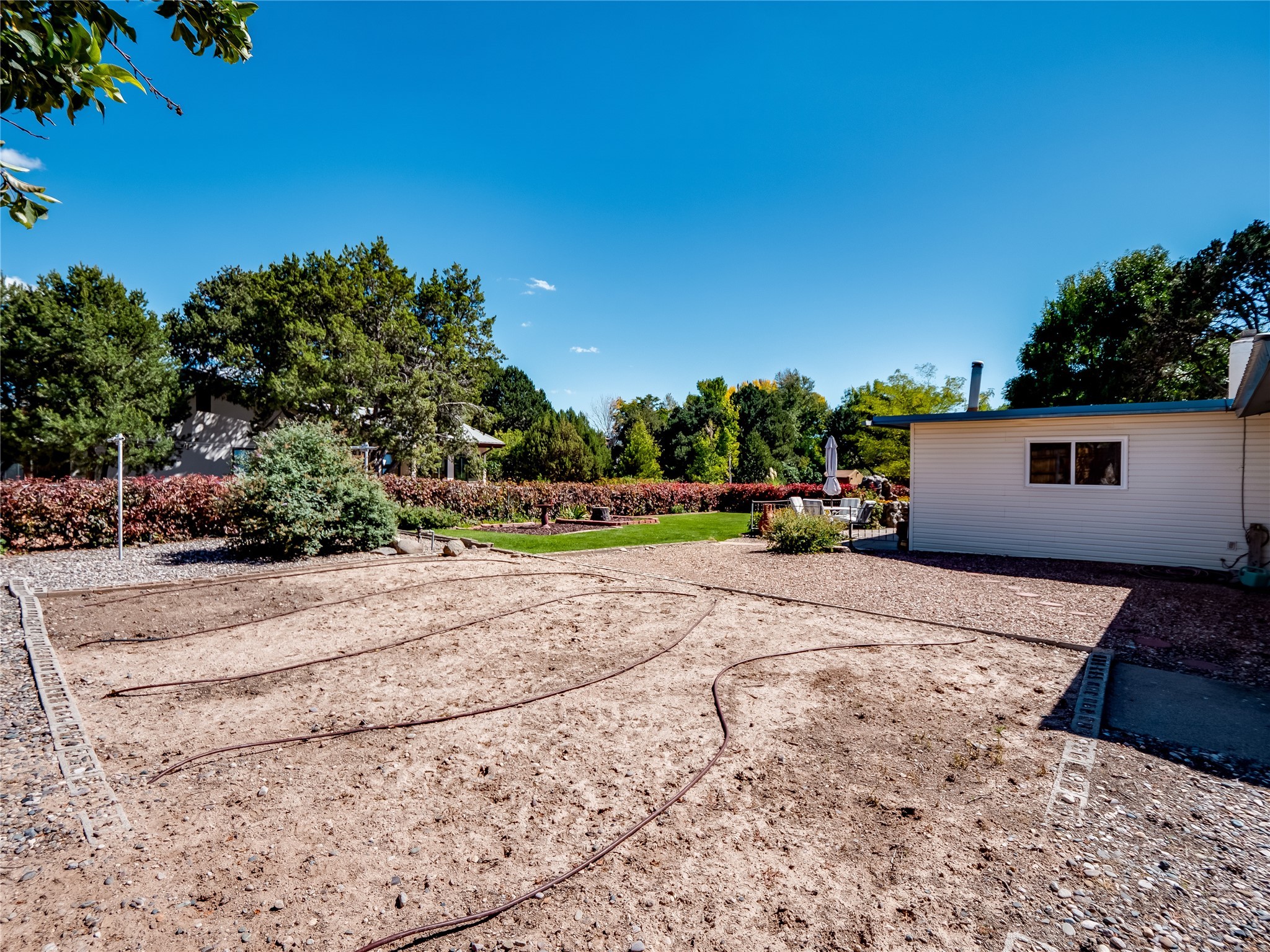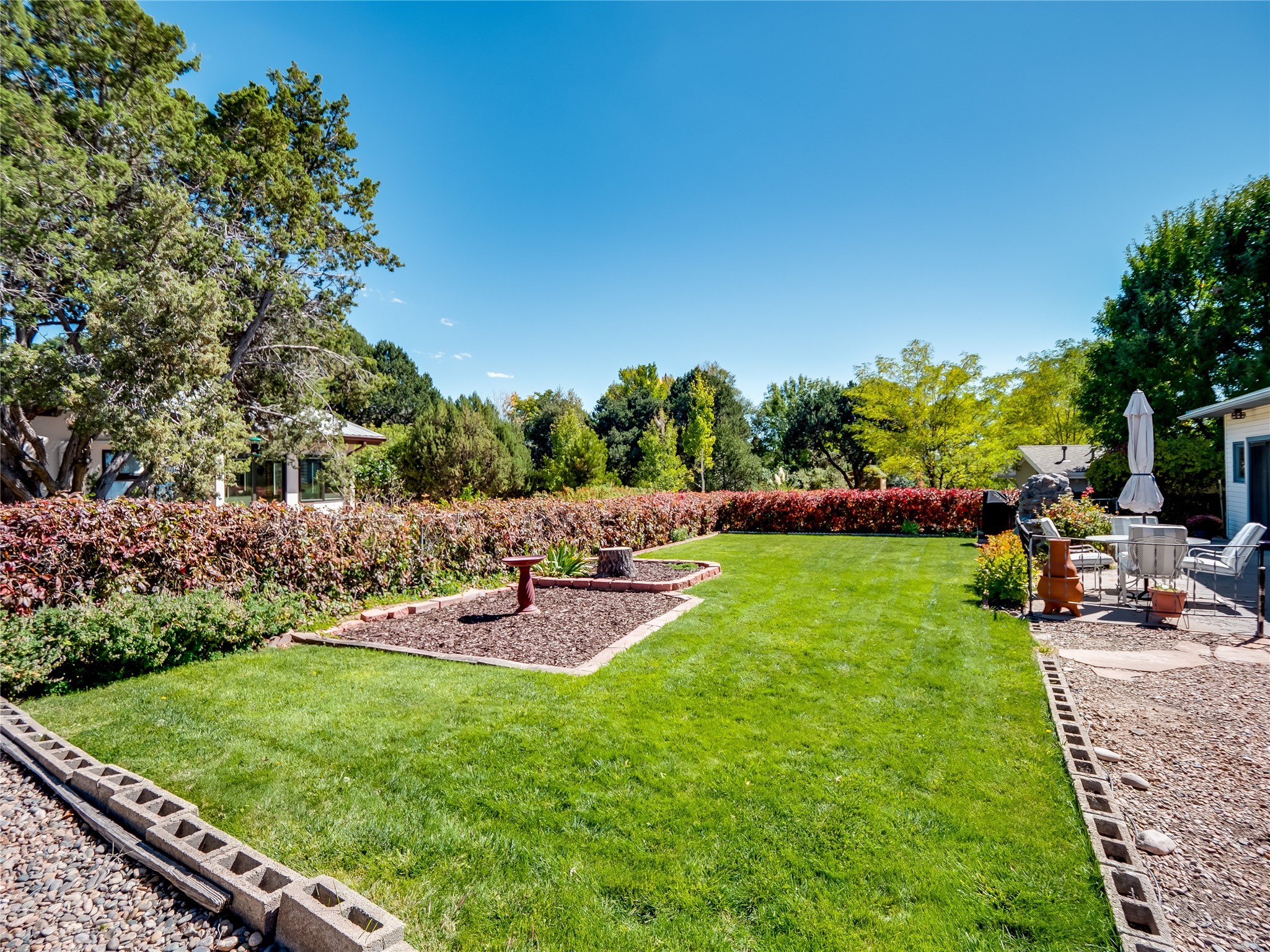 Welcome to this sensational ranch-style home in White Rock with beautiful curb appeal. A lush, green lawn and mature shade trees frame the front of the property, complemented by colorful flower beds that create a warm and inviting entrance. Step inside to find plush carpet flooring that runs throughout, adding comfort and continuity. Just off the entryway to the left is a versatile bonus room or den--ideal for a home office, study, or creative space--framed by elegant pillars that give the area a sense of separation and style. Continue forward into the cozy living room featuring a wood-burning fireplace, perfect for chilly evenings and relaxing with loved ones. The adjacent galley-style kitchen includes wood cabinets with chrome hardware and offers ample prep space, as well as a designated dining area for casual meals A 260 sq. ft. bonus room with access to backyard can be a kids play room, exercise room, a room for arts and crafts, a fifth bedroom or a great man cave! Nearby is access to the two-car garage and a convenient laundry space, providing everyday functionality. Step down into the formal dining room, filled with natural light from the surrounding windows and glass sliders that lead directly to the back patio and yard. Connected to this space is a large family room, offering another access point to the backyard, a perfect setting for gatherings, movie nights, or game days. A beautifully renovated modern guest bathroom with a white single sink vanity and a fully tiled shower/tub combo. At the end of the hall, the spacious primary en-suite overlooks the peaceful backyard and includes a walk-in closet and a private bathroom with a tiled walk-in shower and single sink vanity. The expansive backyard is a true oasis, with a lush green lawn, vibrant flower gardens, and irrigated vegetable planters--perfect for any green thumb. There's also side-yard access to park a vehicle or RV. A large patio area is ideal for outdoor dining and entertaining under the open sky.
