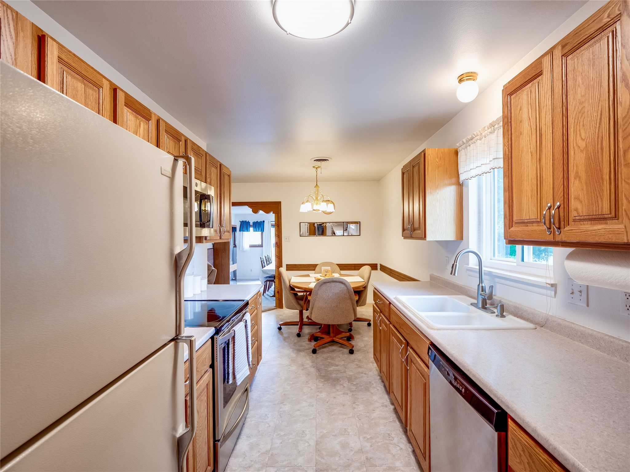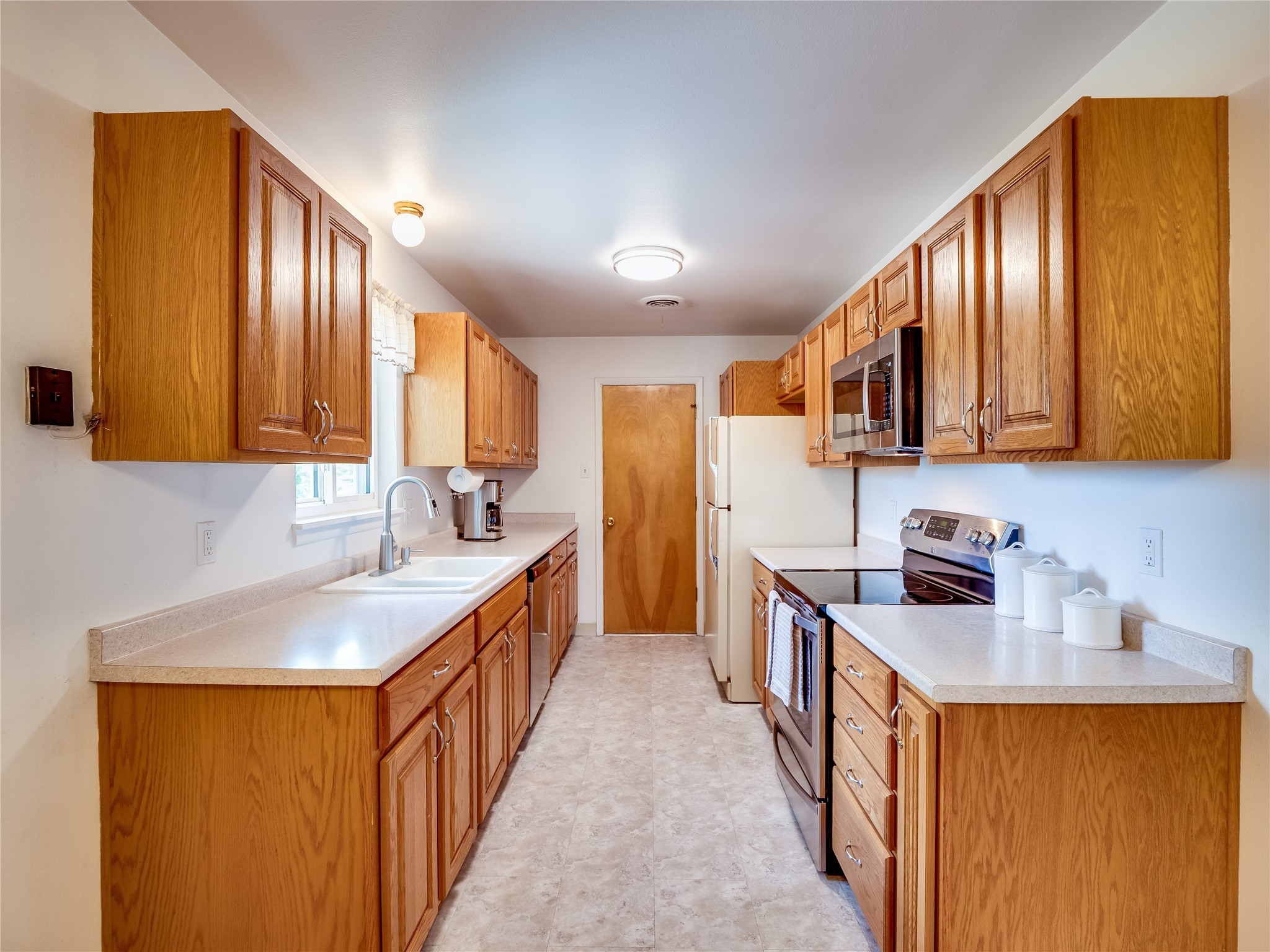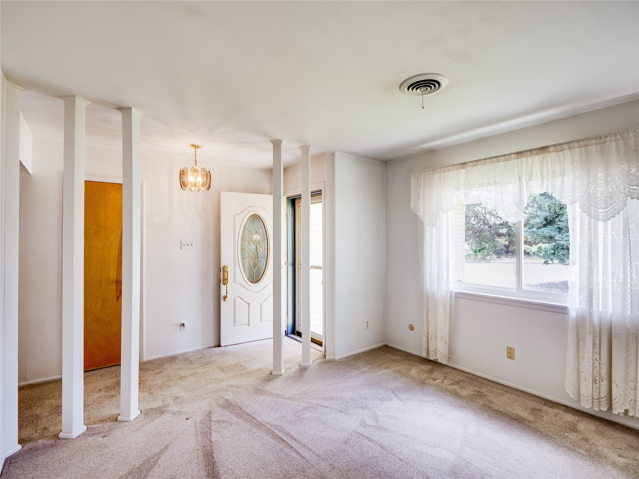 Welcome to this sensational ranch-style home in White Rock with beautiful curb appeal. A lush, green lawn and mature shade trees frame the front of the property, complemented by colorful flower beds that create a warm and inviting entrance. Step inside to find plush carpet flooring that runs throughout, adding comfort and continuity. Just off the entryway to the left is a versatile bonus room or den--ideal for a home office, study, or creative space--framed by elegant pillars that give the area a sense of separation and style. Continue forward into the cozy living room featuring a wood-burning fireplace, perfect for chilly evenings and relaxing with loved ones. The adjacent galley-style kitchen includes wood cabinets with chrome hardware and offers ample prep space, as well as a designated dining area for casual meals A 260 sq. ft. bonus room with access to backyard can be a kids play room, exercise room, a room for arts and crafts, a fifth bedroom or a great man cave! Nearby is access to the two-car garage and a convenient laundry space, providing everyday functionality. Step down into the formal dining room, filled with natural light from the surrounding windows and glass sliders that lead directly to the back patio and yard. Connected to this space is a large family room, offering another access point to the backyard, a perfect setting for gatherings, movie nights, or game days. A beautifully renovated modern guest bathroom with a white single sink vanity and a fully tiled shower/tub combo. At the end of the hall, the spacious primary en-suite overlooks the peaceful backyard and includes a walk-in closet and a private bathroom with a tiled walk-in shower and single sink vanity. The expansive backyard is a true oasis, with a lush green lawn, vibrant flower gardens, and irrigated vegetable planters--perfect for any green thumb. There's also side-yard access to park a vehicle or RV. A large patio area is ideal for outdoor dining and entertaining under the open sky.
