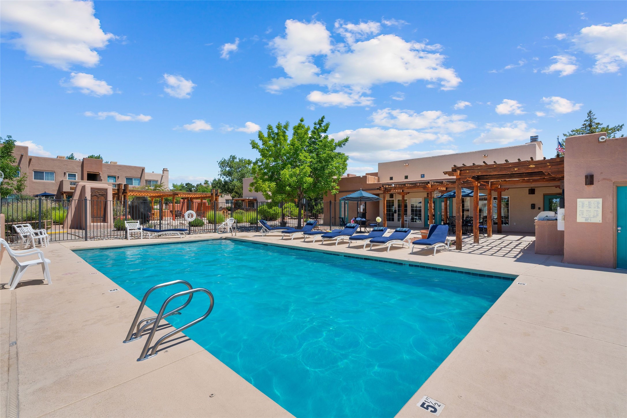 DosSantos723.com. 2 bedroom 2 full bath condo in Dos Santos, centrally located and secured by gate access. Upstairs unit with balcony. Dos Santos has the following amenities: Fencing of the entire property, Security access devices to access the amenities through pedestrian gates & doors, Seasonally heated swimming pool, Year- round spa tub, Two large open-space plazas, Five (natural gas & propane fueled) commercial-grade BBQ grills, Free Wi-Fi access in our secured internet lounge, Security access through the guest vehicle gate only by direct authorization of the unit resident(s), Large clubhouse available for private events by residents, without a user fee, Secured fitness center with commercial quality exercise equipment, Very large fenced-in dog run with dual entry gates, and three recycling centers.New trex decking, new paint, new disposal.