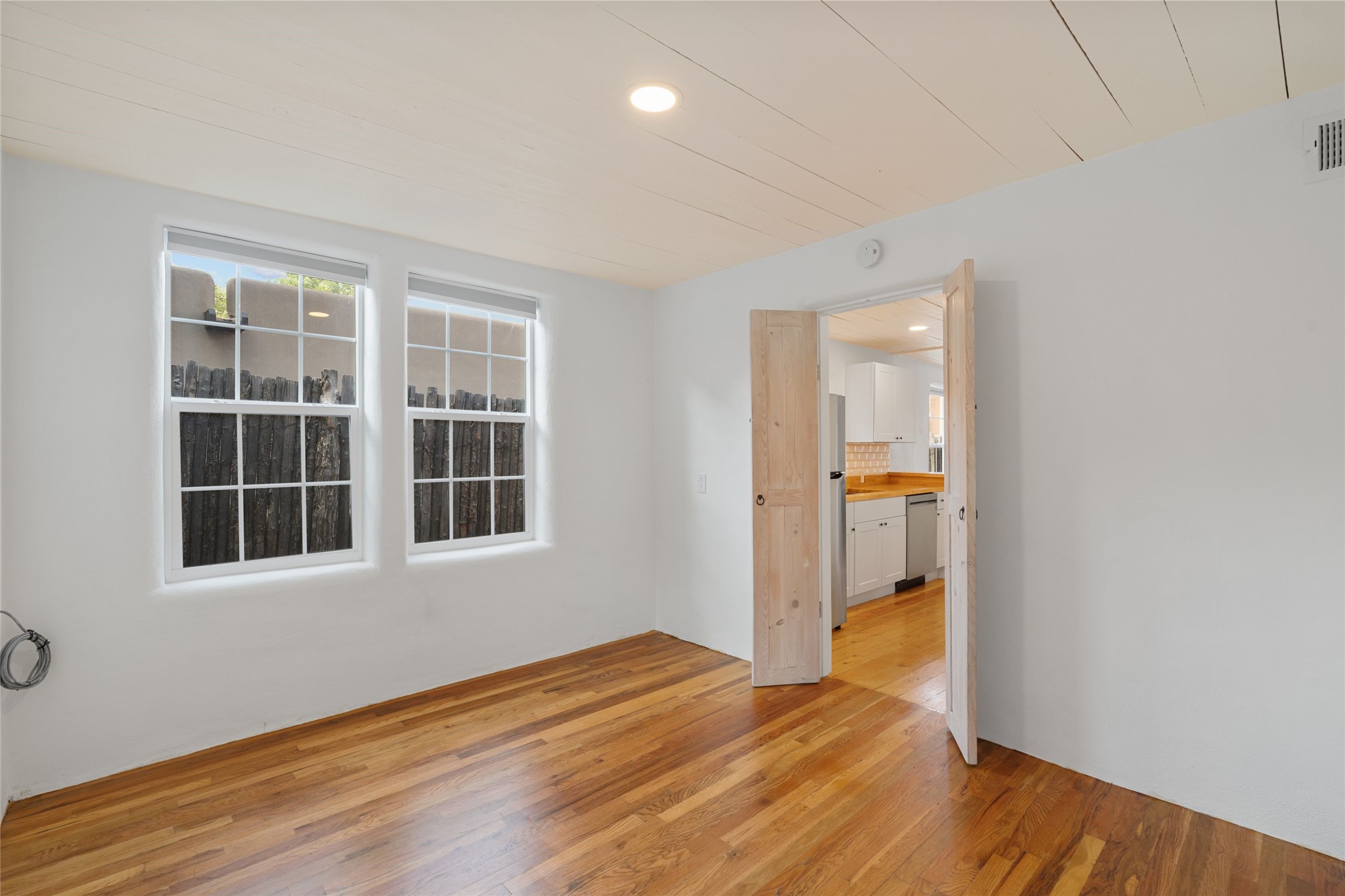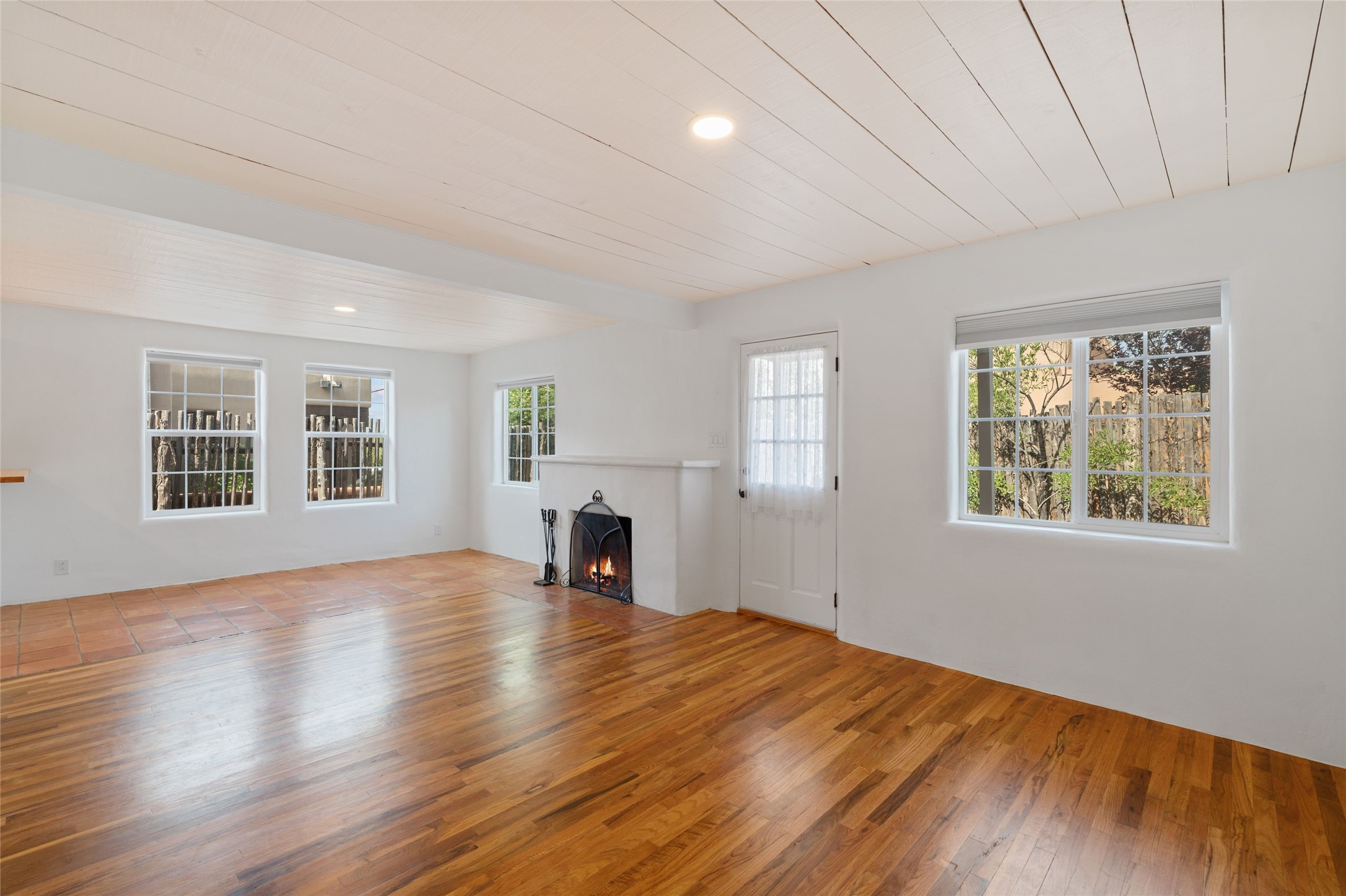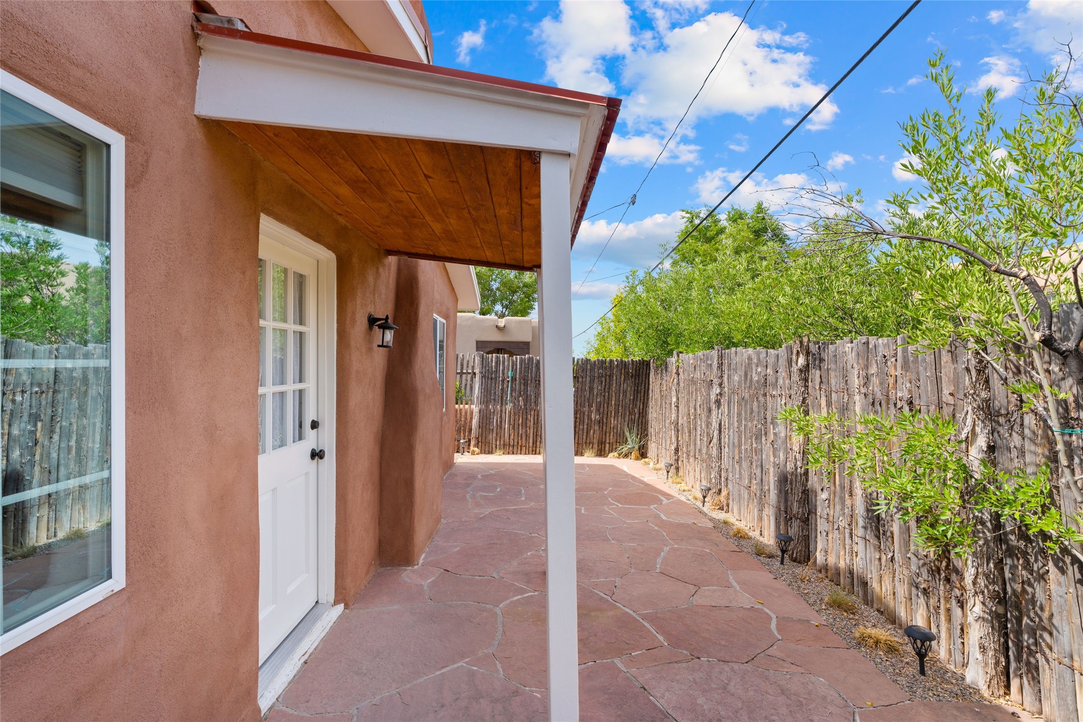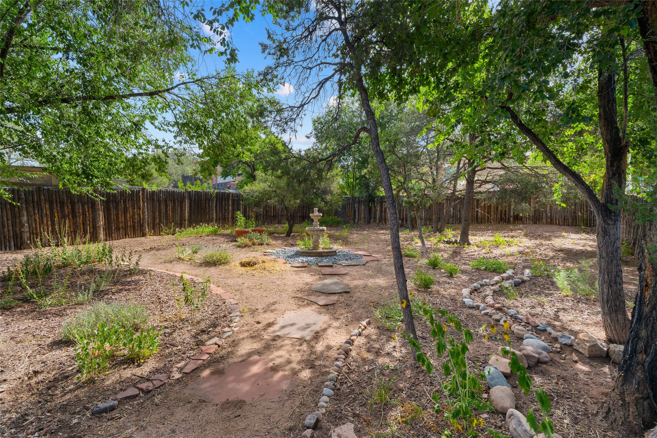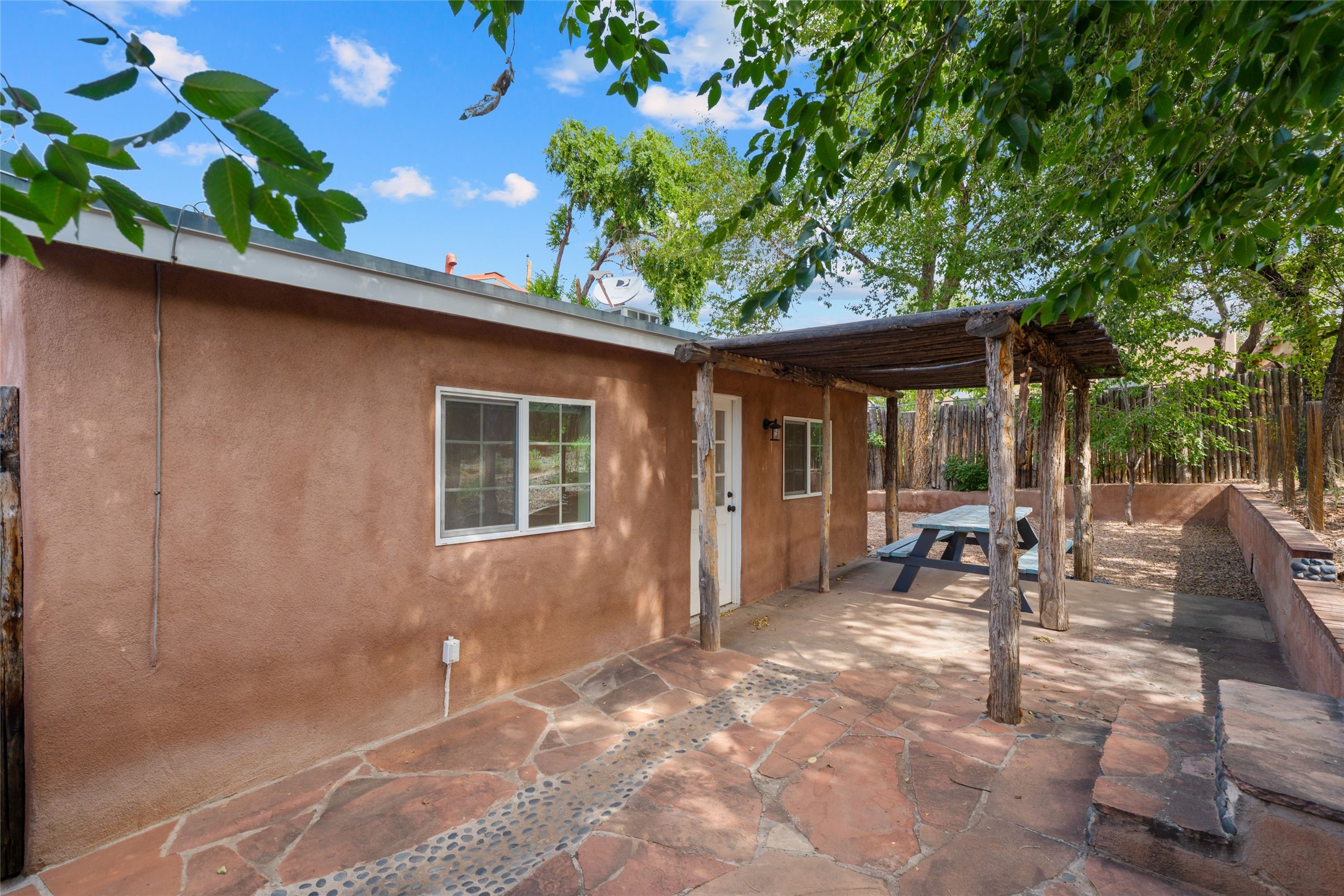 Six blocks north of The Plaza, this downtown pied--terre is located at the end of a short, dead-end road and is the perfect opportunity for someone wishing to have close proximity to downtown Santa Fe as well as offering the opportunity to remodel and/or expand. Enter through a walled and fenced courtyard to the front door where you'll be greeted by an open living room and dining area with a large fireplace. The bedroom opens to a rear patio and an expansive, fully fenced back yard with mature trees. This 1-BR, 1-B home, originally built in 1950, has been updated with modern conveniences.