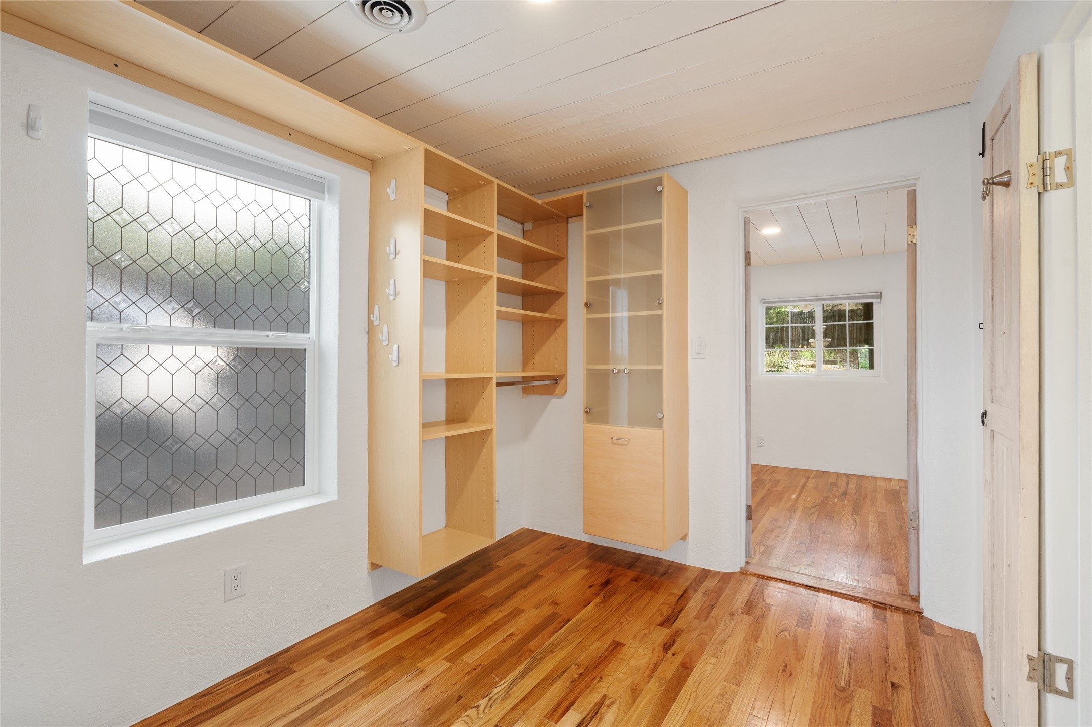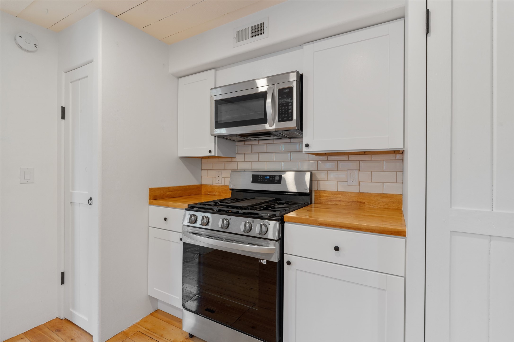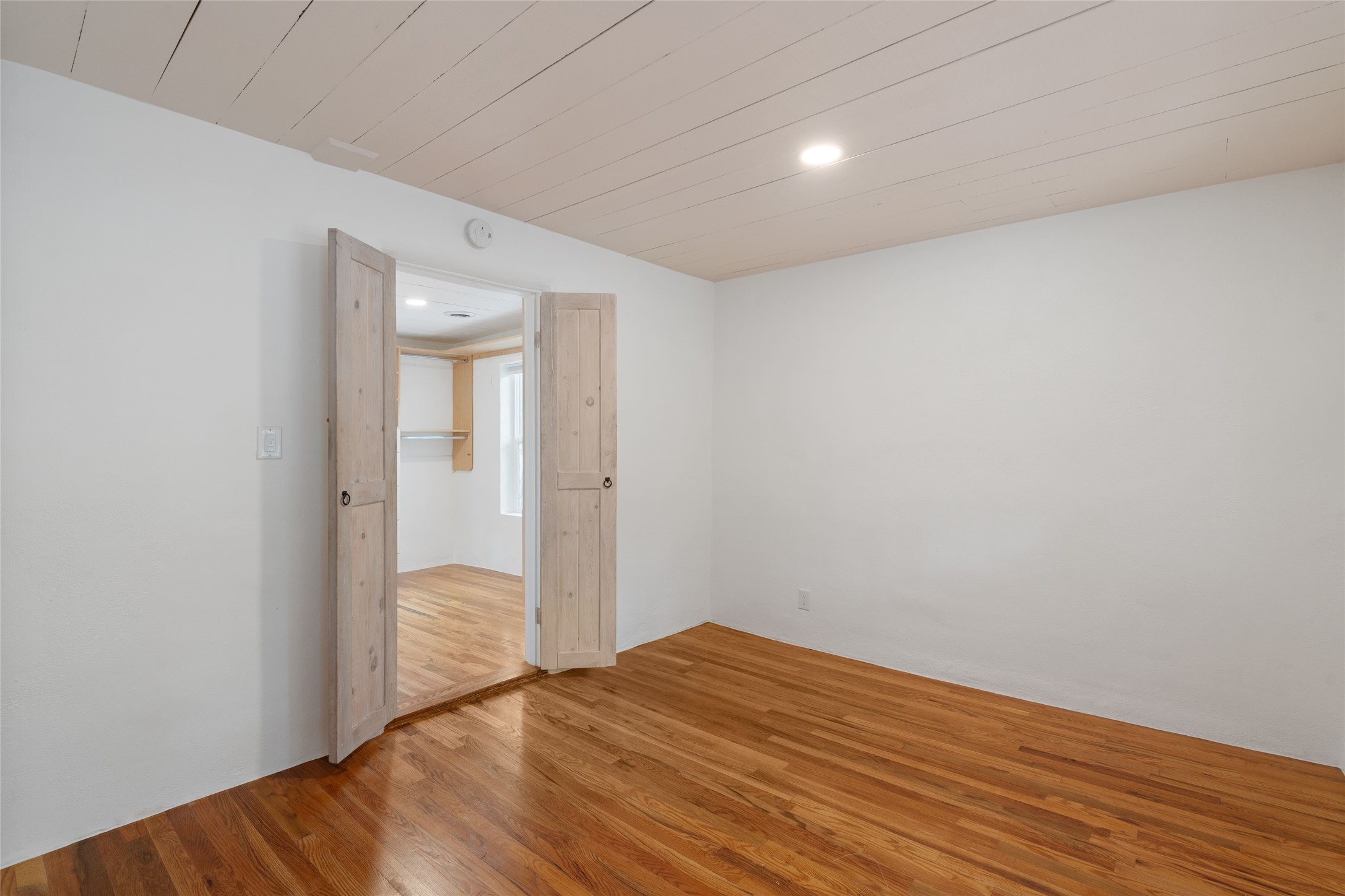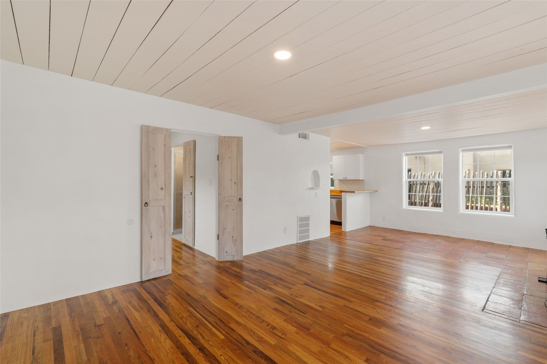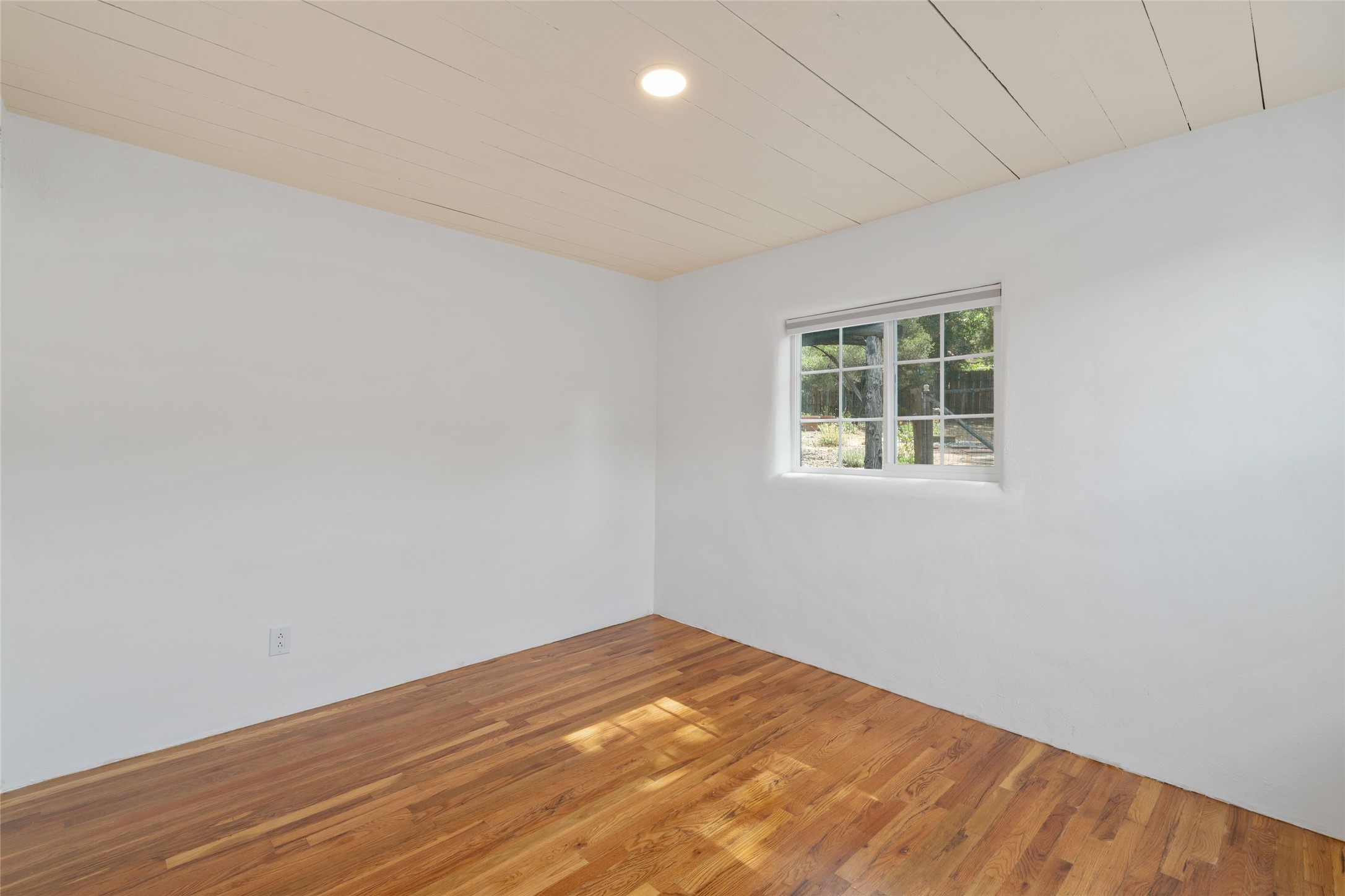 Six blocks north of The Plaza, this downtown pied--terre is located at the end of a short, dead-end road and is the perfect opportunity for someone wishing to have close proximity to downtown Santa Fe as well as offering the opportunity to remodel and/or expand. Enter through a walled and fenced courtyard to the front door where you'll be greeted by an open living room and dining area with a large fireplace. The bedroom opens to a rear patio and an expansive, fully fenced back yard with mature trees. This 1-BR, 1-B home, originally built in 1950, has been updated with modern conveniences.