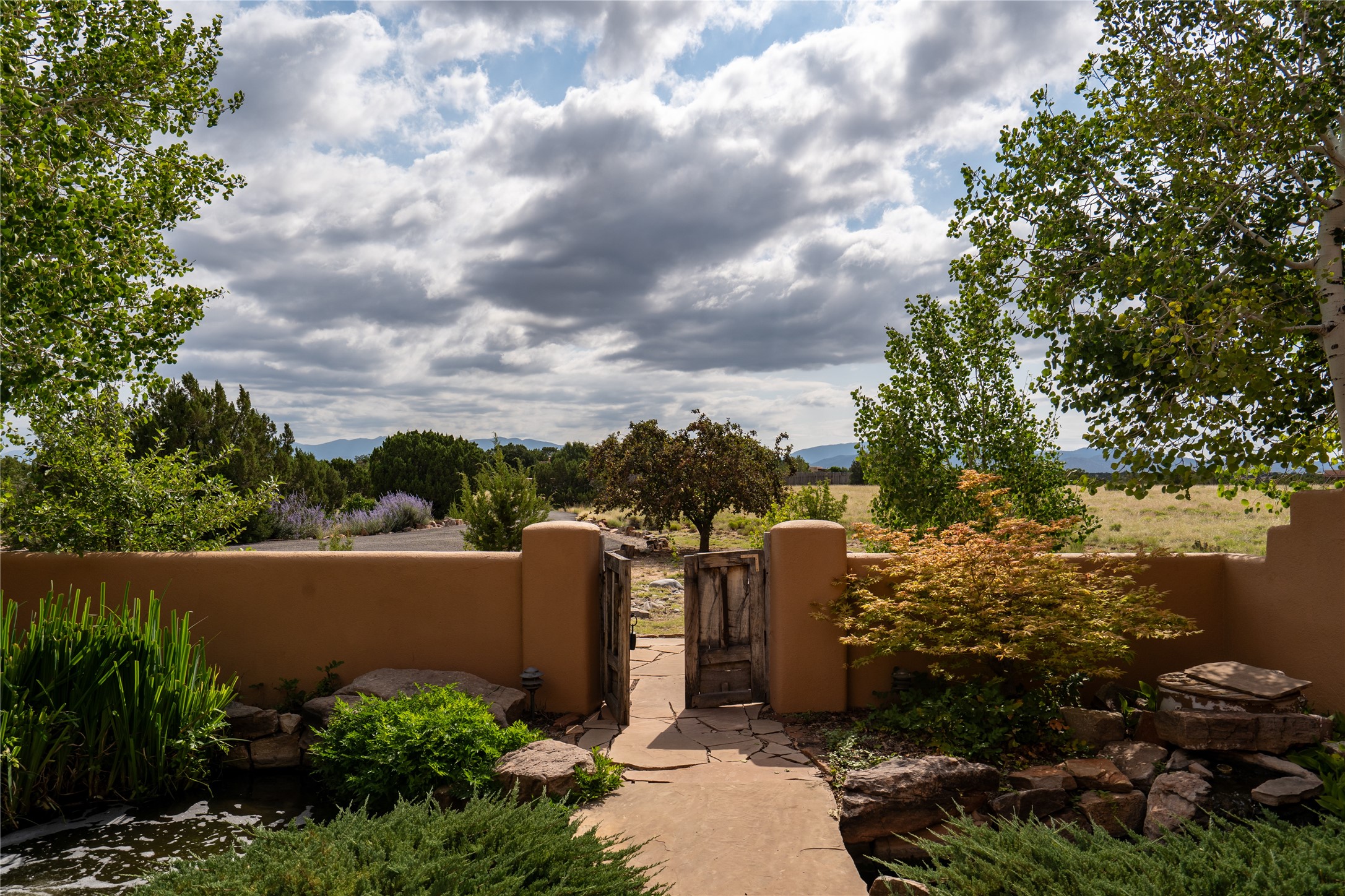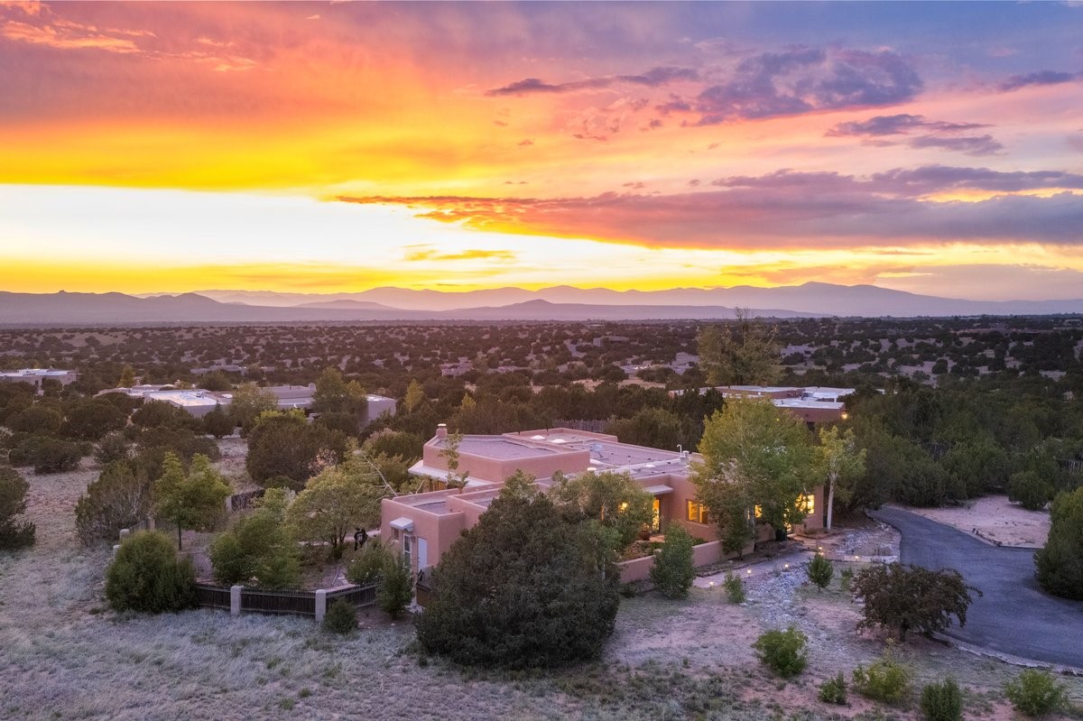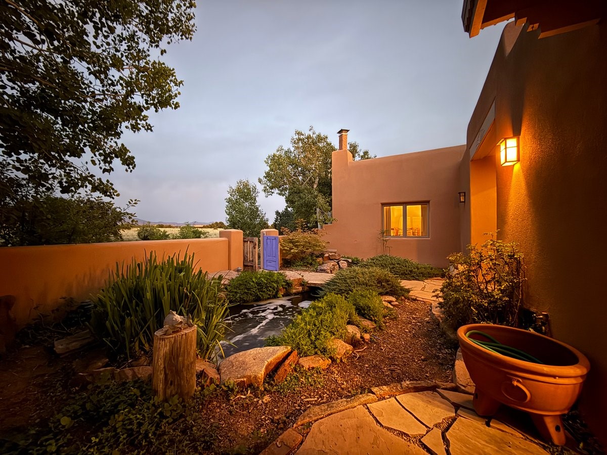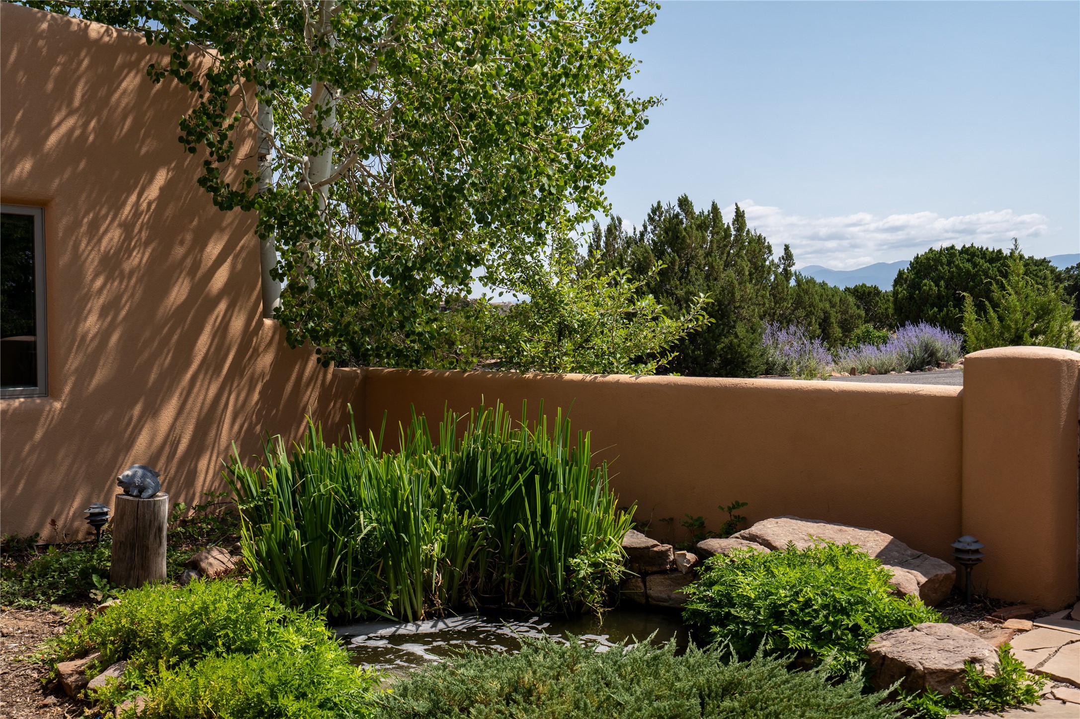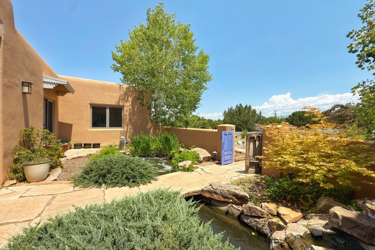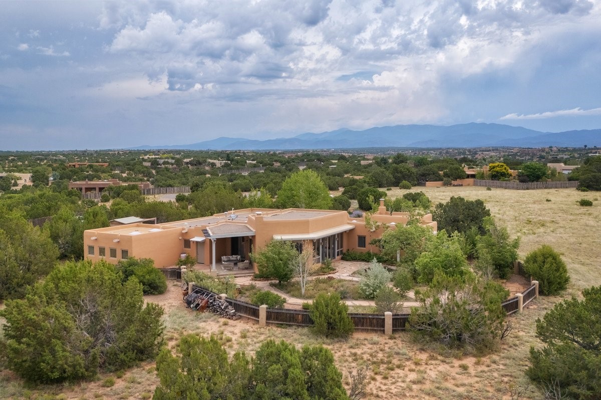 Here's everything you're looking for in a Santa Fe retreat, without the HOA. If you've been searching for that perfect Santa Fe home, the one with sweeping mountain views, single-level living, studio space, and just enough land to feel free without being overwhelmed, here it is. Set on 2.5 private acres at the end of a quiet cul-de-sac, this Prull custom home is designed for comfort, creativity, and connection to the landscape. The open layout features 3 bedrooms, 2 baths, and no interior steps with Italian porcelain tile throughout. The primary suite is separated from the other bedrooms. Skylights throughout bring in beautiful natural light all day. The living, dining, and kitchen spaces flow easily, ideal for both everyday living and entertaining. There's a charming front courtyard with a koi pond and space for your morning coffee, with a door from the breakfast nook for convenience. One of the most versatile features is the attached studio space, complete with its own bathroom. Whether you need an art studio, office, workshop, or private guest quarters, this flexible area is ready for your vision. The property also includes a three-car garage, radiant heat, mini splits in the primary and guest wing, and a separate personal observatory with a moveable roof for the ultimate dark-sky stargazing experience (Telescope negotiable). There's even a private door from the primary bathroom that opens directly to the backyard and hot tub, creating your own peaceful sanctuary under the stars.There's also a recently maintained roof and several new windows in 2024. And the location, just six miles from the Plaza, offers privacy and room to live your best Santa Fe lifestyle.