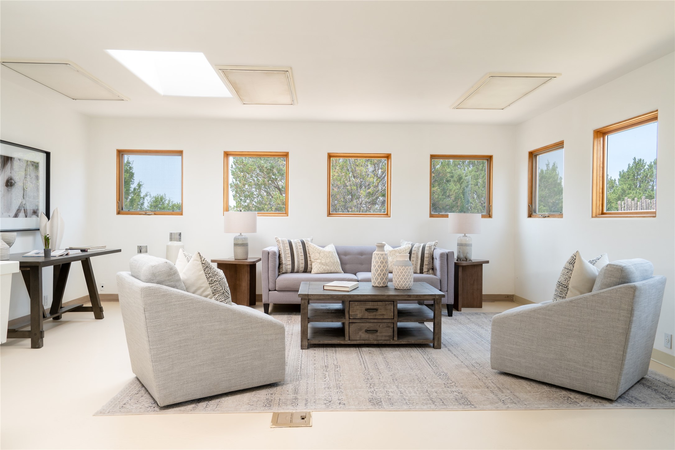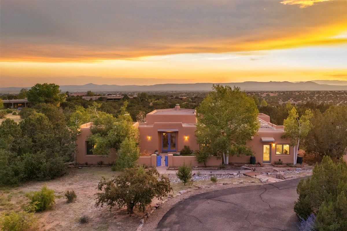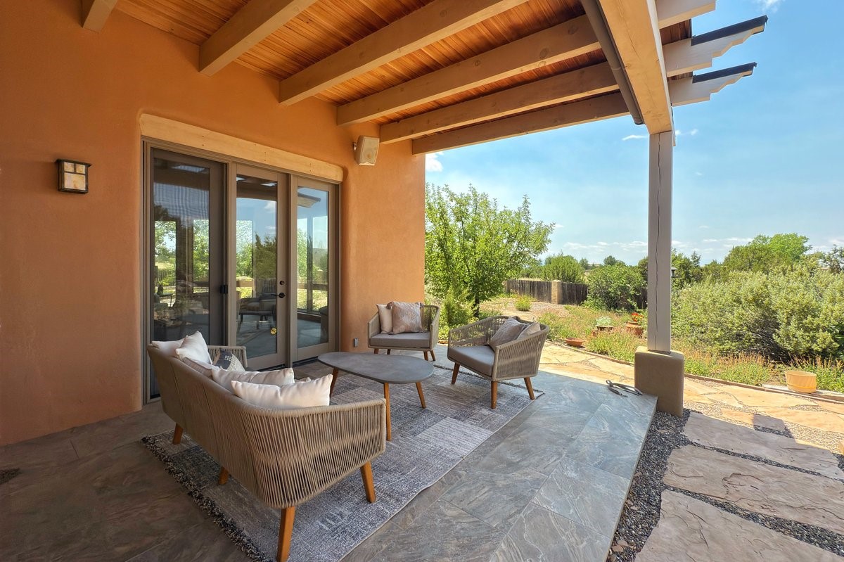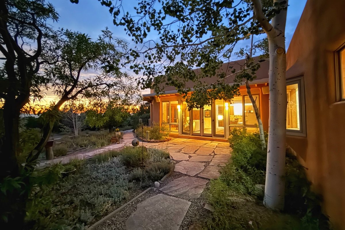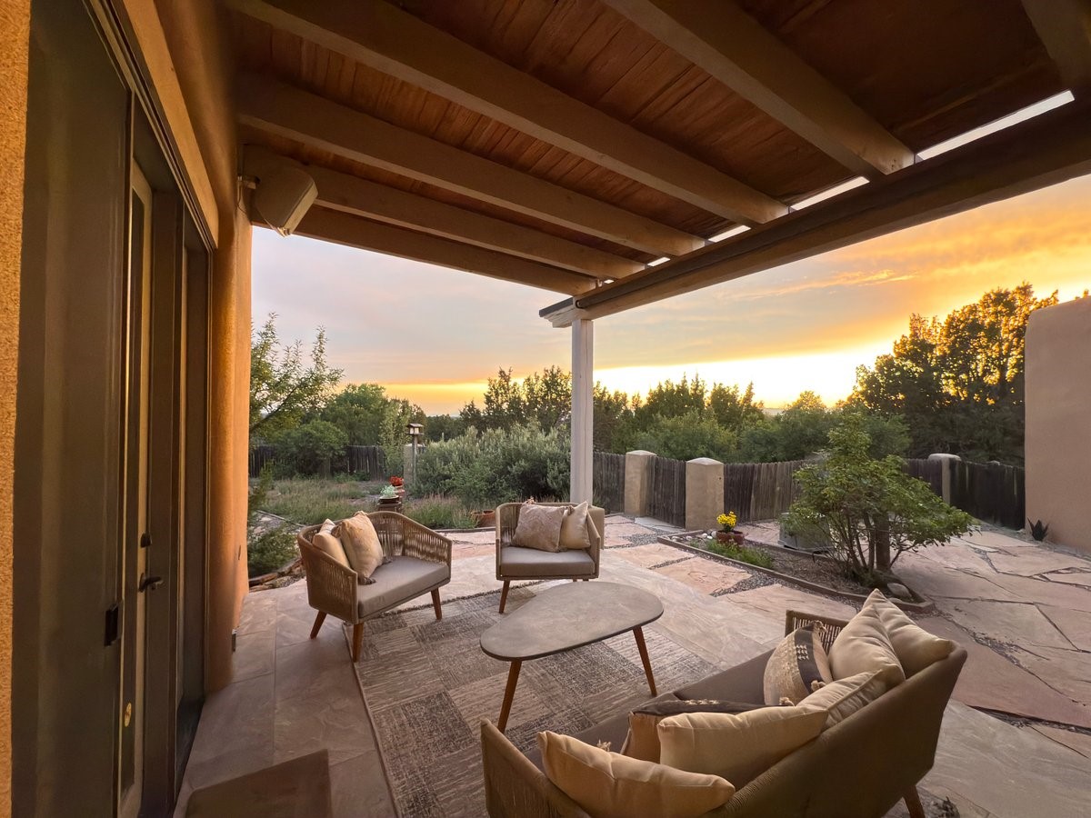 Here's everything you're looking for in a Santa Fe retreat, without the HOA. If you've been searching for that perfect Santa Fe home, the one with sweeping mountain views, single-level living, studio space, and just enough land to feel free without being overwhelmed, here it is. Set on 2.5 private acres at the end of a quiet cul-de-sac, this Prull custom home is designed for comfort, creativity, and connection to the landscape. The open layout features 3 bedrooms, 2 baths, and no interior steps with Italian porcelain tile throughout. The primary suite is separated from the other bedrooms. Skylights throughout bring in beautiful natural light all day. The living, dining, and kitchen spaces flow easily, ideal for both everyday living and entertaining. There's a charming front courtyard with a koi pond and space for your morning coffee, with a door from the breakfast nook for convenience. One of the most versatile features is the attached studio space, complete with its own bathroom. Whether you need an art studio, office, workshop, or private guest quarters, this flexible area is ready for your vision. The property also includes a three-car garage, radiant heat, mini splits in the primary and guest wing, and a separate personal observatory with a moveable roof for the ultimate dark-sky stargazing experience (Telescope negotiable). There's even a private door from the primary bathroom that opens directly to the backyard and hot tub, creating your own peaceful sanctuary under the stars.There's also a recently maintained roof and several new windows in 2024. And the location, just six miles from the Plaza, offers privacy and room to live your best Santa Fe lifestyle.