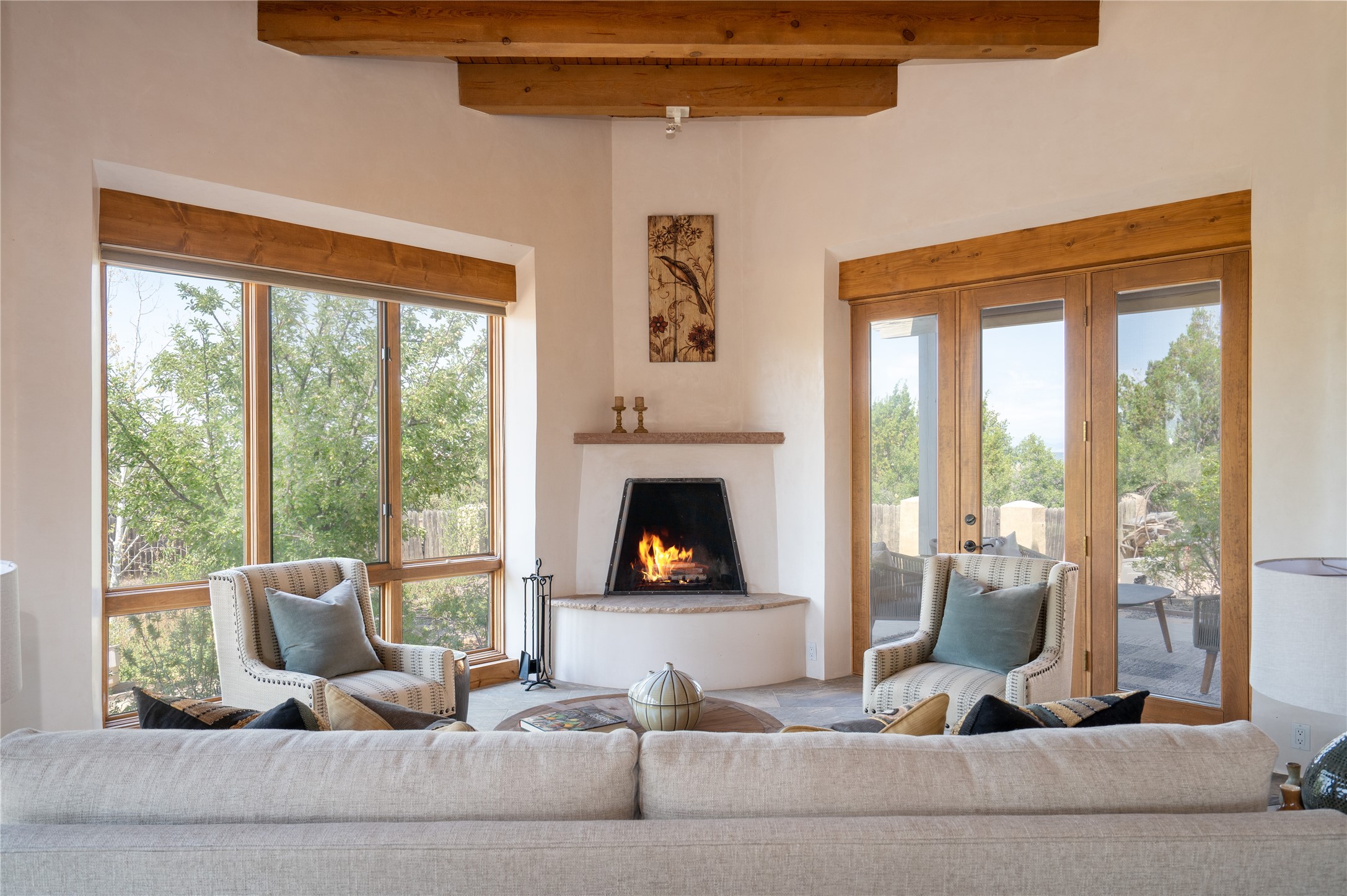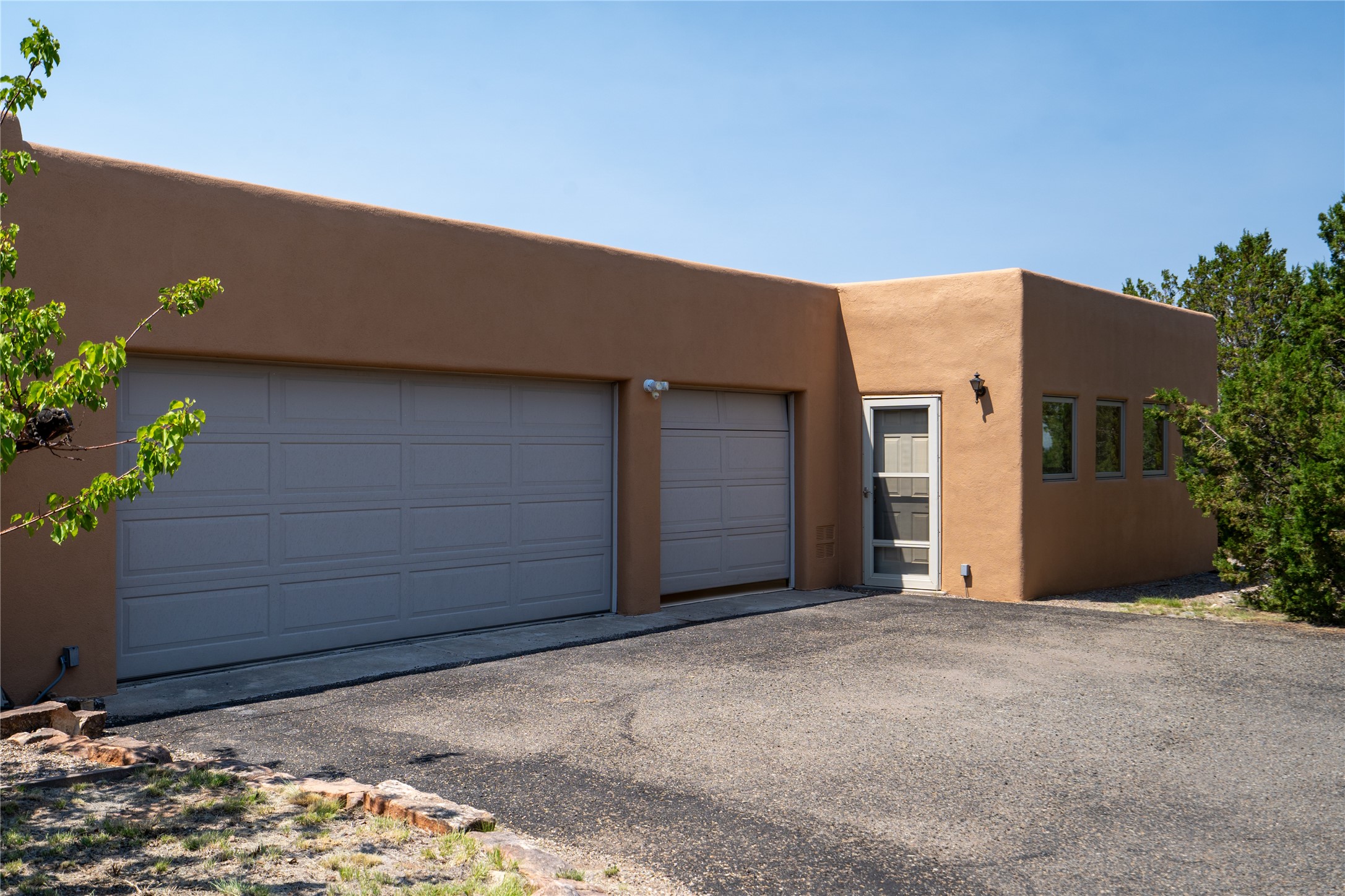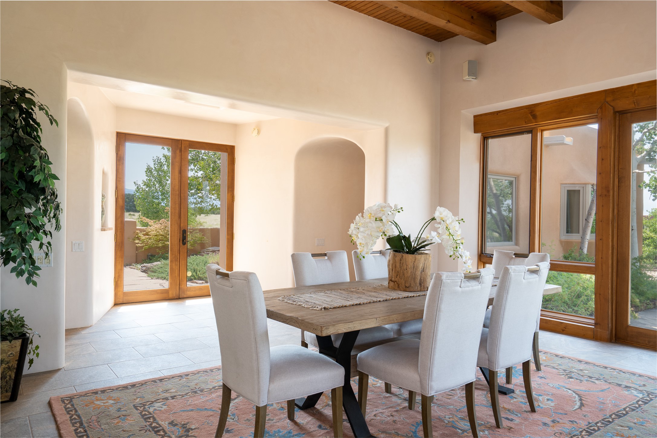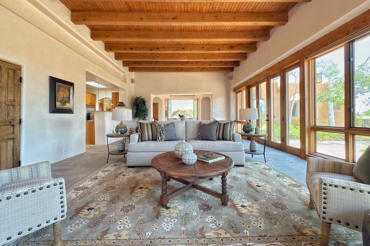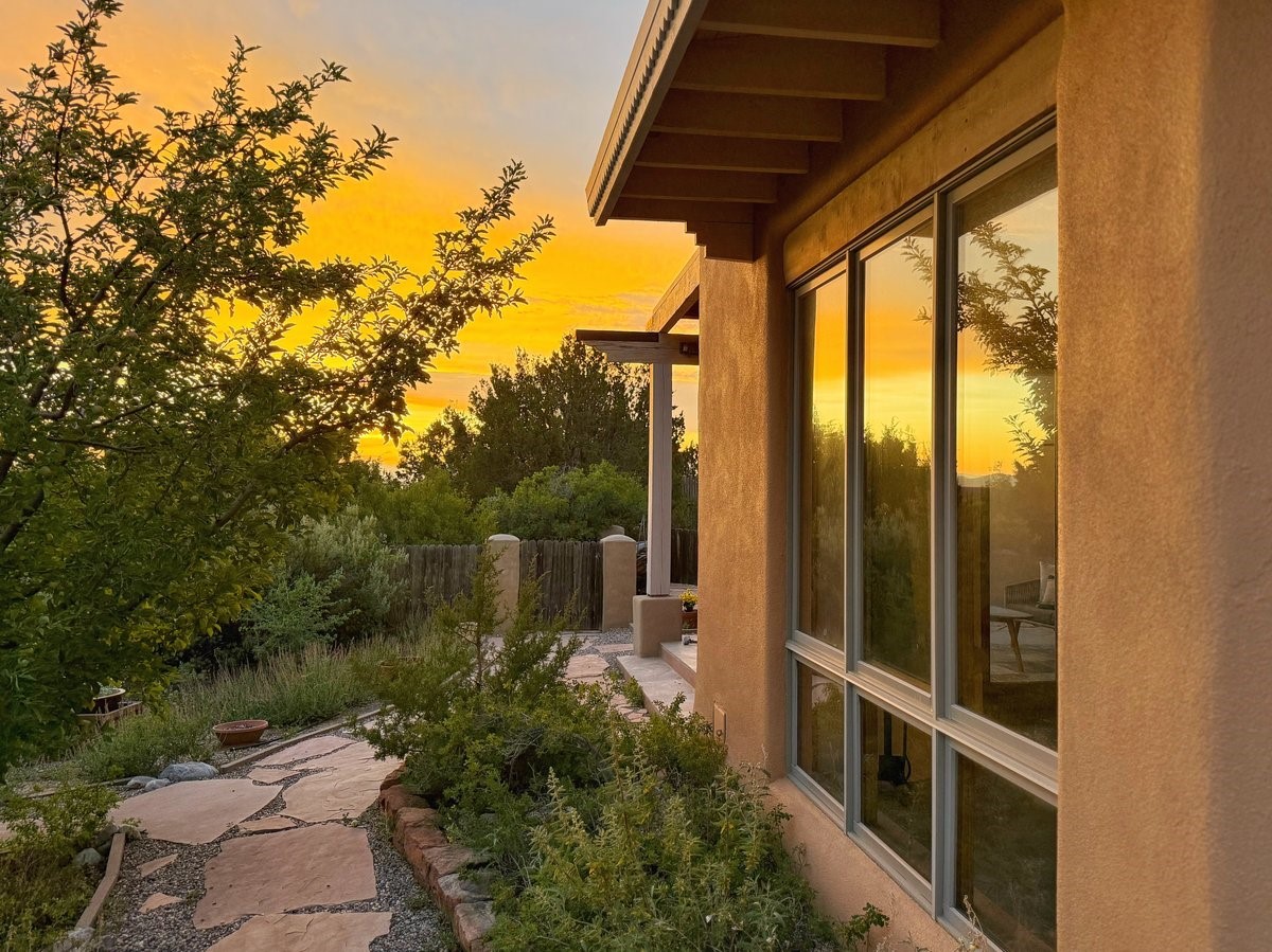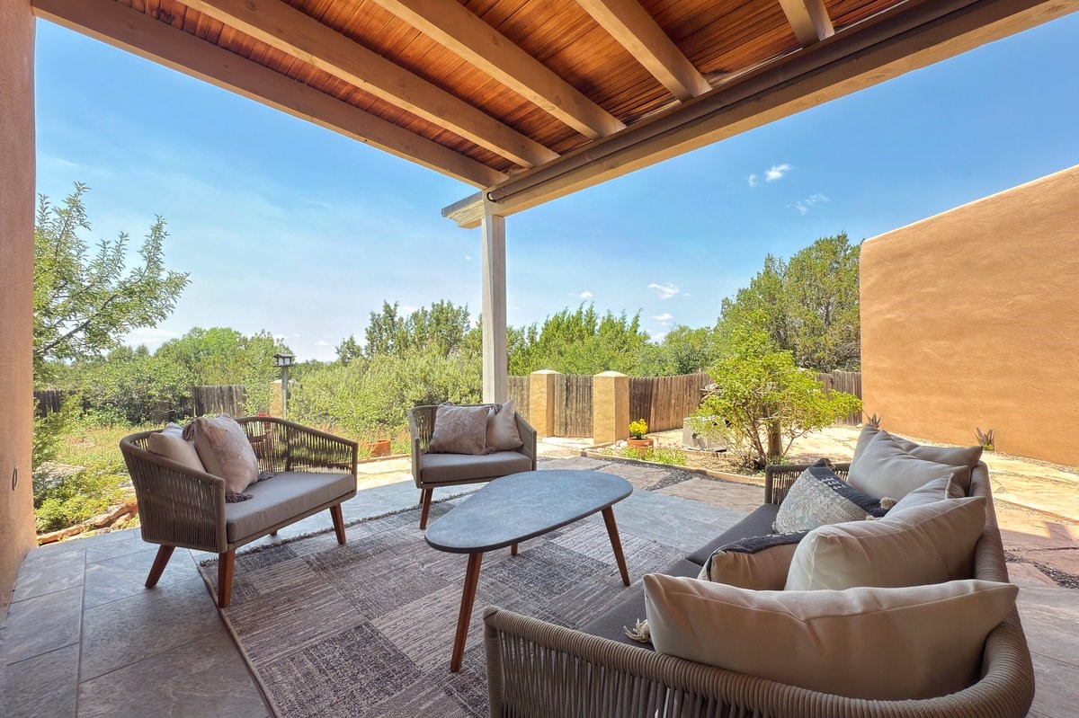 Here's everything you're looking for in a Santa Fe retreat, without the HOA. If you've been searching for that perfect Santa Fe home, the one with sweeping mountain views, single-level living, studio space, and just enough land to feel free without being overwhelmed, here it is. Set on 2.5 private acres at the end of a quiet cul-de-sac, this Prull custom home is designed for comfort, creativity, and connection to the landscape. The open layout features 3 bedrooms, 2 baths, and no interior steps with Italian porcelain tile throughout. The primary suite is separated from the other bedrooms. Skylights throughout bring in beautiful natural light all day. The living, dining, and kitchen spaces flow easily, ideal for both everyday living and entertaining. There's a charming front courtyard with a koi pond and space for your morning coffee, with a door from the breakfast nook for convenience. One of the most versatile features is the attached studio space, complete with its own bathroom. Whether you need an art studio, office, workshop, or private guest quarters, this flexible area is ready for your vision. The property also includes a three-car garage, radiant heat, mini splits in the primary and guest wing, and a separate personal observatory with a moveable roof for the ultimate dark-sky stargazing experience (Telescope negotiable). There's even a private door from the primary bathroom that opens directly to the backyard and hot tub, creating your own peaceful sanctuary under the stars.There's also a recently maintained roof and several new windows in 2024. And the location, just six miles from the Plaza, offers privacy and room to live your best Santa Fe lifestyle.