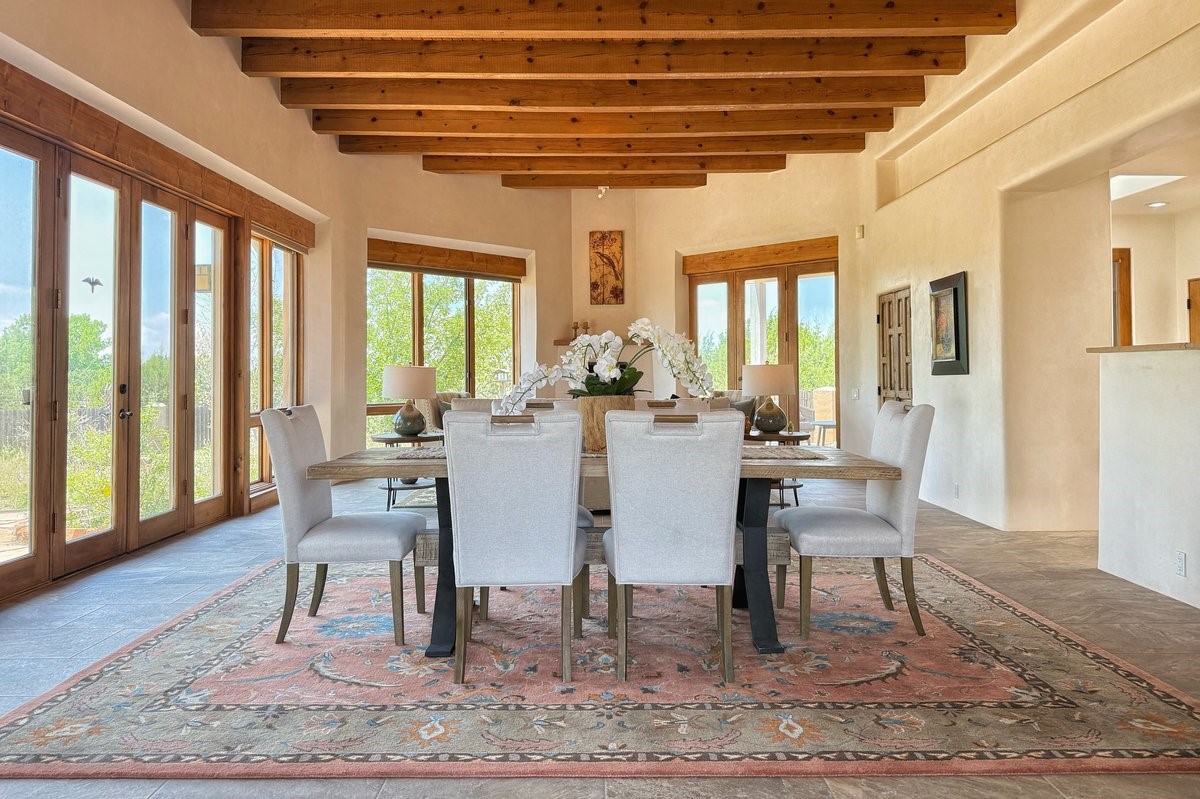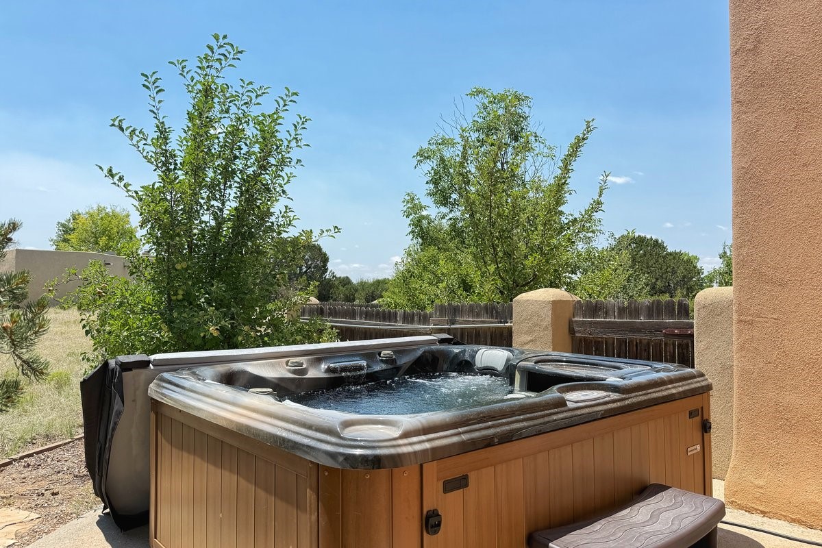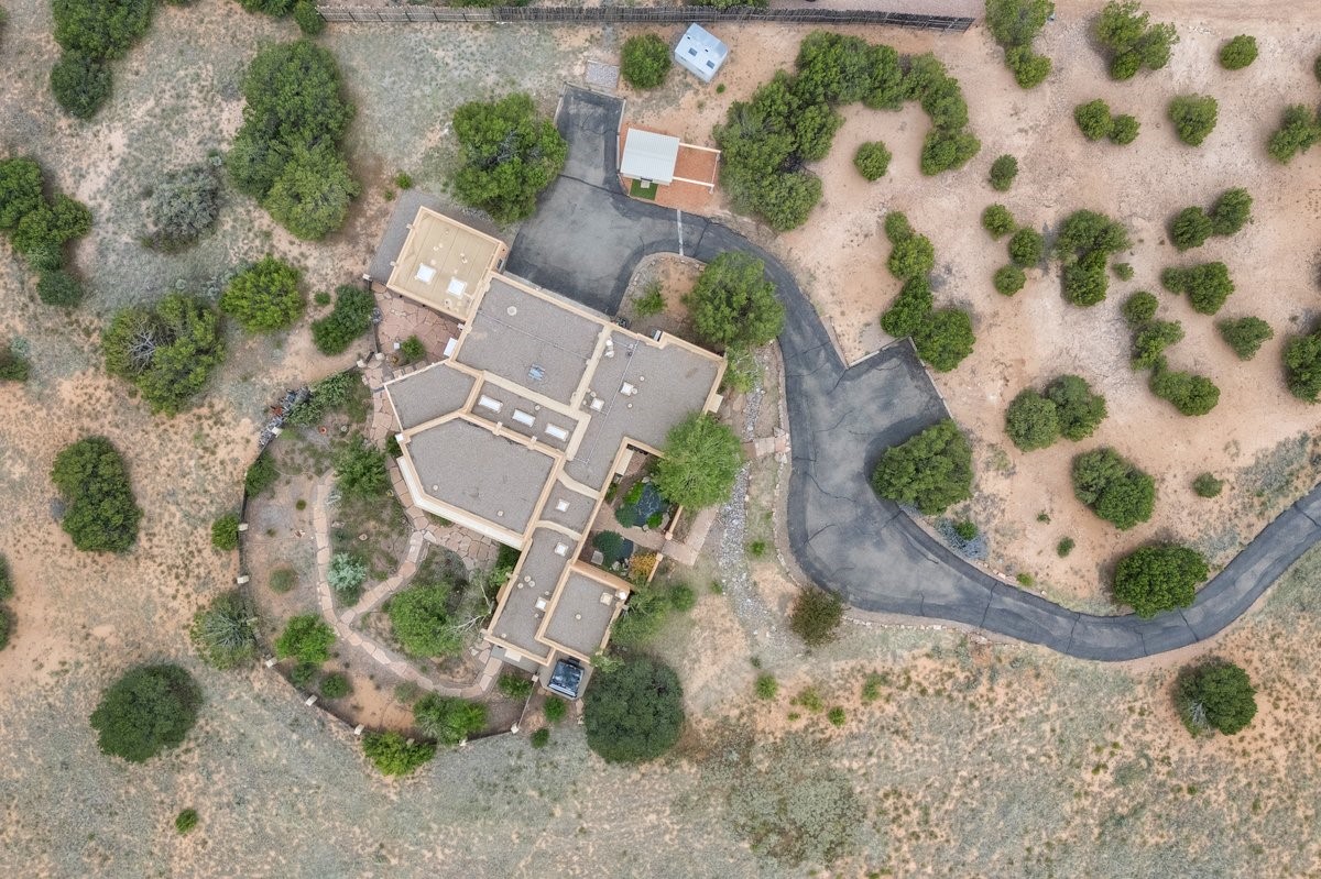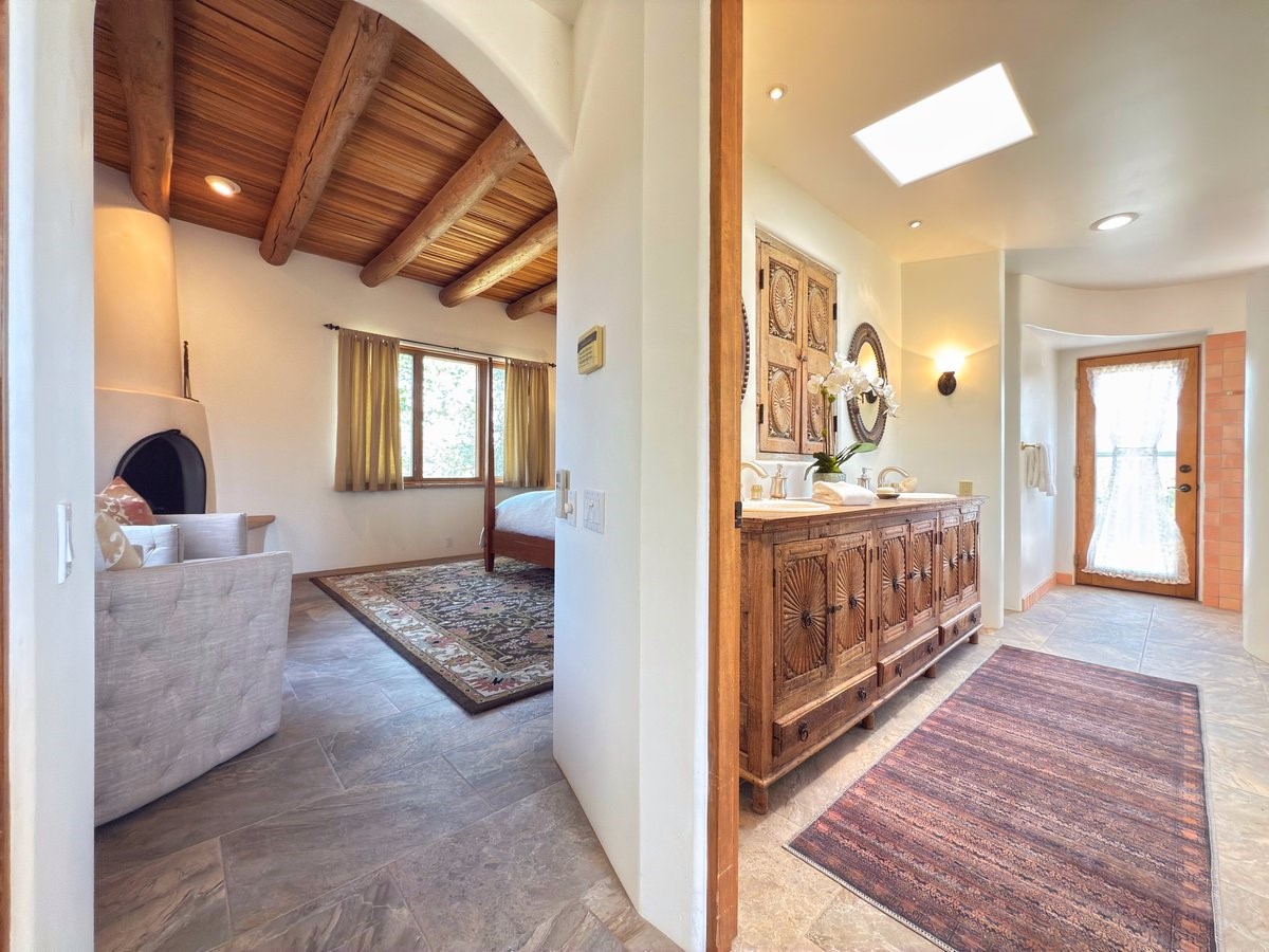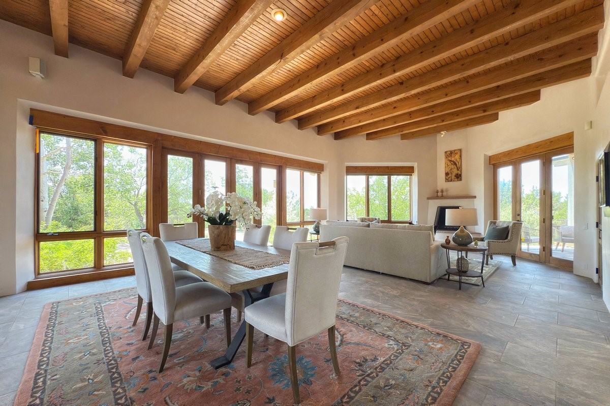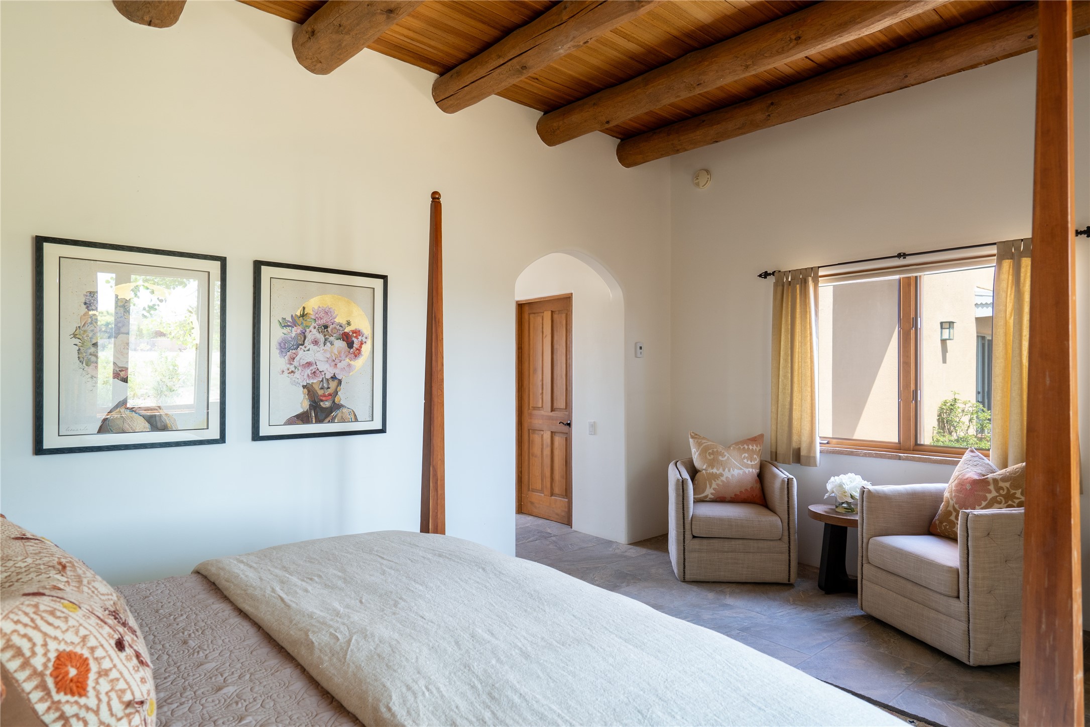 Here's everything you're looking for in a Santa Fe retreat, without the HOA. If you've been searching for that perfect Santa Fe home, the one with sweeping mountain views, single-level living, studio space, and just enough land to feel free without being overwhelmed, here it is. Set on 2.5 private acres at the end of a quiet cul-de-sac, this Prull custom home is designed for comfort, creativity, and connection to the landscape. The open layout features 3 bedrooms, 2 baths, and no interior steps with Italian porcelain tile throughout. The primary suite is separated from the other bedrooms. Skylights throughout bring in beautiful natural light all day. The living, dining, and kitchen spaces flow easily, ideal for both everyday living and entertaining. There's a charming front courtyard with a koi pond and space for your morning coffee, with a door from the breakfast nook for convenience. One of the most versatile features is the attached studio space, complete with its own bathroom. Whether you need an art studio, office, workshop, or private guest quarters, this flexible area is ready for your vision. The property also includes a three-car garage, radiant heat, mini splits in the primary and guest wing, and a separate personal observatory with a moveable roof for the ultimate dark-sky stargazing experience (Telescope negotiable). There's even a private door from the primary bathroom that opens directly to the backyard and hot tub, creating your own peaceful sanctuary under the stars.There's also a recently maintained roof and several new windows in 2024. And the location, just six miles from the Plaza, offers privacy and room to live your best Santa Fe lifestyle.