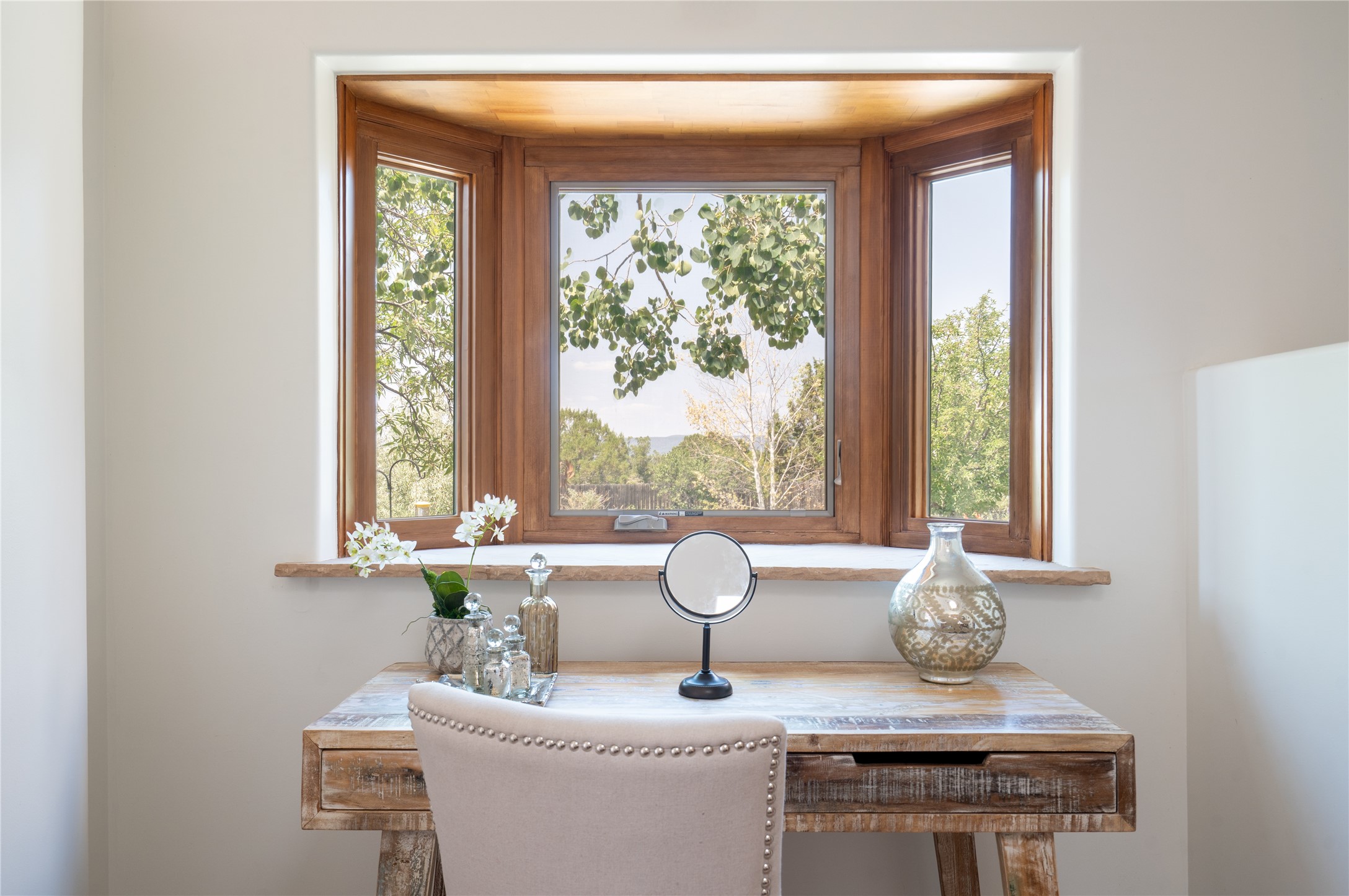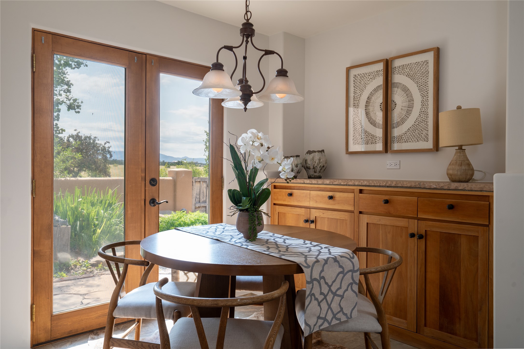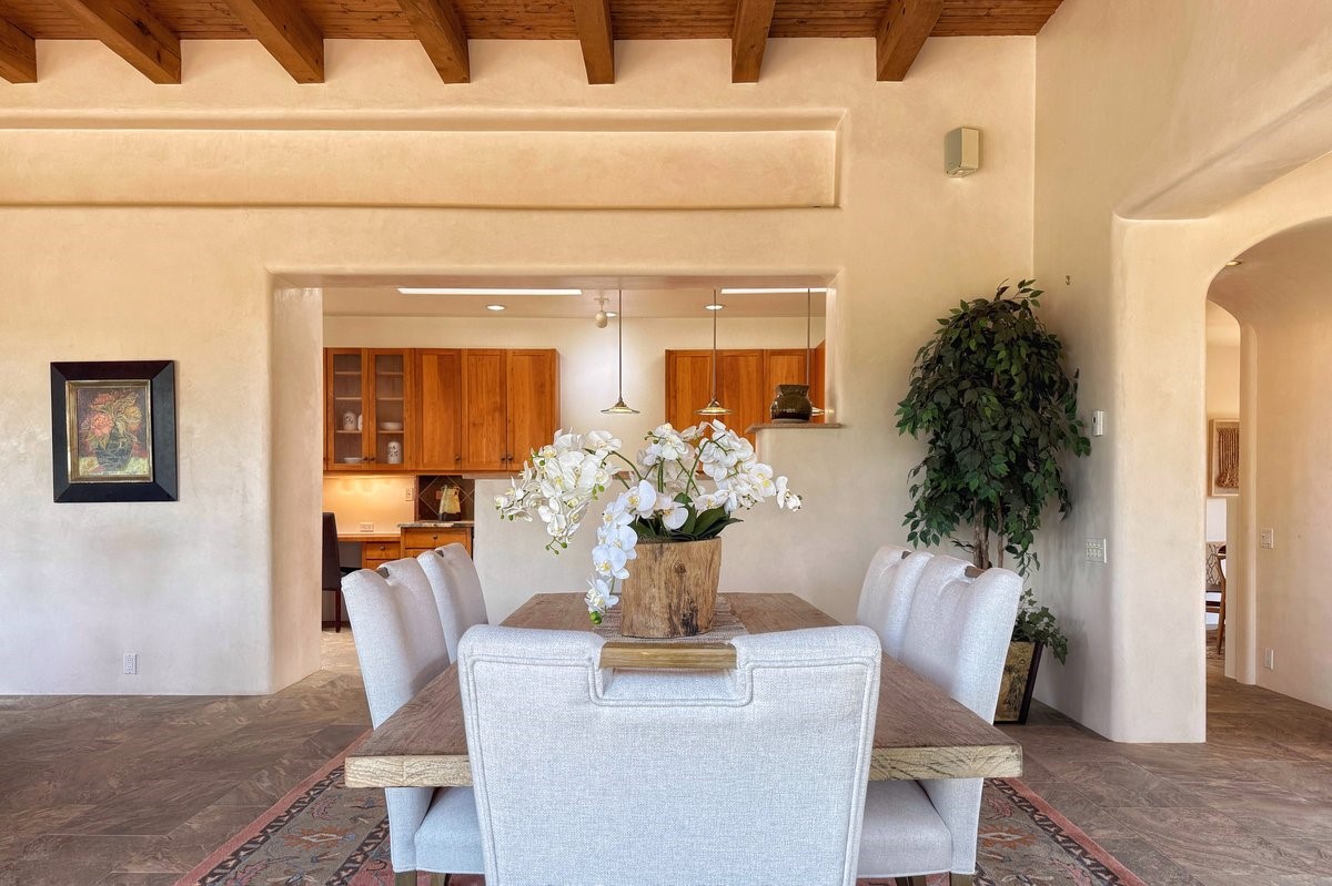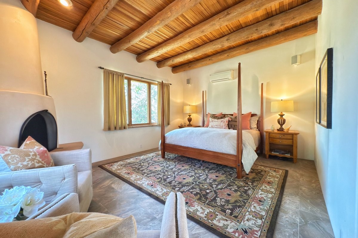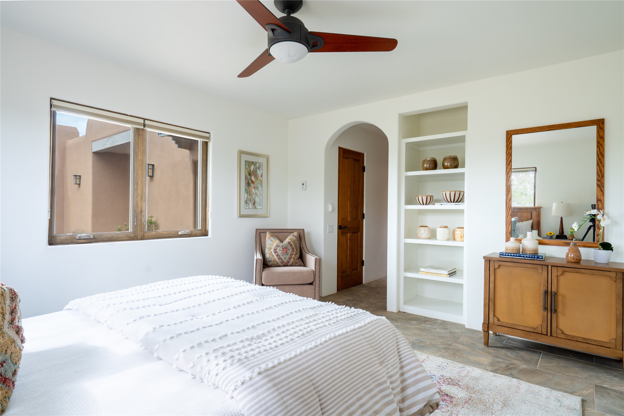 Here's everything you're looking for in a Santa Fe retreat, without the HOA. If you've been searching for that perfect Santa Fe home, the one with sweeping mountain views, single-level living, studio space, and just enough land to feel free without being overwhelmed, here it is. Set on 2.5 private acres at the end of a quiet cul-de-sac, this Prull custom home is designed for comfort, creativity, and connection to the landscape. The open layout features 3 bedrooms, 2 baths, and no interior steps with Italian porcelain tile throughout. The primary suite is separated from the other bedrooms. Skylights throughout bring in beautiful natural light all day. The living, dining, and kitchen spaces flow easily, ideal for both everyday living and entertaining. There's a charming front courtyard with a koi pond and space for your morning coffee, with a door from the breakfast nook for convenience. One of the most versatile features is the attached studio space, complete with its own bathroom. Whether you need an art studio, office, workshop, or private guest quarters, this flexible area is ready for your vision. The property also includes a three-car garage, radiant heat, mini splits in the primary and guest wing, and a separate personal observatory with a moveable roof for the ultimate dark-sky stargazing experience (Telescope negotiable). There's even a private door from the primary bathroom that opens directly to the backyard and hot tub, creating your own peaceful sanctuary under the stars.There's also a recently maintained roof and several new windows in 2024. And the location, just six miles from the Plaza, offers privacy and room to live your best Santa Fe lifestyle.