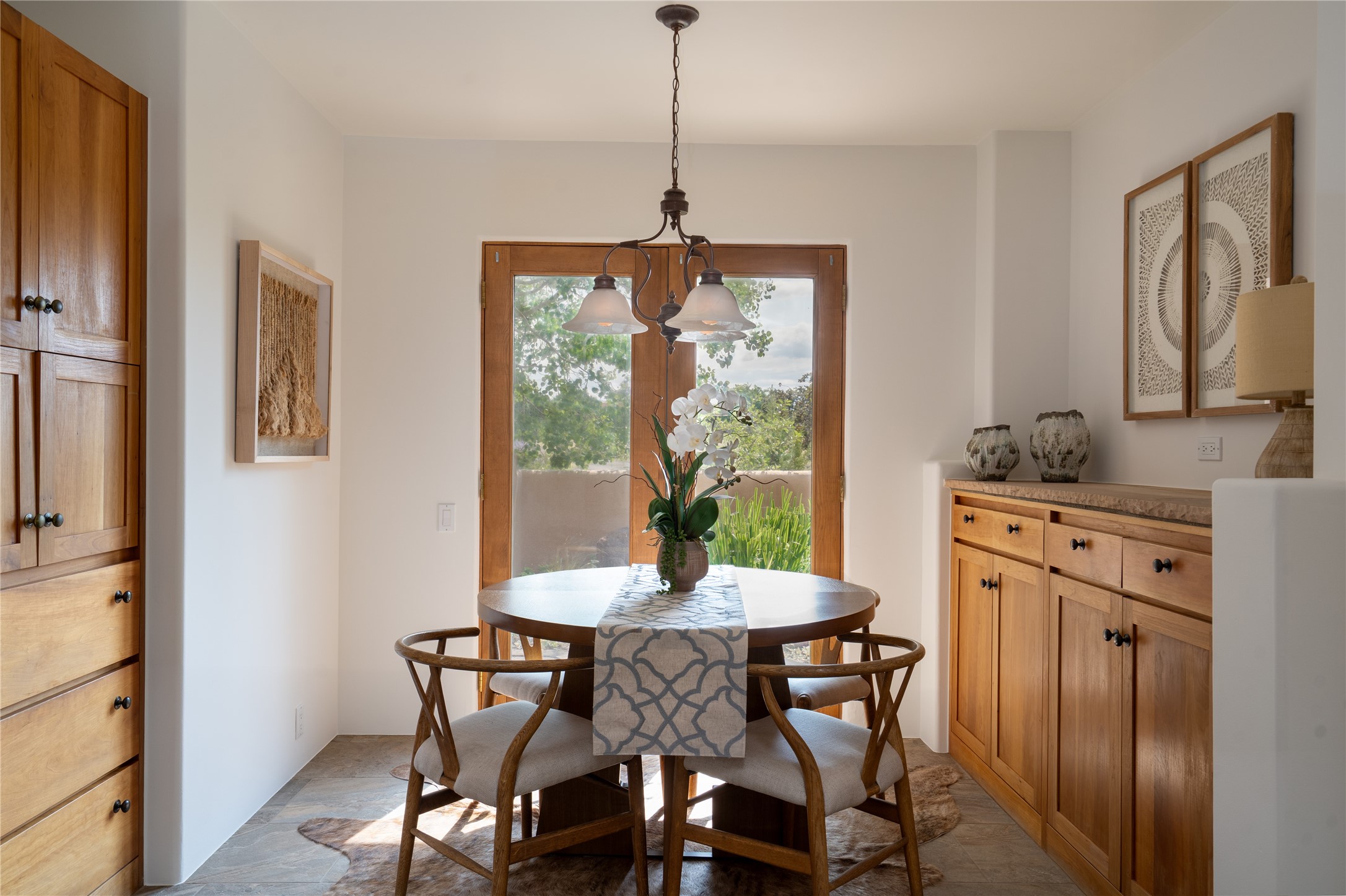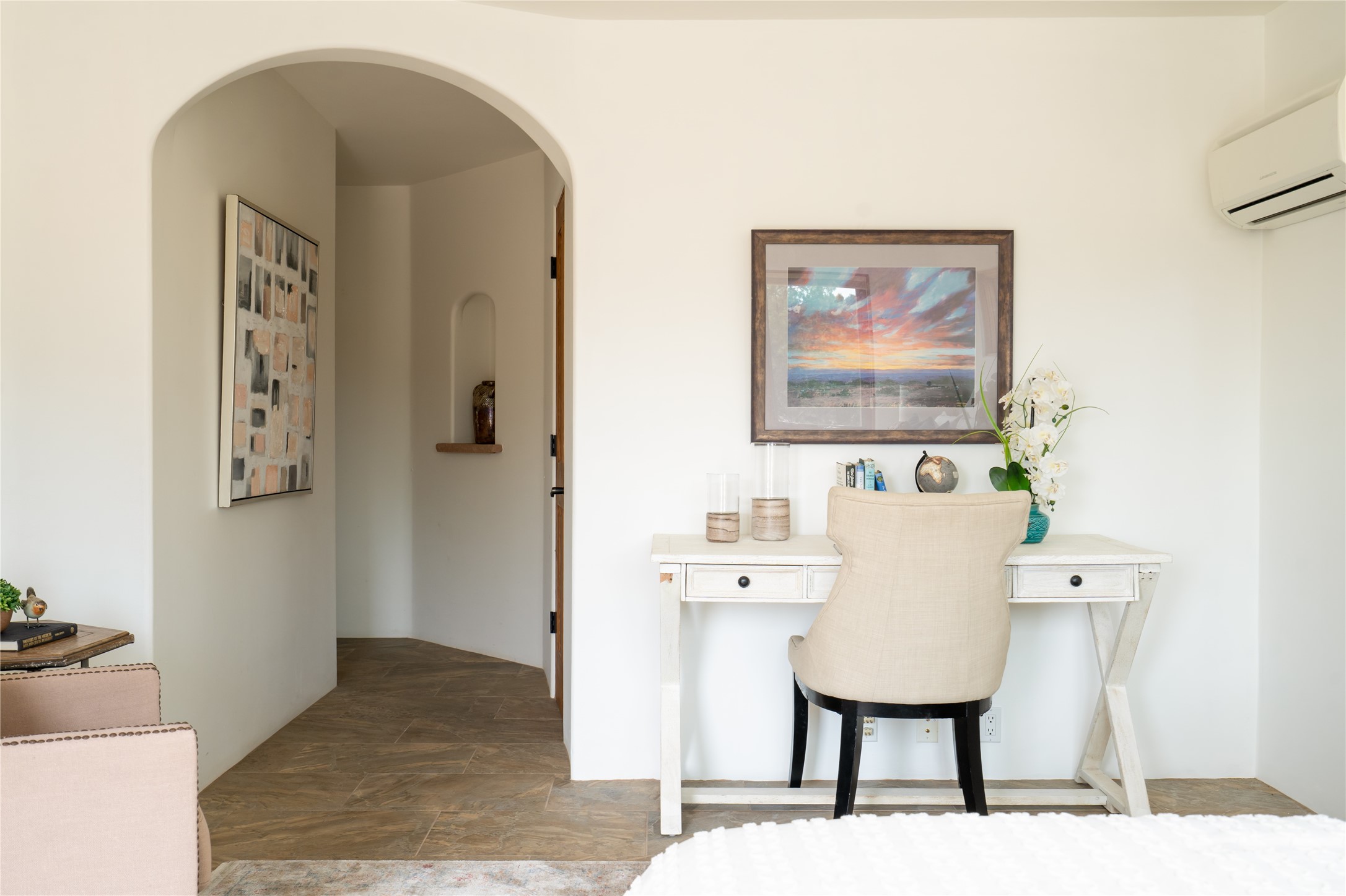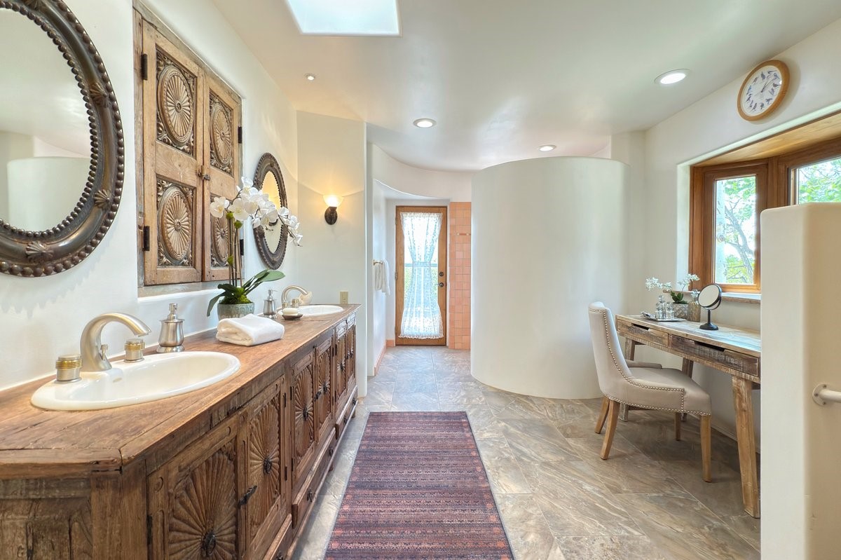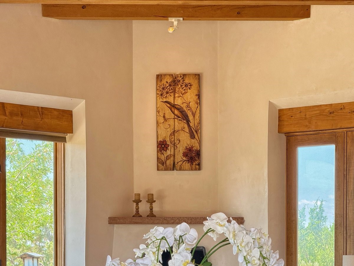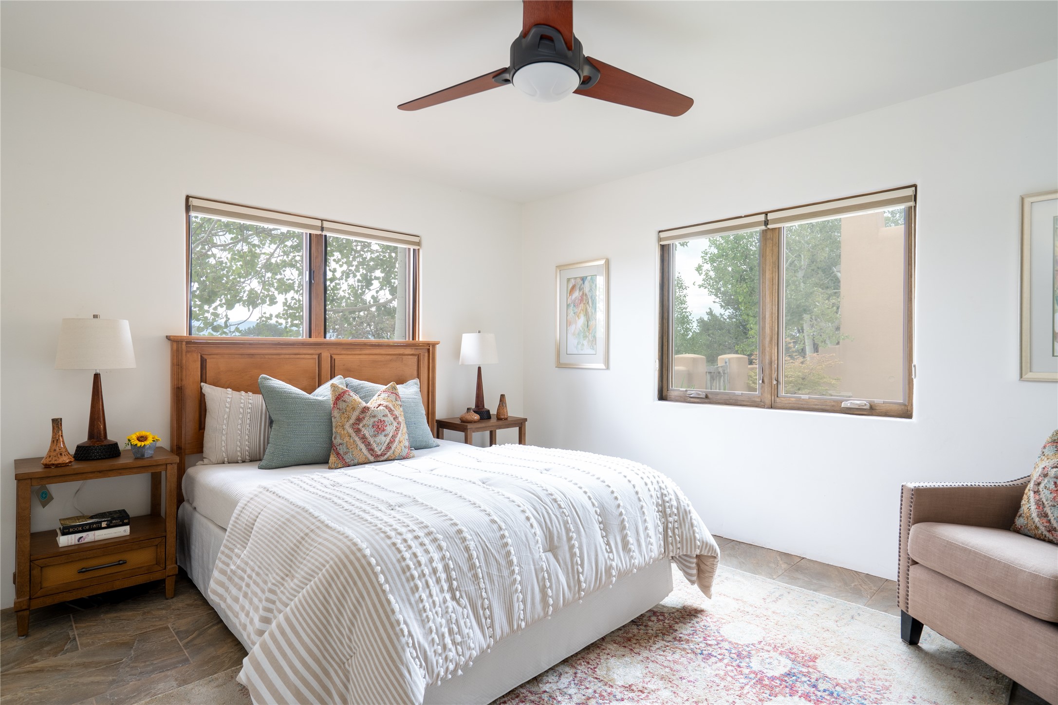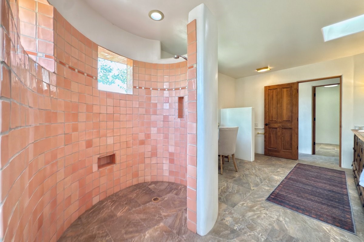 Here's everything you're looking for in a Santa Fe retreat, without the HOA. If you've been searching for that perfect Santa Fe home, the one with sweeping mountain views, single-level living, studio space, and just enough land to feel free without being overwhelmed, here it is. Set on 2.5 private acres at the end of a quiet cul-de-sac, this Prull custom home is designed for comfort, creativity, and connection to the landscape. The open layout features 3 bedrooms, 2 baths, and no interior steps with Italian porcelain tile throughout. The primary suite is separated from the other bedrooms. Skylights throughout bring in beautiful natural light all day. The living, dining, and kitchen spaces flow easily, ideal for both everyday living and entertaining. There's a charming front courtyard with a koi pond and space for your morning coffee, with a door from the breakfast nook for convenience. One of the most versatile features is the attached studio space, complete with its own bathroom. Whether you need an art studio, office, workshop, or private guest quarters, this flexible area is ready for your vision. The property also includes a three-car garage, radiant heat, mini splits in the primary and guest wing, and a separate personal observatory with a moveable roof for the ultimate dark-sky stargazing experience (Telescope negotiable). There's even a private door from the primary bathroom that opens directly to the backyard and hot tub, creating your own peaceful sanctuary under the stars.There's also a recently maintained roof and several new windows in 2024. And the location, just six miles from the Plaza, offers privacy and room to live your best Santa Fe lifestyle.