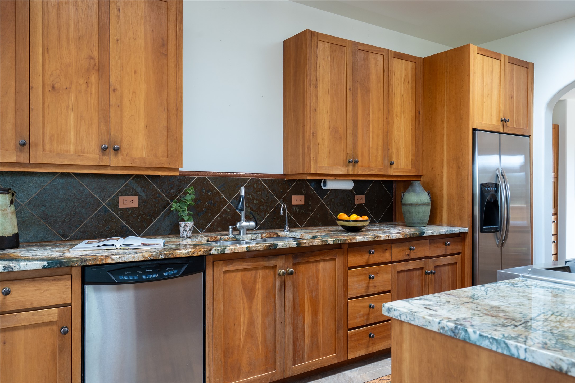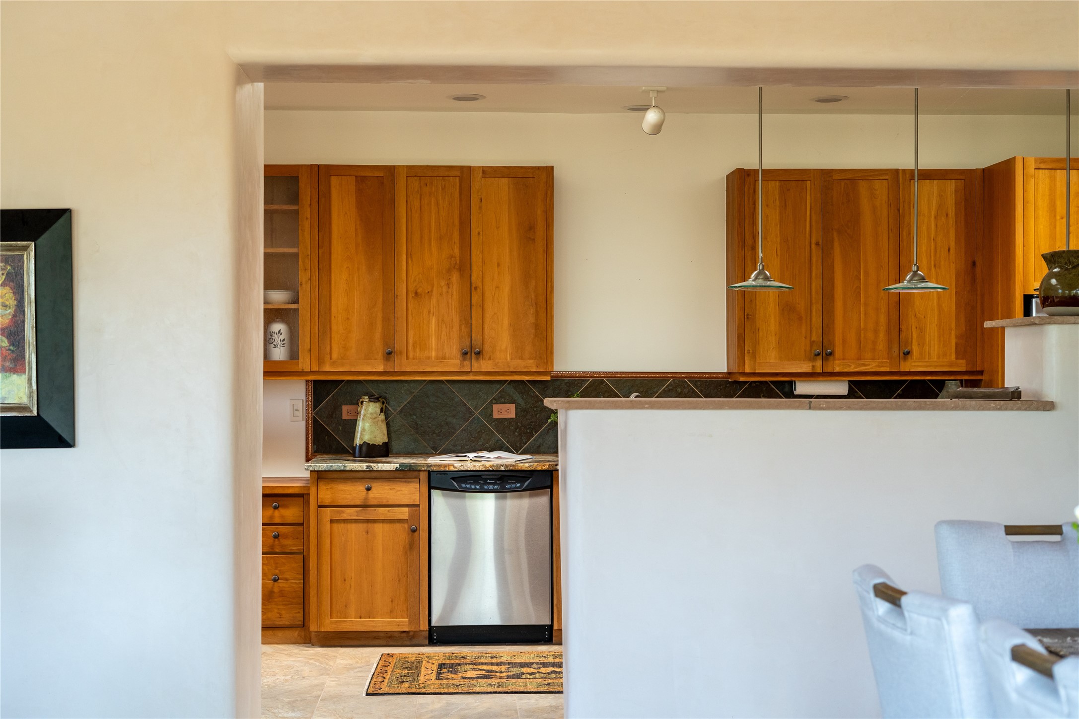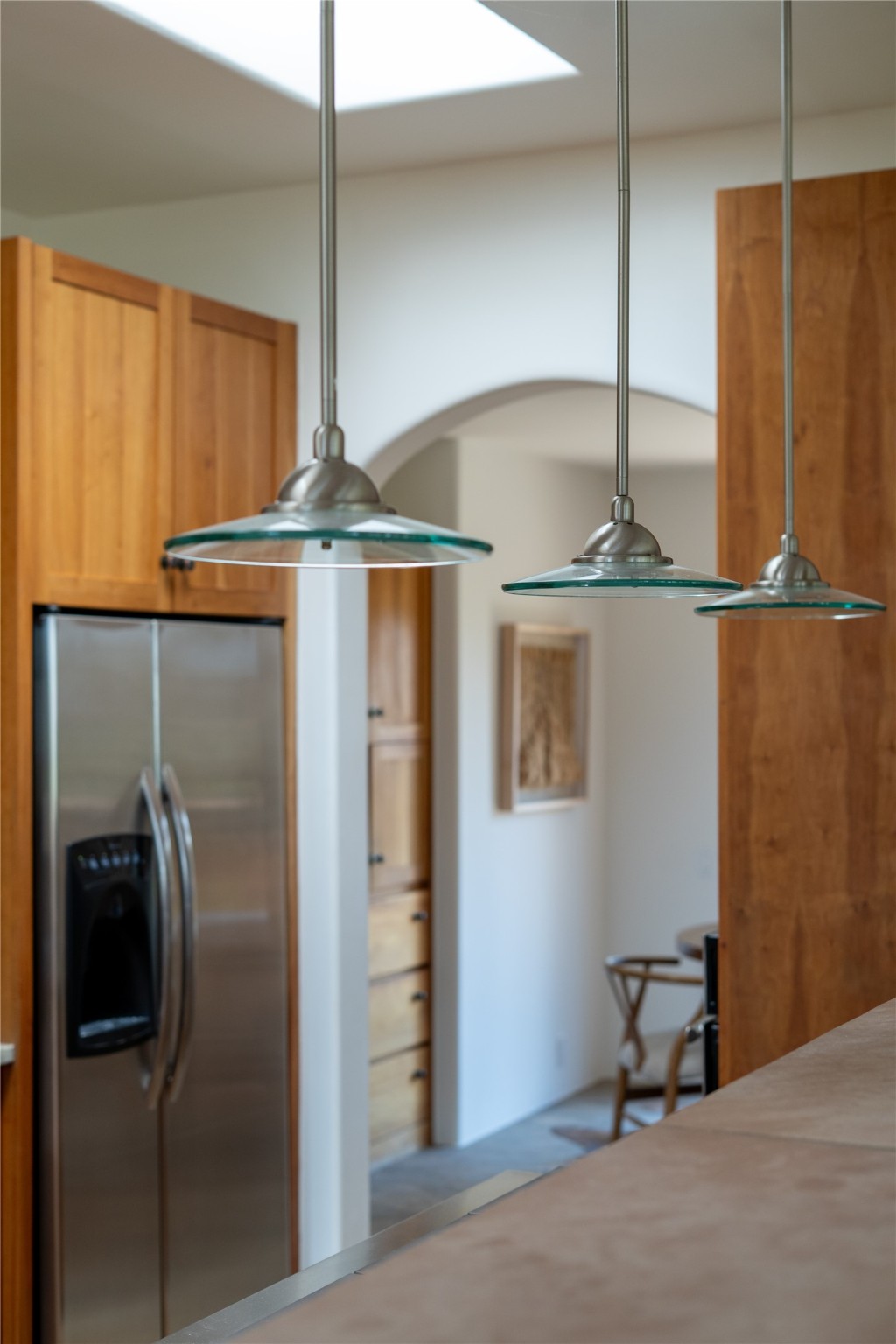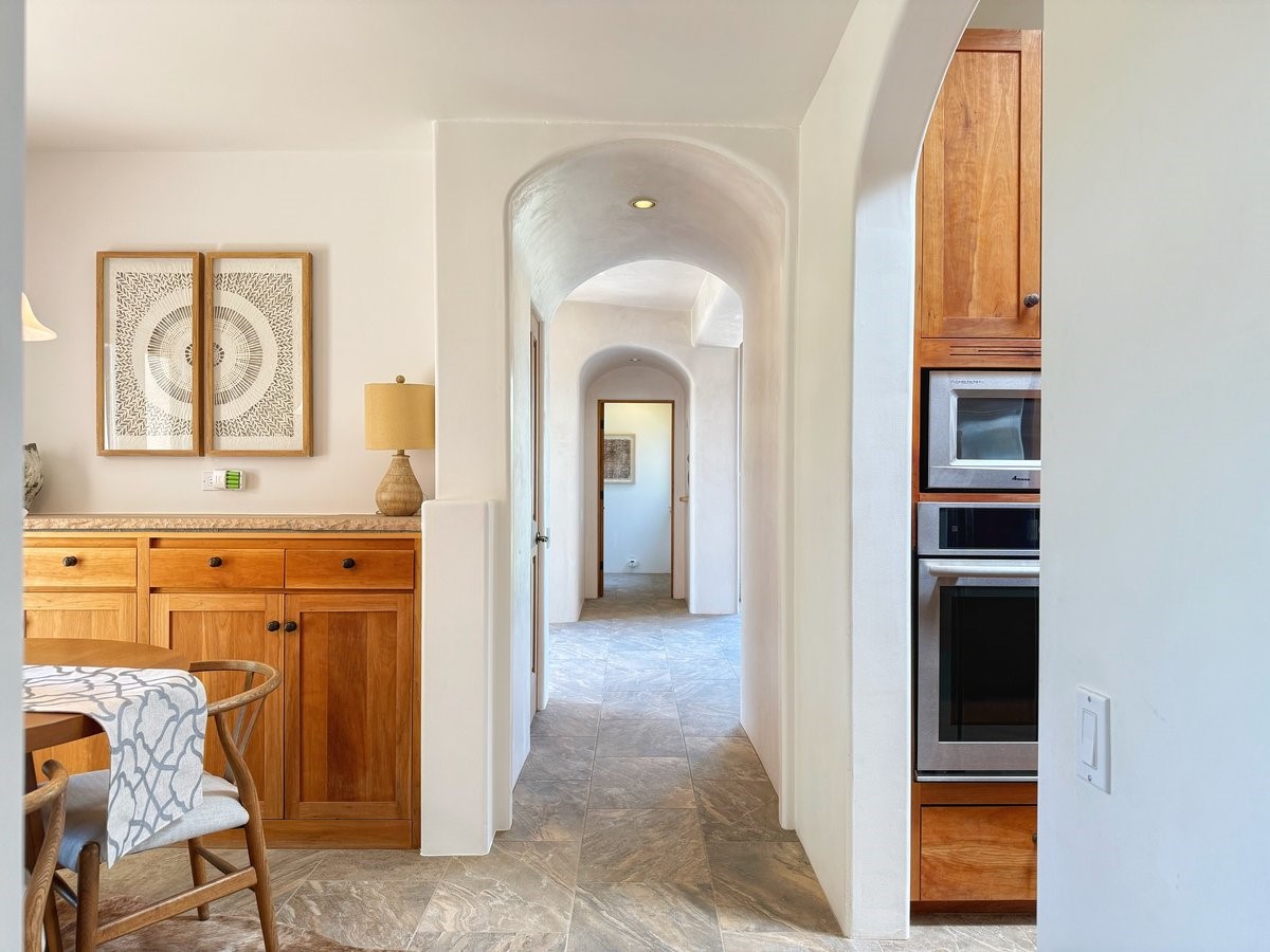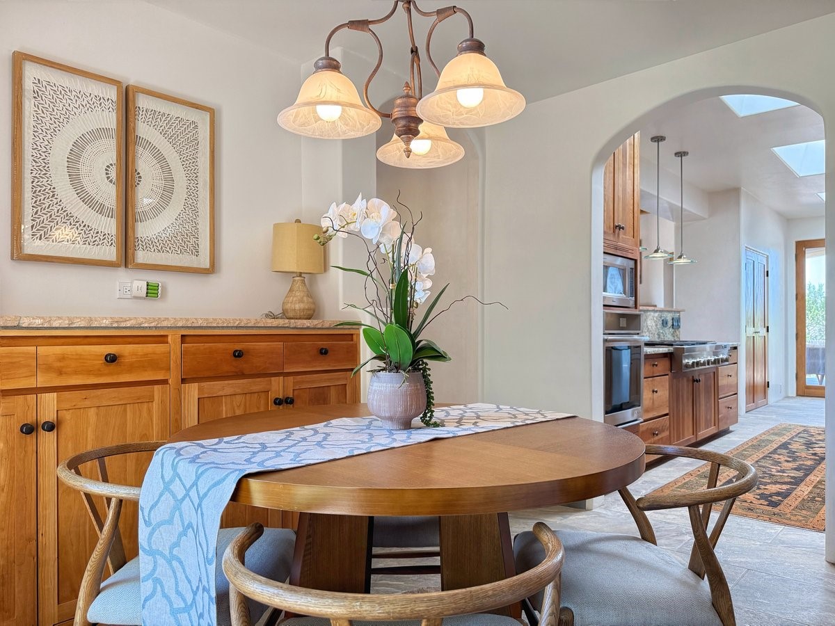 Here's everything you're looking for in a Santa Fe retreat, without the HOA. If you've been searching for that perfect Santa Fe home, the one with sweeping mountain views, single-level living, studio space, and just enough land to feel free without being overwhelmed, here it is. Set on 2.5 private acres at the end of a quiet cul-de-sac, this Prull custom home is designed for comfort, creativity, and connection to the landscape. The open layout features 3 bedrooms, 2 baths, and no interior steps with Italian porcelain tile throughout. The primary suite is separated from the other bedrooms. Skylights throughout bring in beautiful natural light all day. The living, dining, and kitchen spaces flow easily, ideal for both everyday living and entertaining. There's a charming front courtyard with a koi pond and space for your morning coffee, with a door from the breakfast nook for convenience. One of the most versatile features is the attached studio space, complete with its own bathroom. Whether you need an art studio, office, workshop, or private guest quarters, this flexible area is ready for your vision. The property also includes a three-car garage, radiant heat, mini splits in the primary and guest wing, and a separate personal observatory with a moveable roof for the ultimate dark-sky stargazing experience (Telescope negotiable). There's even a private door from the primary bathroom that opens directly to the backyard and hot tub, creating your own peaceful sanctuary under the stars.There's also a recently maintained roof and several new windows in 2024. And the location, just six miles from the Plaza, offers privacy and room to live your best Santa Fe lifestyle.