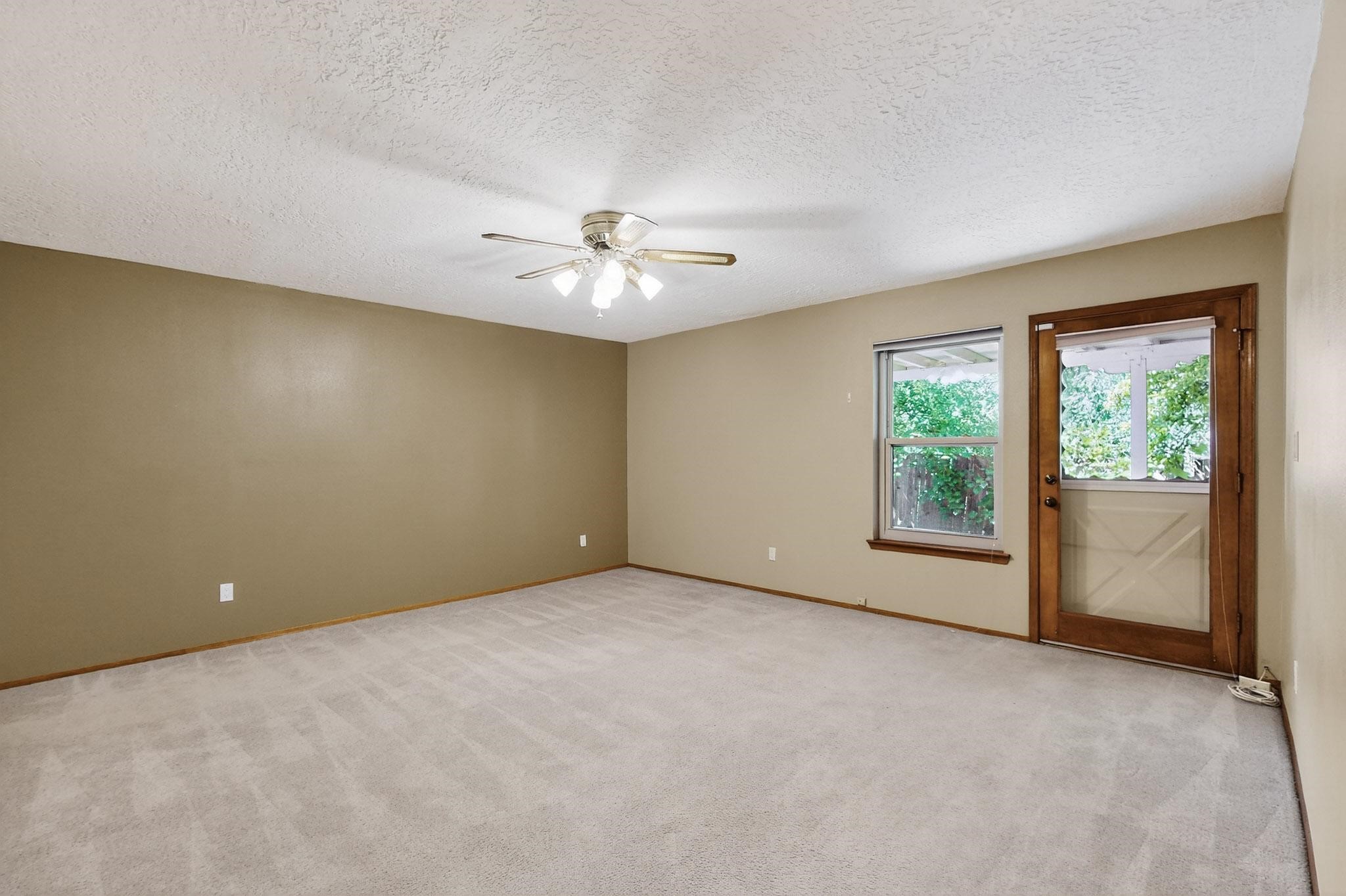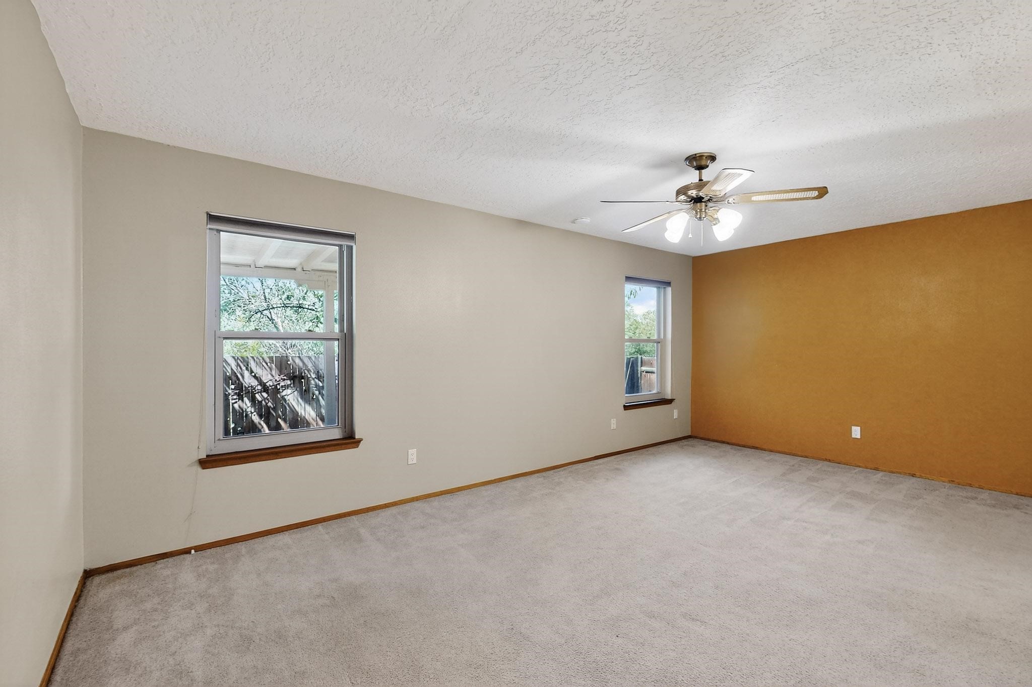 This beautifully, well-maintained single-level two-bedroom home is located near schools, shopping, a park, and a train stop. High ceilings with clearstory windows bring in much natural light, and the woodburning fireplace welcomes you with a great first impression. Two custom patios create a large entertainment area with great sunset views and a peaceful arroyo. There are cherry & pear trees as well as grape vines in the low maintenance backyard.