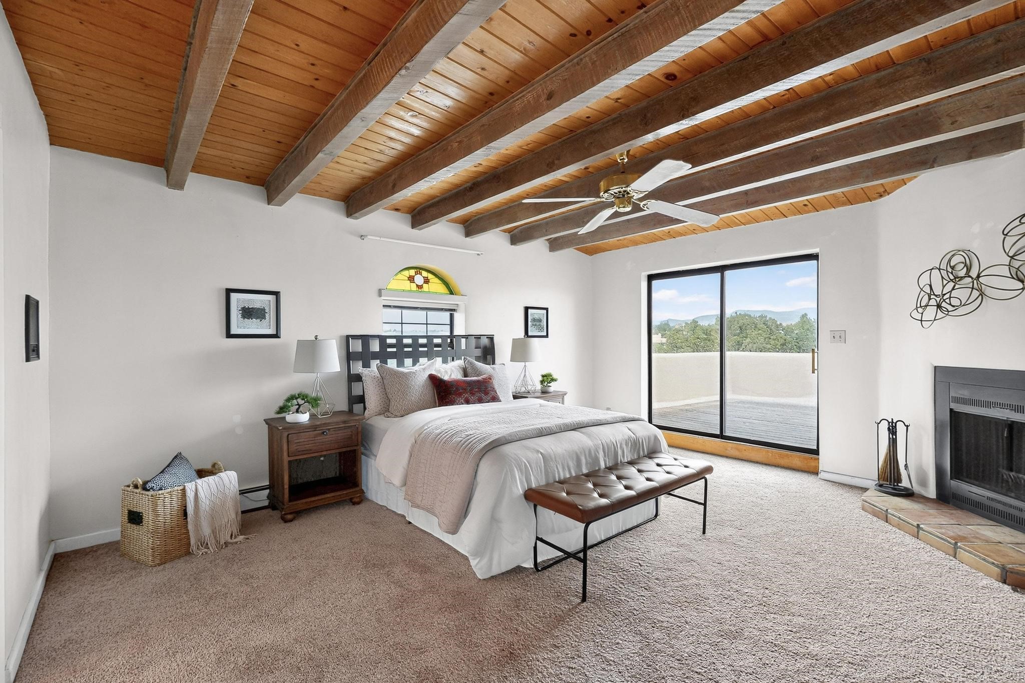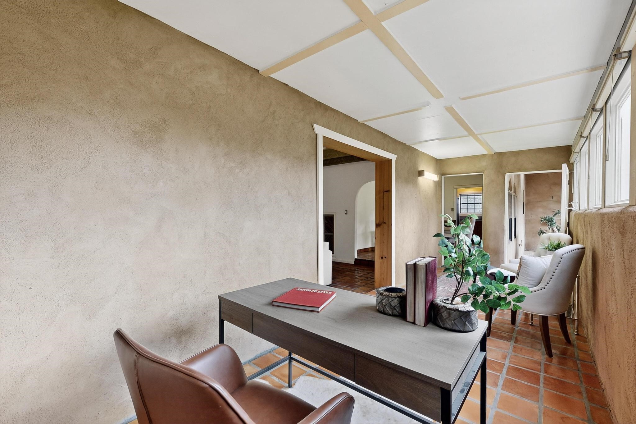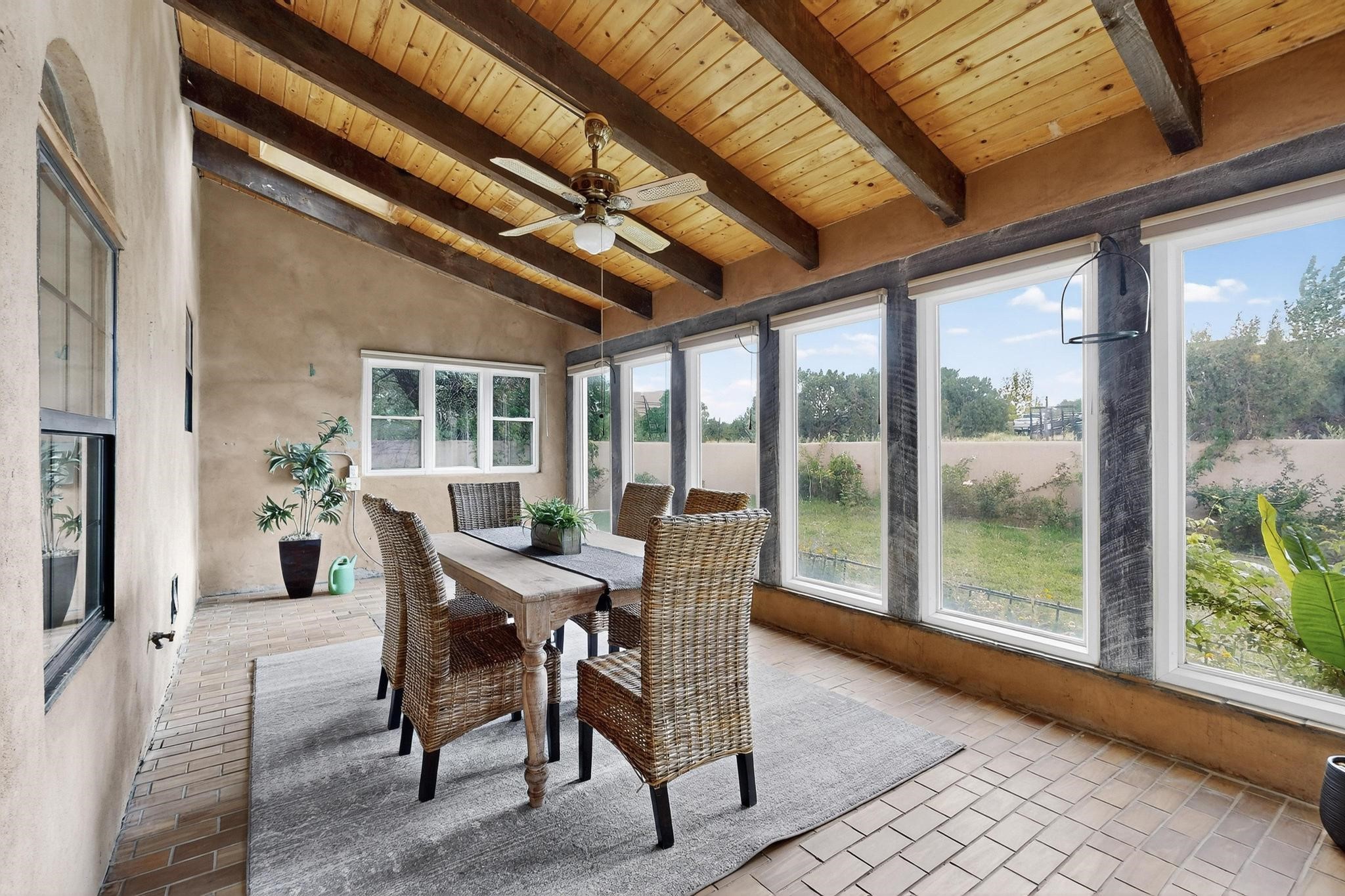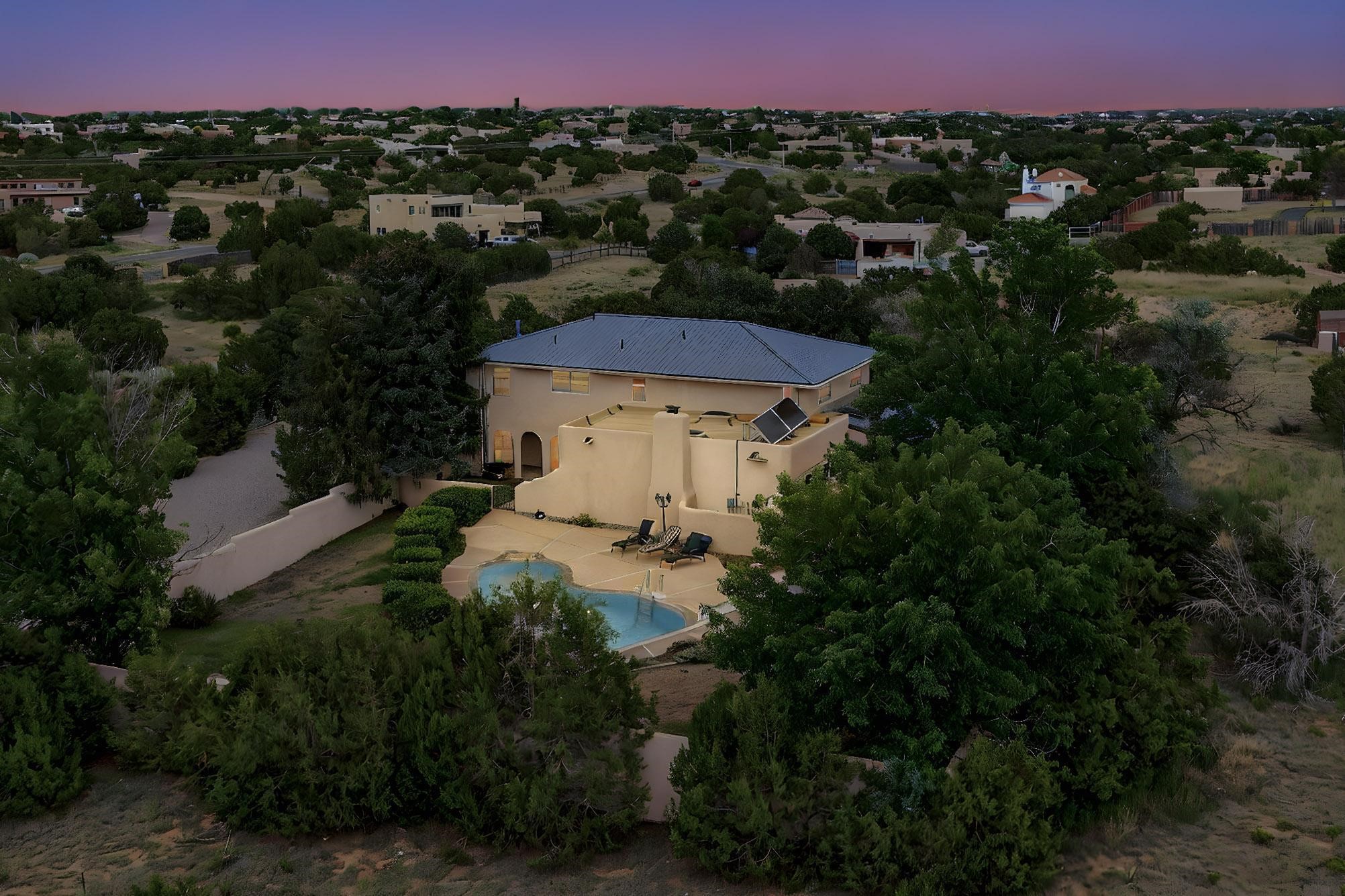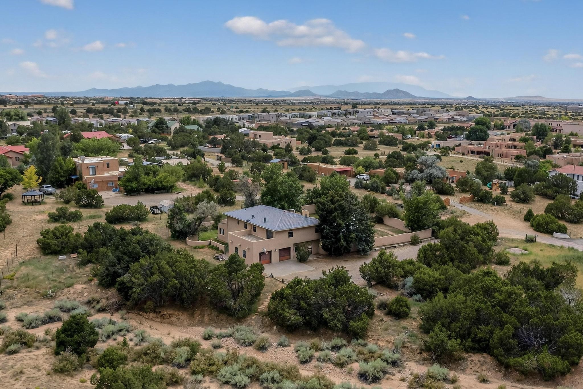 Did you know Santa Fe is one of the top destination spots in the country? Nestled on three private acres just minutes from the heart of Santa Fe, this 3,571 sq ft Southwest-style retreat captures the essence of New Mexico living -- artful, soulful, and serene. Brick floors, beamed ceilings, and wood-burning fireplaces invite you to linger longer, while the high desert landscape seeps in through the windows. Step outside to your private pool, where the brilliant blue sky stretches endlessly and the stillness invites a deep exhale. Wonder at the dark star-filled skies at night while soaking in your hot tub. Then, step back in to discover a tucked-away basement -- a moody, versatile space ready to transform into a wine cellar, cigar lounge, or creative retreat. This home blends rustic elegance with modern practicality thanks to owned solar panels, offering a smart and sustainable lifestyle. And when you're ready to explore, world-renowned galleries, fine dining, the Santa Fe Opera, ski slopes, and historic downtown await, all just minutes away. Whether you're seeking a full-time residence or a seasonal getaway, this is a place to live richly, rest deeply, and connect fully with the Santa Fe way of life. Call your real estate professional today!