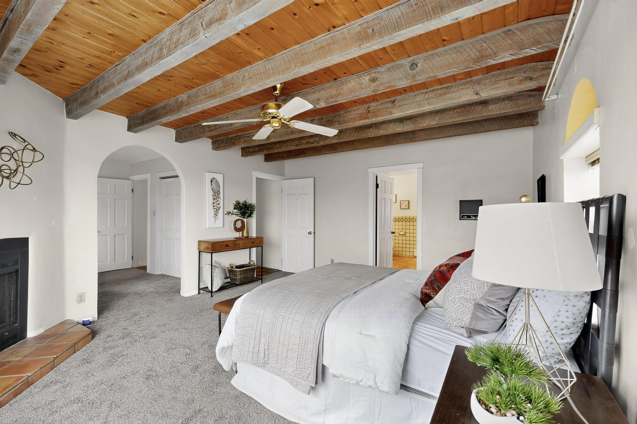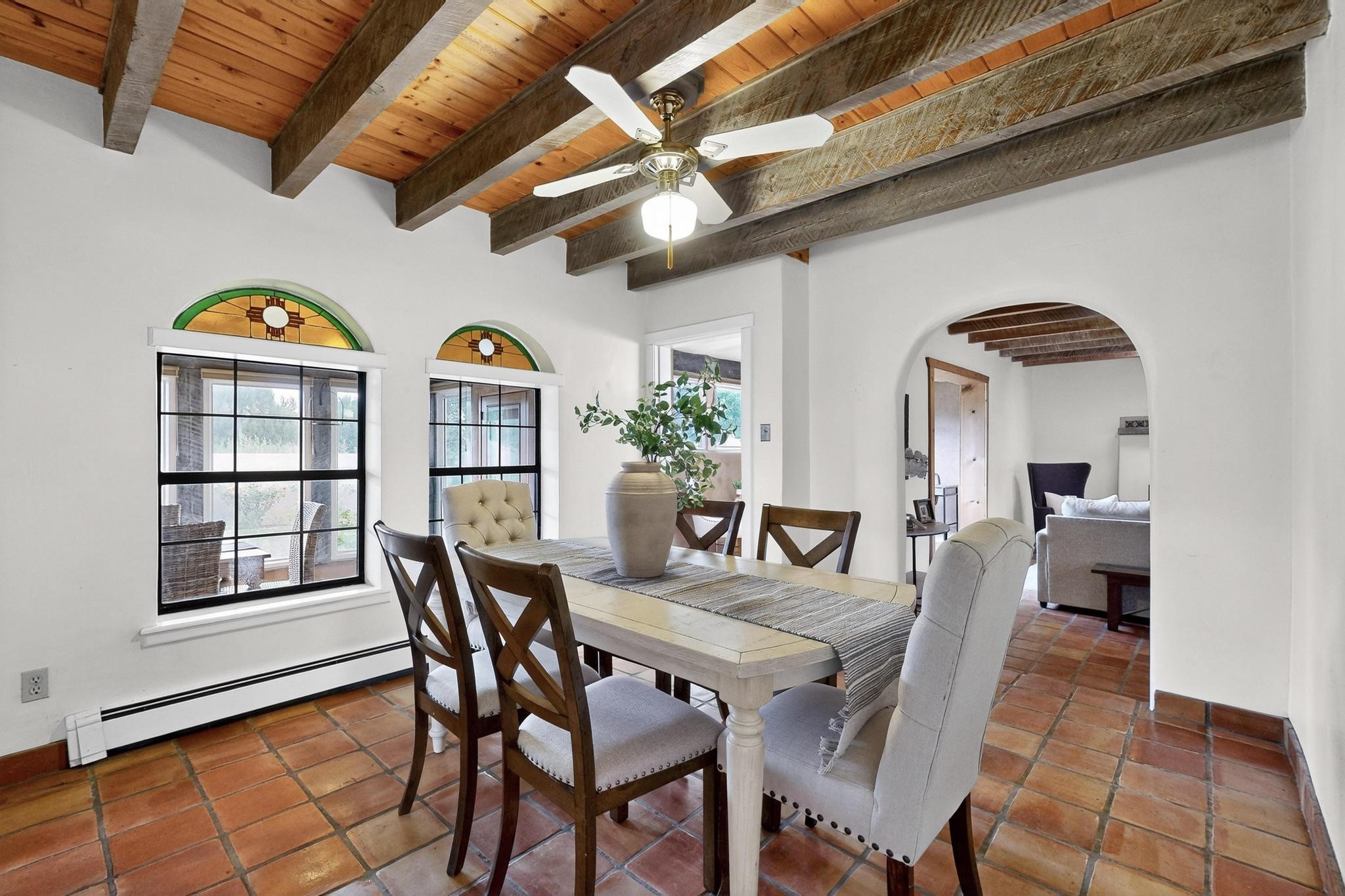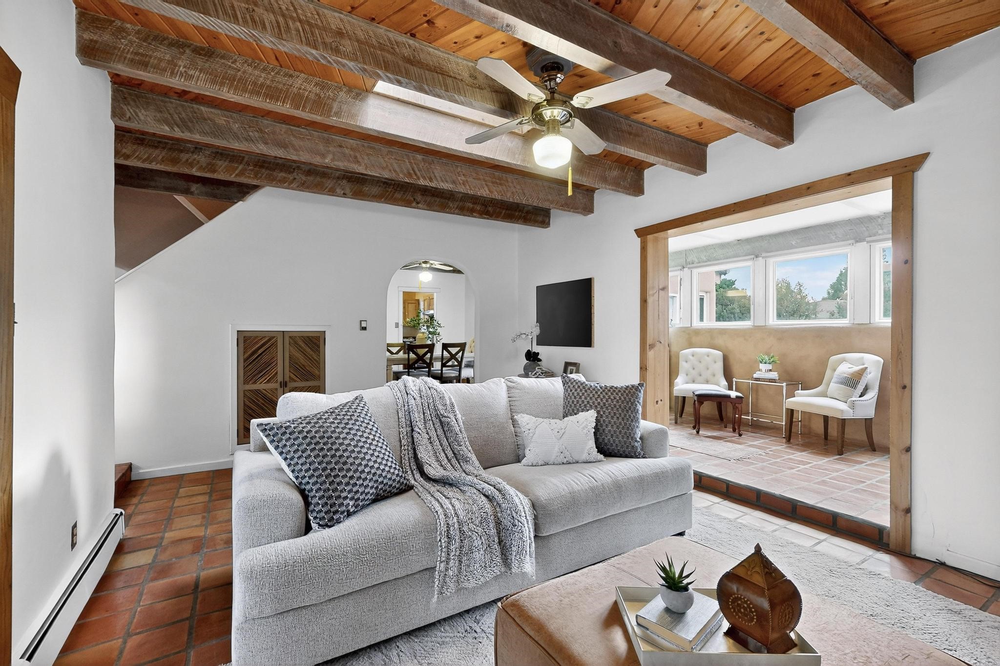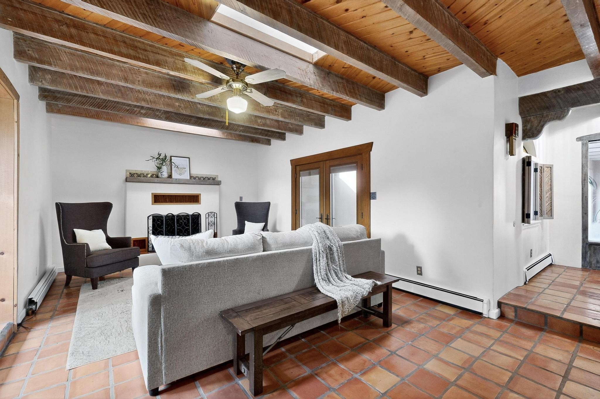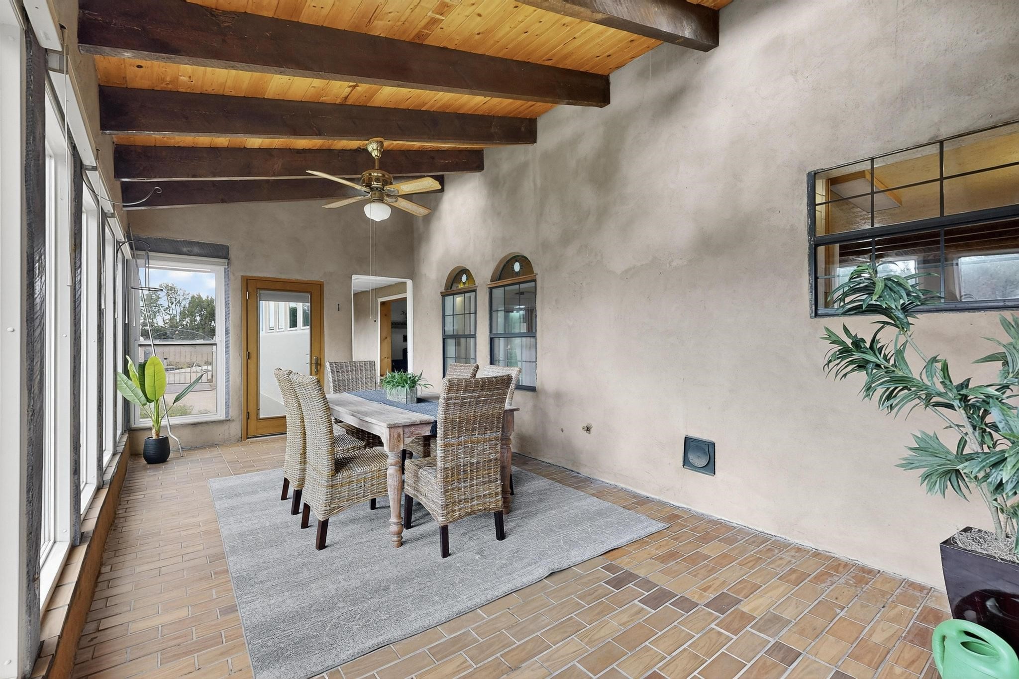 Did you know Santa Fe is one of the top destination spots in the country? Nestled on three private acres just minutes from the heart of Santa Fe, this 3,571 sq ft Southwest-style retreat captures the essence of New Mexico living -- artful, soulful, and serene. Brick floors, beamed ceilings, and wood-burning fireplaces invite you to linger longer, while the high desert landscape seeps in through the windows. Step outside to your private pool, where the brilliant blue sky stretches endlessly and the stillness invites a deep exhale. Wonder at the dark star-filled skies at night while soaking in your hot tub. Then, step back in to discover a tucked-away basement -- a moody, versatile space ready to transform into a wine cellar, cigar lounge, or creative retreat. This home blends rustic elegance with modern practicality thanks to owned solar panels, offering a smart and sustainable lifestyle. And when you're ready to explore, world-renowned galleries, fine dining, the Santa Fe Opera, ski slopes, and historic downtown await, all just minutes away. Whether you're seeking a full-time residence or a seasonal getaway, this is a place to live richly, rest deeply, and connect fully with the Santa Fe way of life. Call your real estate professional today!
