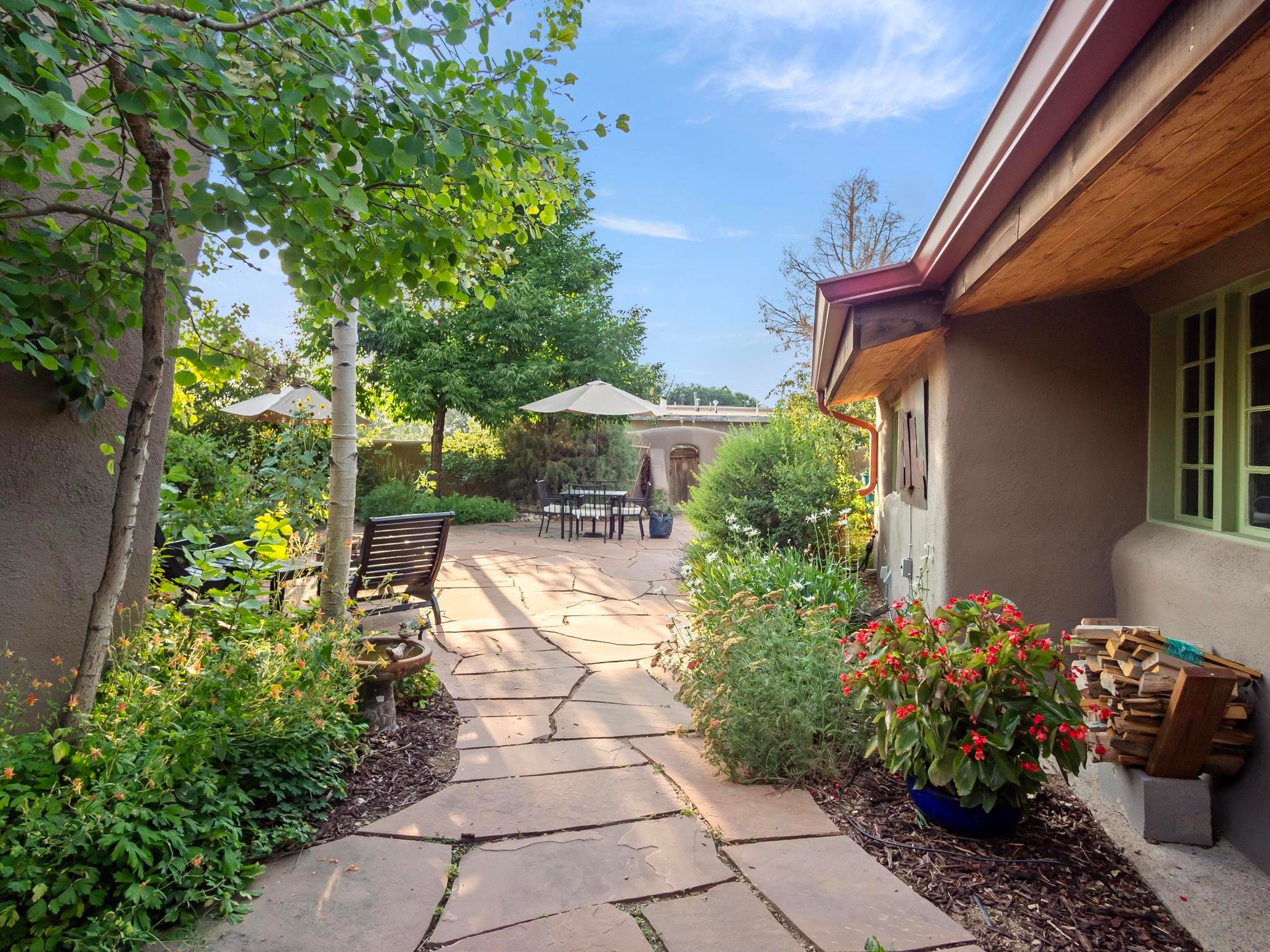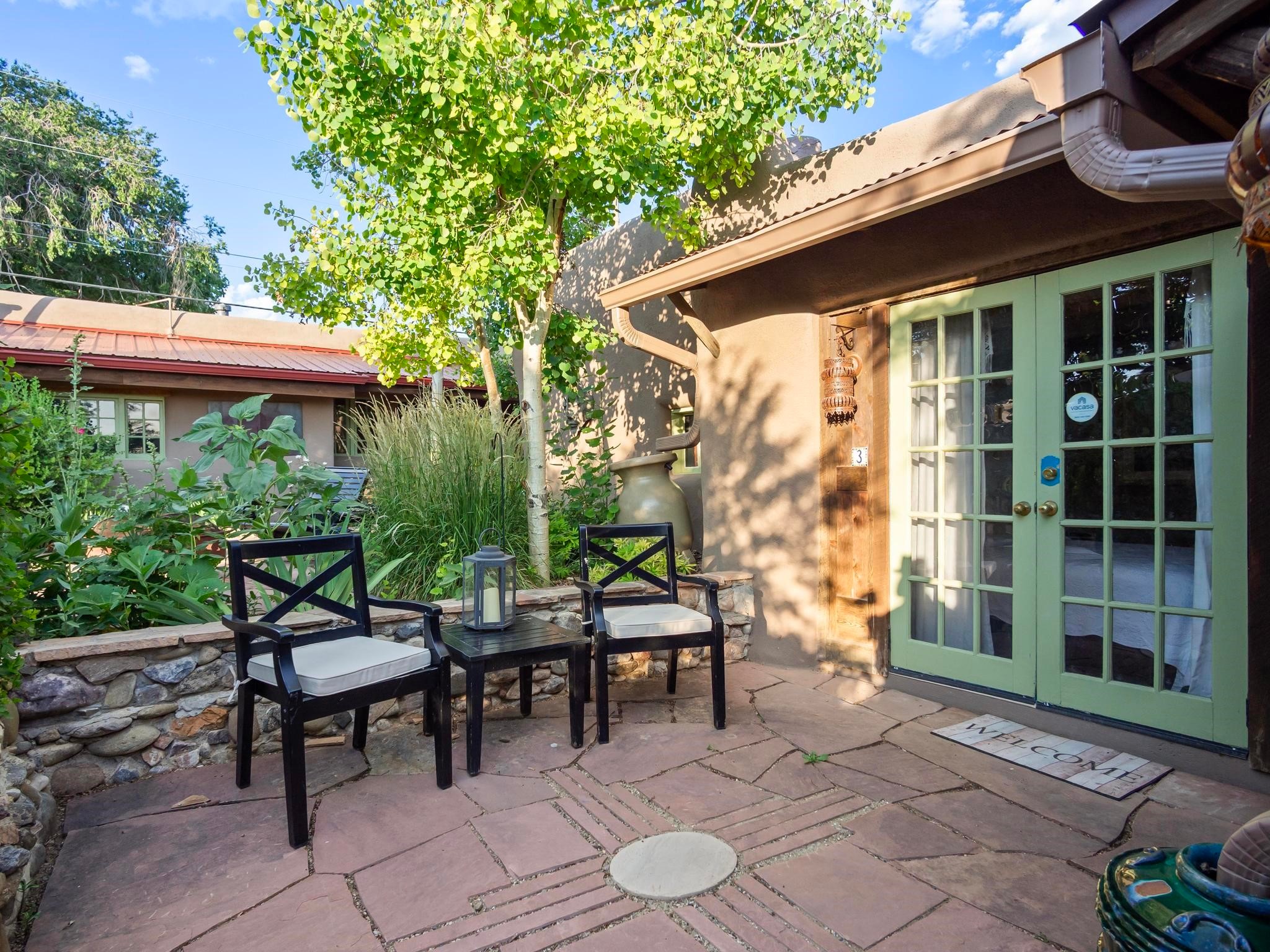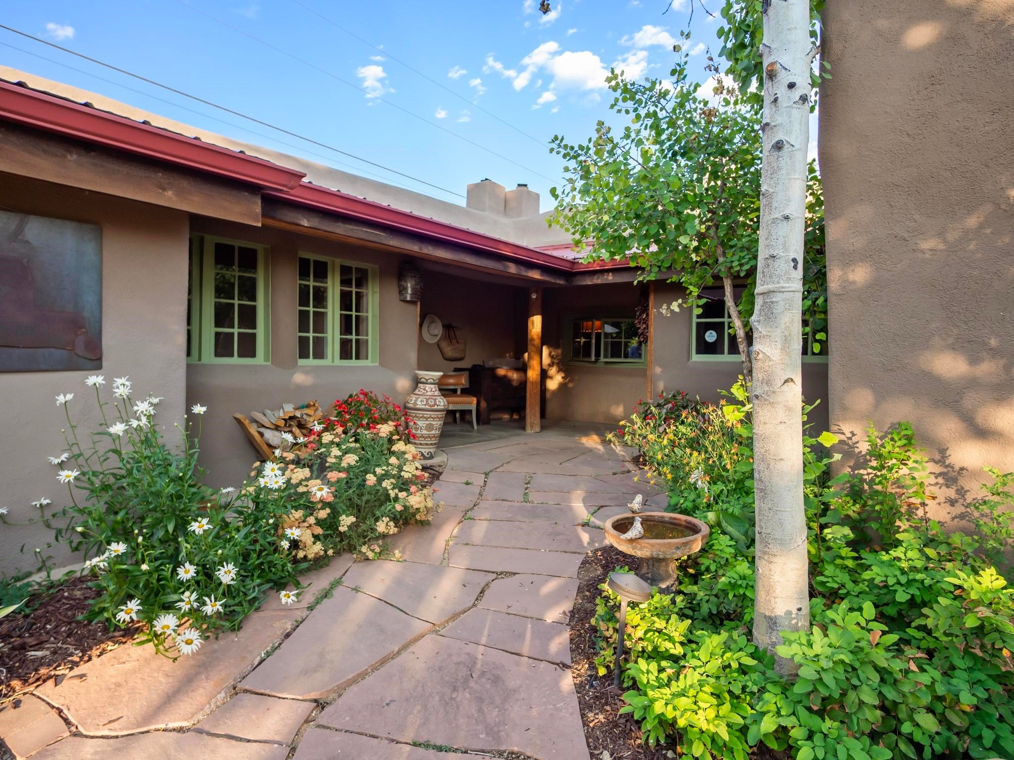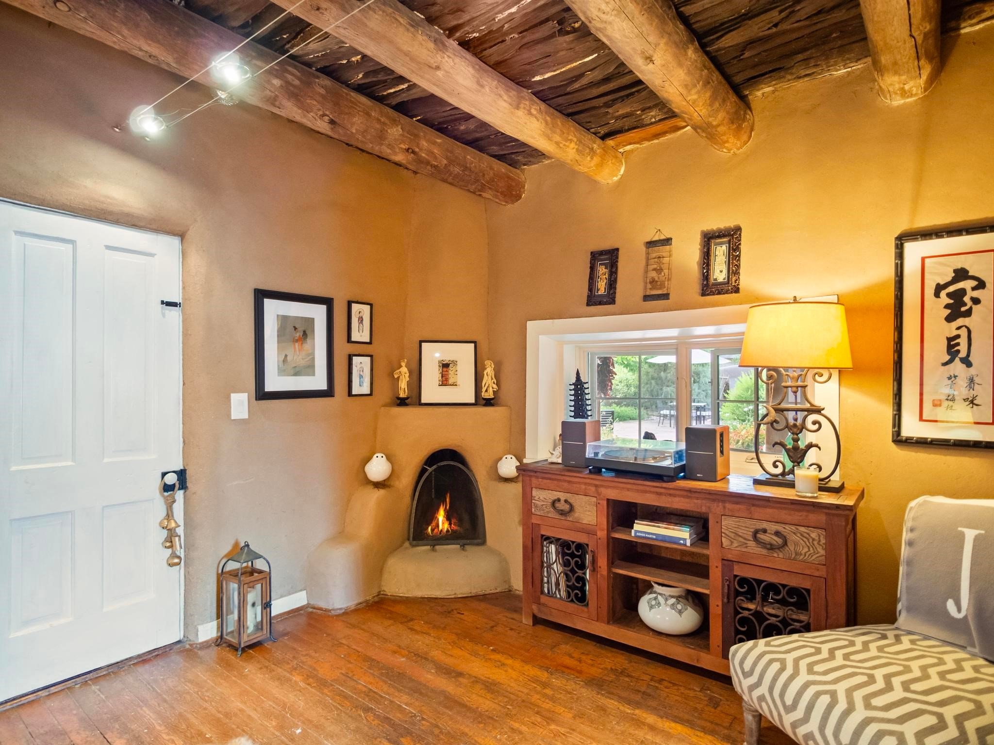 Wonderful historic Ranchos de Taos residence on 1.55 acres of land for in-town privacy. The primary home includes two attached guesthouses that can provide additional income or be used for expanded living space, a recently built studio could be converted into a separate apartment or used to pursue your artistic passions. The property is beautifully landscaped with multiple outdoor living spaces each enveloped by mature flowering flora. The home is what you would expect from a historic Taos dwelling, adobe block with plastered interior walls, New Mexican decor, 6 fireplaces, fine finishes, original hardwood floors, copper countertops and so much more. To top off this special property, there are acequia water rights top help keep the lawn and garden green and productive. The property is minutes from the Taos Plaza, restaurants, galleries and nightlife. Several iconic Taos landmarks are within walking distance and with a location on the south end of Taos there is the added benefit of being only an hour driving time to Santa Fe. You owe it to yourself to visit this amazing Taos retreat. Bring your toothbrush, this property is being sold furnished!