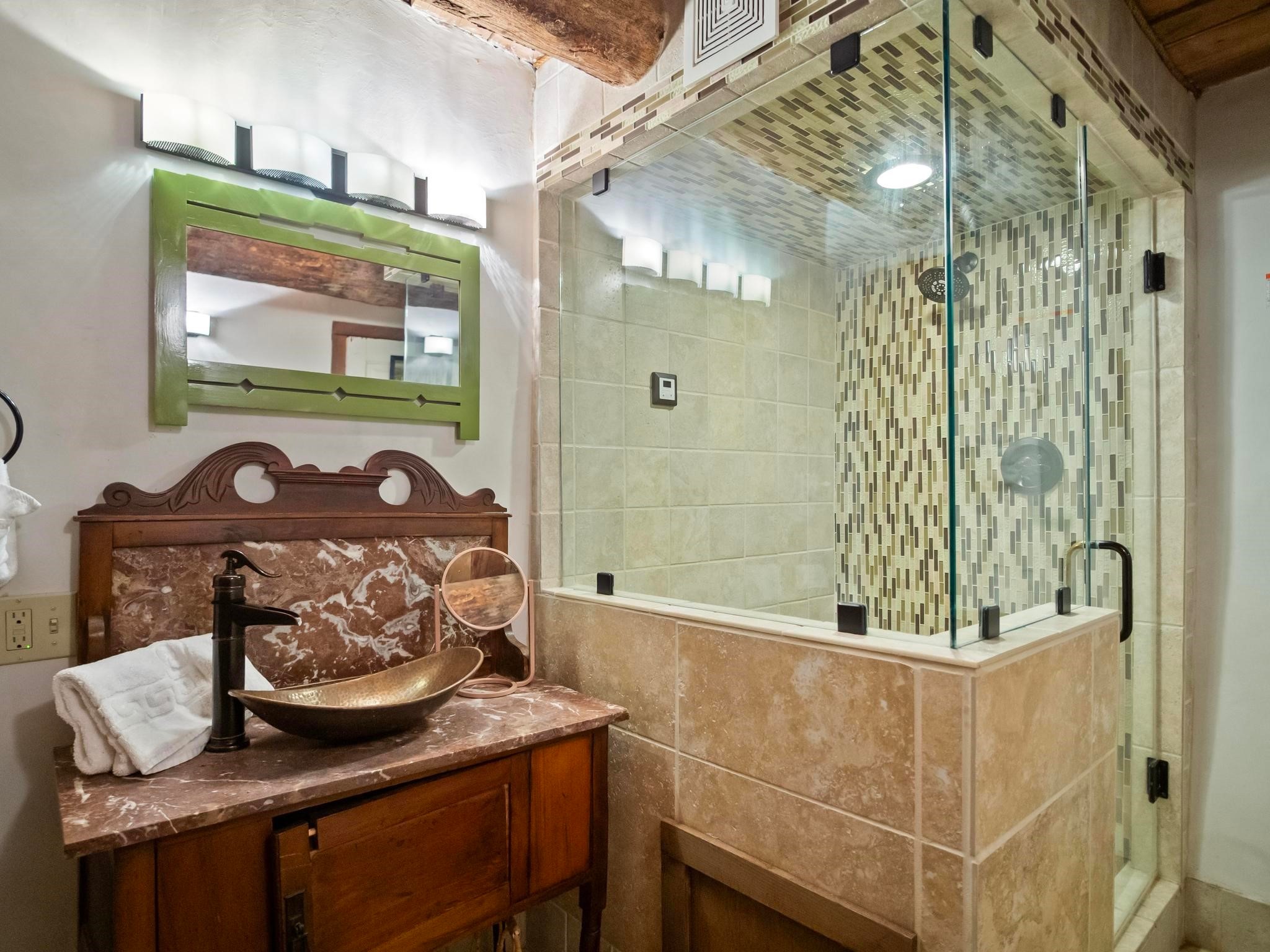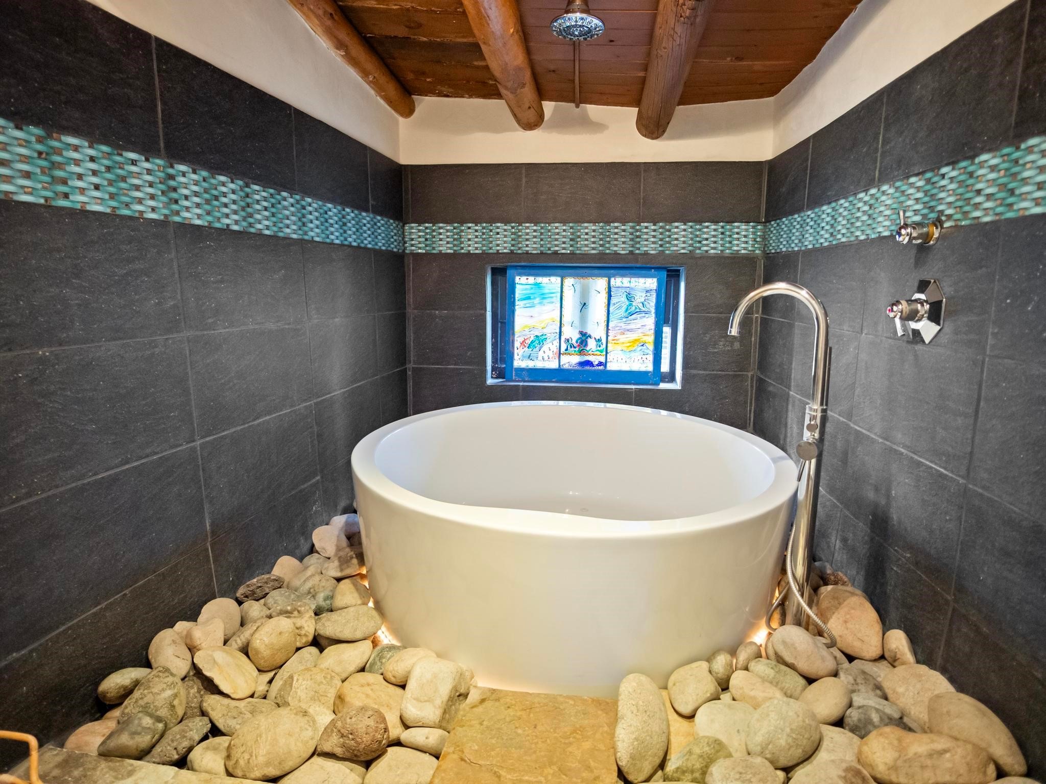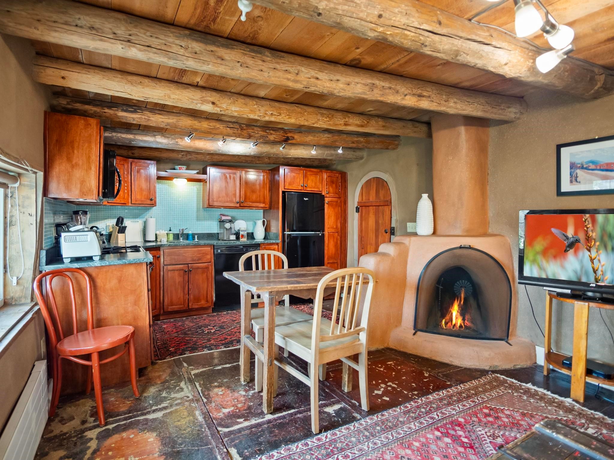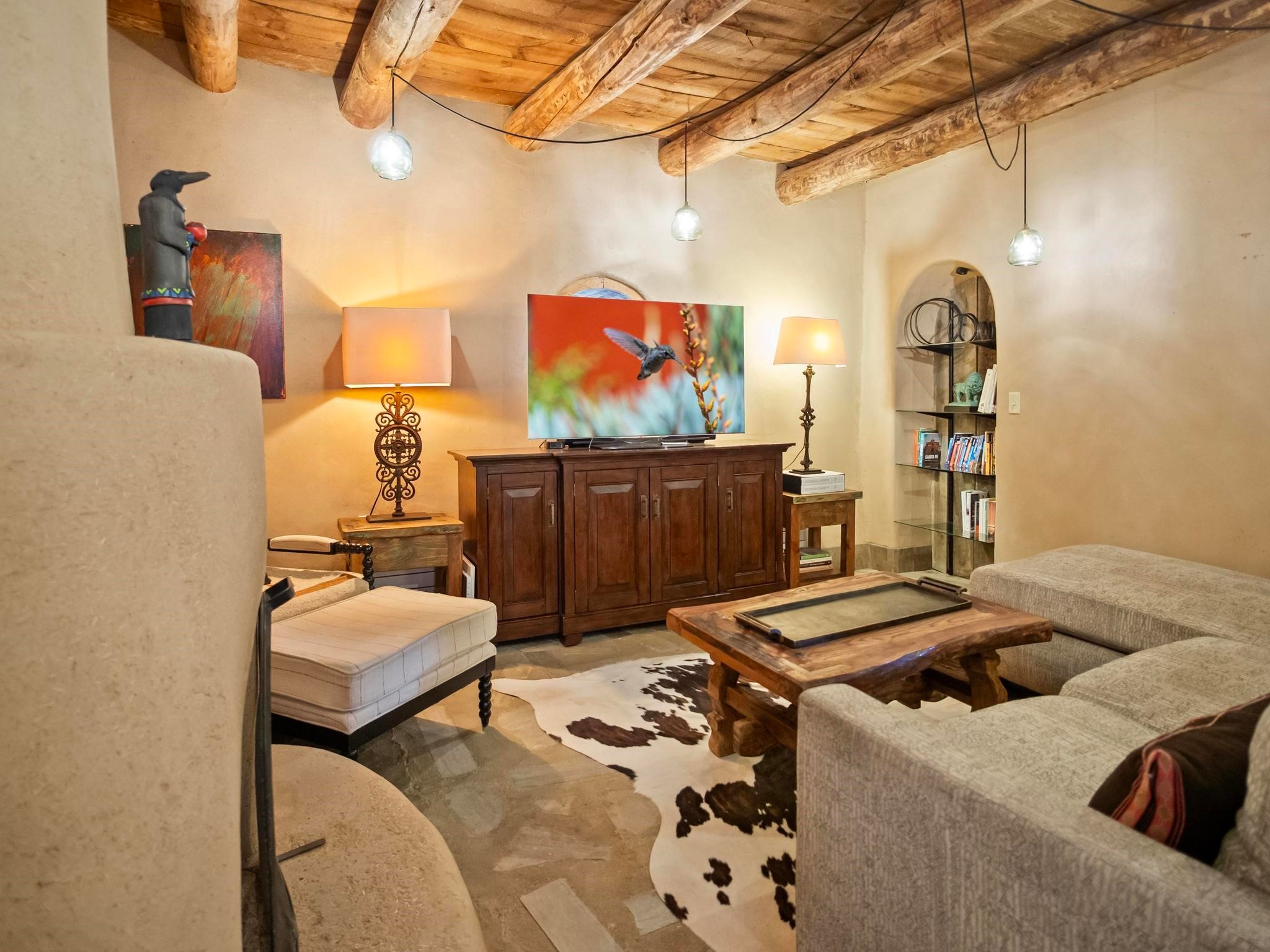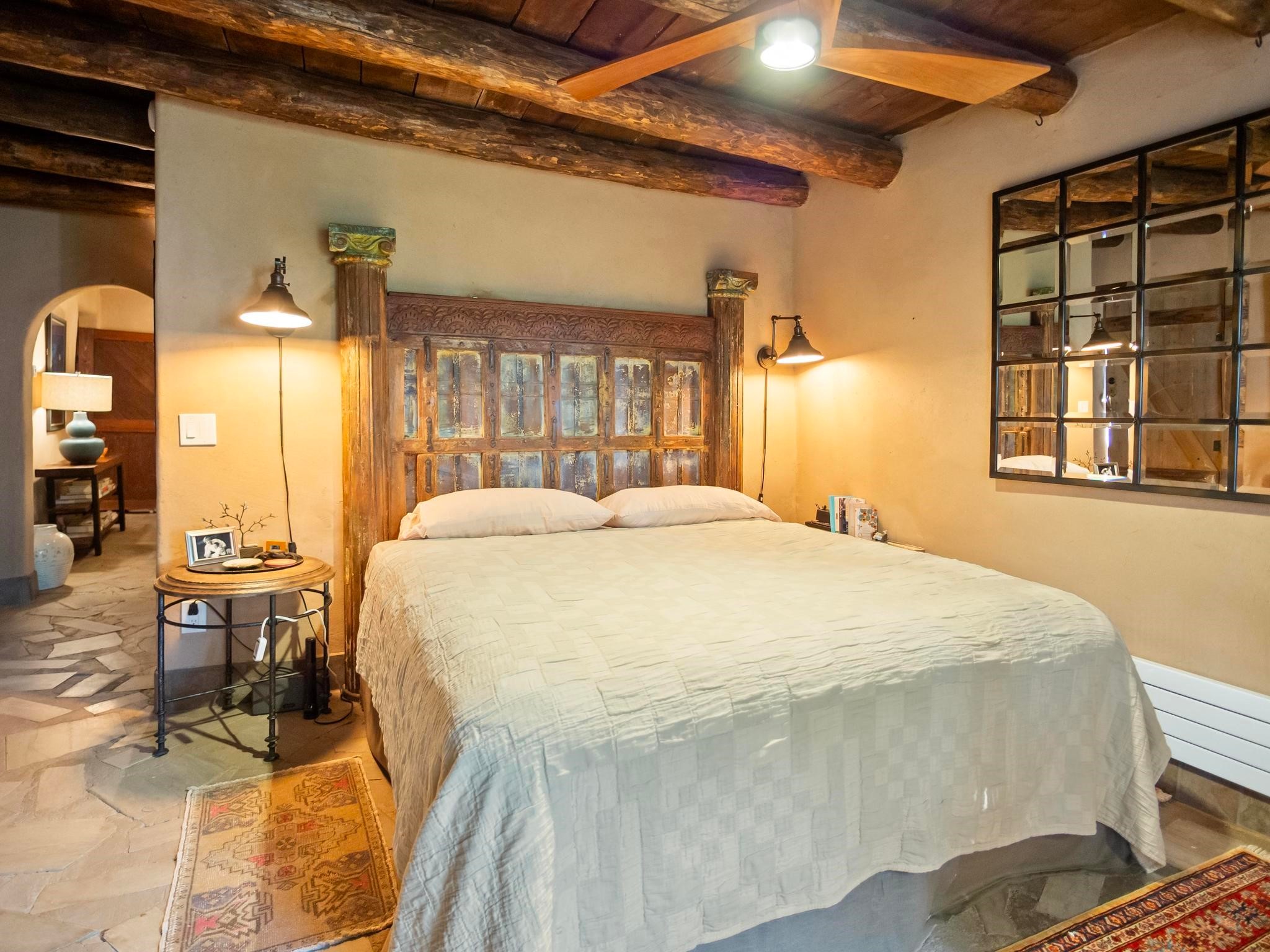 Wonderful historic Ranchos de Taos residence on 1.55 acres of land for in-town privacy. The primary home includes two attached guesthouses that can provide additional income or be used for expanded living space, a recently built studio could be converted into a separate apartment or used to pursue your artistic passions. The property is beautifully landscaped with multiple outdoor living spaces each enveloped by mature flowering flora. The home is what you would expect from a historic Taos dwelling, adobe block with plastered interior walls, New Mexican decor, 6 fireplaces, fine finishes, original hardwood floors, copper countertops and so much more. To top off this special property, there are acequia water rights top help keep the lawn and garden green and productive. The property is minutes from the Taos Plaza, restaurants, galleries and nightlife. Several iconic Taos landmarks are within walking distance and with a location on the south end of Taos there is the added benefit of being only an hour driving time to Santa Fe. You owe it to yourself to visit this amazing Taos retreat. Bring your toothbrush, this property is being sold furnished!