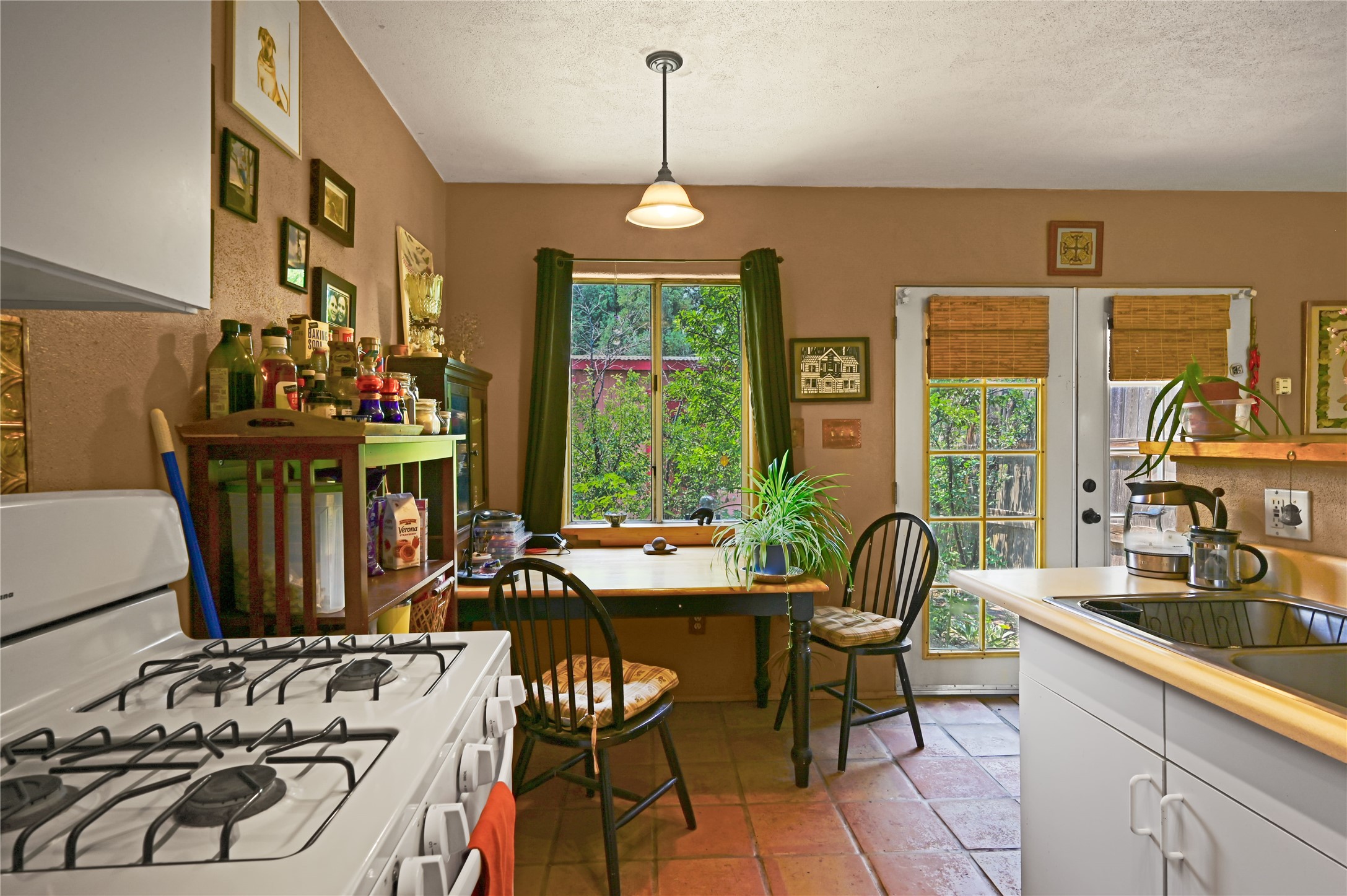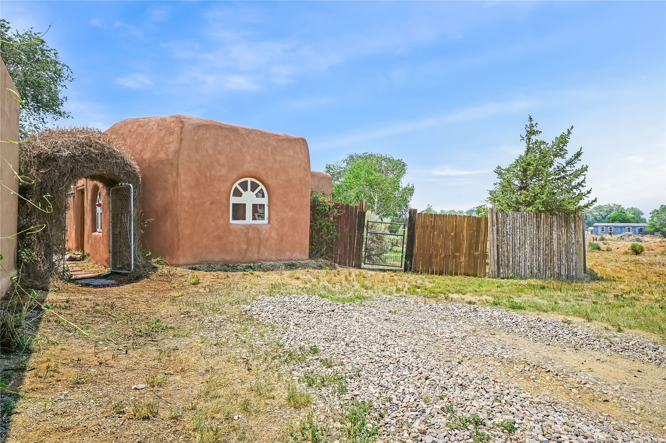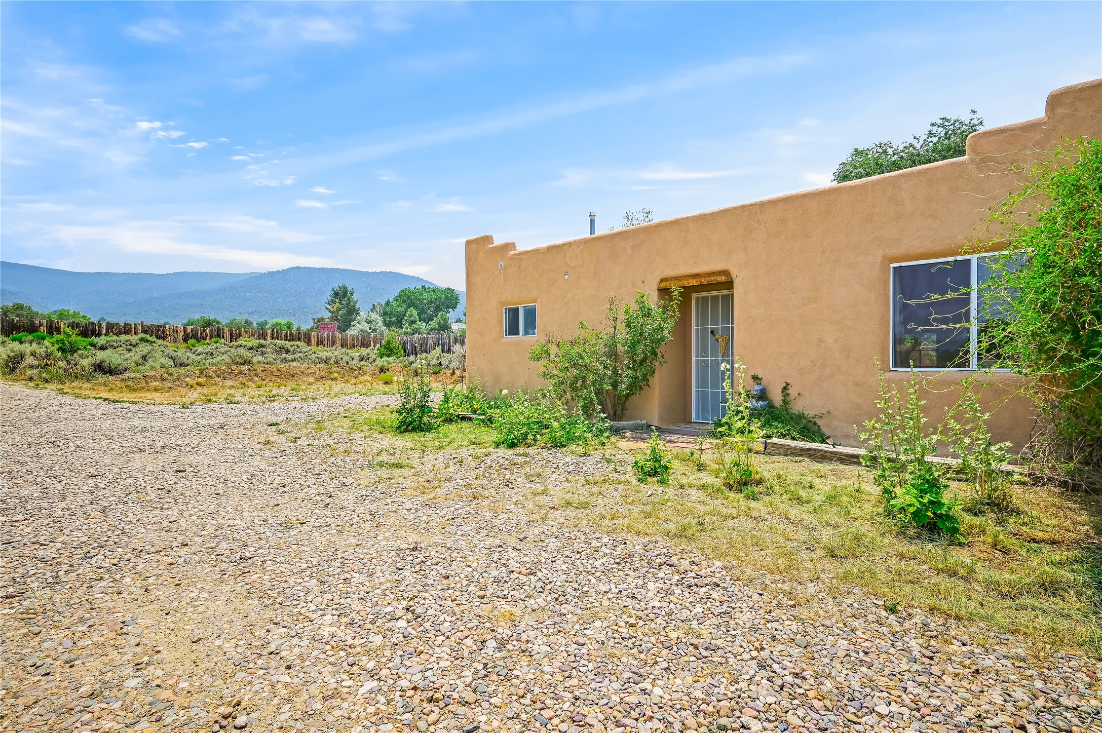 Discover a Unique Taos Living and Investment Opportunity! Nestled in Ranchos de Taos, just outside town limits, this exceptional property offers a serene lifestyle combined with a positive, steady rental income. You'll be living in a peaceful neighborhood, yet just 4 miles from Taos Plaza, a half-mile from Holy Cross Hospital, and moments from the Weimer Foothills trails. This unique offering includes four total units. The owner-occupied main home features an open living, dining, and kitchen area with clerestory windows and a loft. The cozy kiva fireplace, a two-story chimney before a sunken living area, was crafted by renowned artisan Carmen Velarde and inspired by the iconic Taos Inn. Enjoy abundant natural light and an upstairs loft/studio with a large second-story viewing deck offering breathtaking mountain views, including Taos Mountain, and stretching all the way to Colorado - perfect for watching spectacular sunsets and stargazing. The main home was beautifully remodeled in 2018 , with upgraded bathroom, kitchen flooring, and cabinets, and the outdoor area was enhanced in 2023. Beyond the main residence, you'll find an extended owner's suite that has been partitioned as a studio rental, a separate 1-bedroom, 1 bath-room guest house, and a truly special adobe studio/chapel. This studio, a replica of a church chancel, was originally built for artist Fr. William Hart McNichols by master adobe builder Trini Velarde. Constructed with traditional adobes, mud floors, and vigas painted with natural plant dyes, this studio remains cool in summer and remarkably warm in winter. This is more than just a home; it's an incredible investment opportunity to own a piece of Taos's rich artistic and building heritage with established rental income.
