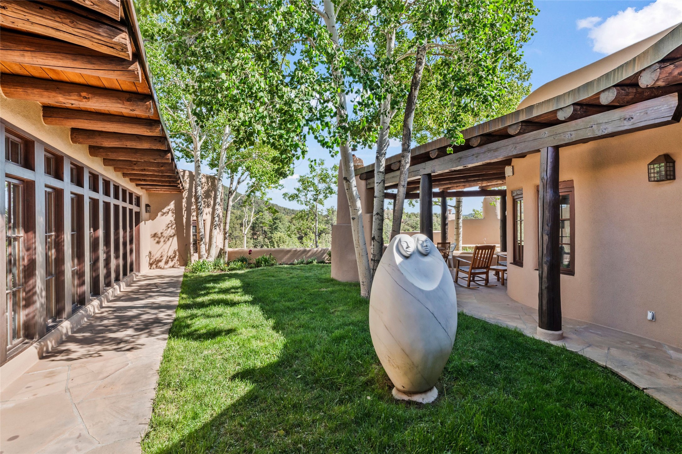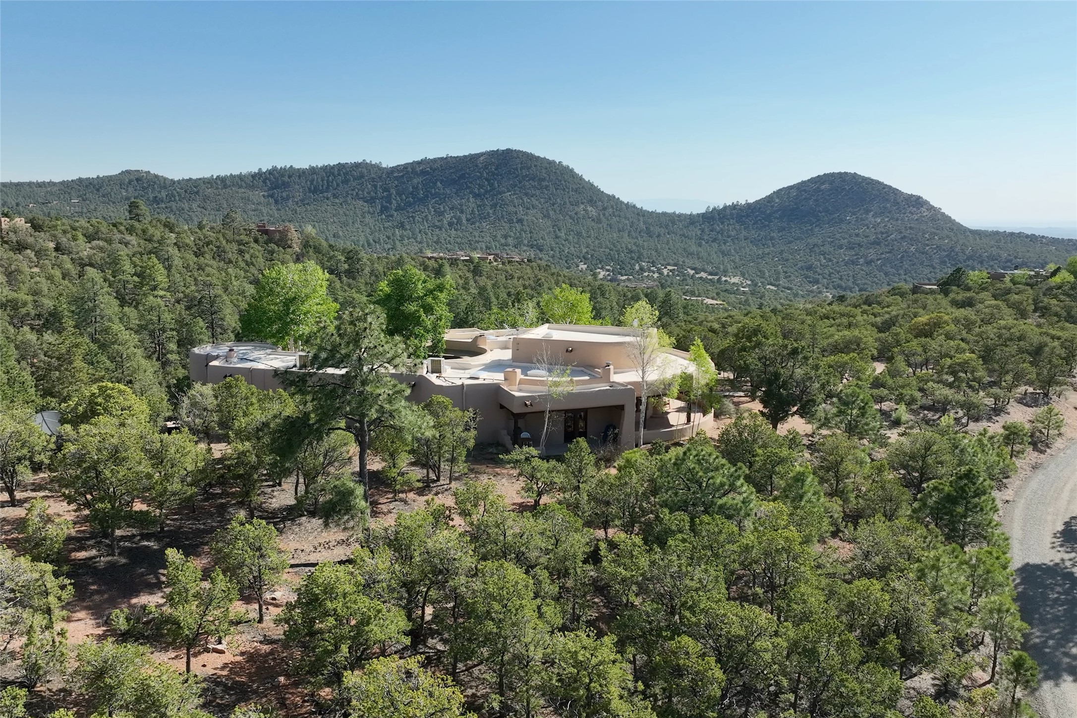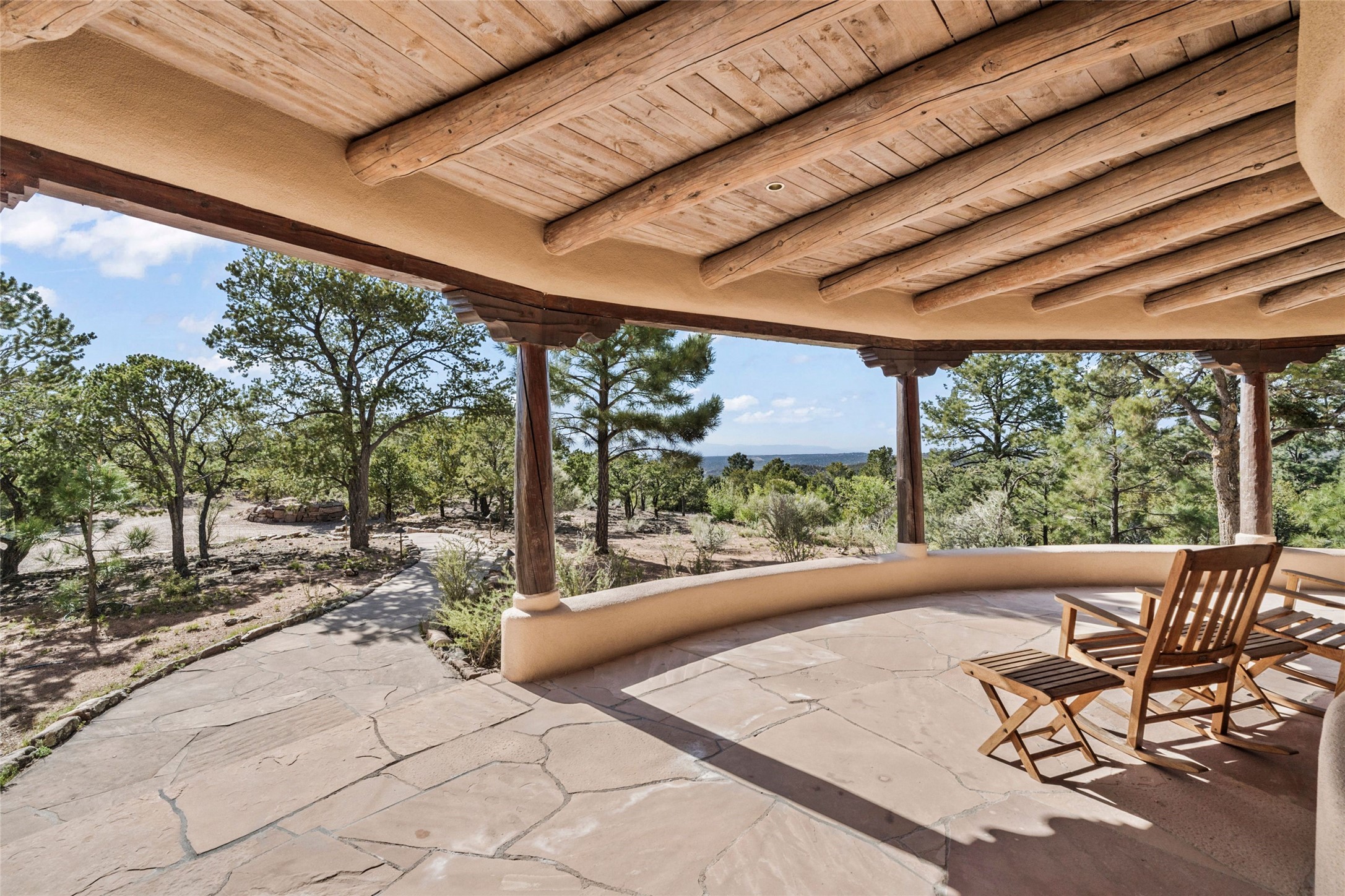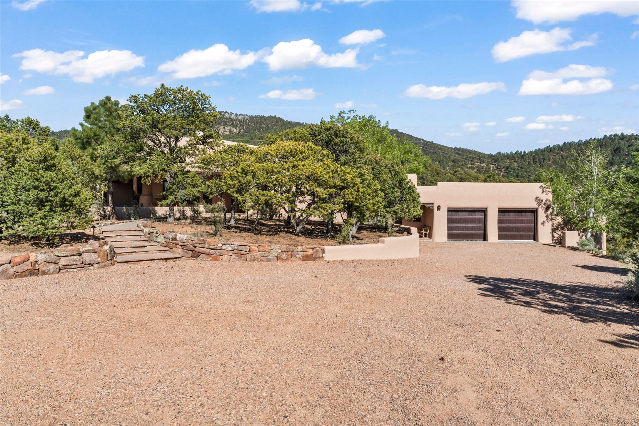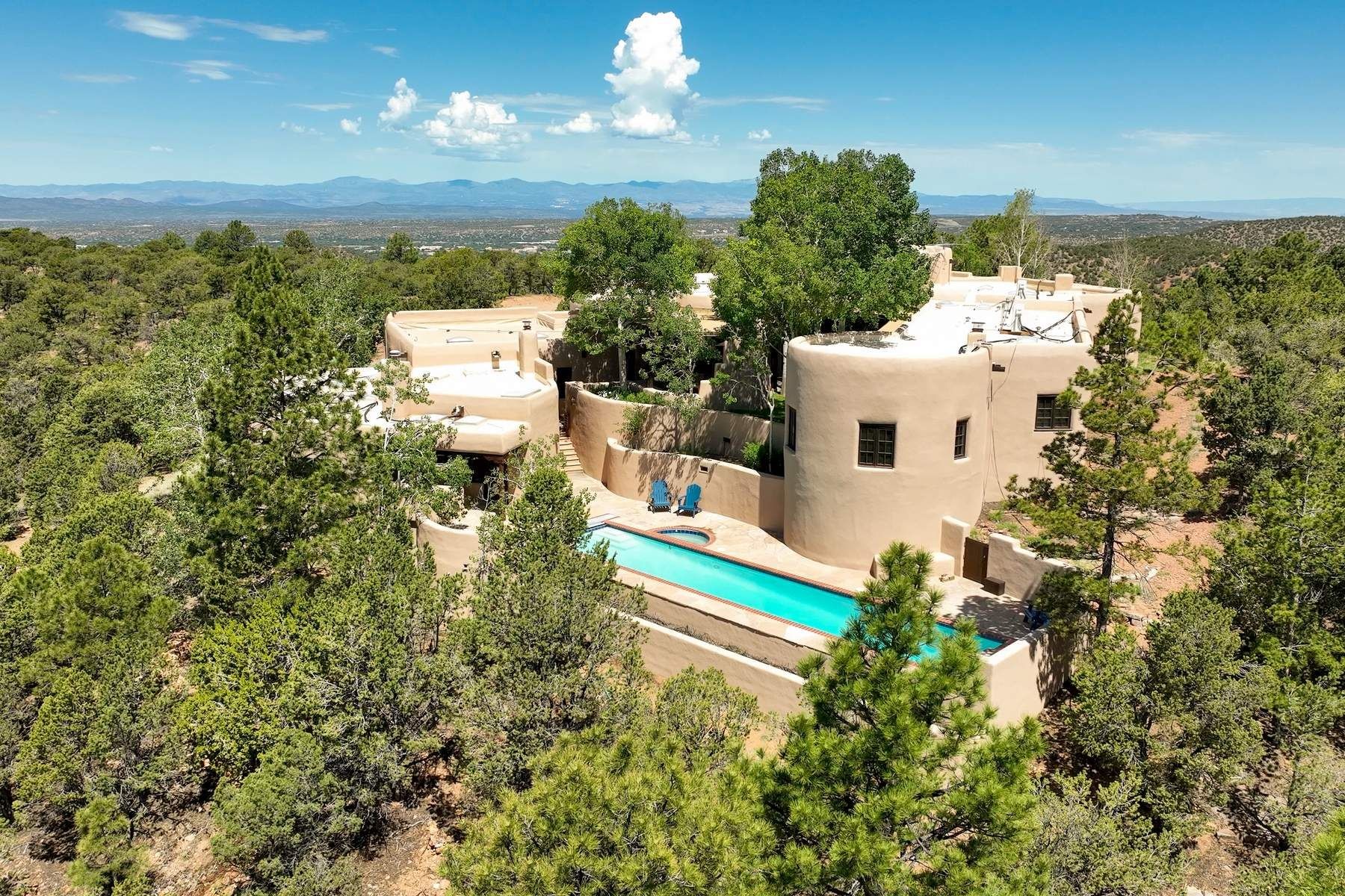 On the edge of the historic eastside, above St. John's College, within the gated and desirable Ponderosa Ridge community, 1863 Camino de Cruz Blanca is a rare and exceptional property. Carrying a Michael Bauer-designed and a Doug McDowell-built pedigree, this prize provides a substantial 3-bedroom main house, a 2-bedroom casita, a studio, and pool on over 4-acres bordering public lands. The main house sits high above town with views to the west towards Jemez Mountains and Los Alamos, and the backyard and pool look east up at Atalaya Mountain looming above. The 4,960 sq. ft. main house and 1,172 sq. ft. casita are rich in craftsmanship and integrity, built of double adobe with classic puebloan features - large vigas, carved wood doors, flagstone, antique pine and saltillo tile floors - while having the scale to accommodate modern living. In addition, the property has a separate 275 sq. ft. room that could serve as an exercise room or artist studio. The outdoor spaces are a secluded extension of the open space beyond and achieve the balance between maximizing views and privacy. The lot provides direct access to the Atalaya and St. John's hiking/biking trails. Still owned by the original owner, the property exudes pride of ownership. Recent improvements, completed in 2024 and 2025, include a new TPO roof, newly wrapped exterior stucco, and new heat pump minisplit heating and cooling. Two adjacent, separately deeded, buildable lots are also available for purchase separately, increasing the offering to 13 total acres. 1863 Camino de Cruz Blanca is an incredible property of great substance and character, set in a "goldilocks" location that perfectly strikes close proximity to downtown with direct connectivity to our unbounded natural setting.