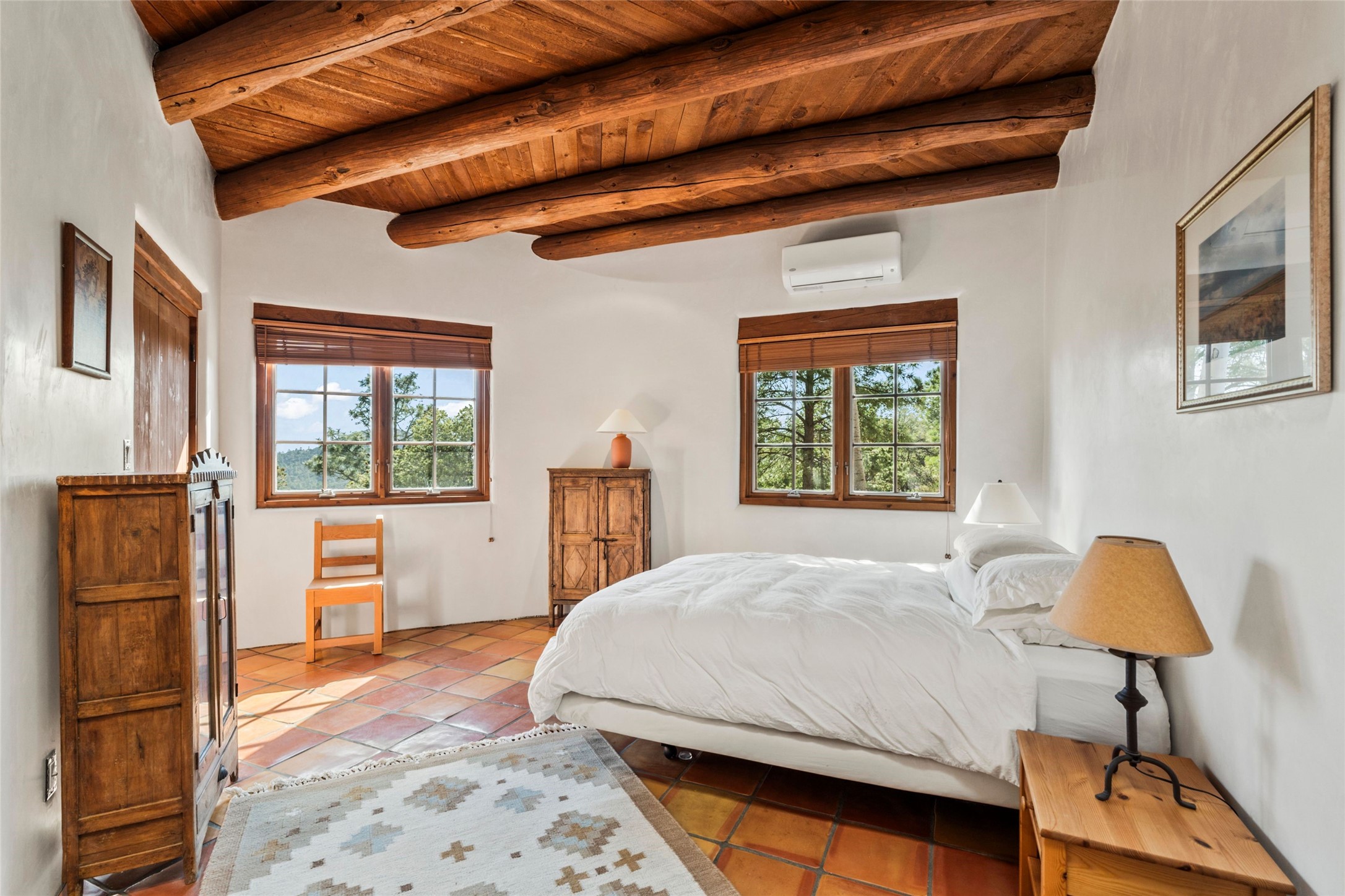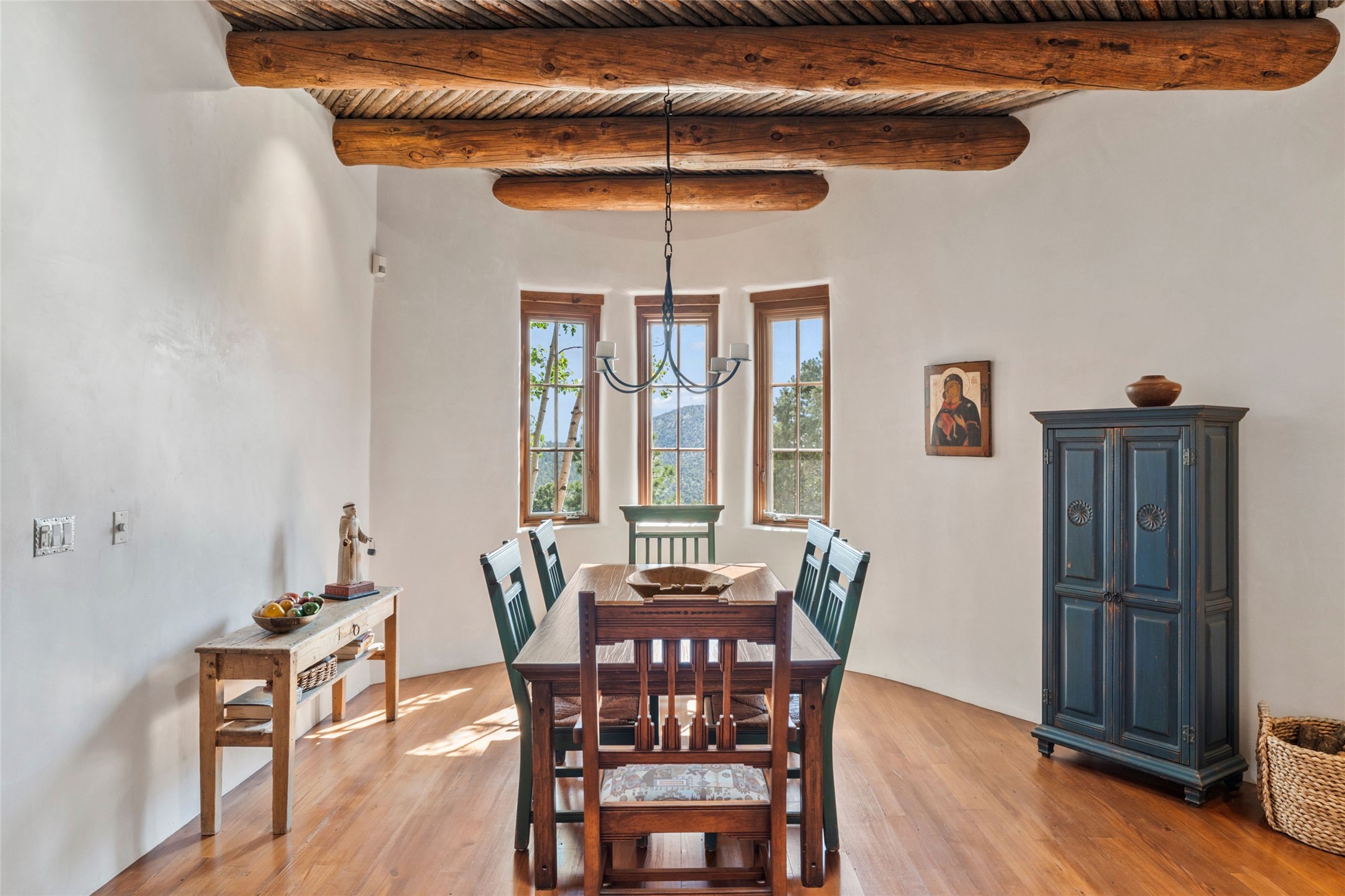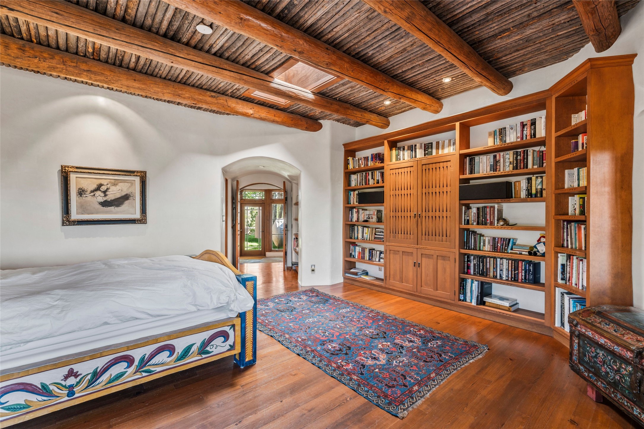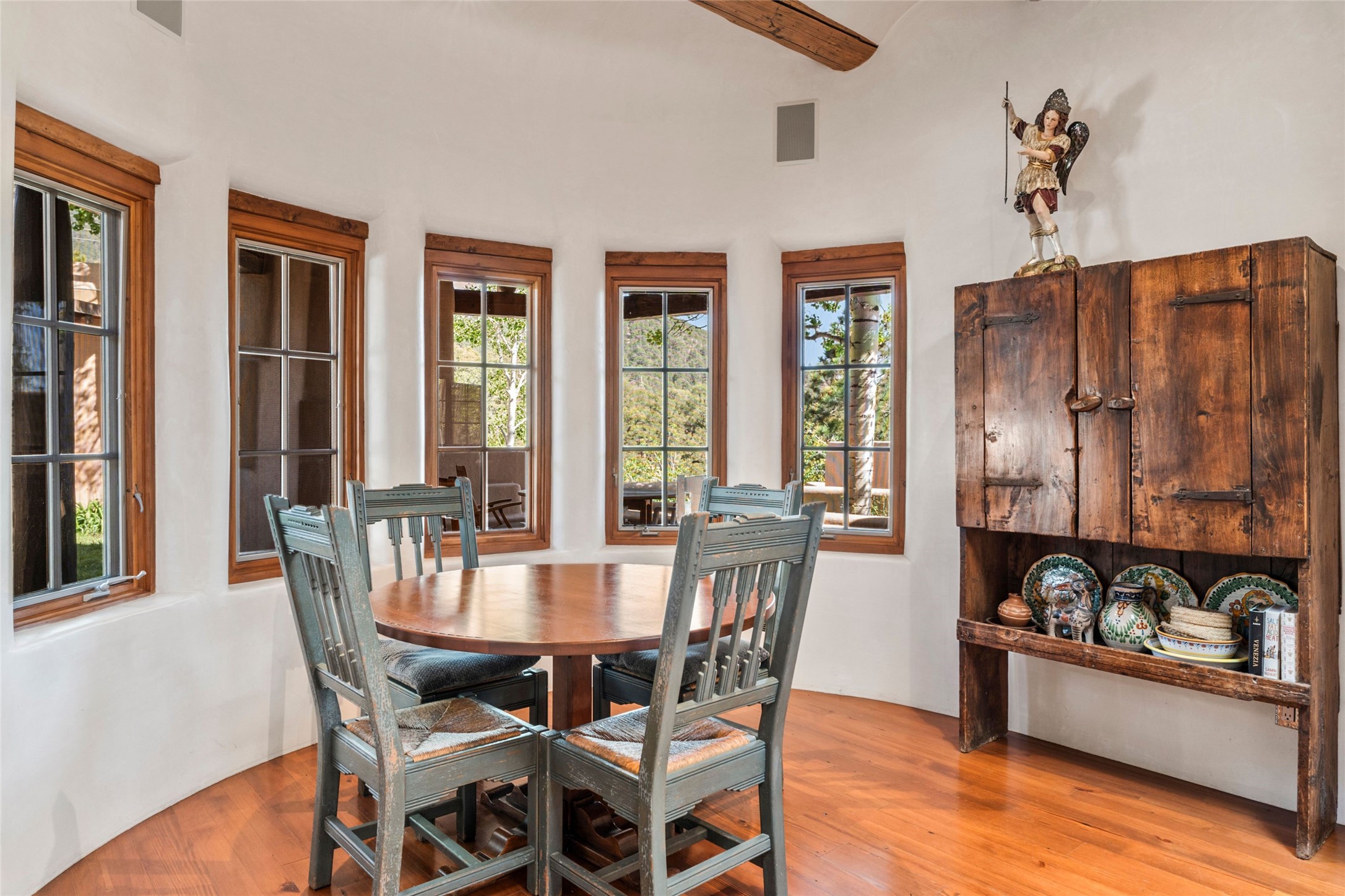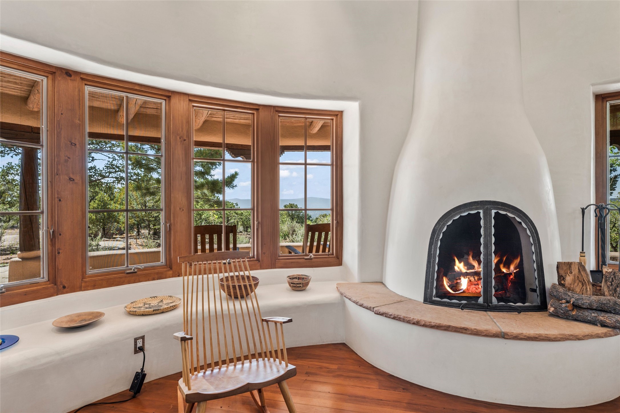 On the edge of the historic eastside, above St. John's College, within the gated and desirable Ponderosa Ridge community, 1863 Camino de Cruz Blanca is a rare and exceptional property. Carrying a Michael Bauer-designed and a Doug McDowell-built pedigree, this prize provides a substantial 3-bedroom main house, a 2-bedroom casita, a studio, and pool on over 4-acres bordering public lands. The main house sits high above town with views to the west towards Jemez Mountains and Los Alamos, and the backyard and pool look east up at Atalaya Mountain looming above. The 4,960 sq. ft. main house and 1,172 sq. ft. casita are rich in craftsmanship and integrity, built of double adobe with classic puebloan features - large vigas, carved wood doors, flagstone, antique pine and saltillo tile floors - while having the scale to accommodate modern living. In addition, the property has a separate 275 sq. ft. room that could serve as an exercise room or artist studio. The outdoor spaces are a secluded extension of the open space beyond and achieve the balance between maximizing views and privacy. The lot provides direct access to the Atalaya and St. John's hiking/biking trails. Still owned by the original owner, the property exudes pride of ownership. Recent improvements, completed in 2024 and 2025, include a new TPO roof, newly wrapped exterior stucco, and new heat pump minisplit heating and cooling. Two adjacent, separately deeded, buildable lots are also available for purchase separately, increasing the offering to 13 total acres. 1863 Camino de Cruz Blanca is an incredible property of great substance and character, set in a "goldilocks" location that perfectly strikes close proximity to downtown with direct connectivity to our unbounded natural setting.
