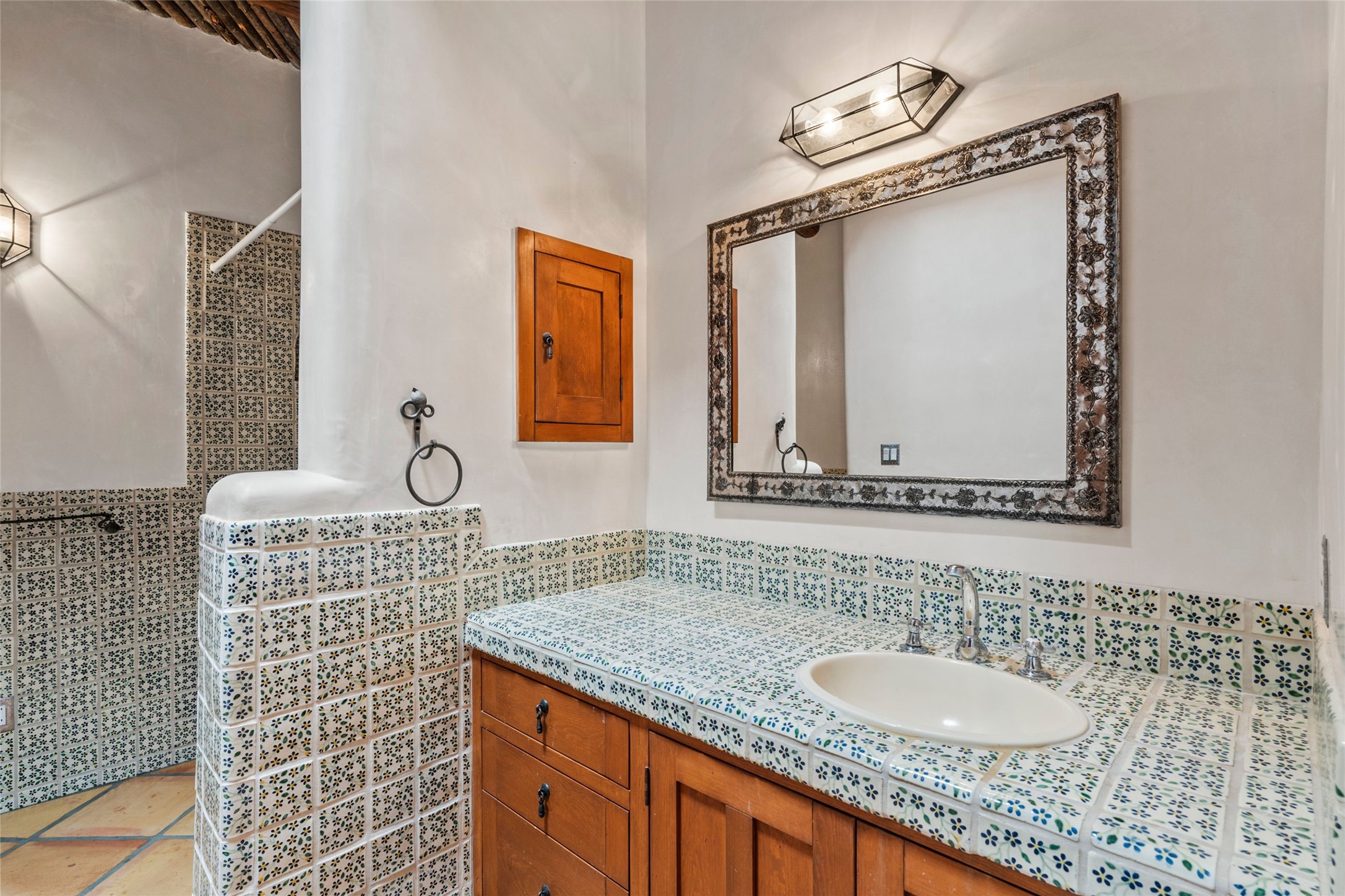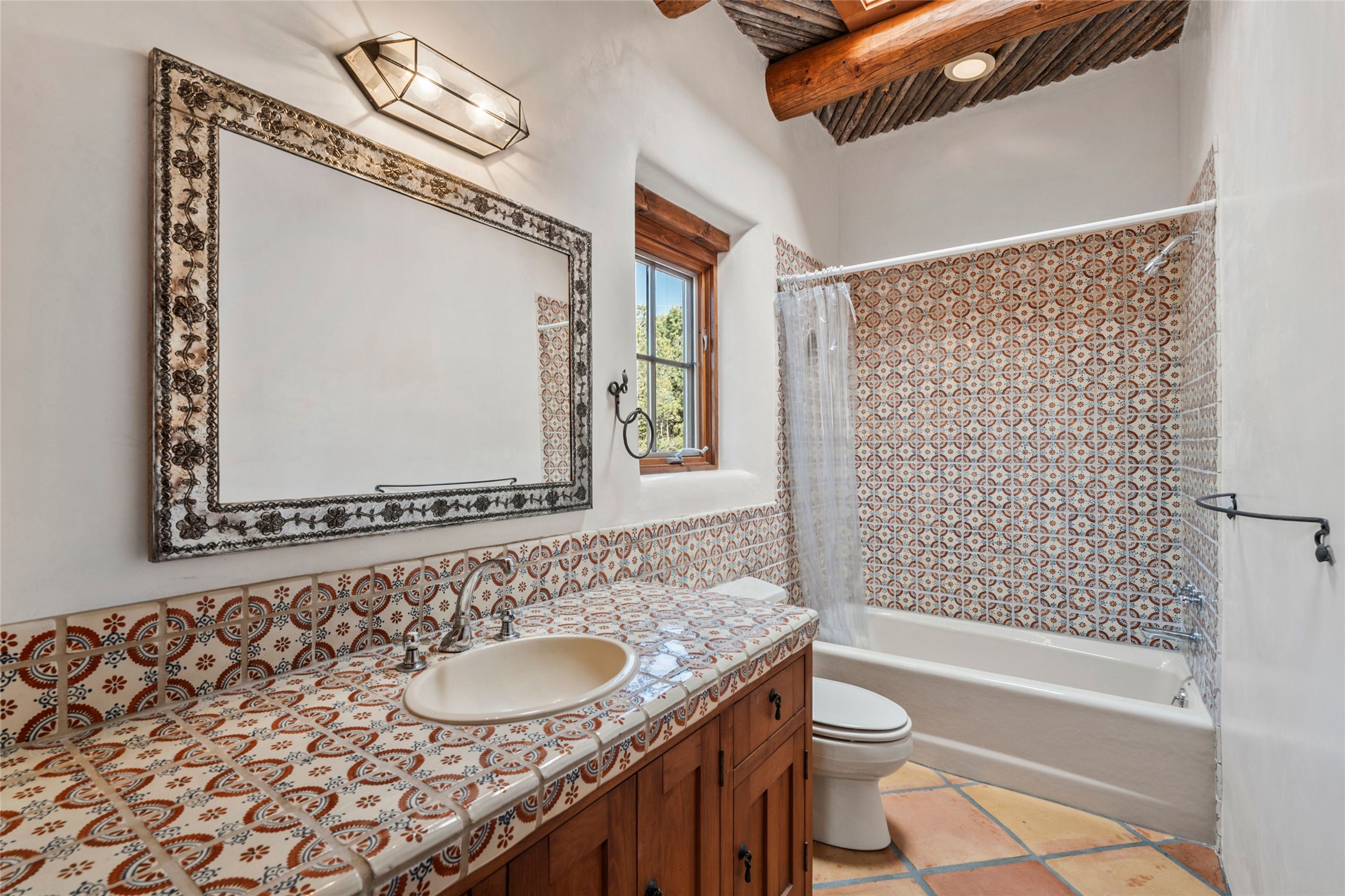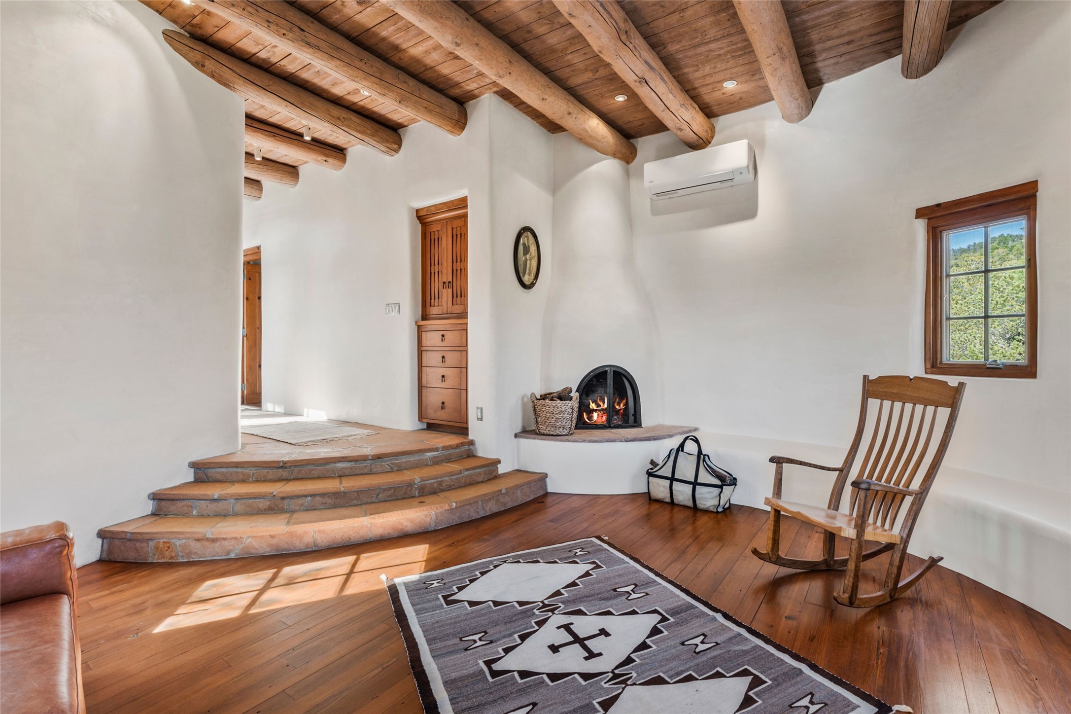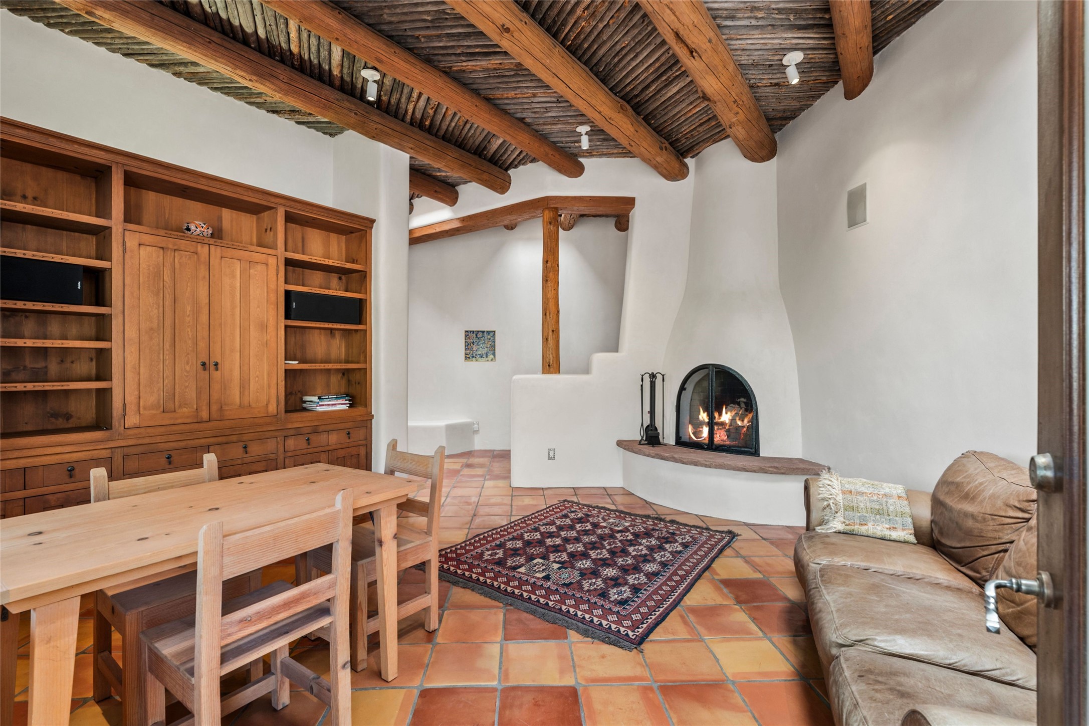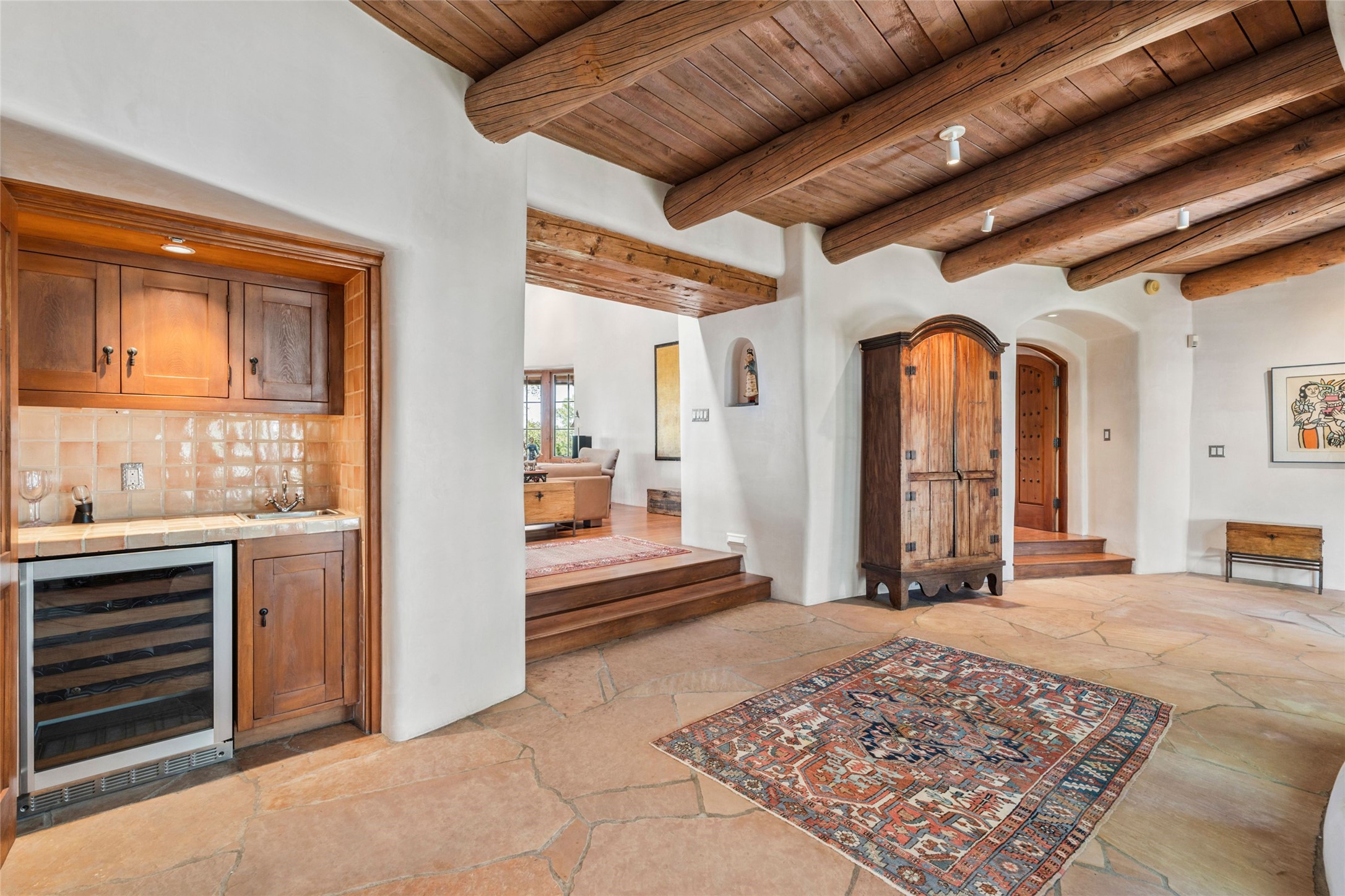 On the edge of the historic eastside, above St. John's College, within the gated and desirable Ponderosa Ridge community, 1863 Camino de Cruz Blanca is a rare and exceptional property. Carrying a Michael Bauer-designed and a Doug McDowell-built pedigree, this prize provides a substantial 3-bedroom main house, a 2-bedroom casita, a studio, and pool on over 4-acres bordering public lands. The main house sits high above town with views to the west towards Jemez Mountains and Los Alamos, and the backyard and pool look east up at Atalaya Mountain looming above. The 4,960 sq. ft. main house and 1,172 sq. ft. casita are rich in craftsmanship and integrity, built of double adobe with classic puebloan features - large vigas, carved wood doors, flagstone, antique pine and saltillo tile floors - while having the scale to accommodate modern living. In addition, the property has a separate 275 sq. ft. room that could serve as an exercise room or artist studio. The outdoor spaces are a secluded extension of the open space beyond and achieve the balance between maximizing views and privacy. The lot provides direct access to the Atalaya and St. John's hiking/biking trails. Still owned by the original owner, the property exudes pride of ownership. Recent improvements, completed in 2024 and 2025, include a new TPO roof, newly wrapped exterior stucco, and new heat pump minisplit heating and cooling. Two adjacent, separately deeded, buildable lots are also available for purchase separately, increasing the offering to 13 total acres. 1863 Camino de Cruz Blanca is an incredible property of great substance and character, set in a "goldilocks" location that perfectly strikes close proximity to downtown with direct connectivity to our unbounded natural setting.