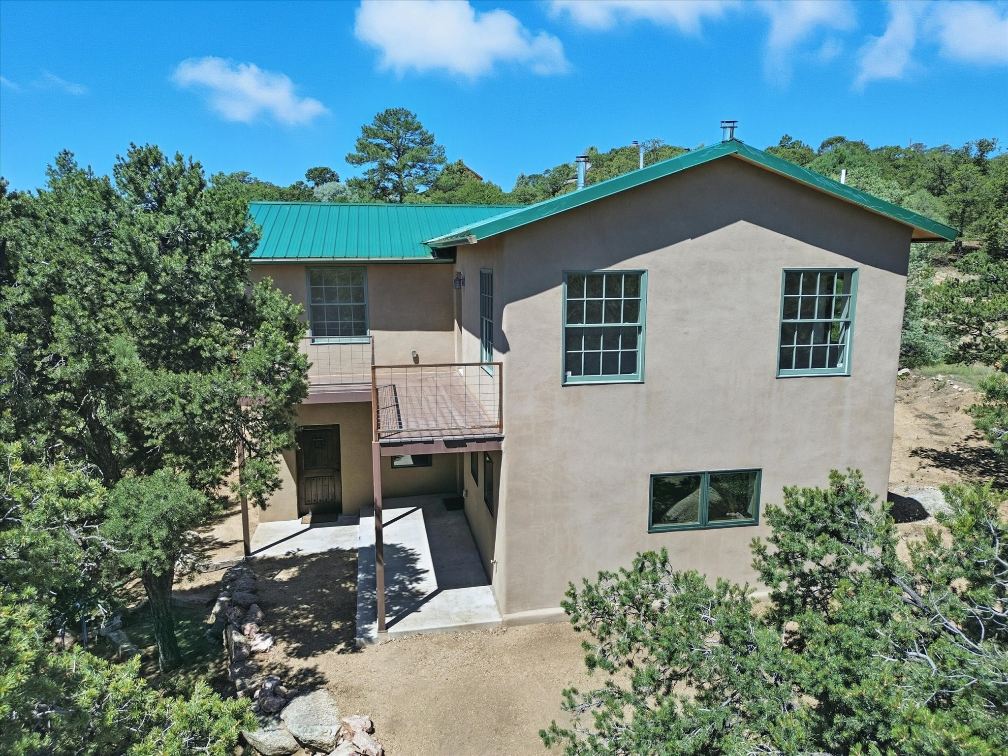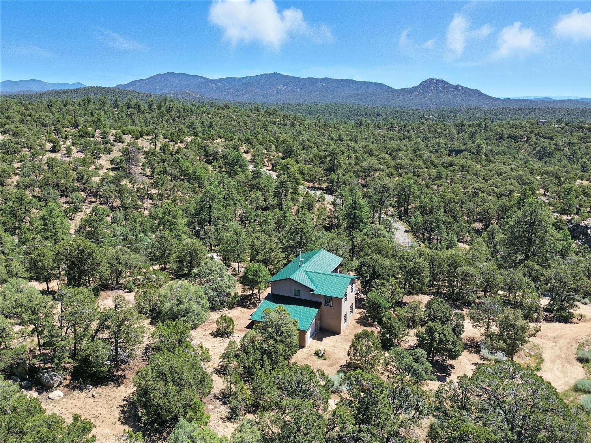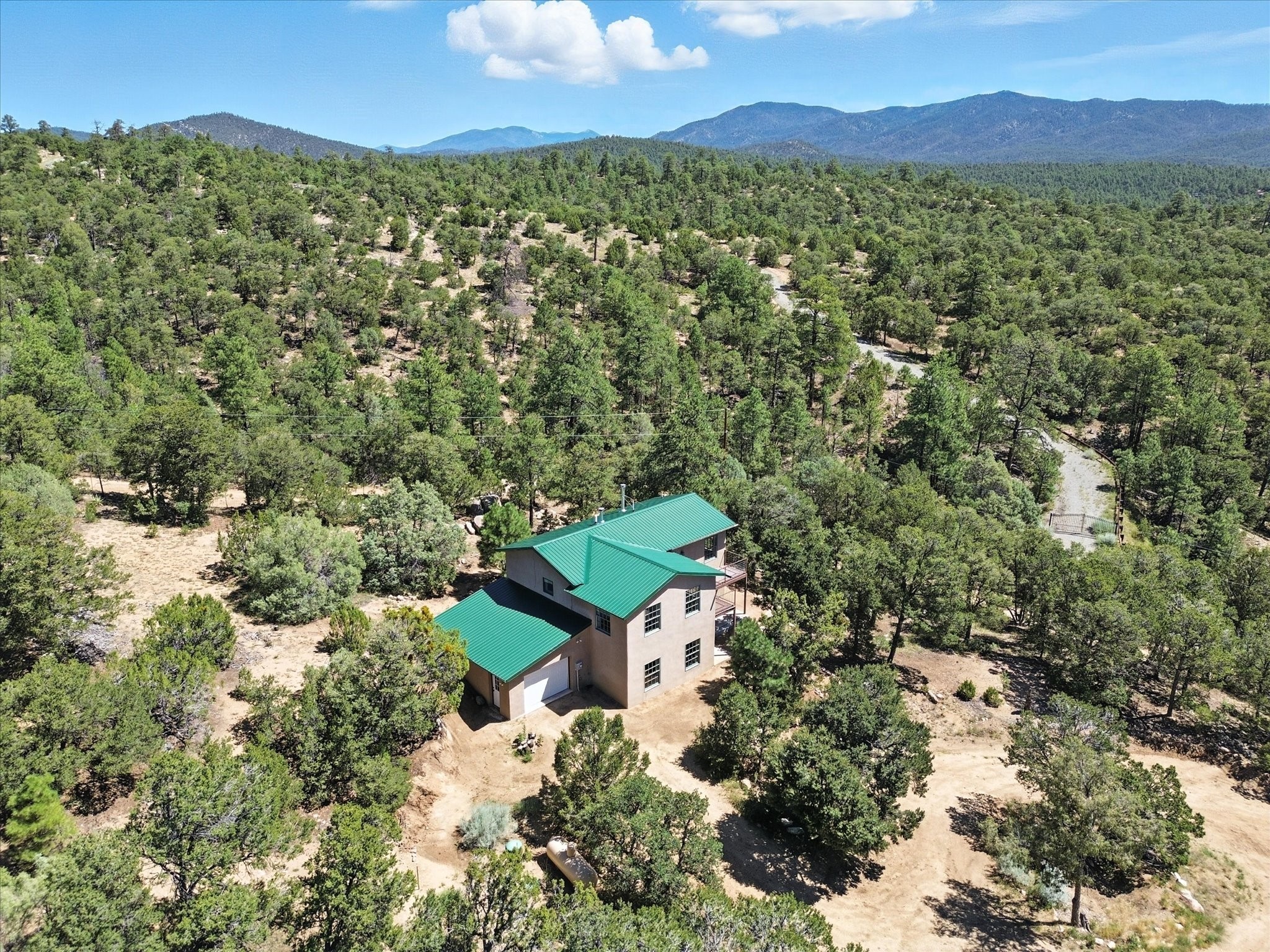 Modern Mountain Retreat Just off of Old Santa Fe Trail. A serene sanctuary nestled into the mountainside and surrounded with pines. This beautiful home offers breathtaking views of the green valley, the Shaggy Peaks and Pecos Mountains beyond--an ideal setting for those seeking peace, space, and connection with nature.With 3 spacious bedrooms and 2 full bathrooms, this home has a spacious living area perfect for relaxing, entertaining, and creating. The open-concept layout seamlessly blends the dining and kitchen spaces; all bathed in natural light from large windows that frame the stunning landscape. The kitchen is crafted for both functionality and style, making it the true heart of the home.Enjoy the comfort of a stone-tiled en-suite bath with a soaking tub and a cozy fireplace, a spacious walk-in closet, and private access to a balcony where morning coffee comes with inspiring Forest views.Each bedroom is graced with large windows that invite sunlight and forest views, while a separate laundry room upstairs adds everyday convenience. The attached garage adds to the practicality of this quiet haven, blending comfort and utility.Set in a peaceful, rural-feeling location, yet with easy access to town, 25 Calle Marisol offers the best of both worlds--tranquility and convenience. If you're seeking a lifestyle surrounded by nature, with room to breathe and views to inspire, this is your perfect place to call home.