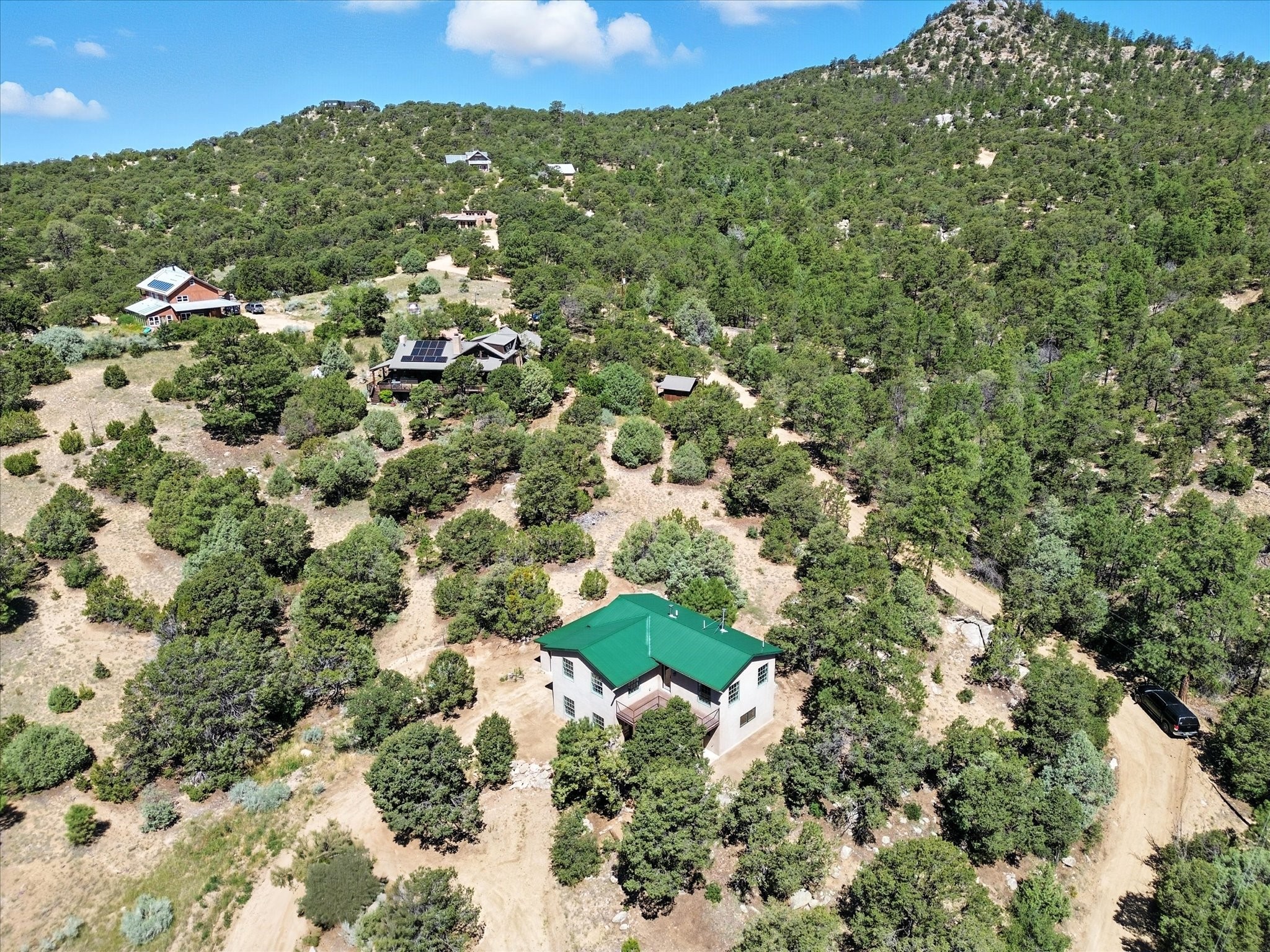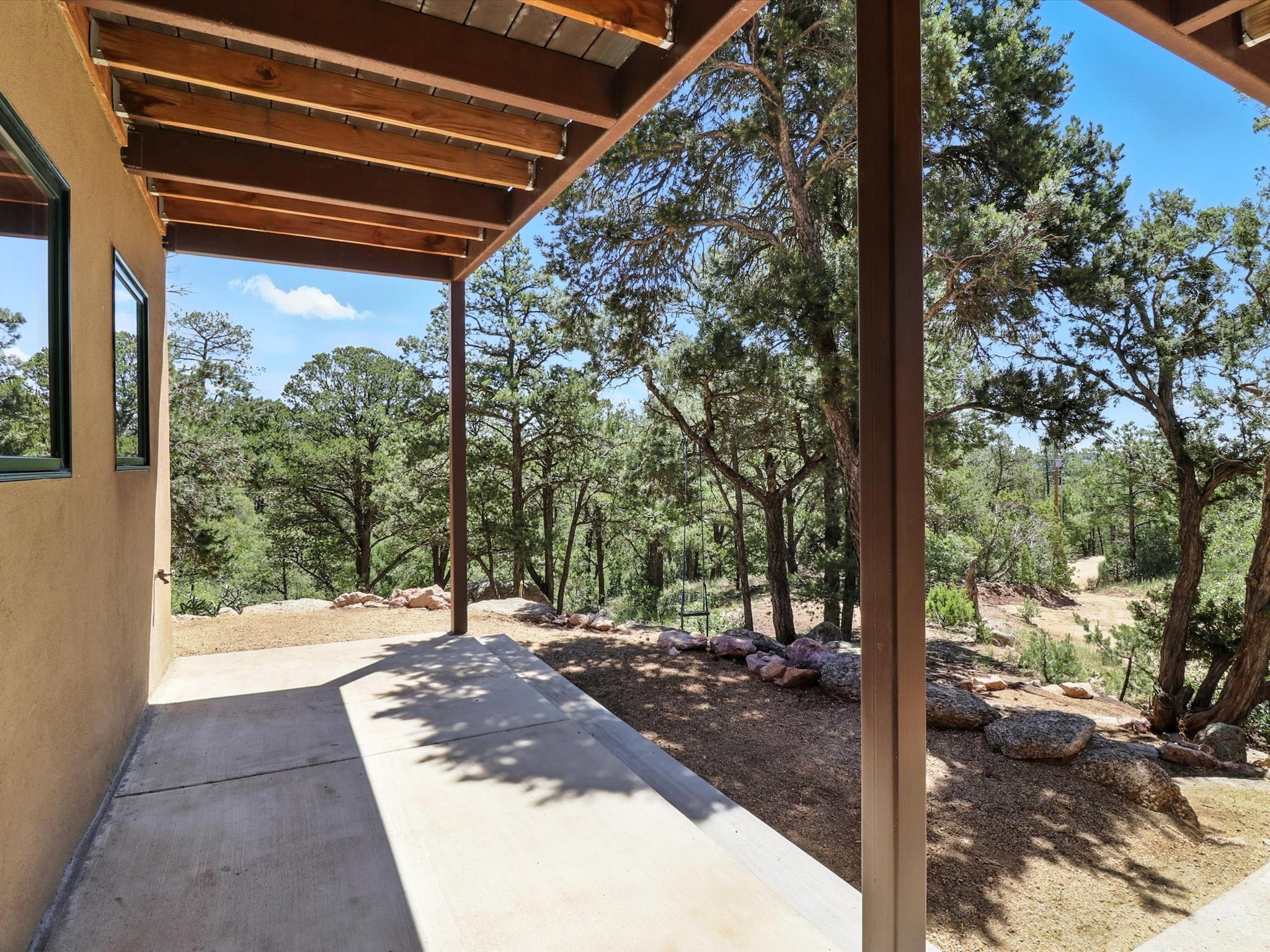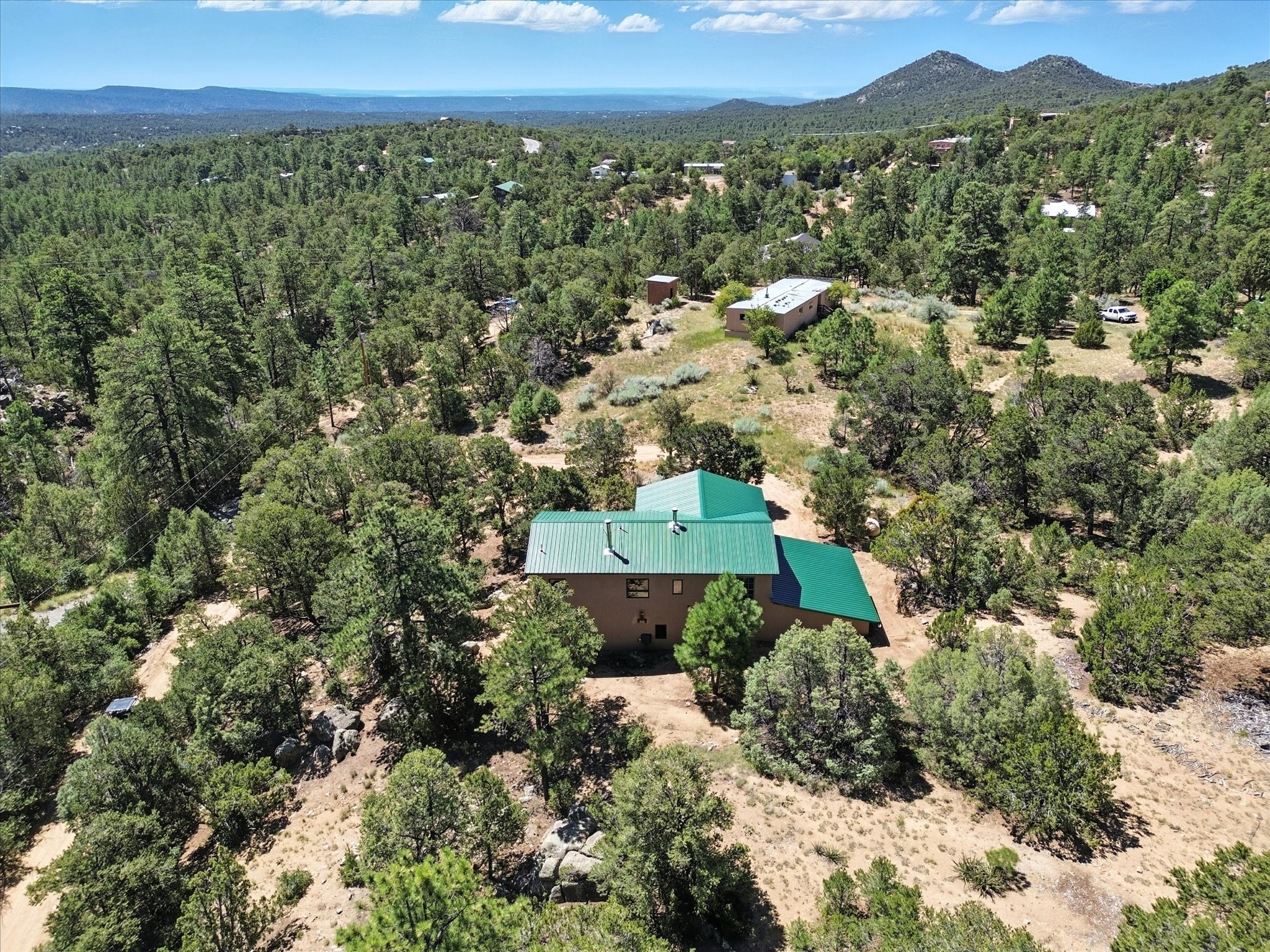 Modern Mountain Retreat Just off of Old Santa Fe Trail. A serene sanctuary nestled into the mountainside and surrounded with pines. This beautiful home offers breathtaking views of the green valley, the Shaggy Peaks and Pecos Mountains beyond--an ideal setting for those seeking peace, space, and connection with nature.With 3 spacious bedrooms and 2 full bathrooms, this home has a spacious living area perfect for relaxing, entertaining, and creating. The open-concept layout seamlessly blends the dining and kitchen spaces; all bathed in natural light from large windows that frame the stunning landscape. The kitchen is crafted for both functionality and style, making it the true heart of the home.Enjoy the comfort of a stone-tiled en-suite bath with a soaking tub and a cozy fireplace, a spacious walk-in closet, and private access to a balcony where morning coffee comes with inspiring Forest views.Each bedroom is graced with large windows that invite sunlight and forest views, while a separate laundry room upstairs adds everyday convenience. The attached garage adds to the practicality of this quiet haven, blending comfort and utility.Set in a peaceful, rural-feeling location, yet with easy access to town, 25 Calle Marisol offers the best of both worlds--tranquility and convenience. If you're seeking a lifestyle surrounded by nature, with room to breathe and views to inspire, this is your perfect place to call home.