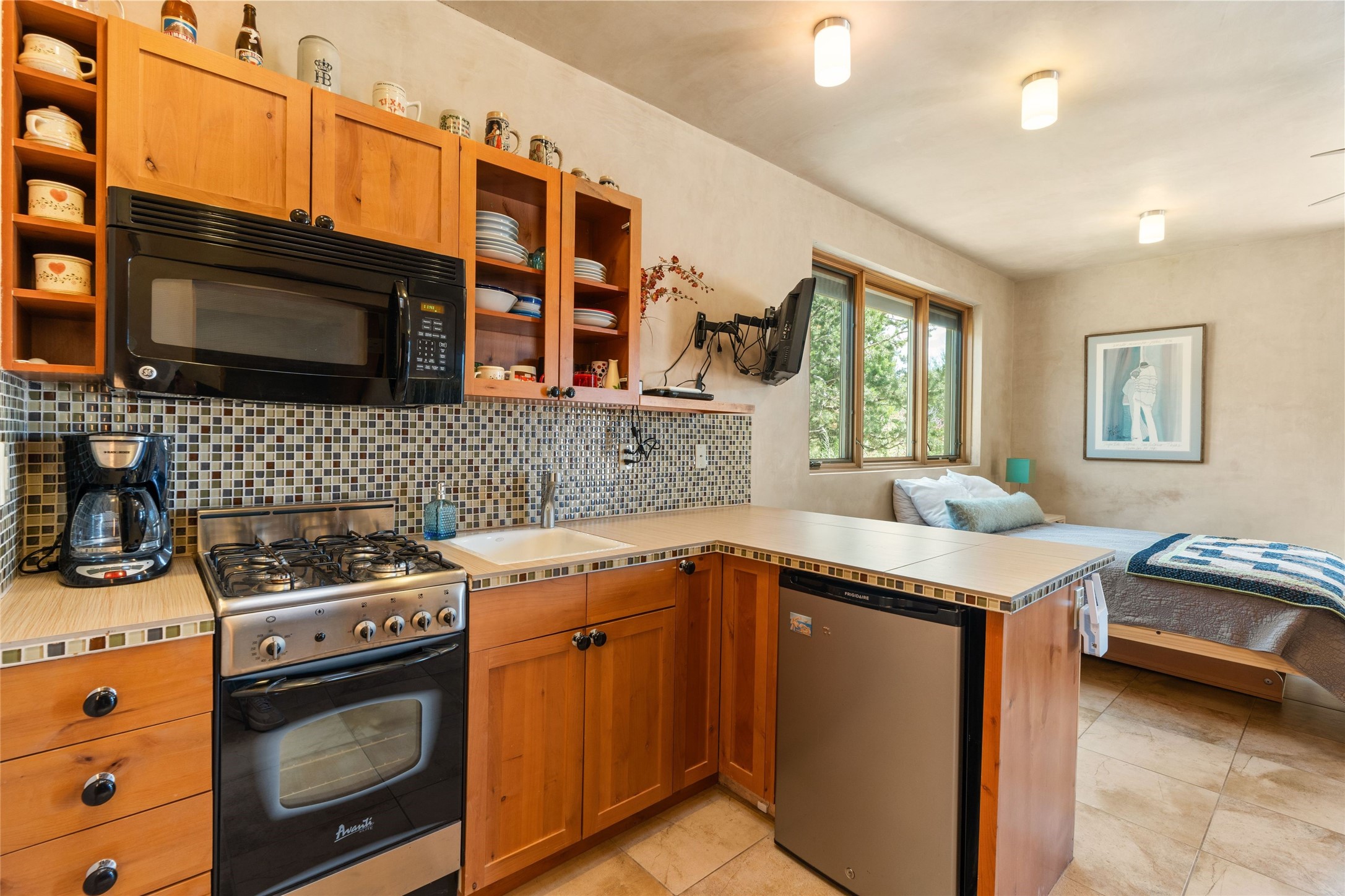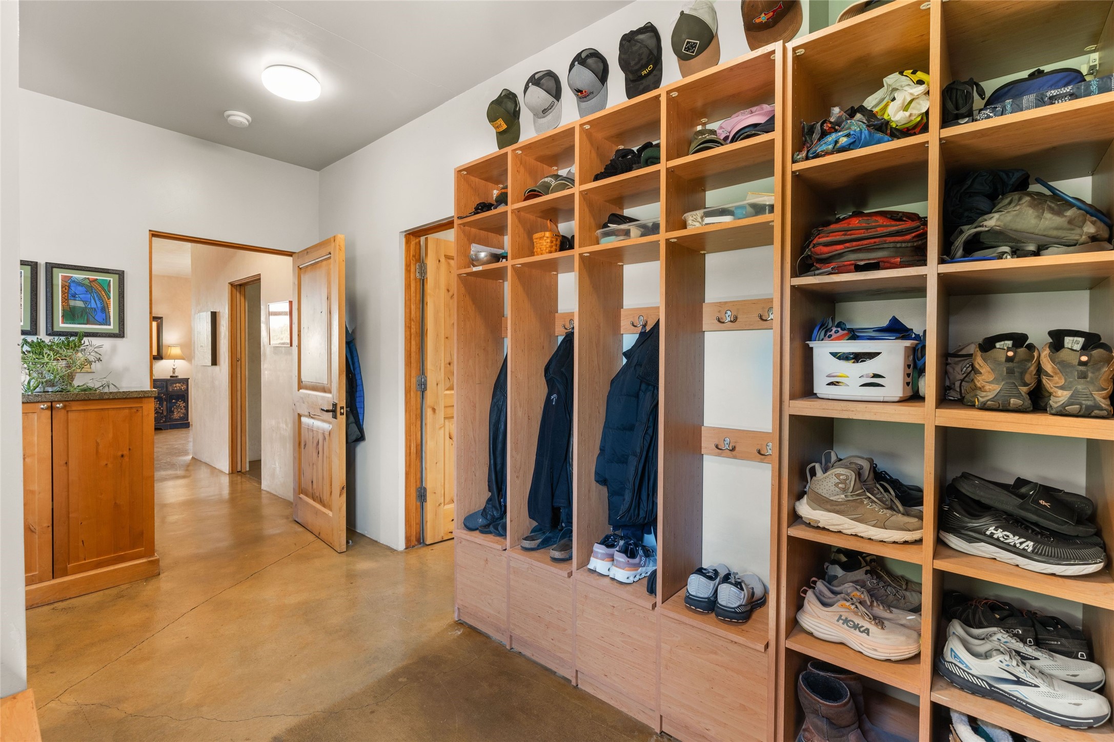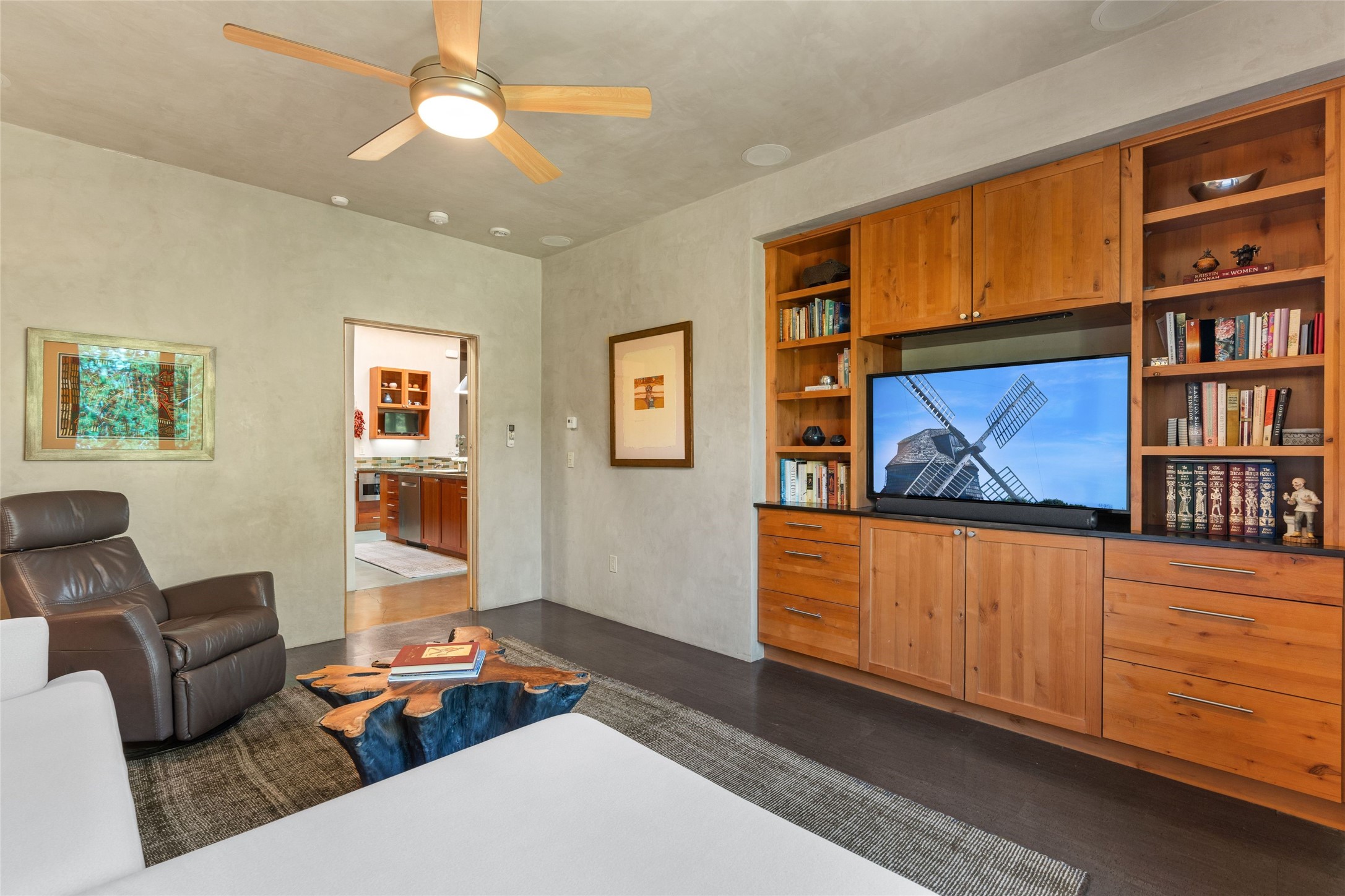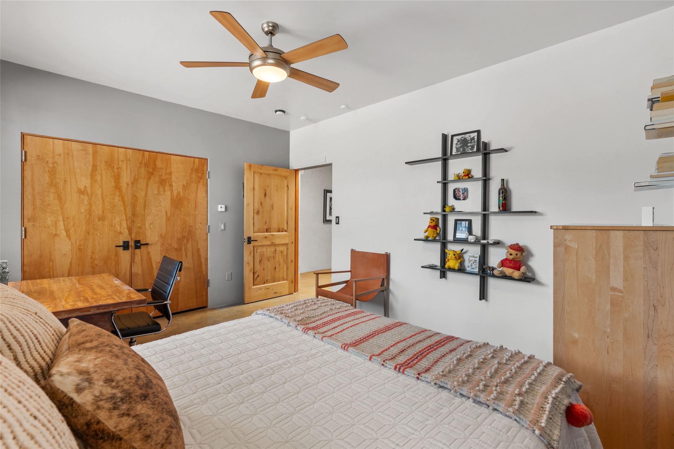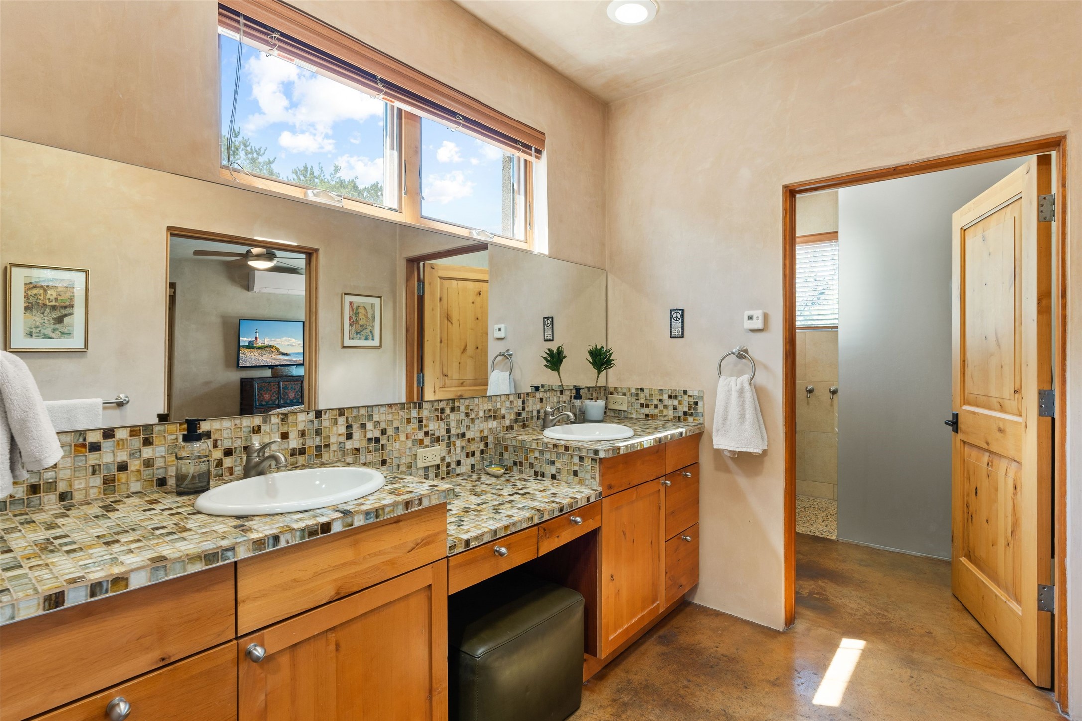 Rooted in natural materials and sustainable design, this serene Santa Fe residence offers a rare combination of tranquility, flexibility, and energy efficiency. Built using ICF (Insulated Concrete Forms) construction, the home maintains comfortable indoor temperatures year-round with radiant in-floor heating, mini-split systems, and solar power that keeps electric bills around $12 per month. Concrete floors add an earthy elegance throughout the main home, complemented by cork overlays in key living areas for warmth and comfort.The layout supports both daily ease and extended hosting, with multiple indoor living spaces, a dedicated office/utility room, and a bonus den ideal for hobbies or guest overflow. The separate casita provides a private retreat for visitors or live-in support, with its own kitchenette, spacious bathroom, and independent heating.Step outside to enjoy multiple landscaped patios that invite quiet mornings or lively evenings, enhanced by a gas fire pit, a swim spa and hot tub -- perfect for stargazing or unwinding after a day on the trails. From the main portal, take in inspiring views of Sun and Moon Mountain to the southeast and the distant Jemez range to the west, offering a shifting backdrop of natural beauty in every season.Located on a peaceful .82-acre lot, this home is just minutes from Santa Fe's Plaza, Museum Hill, the city's top medical centers, grocery stores, and shopping. Whether you're seeking a restful base for exploring town, a retreat for entertaining, or a long-term residence focused on well-being and sustainability, this property balances privacy and convenience in one thoughtfully designed package.