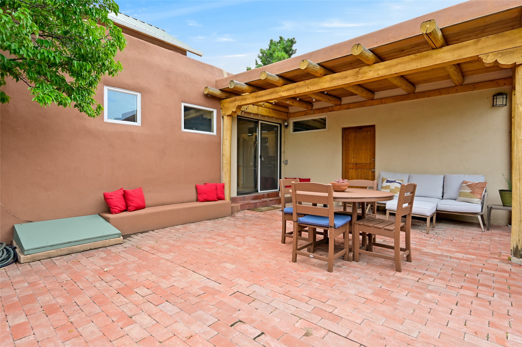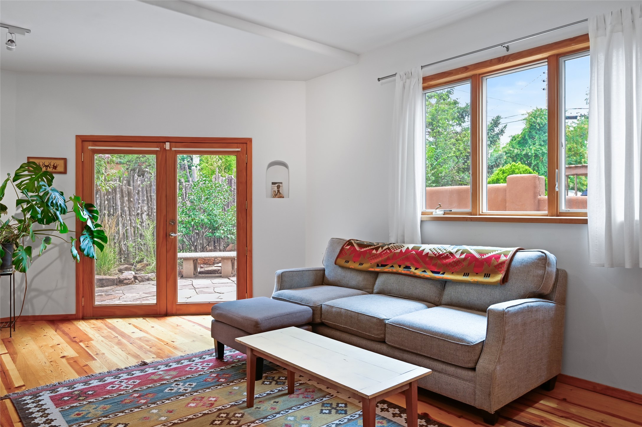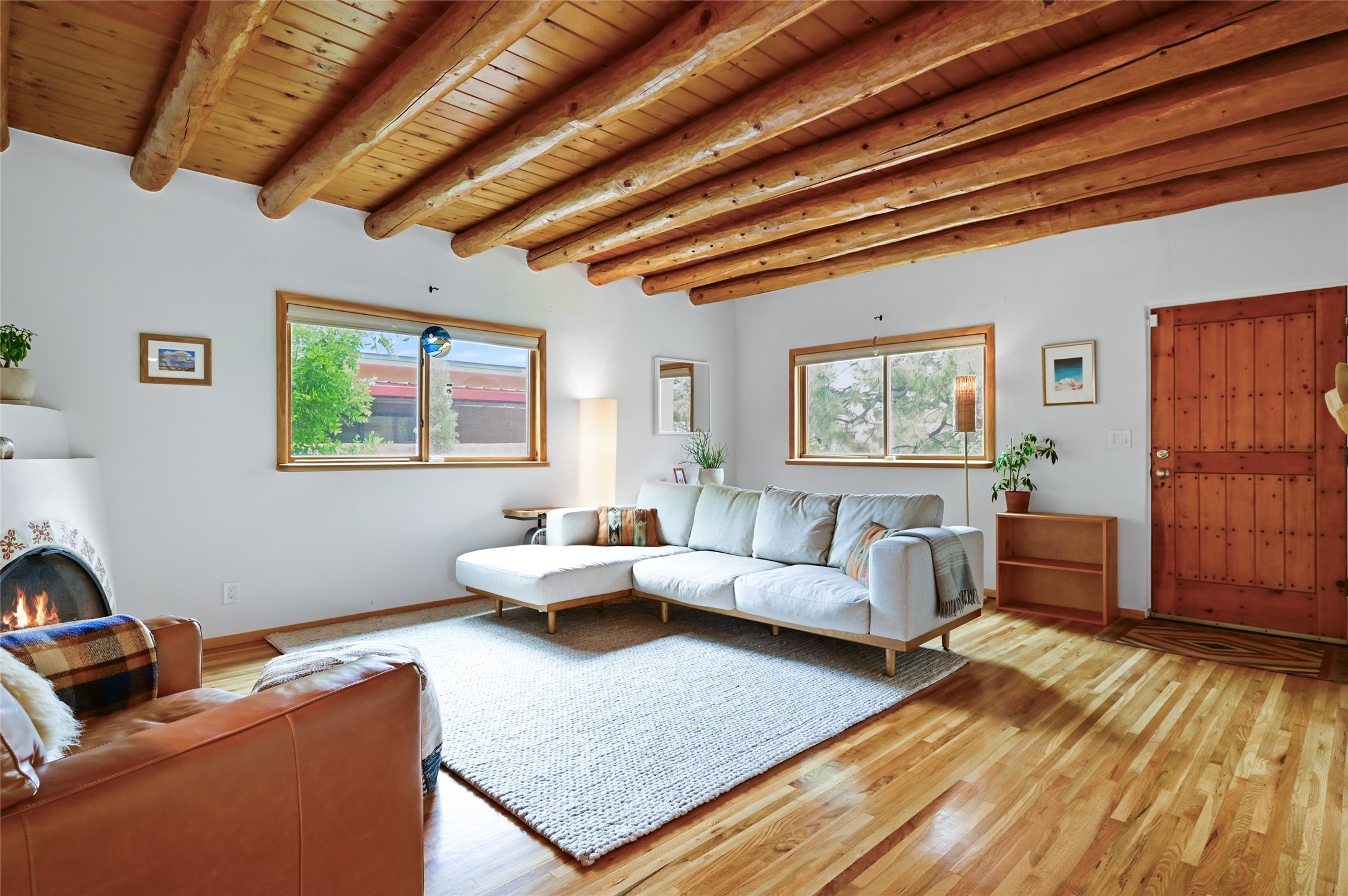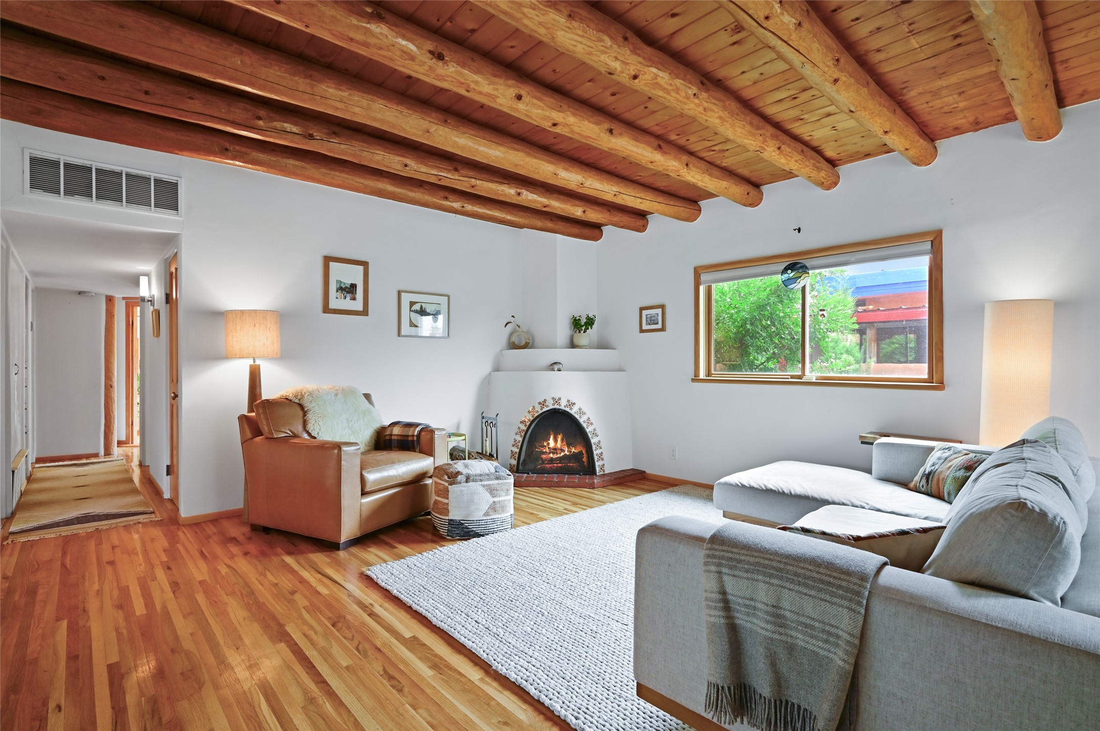 Located in the picturesque Casa Solana neighborhood, this charming 4-bedroom, 3-bathroomreimagined Stamn home offers over 2500 sqft of comfortable living spaces.Step inside to find wood floors that flow throughout the main living areas along with Vigas and aKiva fireplace. The versatile 4th bedroom, currently utilized as a cozy den, can easily transforminto an art studio or flex room to suit your lifestyle. An extra room, with its own bath, adjacent to the laundry areacan be used as another living space or as storage.Retreat to the spacious upstairs bedroom, complete with its own sitting room and privatebalcony, offering ski basin and sunset views for your enjoyment.Enjoy the serene and private outdoor environment on a beautifully landscaped lot that is completely fenced,featuring fruit trees, grape vines and two storage sheds. The tranquil fountain and multipleoutdoor seating areas create the perfect backdrop for entertaining and relaxation.This air conditioned home combines thoughtful design with abundant outdoor charm, making it an ideal havenfor families and entertaining guests alike.Located just blocks from shopping, dining, and the La Montaita Food Co-op, walkable via the River Trail to the Farmers Market,and only minutes to the Plaza. This home will not disappoint!