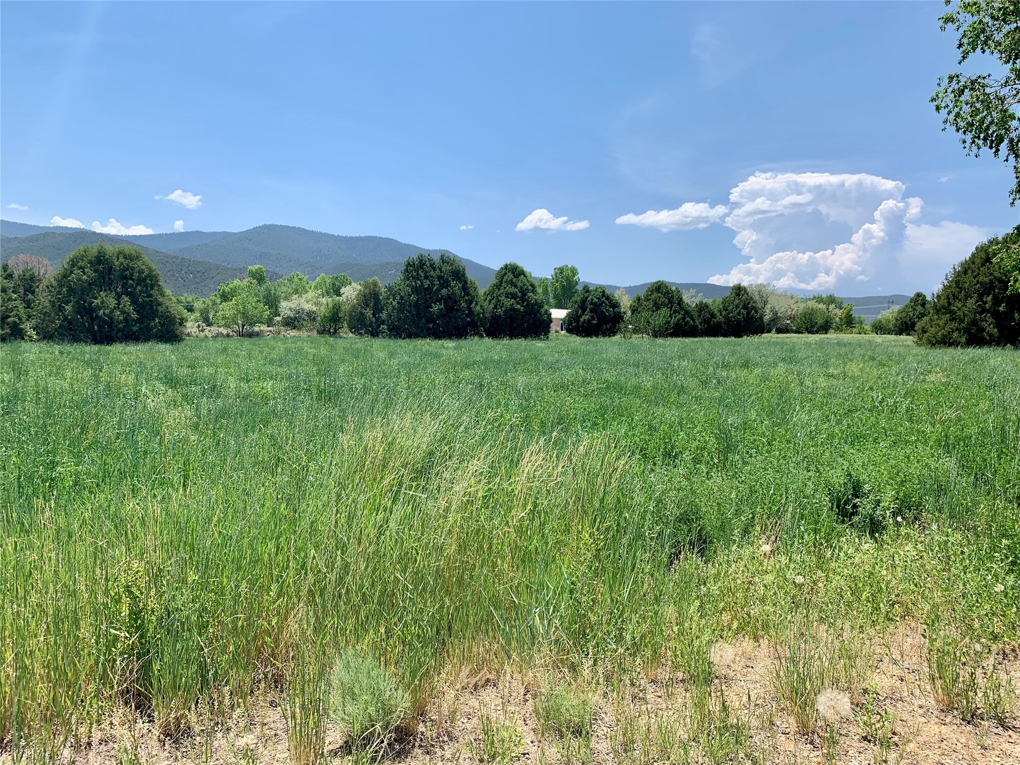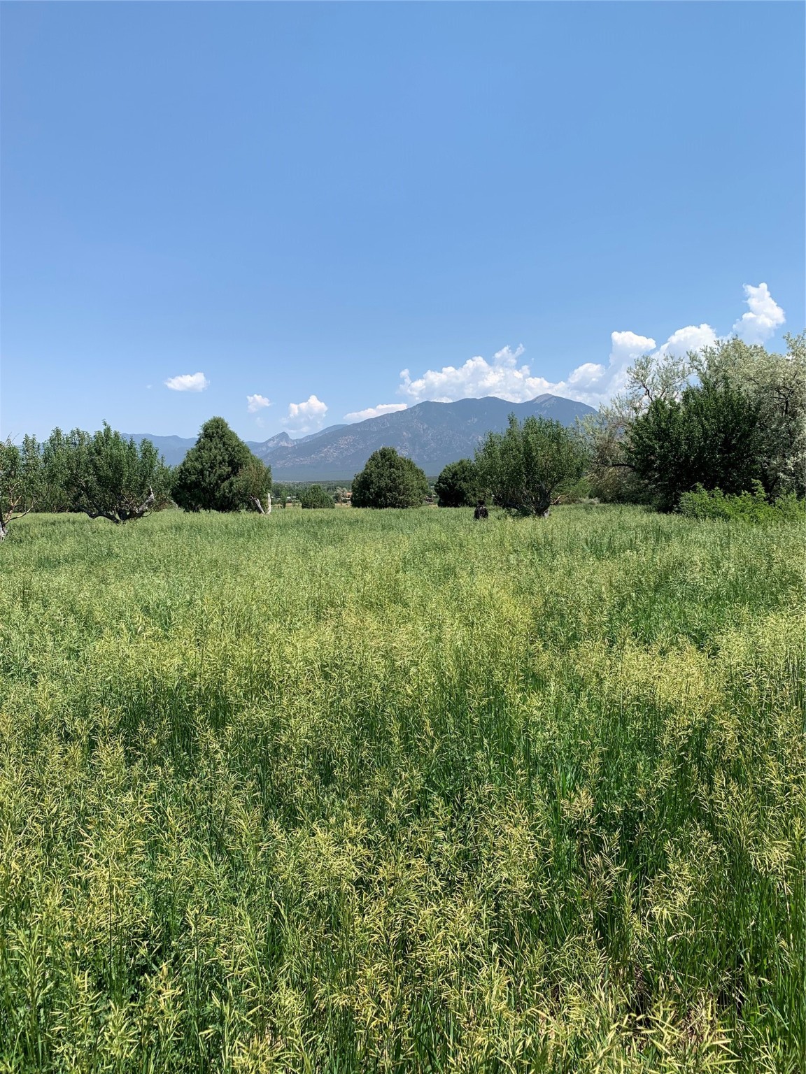 The property is 690 Apple Court, Taos, NM 87571 (Lot 3, The Orchard Subdivision). The property is 3:00 acres of flat land with underground water, gas, electric, cable utilities, and 2.00 acres of irrigated land. The land has expansive views of Taos Mountain and the Taos Valley.
