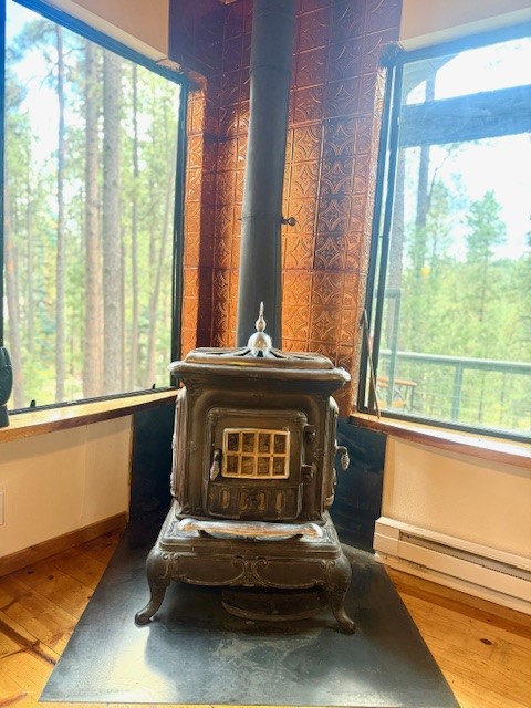 Elevated Mountain Style in Thompson Ridge! This newly refinished 1BR. 3/4 Bath -Cabin is the ultimate four-season escape, designed for effortless living & smart investing. Featuring a custom kitchen island, sleek new finishes, and a striking wood burning stove that anchors the space with warmth & character. Panoramic windows flood the interior with light framing stunning woodland views. A charming loft adds flexible space for guests or gear. Enjoy crisp mornings on the elevated deck, perfect for your best cup of coffee yet. Low maintenance, low cost, tasteful design. This is the refined Jemez Springs retreat you've been searching for--tucked among towering pines, and the best neighbors around. Minutes from hiking, fishing, hot springs, ski trails, this is where New Mexicans go to exhale.In the kitchen New stainless steel Farm Sink. New Microwave. New Island and new Butcher block Counters. Refinished all Pine wood floors * not in bathroom* Shed and Out house convey.