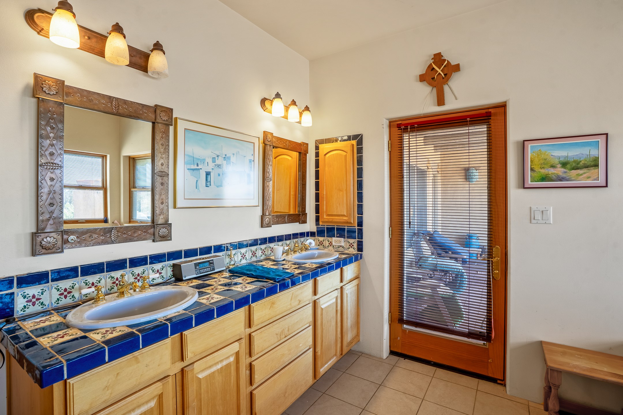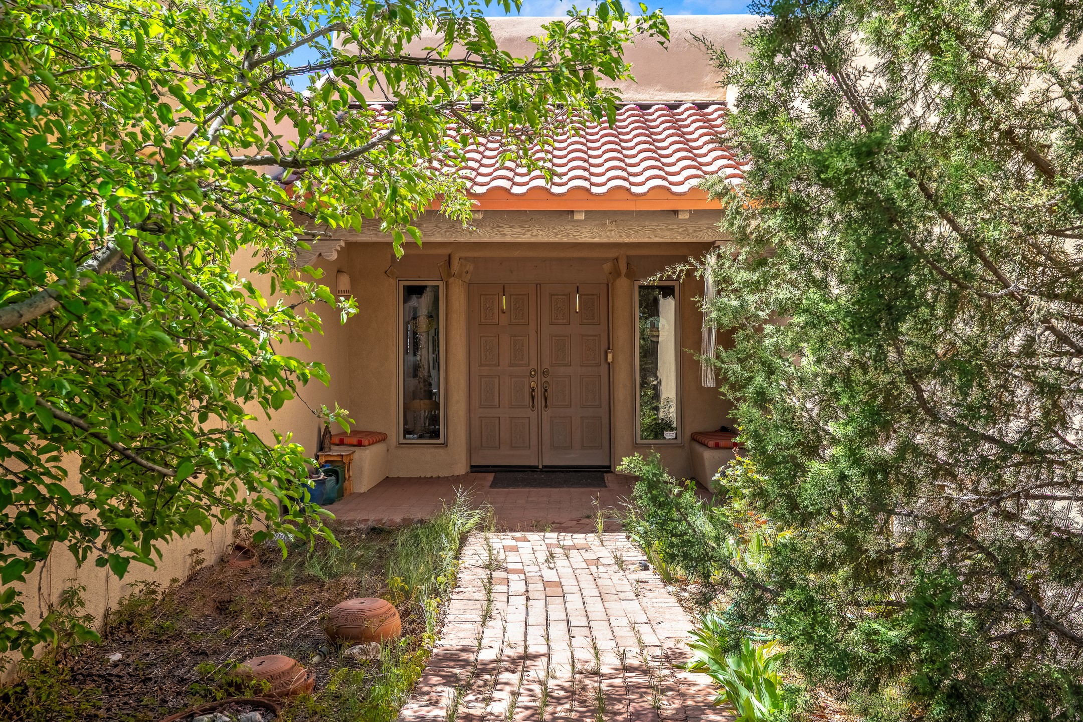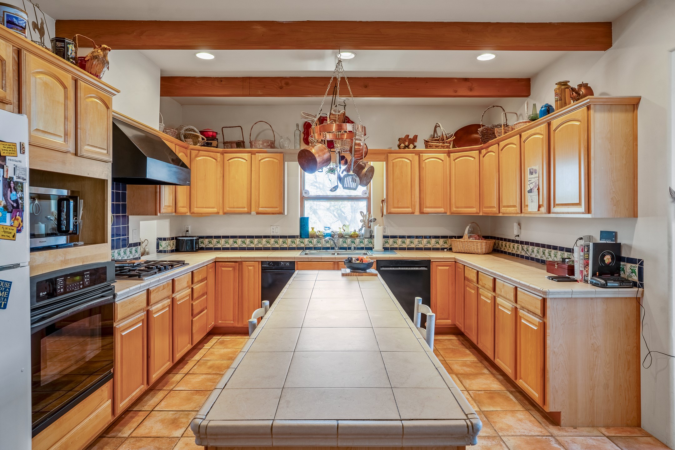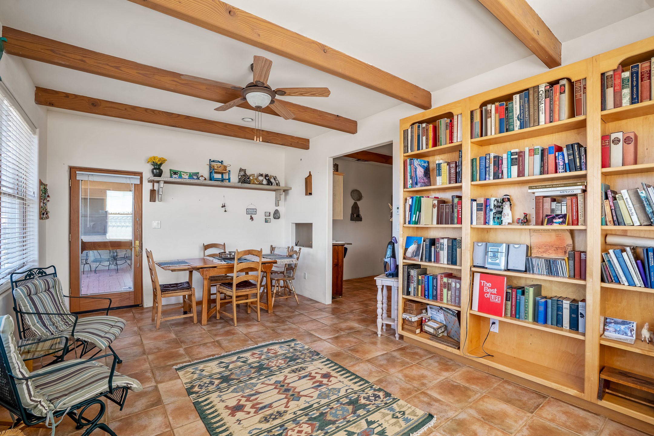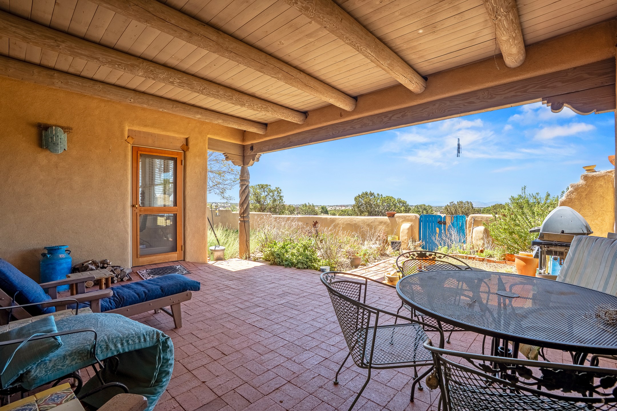 Welcome to Tierra de Casta, where spacious living meets breathtaking beauty! On five acres, with all the room you could ever desire to breathe, relax, and simply be. Step inside this homey residence, boasting over 4000 square feet of well designed space. From the moment you enter, you'll be captivated by the comfortable feeling of large rooms and soaring ceilings, all adorned with fine finishes that speak to a true sense of quality living. Prepare to be enchanted by the primary suite - it's a true sanctuary! Cozy evenings by the Kiva fireplace, with the rustic charm of vigas and tongue and groove ceilings adding a touch of authentic Southwestern warmth. The luxury bath invites you to unwind, whether you choose a soothing soak in the Jacuzzi tub or a refreshing rinse in the separate shower. Two additional generously sized bedrooms, each with its own ensuite bath, provide comfort and privacy for family or guests. Plus, a wonderfully large den, office, or library or another bedroom awaits your inspiration - for work, study, or simply curling up with a good book. The heart of the home, the great room, is truly something special. It offers breathtaking western views. From here, you have direct access to the formal dining room, where a beautifully stamped tin ceiling adds a unique and elegant touch to your gatherings. The well-appointed kitchen, featuring a spacious island, is ready for all your culinary adventures. And don't forget the sunroom! It's a cheerful spot with easy access to the rear portal, perfect for enjoying your morning coffee or evening refreshments in the fresh air. If you've been searching for a place with ample space to live, entertain, and create lasting memories, look no further. This home truly has all you need and so much more. Welcome to Tierra de Casta - we're so happy to have you!