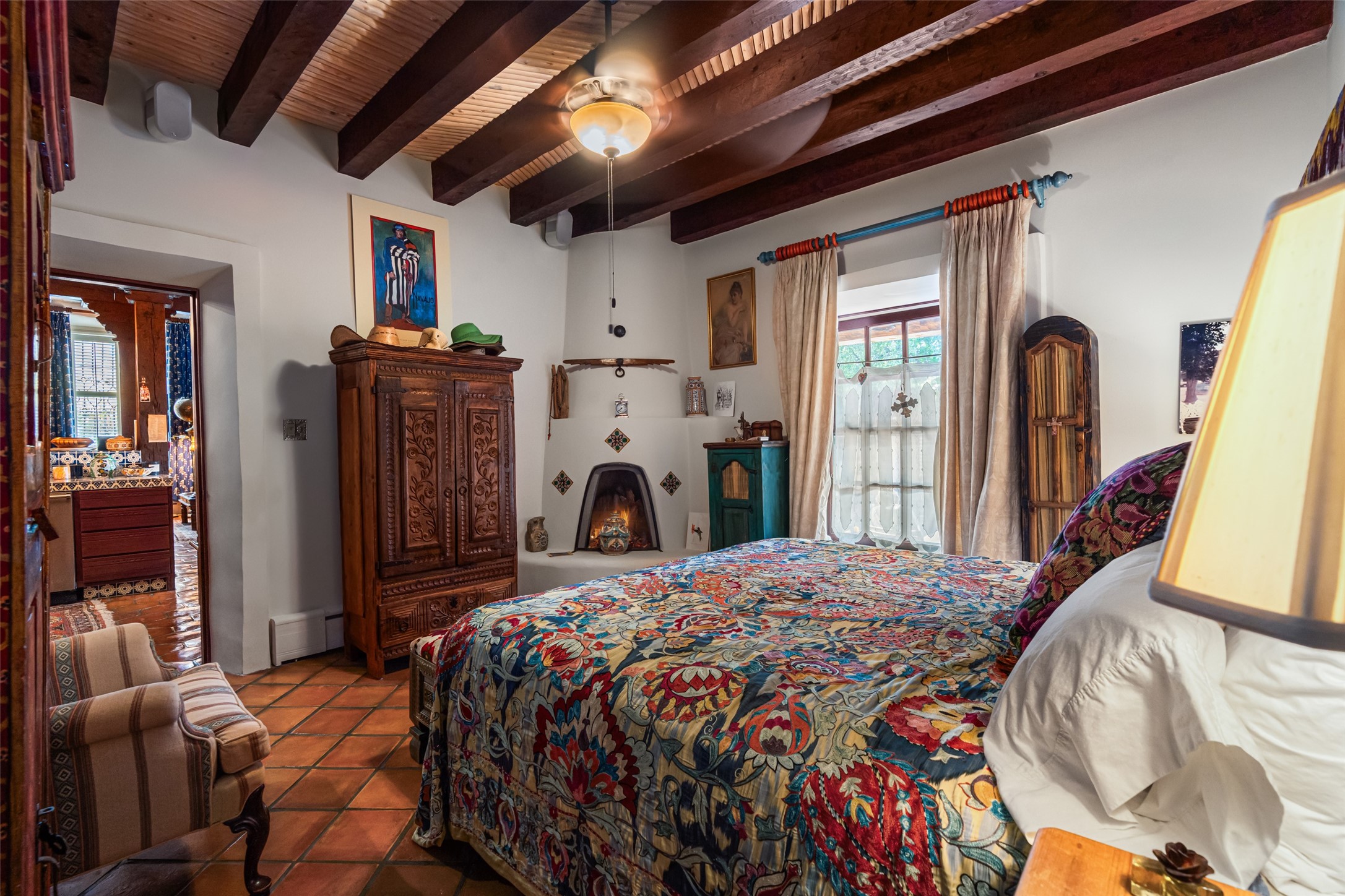 CASON DEL TRIUNFO - THE GIORGIO AND YOLANDA BELLOLI ESTATE - Originally designed and built in 1935, Santa Fe's most beautiful home has been lovingly maintained, expanded, and embellished by subsequent owners. The present-day architectural masterpiece presents an opportunity like no other - unique architecture featuring buttresses and curved terracotta tile roof, magnificent patios, 3 guest casitas, elaborate office and movie theatre, wine cellar, swimming pool and hot tub, 250+ feet of Rio Santa Fe frontage, and magnificent landscaping and outdoor spaces.