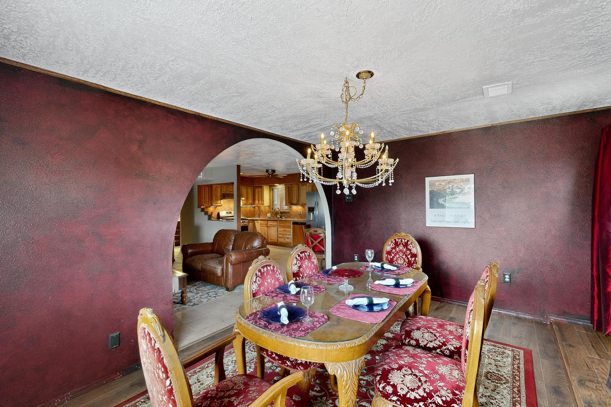 Motivated Seller is offering $5,000 in flex cash which can be used toward closing costs, rate buy-down, or price adjustments! Come see this gorgeous 4 bedroom, 2 bath house on a quiet street in the heart of northern Bernalillo. Updated kitchen and bathrooms. Bonus ''gym'' could be used as an extra family room, media room or bedroom. Enjoy your coffee in the screened porch or one of 4! separate sitting/eating/patio areas in the back yard, or under the shade of the trees in the front yard. Bonus is the views of the Sandias from your beautifully Xeriscaped back yard. Property is fully fenced for the safety of your family or furbabies. Gated access to the backyard from Camino Don Tomas. Quick access to 550 and I-25 makes for an easy commute to work.
