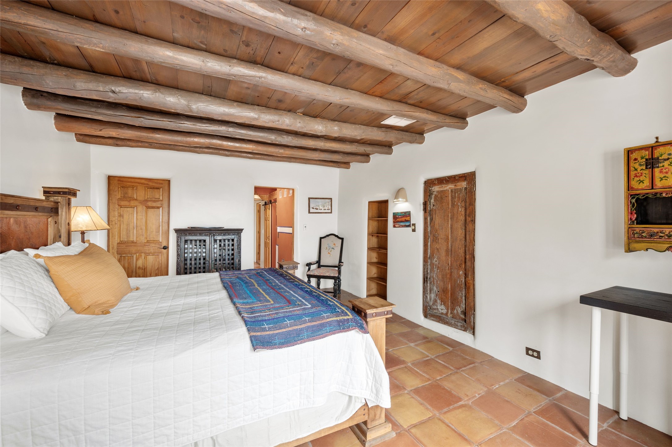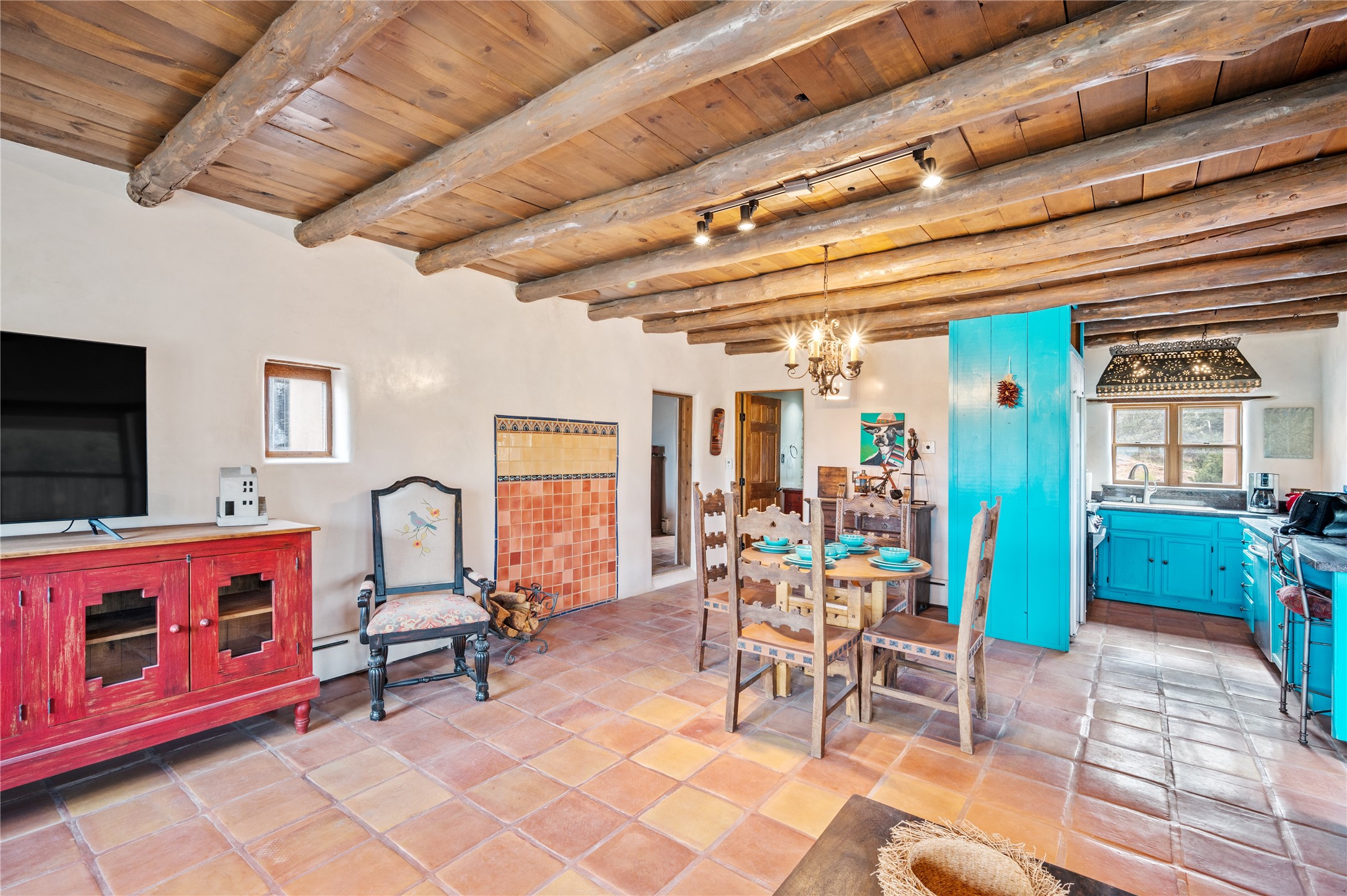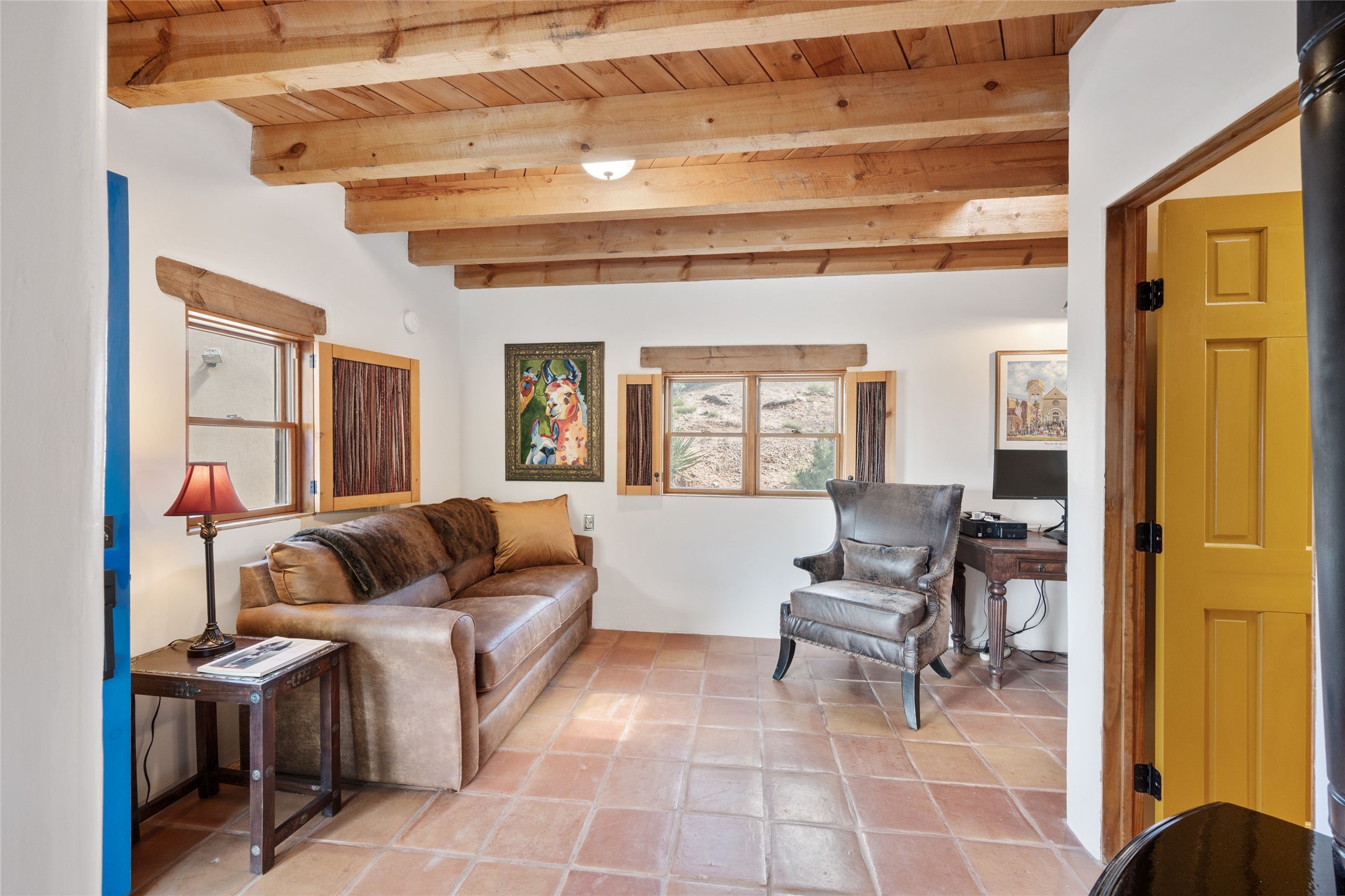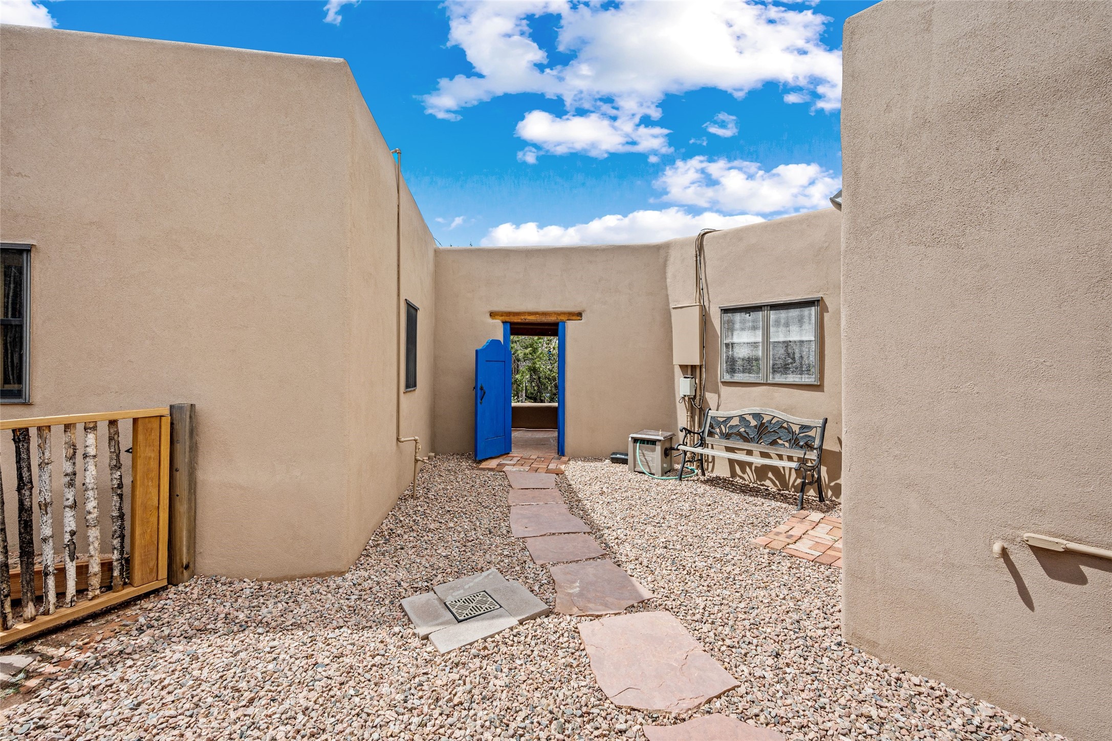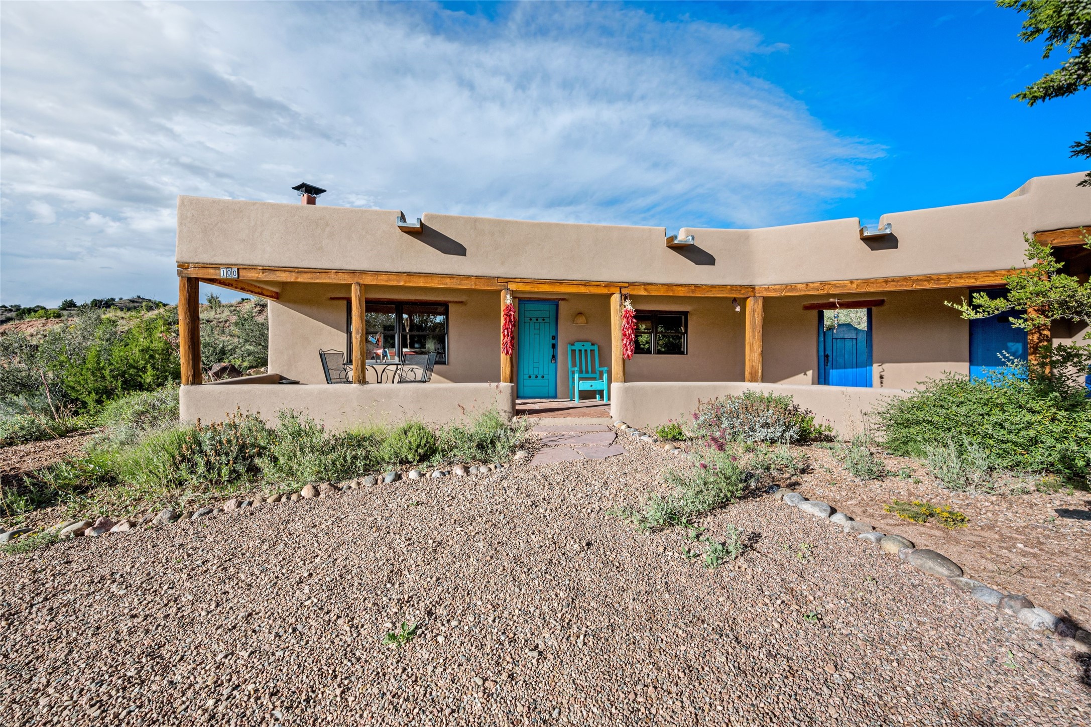Turnkey house and guesthouse in Tesuque with furniture package (a few exclusions apply), so you can start living the Santa Fe dream now! Full of Santa Fe character, the main residence highlights vigas, beams, and a wood-burning fireplace that sets a warm and inviting tone. Built in 1997, the 1,312 sq. ft. single-level home offers 2 bedrooms and 2 baths. A 288 sq. ft. guest house adds an additional 1 bedroom and 1 bath, bringing total living space to 1,600 sq. ft. Recent improvements include a brand-new driveway, a private well with a new pump and control panel, a new boiler, and fresh stucco finish. The property also features baseboard electric heating, evaporative central cooling, and a gated driveway for added privacy and security. Surrounded by natural beauty, this 5-acre retreat offers peace, quiet, abundant wildlife, and stunning sunset views over the Jemez Mountains. Just 20 minutes to the historic Plaza and close to the Four Seasons, it's the perfect blend of seclusion and convenience--an exceptional chance to enjoy the best of Tesuque living.