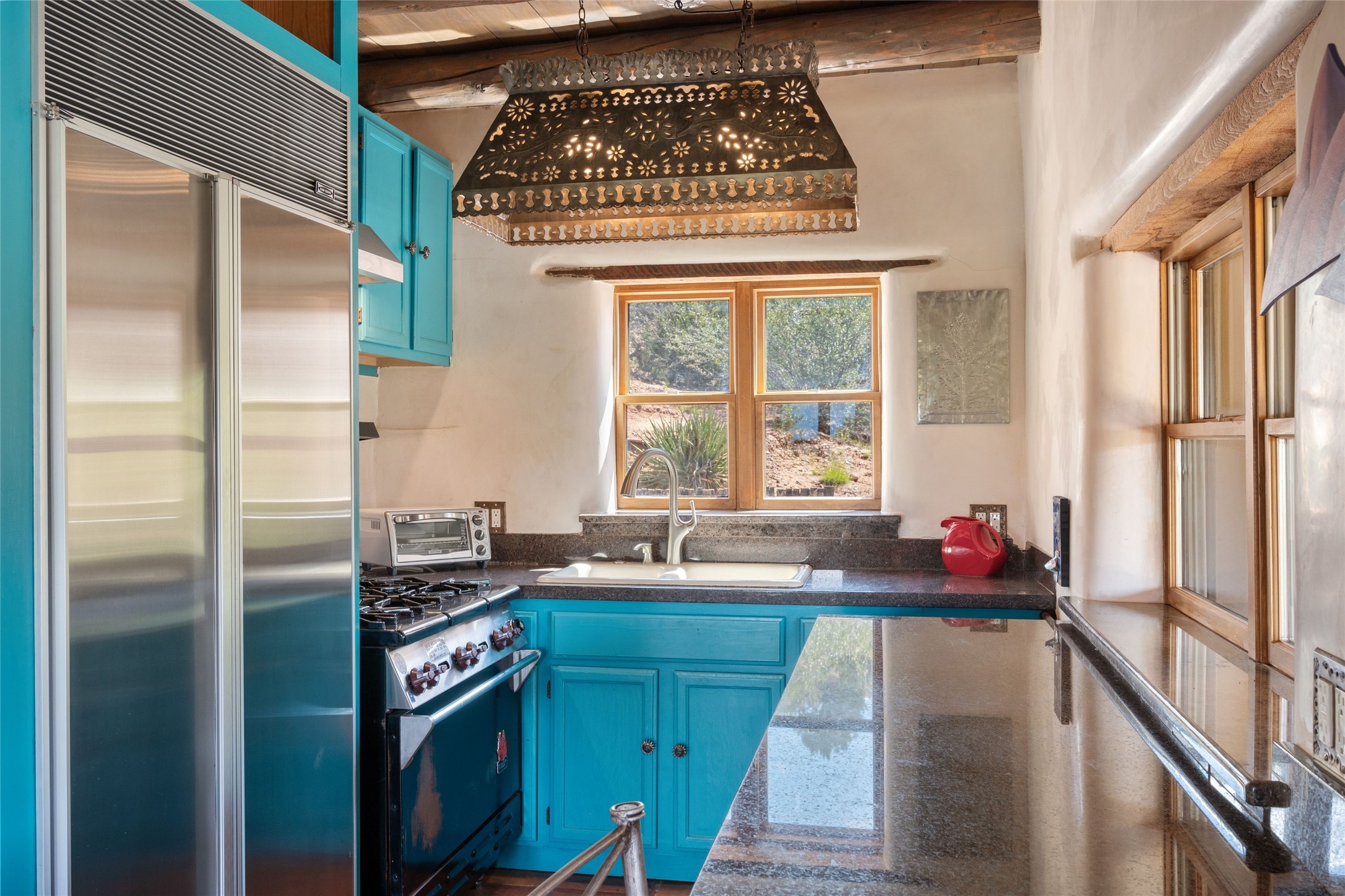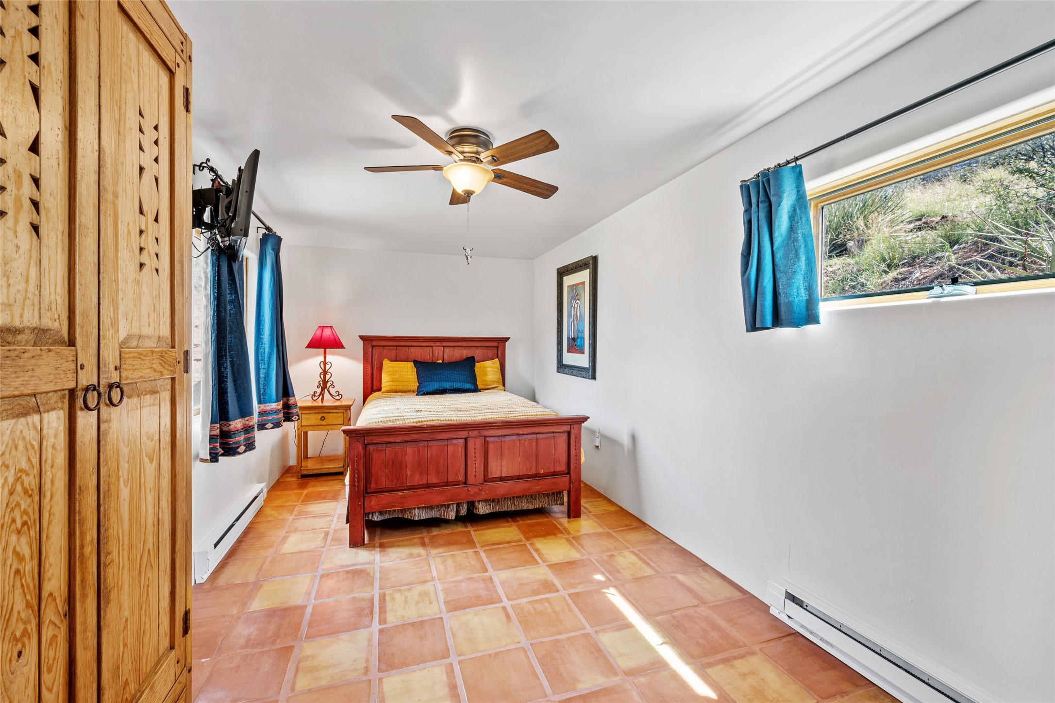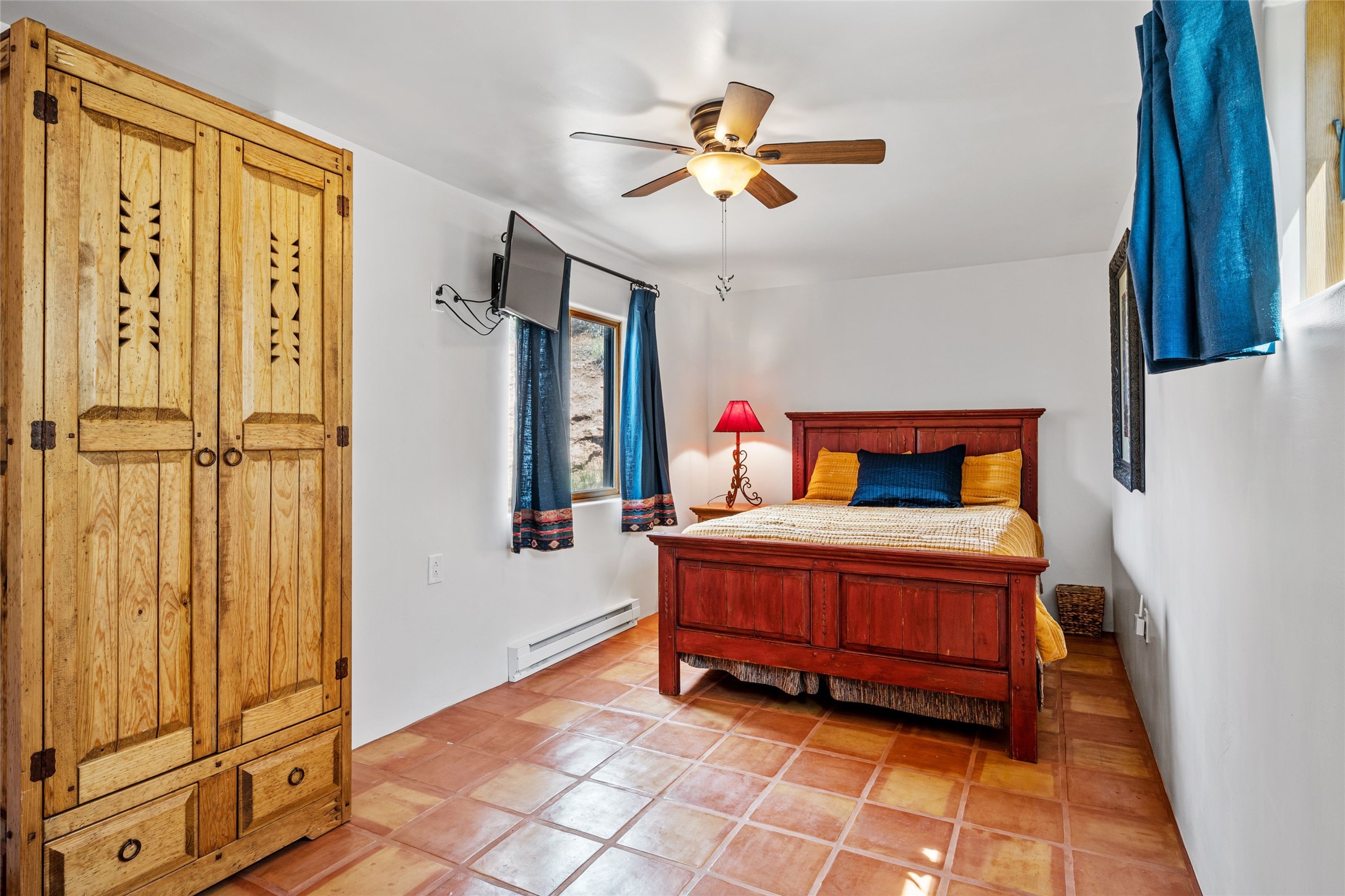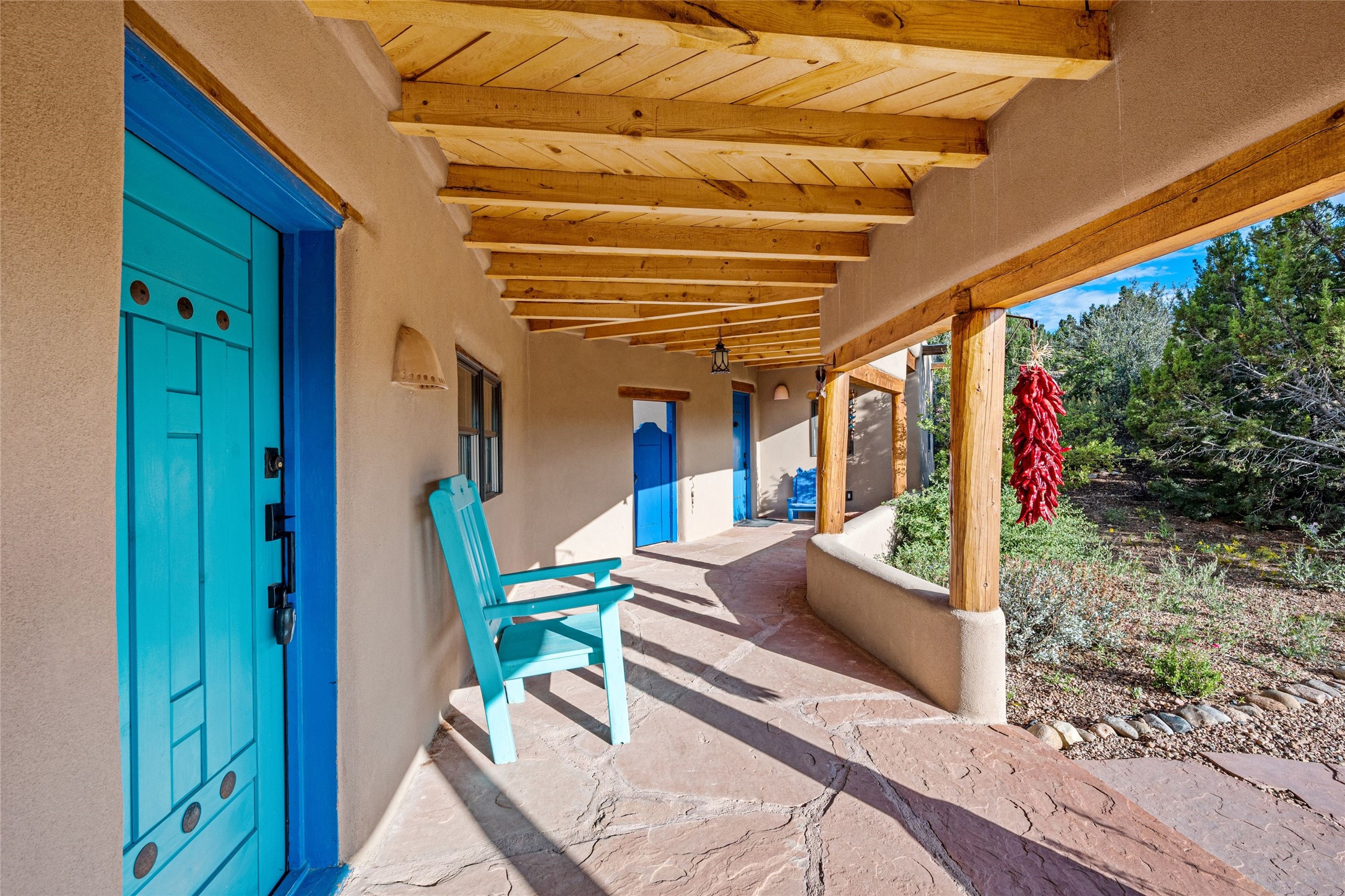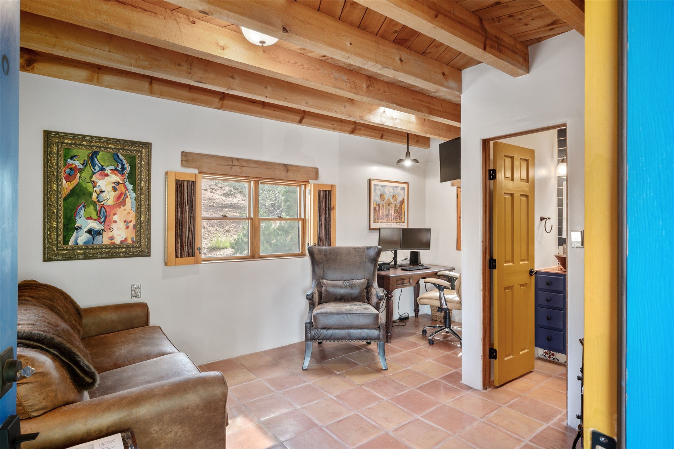 Turnkey house and guesthouse in Tesuque with furniture package (a few exclusions apply), so you can start living the Santa Fe dream now! Full of Santa Fe character, the main residence highlights vigas, beams, and a wood-burning fireplace that sets a warm and inviting tone. Built in 1997, the 1,312 sq. ft. single-level home offers 2 bedrooms and 2 baths. A 288 sq. ft. guest house adds an additional 1 bedroom and 1 bath, bringing total living space to 1,600 sq. ft. Recent improvements include a brand-new driveway, a private well with a new pump and control panel, a new boiler, and fresh stucco finish. The property also features baseboard electric heating, evaporative central cooling, and a gated driveway for added privacy and security. Surrounded by natural beauty, this 5-acre retreat offers peace, quiet, abundant wildlife, and stunning sunset views over the Jemez Mountains. Just 20 minutes to the historic Plaza and close to the Four Seasons, it's the perfect blend of seclusion and convenience--an exceptional chance to enjoy the best of Tesuque living.