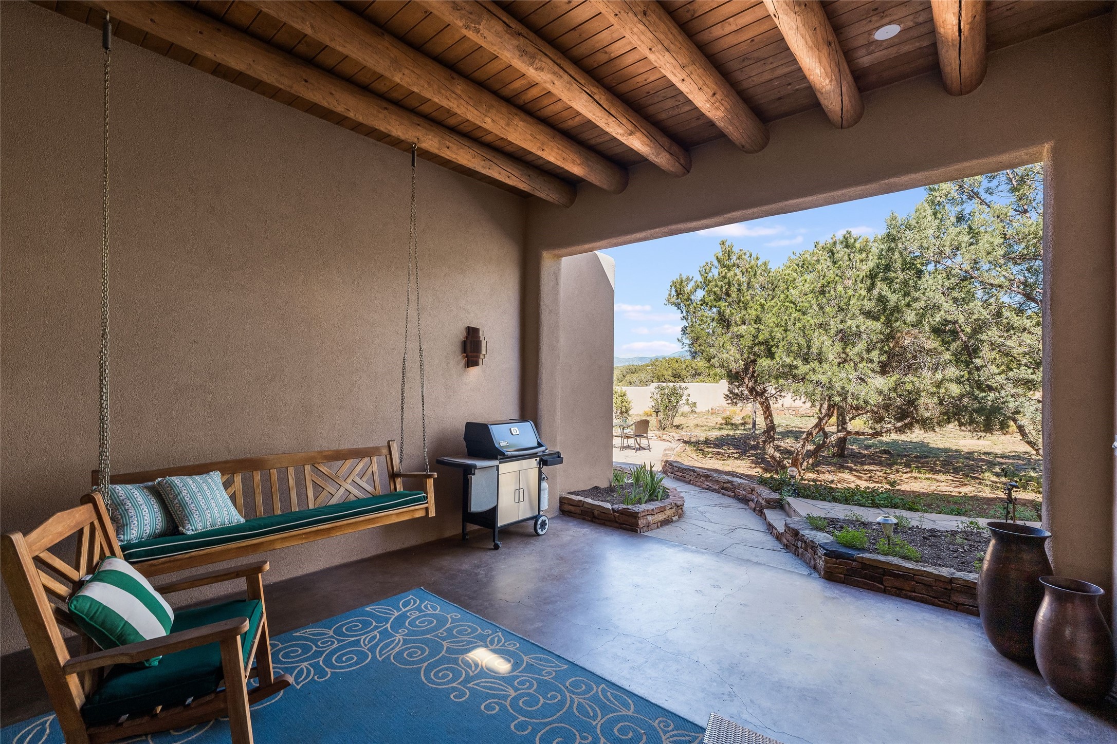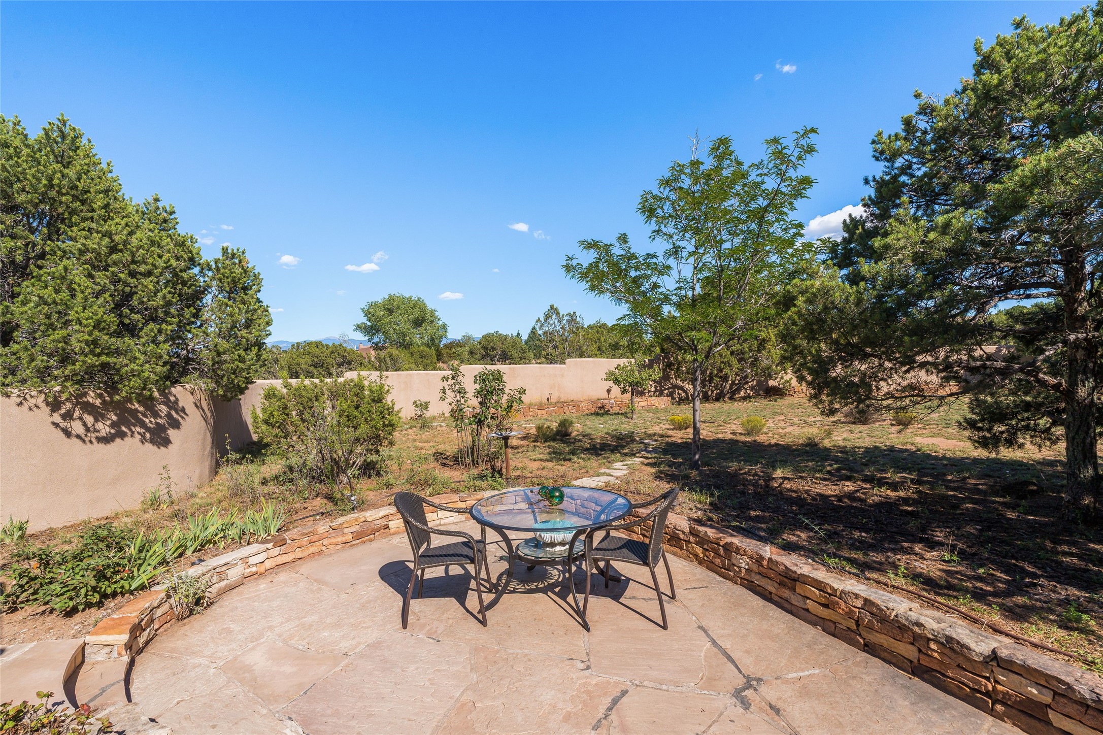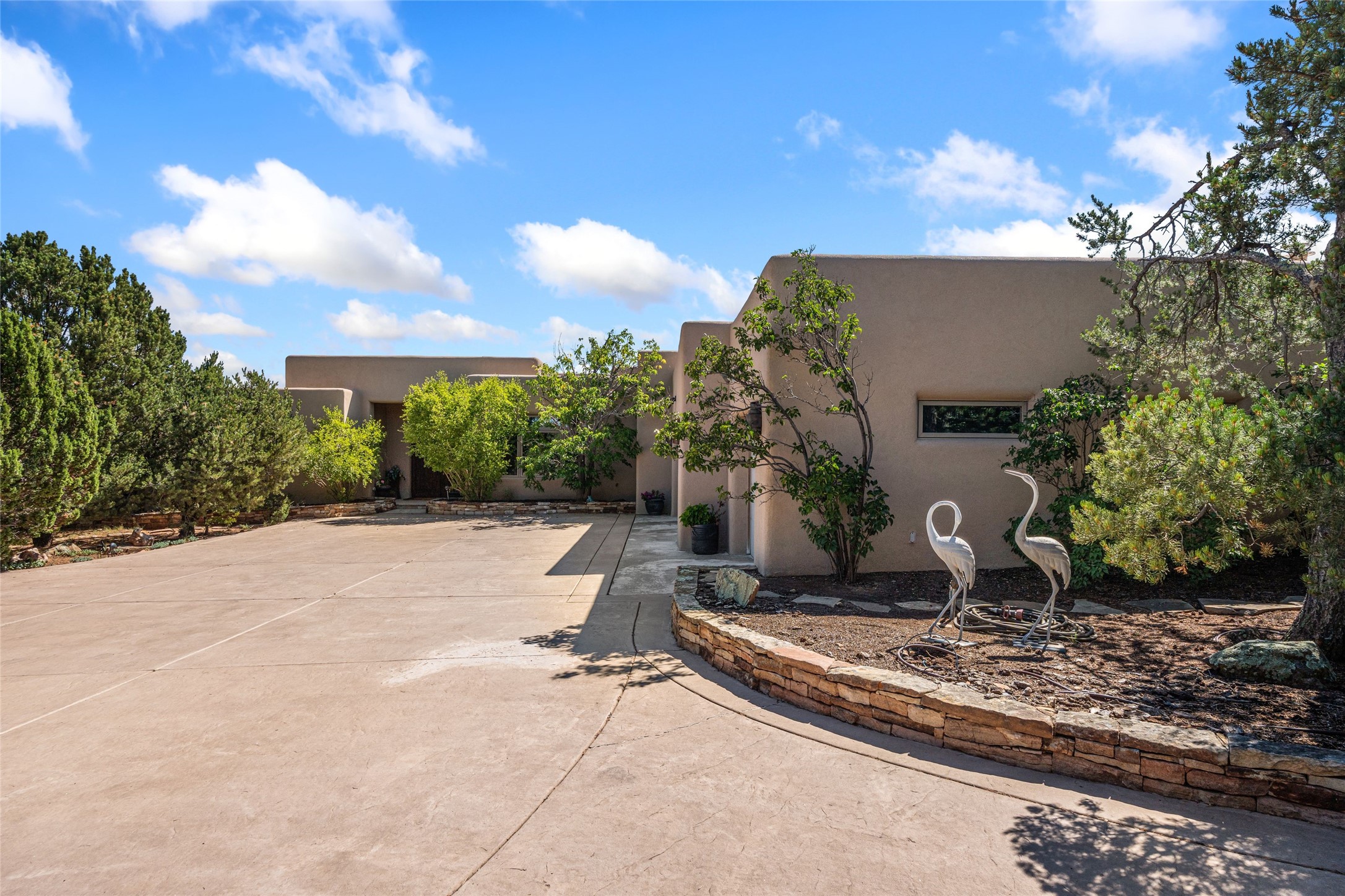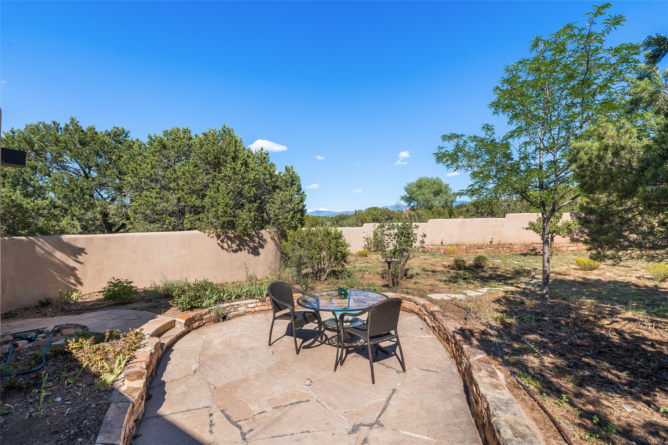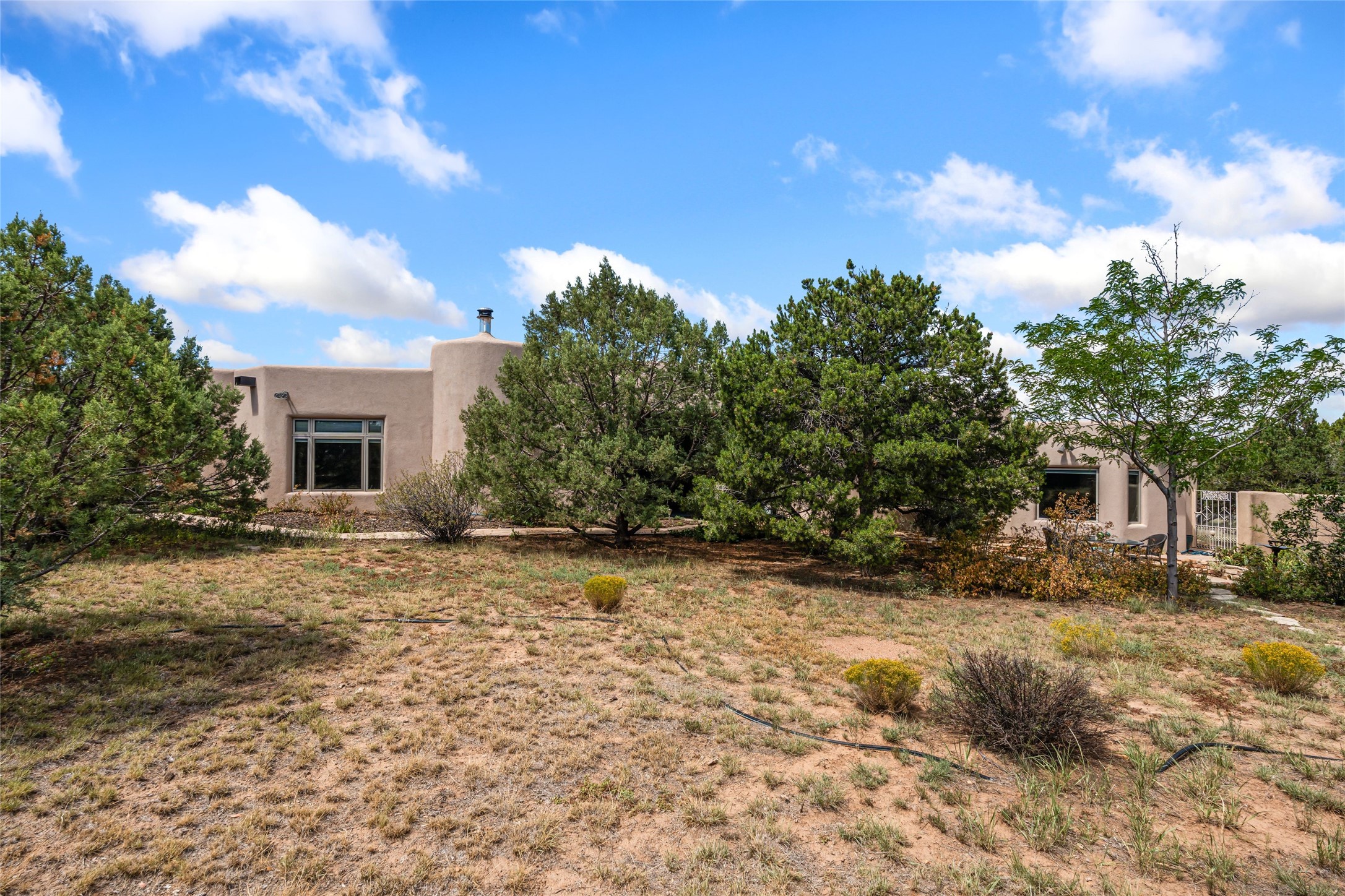 Welcome to 4 Astor, an elegant 3-bedroom, 3-bath home in the prestigious Las Campanas community of Santa Fe. Set on 1.72 acres, this 3,358 sq. ft. residence blends refined design with comfortable living, offering spacious interiors and timeless Southwestern style. Beautiful diamond plaster walls, elegant concrete floors, and lovely hall archways add warmth and sophistication throughout. Built with 12-inch Rastra construction, the home offers exceptional efficiency and durability, keeping it cool in summer and warm in winter. A 3-car garage provides plenty of room for vehicles, storage, or a workshop.Living in Las Campanas means enjoying world-class amenities, including a clubhouse, fitness center, gated security, horse facilities, jogging paths, playground, pool, sauna, spa, and tennis courts. Whether you're looking for an active lifestyle or a serene retreat, this property delivers the best of both worlds.