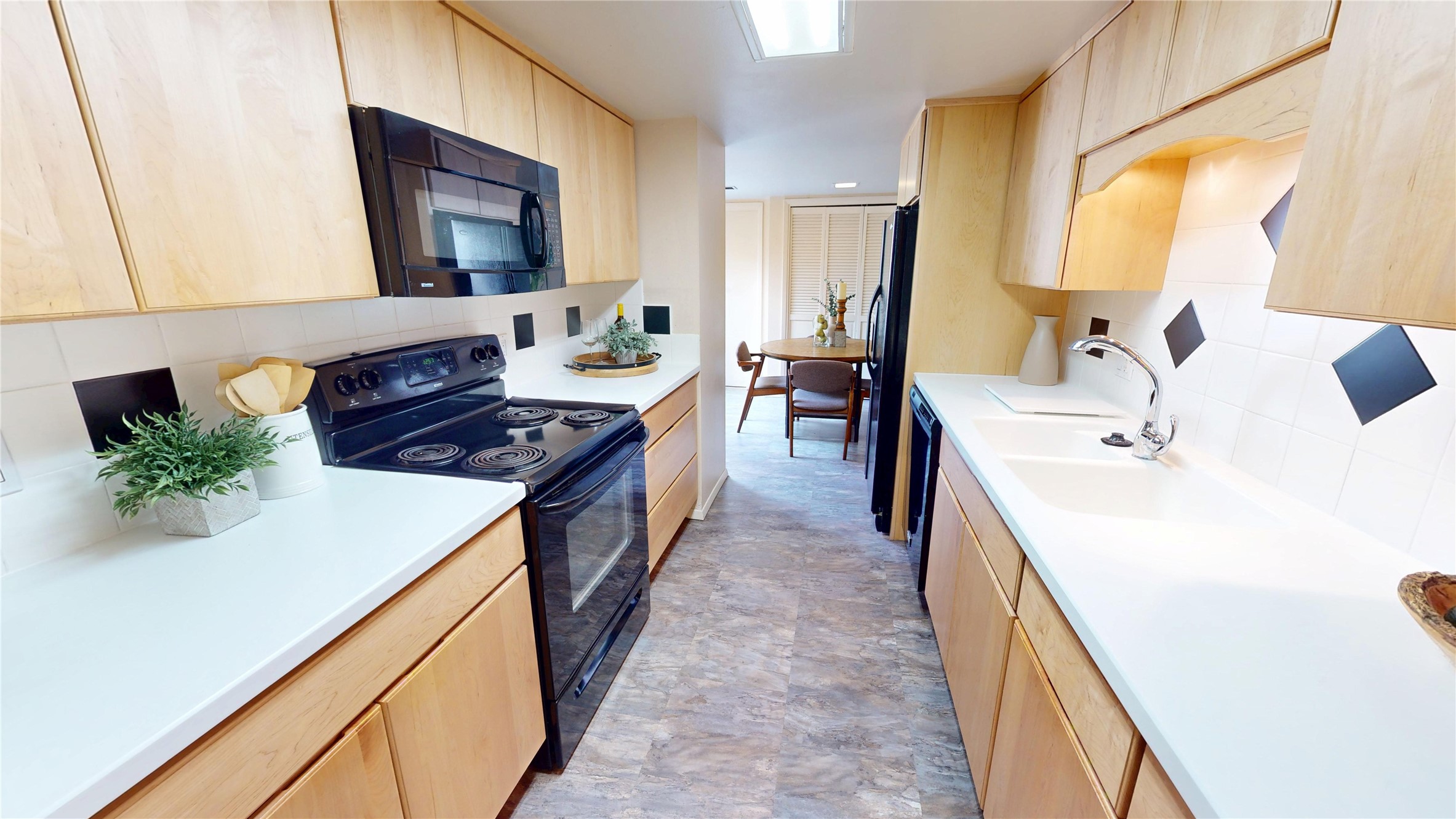 Tucked into a beautifully landscaped, tree-filled neighborhood, this 2-bedroom, 2-bathroom townhome offers comfort, convenience, and the relaxed charm of Los Alamos living. Mature pines and manicured grounds create an oasis-like setting that feels both connected and serene.A private walkway leads you to the welcoming entryway and into the spacious living room, where a wood-burning fireplace provides warmth and comfort. Large windows frame sweeping mountain and canyon views, the perfect backdrop for enjoying a cozy evening or watching birds and wildlife from the comfort of home.The updated kitchen features solid-surface countertops and warm maple cabinetry, combining timeless style with everyday function. Just off the kitchen, the inviting dining nook overlooks the private garden entryway--a cheerful spot for morning coffee. Nearby, a conveniently placed laundry closet and direct access to the spacious 2-car garage add everyday ease.Outdoor living is a highlight, with a private patio that invites you to dine al fresco or simply relax beneath the pines while enjoying the peaceful canyon views.Both generously sized bedrooms include en suite bathrooms, offering privacy and flexibility for guests, a home office, or hobbies. The primary suite is at the back of the home and enjoys south facing windows looking to the canyon.With its canyon setting, functional layout, and neighborhood that feels like a retreat, this home presents a rare opportunity to enjoy downtown Los Alamos living in a peaceful, low-maintenance setting.