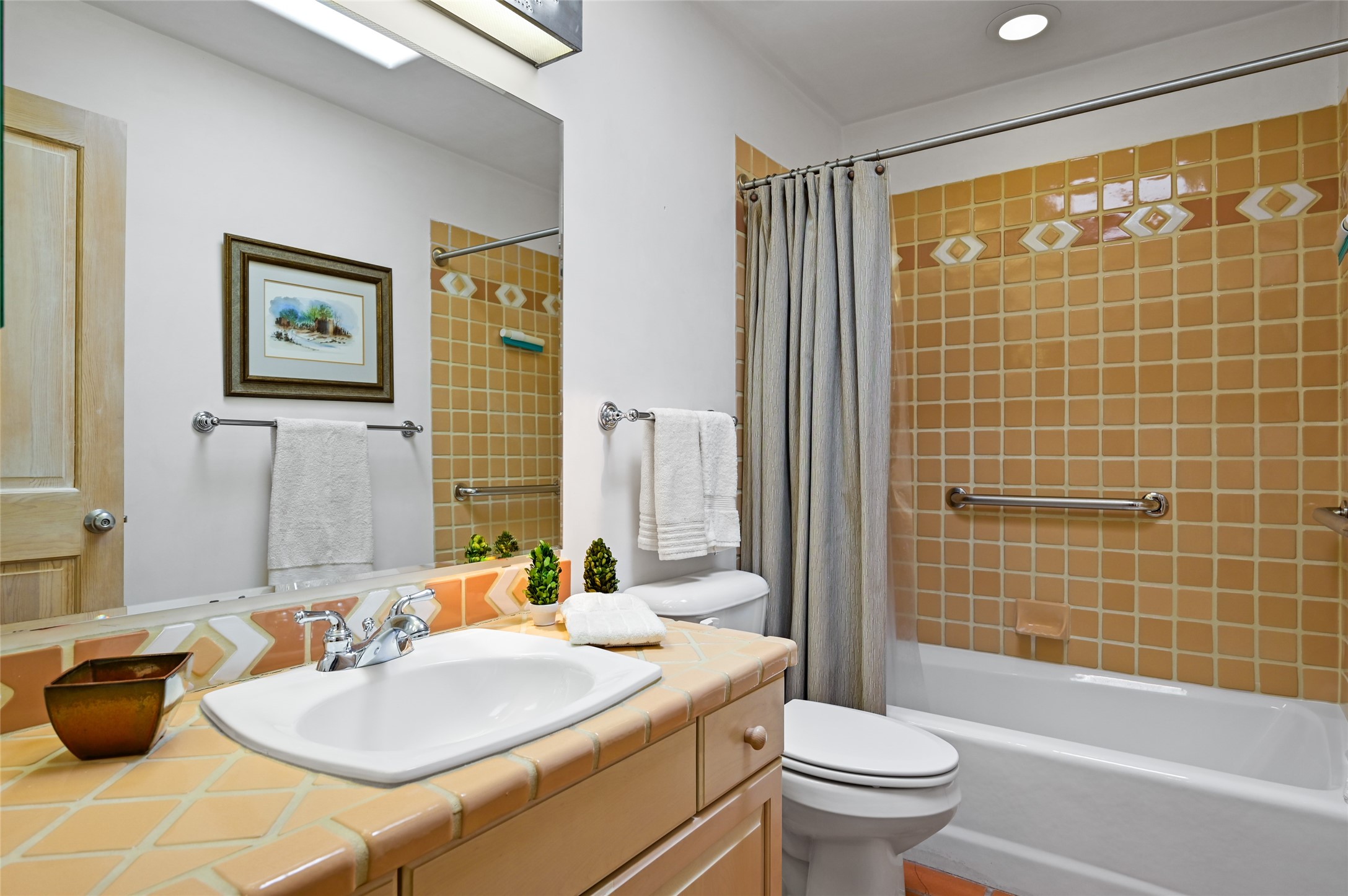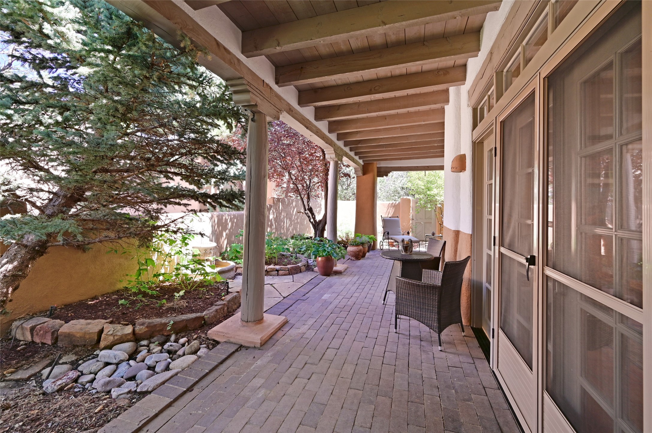 Worried about the HOA dues? Seller will pay 1 years' worth of dues for Quail Run's perfect condo -- a classic Pion C floorplan with two bedrooms plus an office/den! Step inside to discover plaster walls, Saltillo tile floors, and a traditional Kiva fireplace that create a warm and inviting atmosphere. Skylights throughout bathe the home in natural light, while the single-level layout with no steps offers comfort and ease of living.The kitchen features updated stone counters, a stylish backsplash, and generous cabinetry for storage and organization. The primary suite is its own retreat with a Kiva fireplace and access to the back courtyard while the adjoining bath includes a newer modern bathtub for relaxing at day's end and a double vanity and larger closest.The living spaces open to a covered back patio, complete with a gentle fountain, brick detailing, vigas, lush landscaping and charming corbels -- a private sanctuary for relaxing or entertaining. A spacious two-car garage adds convenience and storage.Ownership at Quail Run includes access to exceptional amenities: 24-hour hosted security, state-of-the-art fitness facilities, a swimming pool, golf, pickleball, fitness classes, social gatherings, and its own restaurant!Come see why this special home in Quail Run offers the perfect blend of Santa Fe style and resort living.