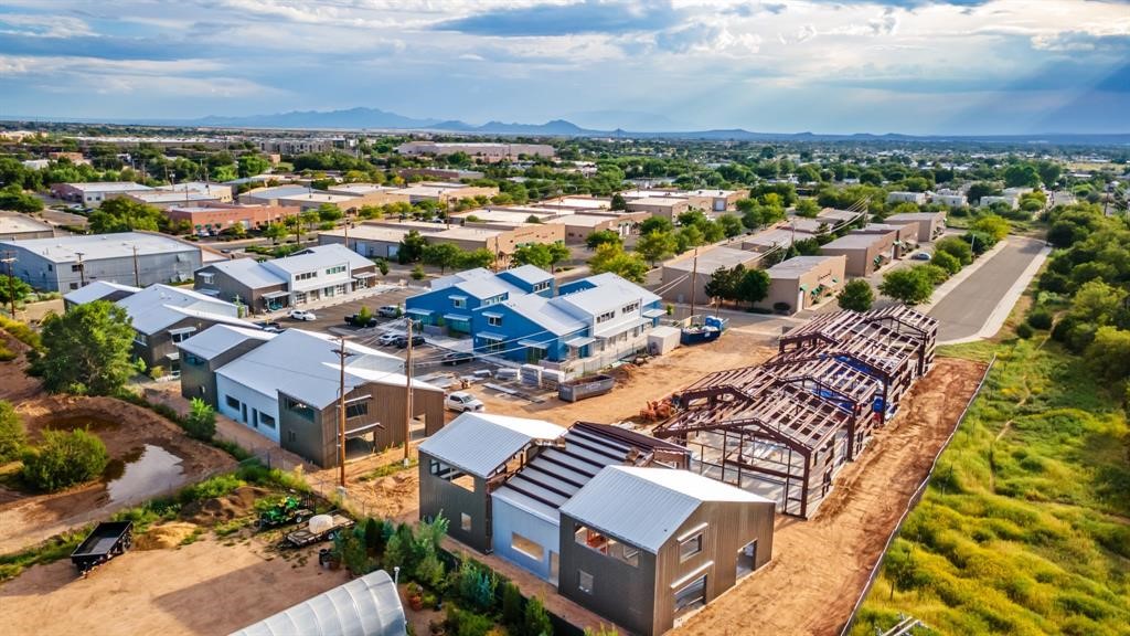 The Studios at Parkway is Santa Fe's newest commercial, industrial, and flex-use condominium development, ideally located in the burgeoning Warehouse and Arts District of Siler/Rufina. Designed to inspire creativity and support growth, the community will total 29 units, with Phase II's 14 units scheduled for completion in Spring 2026. Already home to thriving businesses including Wild Leaven, F1 Cyclery, and 2Faded Barbershop, The Studios offers durable metal buildings with an industrial aesthetic and contemporary design. Each unit features 1,677 heated square feet with soaring 24-foot ceilings, expansive storefront windows, and roll-up aluminum glass garage doors that flood the interiors with natural light. Thoughtful finishes include polished concrete floors, LED lighting, smooth drywall, and handcrafted steel staircases with oak treads, while provisions are stubbed for kitchens and showers to allow flexible use. Wide sidewalks provide opportunities for seating, shipping, and receiving, and the landscaped grounds create an inviting atmosphere for both visitors and tenants. Zoned I-1, the property accommodates a wide range of uses--from offices and galleries to light industry, wellness studios, and artisan workshops--and with solar-ready rooftops and its location within a Federal Opportunity Zone, The Studios at Parkway presents both a dynamic environment for businesses and a compelling opportunity for investors. Multiple units can be combined together for larger spaces.