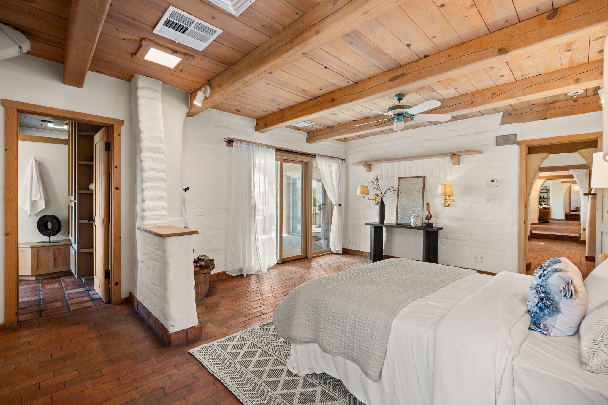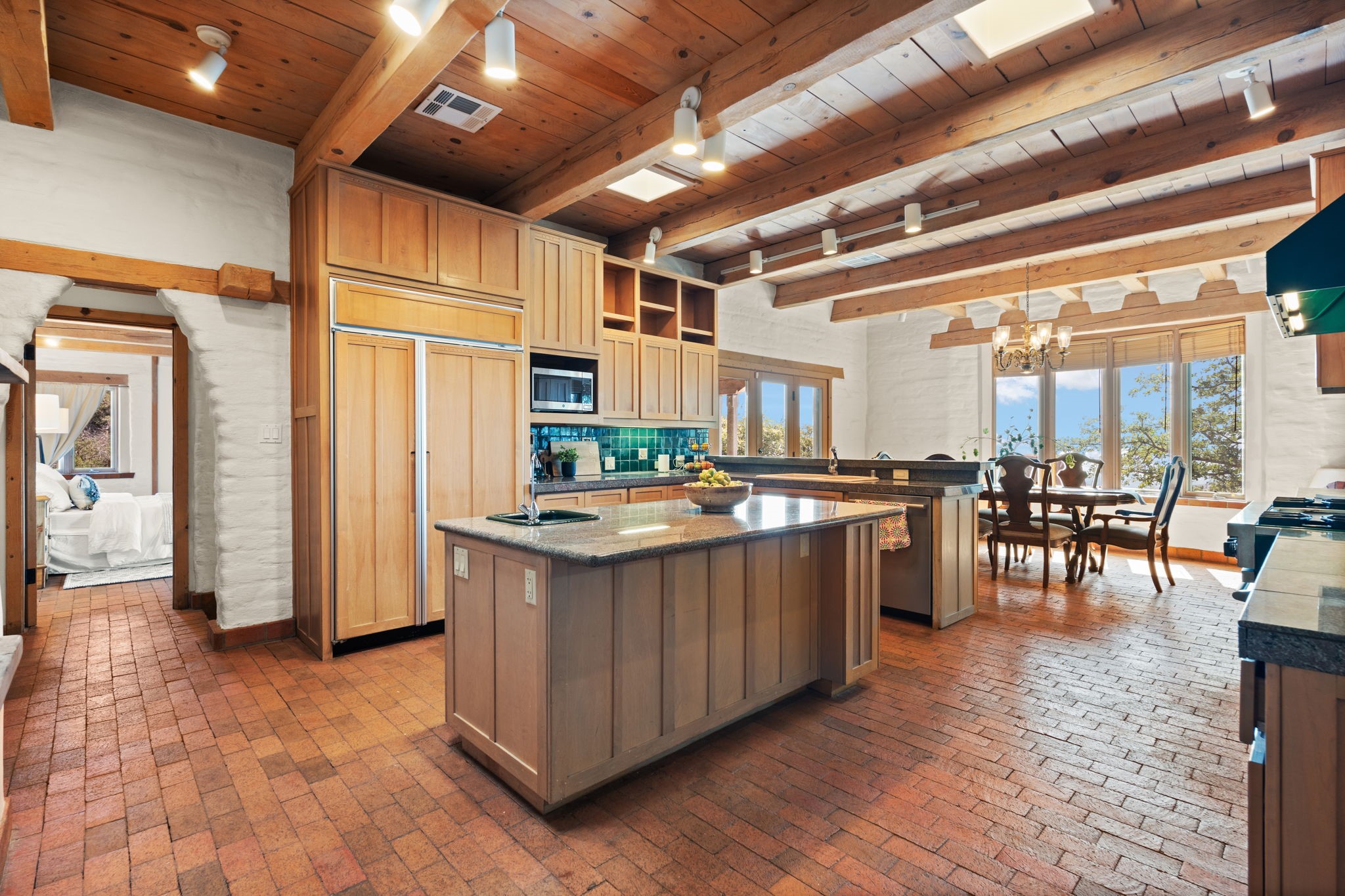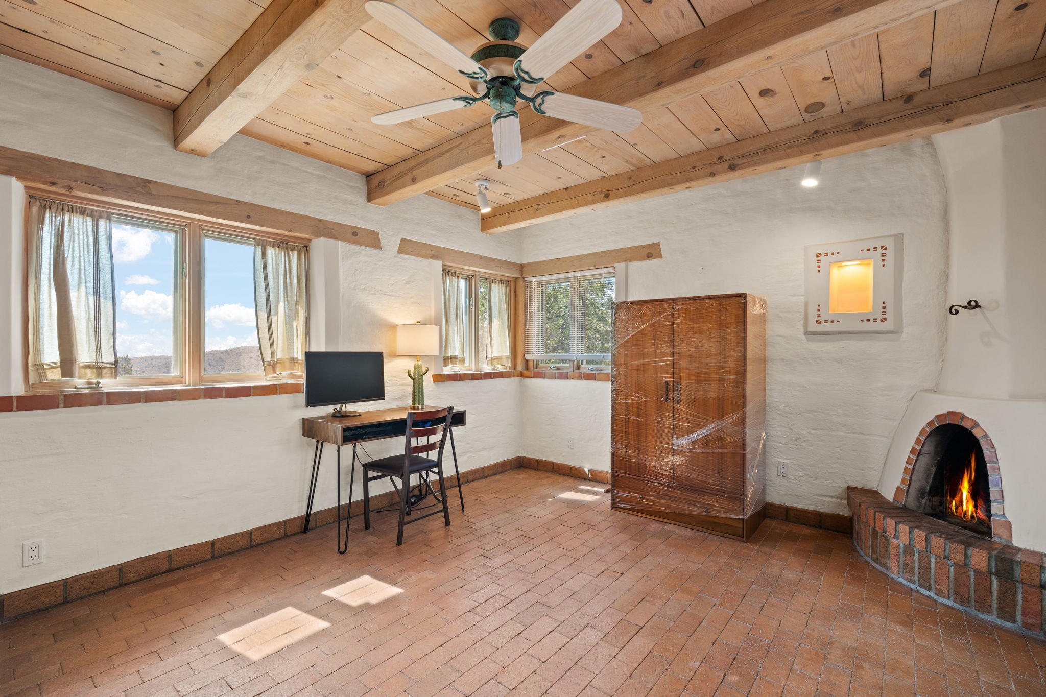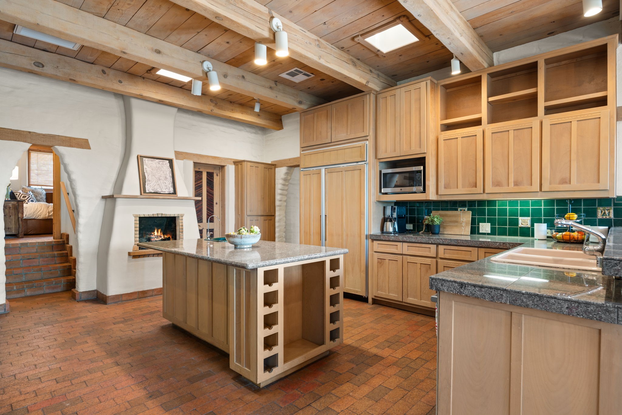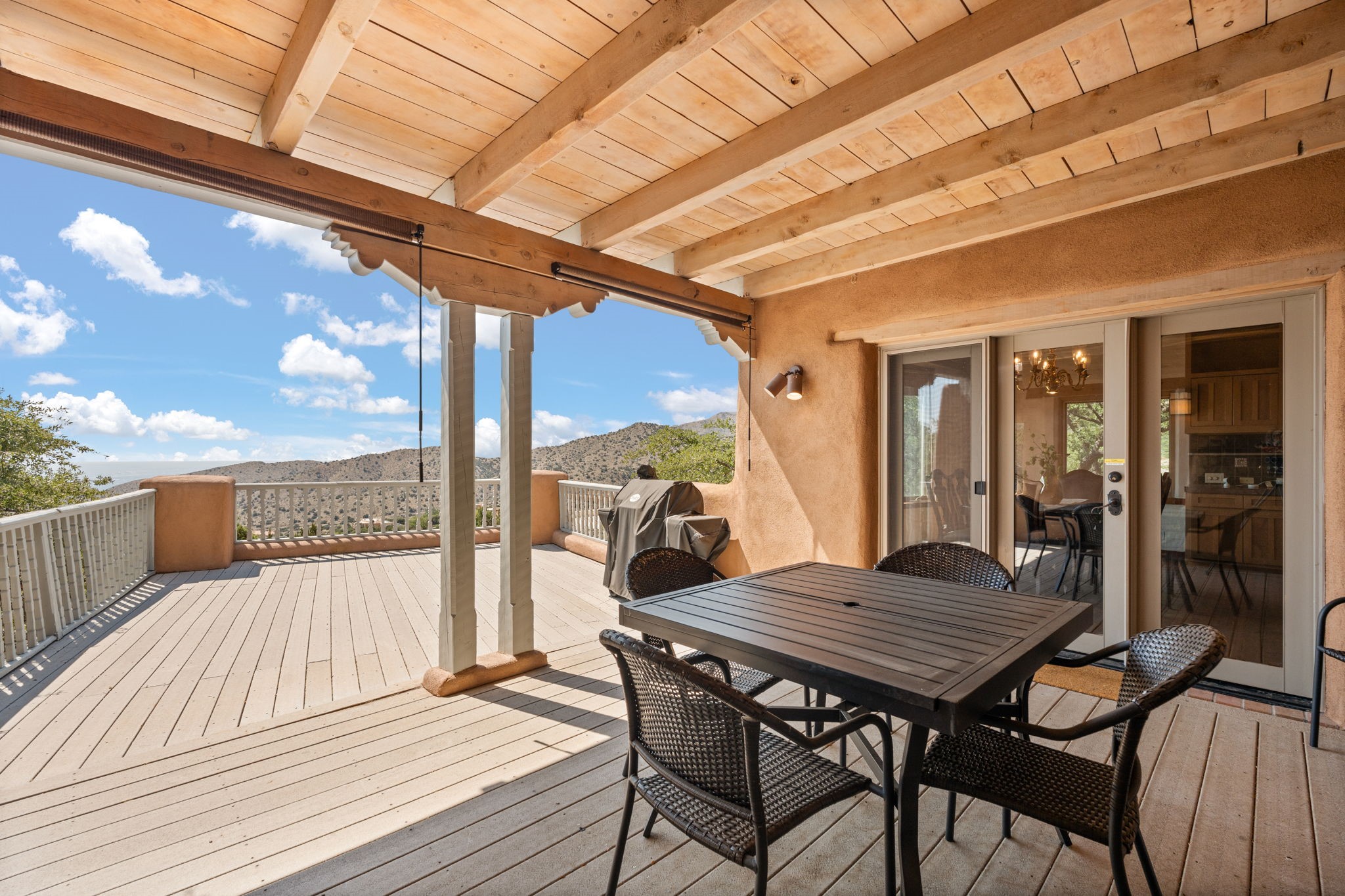 This Charming and authentic Adobe home in Tierra Monte offers a rare blend of luxury living and natural splendor at the base of the iconic Sandia Mountains. This spacious 3,680 sq. ft. residence is thoughtfully designed with updated roofing and mechanical systems, ensuring both comfort and elegance. Step inside to discover adobe construction, beamed ceilings, and a gourmet kitchen featuring a massive granite island, a veggie sink, a Viking gas range and double ovens, a Sub-Zero fridge/freezer, and an incredible deck off the kitchen and the primary bedroom suite, perfect for entertaining or relaxing after a long week. The interior boasts five fireplaces, brick, Saltillo, and carpet flooring, and windows that frame breathtaking vistas. Set on a private lot, the home offers unparalleled....privacy and panoramic views of dramatic sunsets, starlit skies, and the rugged cliffs of the Sandias. Enjoy serene mornings on your patio, watching the ever-changing light play across the peaks, or unwind in the jetted tub after exploring the famed La Luz Trail, a world-renowned hiking destination just steps from your door. The property is ideally located within the sought-after 87122 zip code, with top-rated schools nearby. It's more than a home, it's a gateway to adventure and tranquility, offering a lifestyle defined by outdoor beauty and classic Pueblo architecture. It could be your ABQ Dream Home!