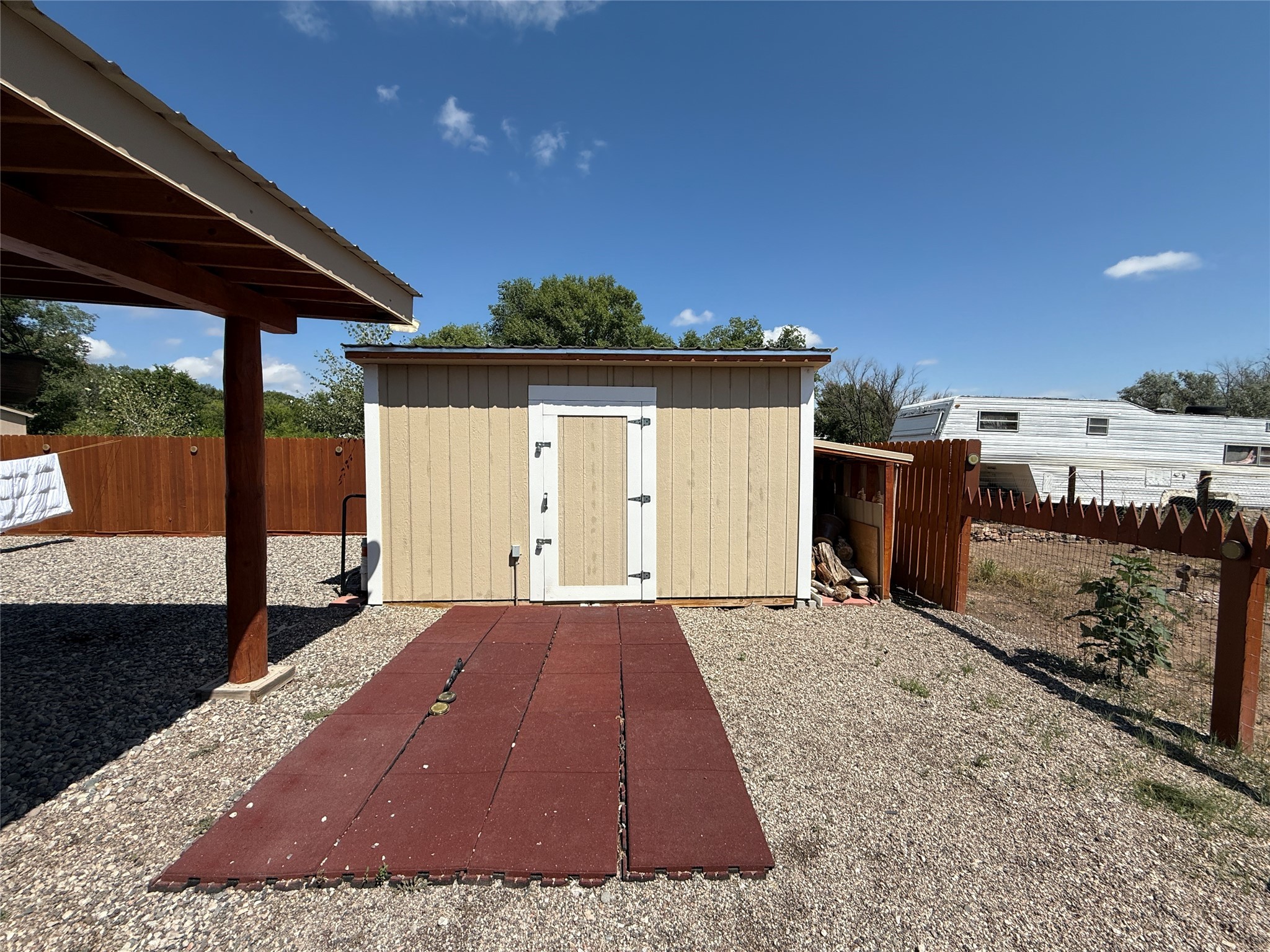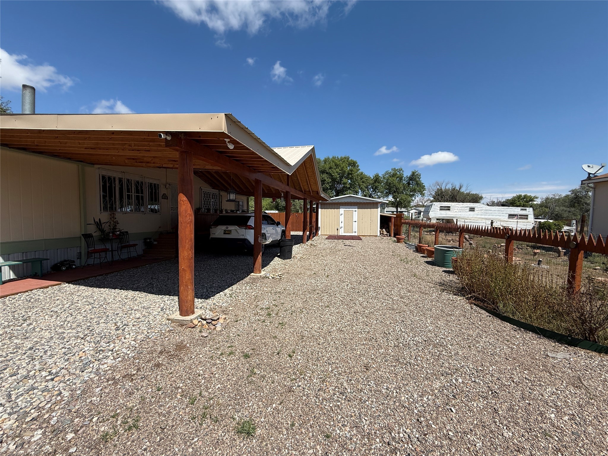 Welcome to this beautifully maintained home located near the Rio Grande River in the heart of Espaola, NM. Nestled on Angel Duran Drive, this 3-bedroom, 2-bath gem features recently remodeled bathrooms that blend comfort and modern style. Enjoy the convenience of a spacious carport and an additional storage shed, perfect for your tools, hobbies, or seasonal items. The large, landscaped yard offers a serene outdoor retreat, ideal for entertaining or simply relaxing.Don't miss your chance to own a well-cared-for property in a peaceful neighborhood with natural beauty just moments away!
