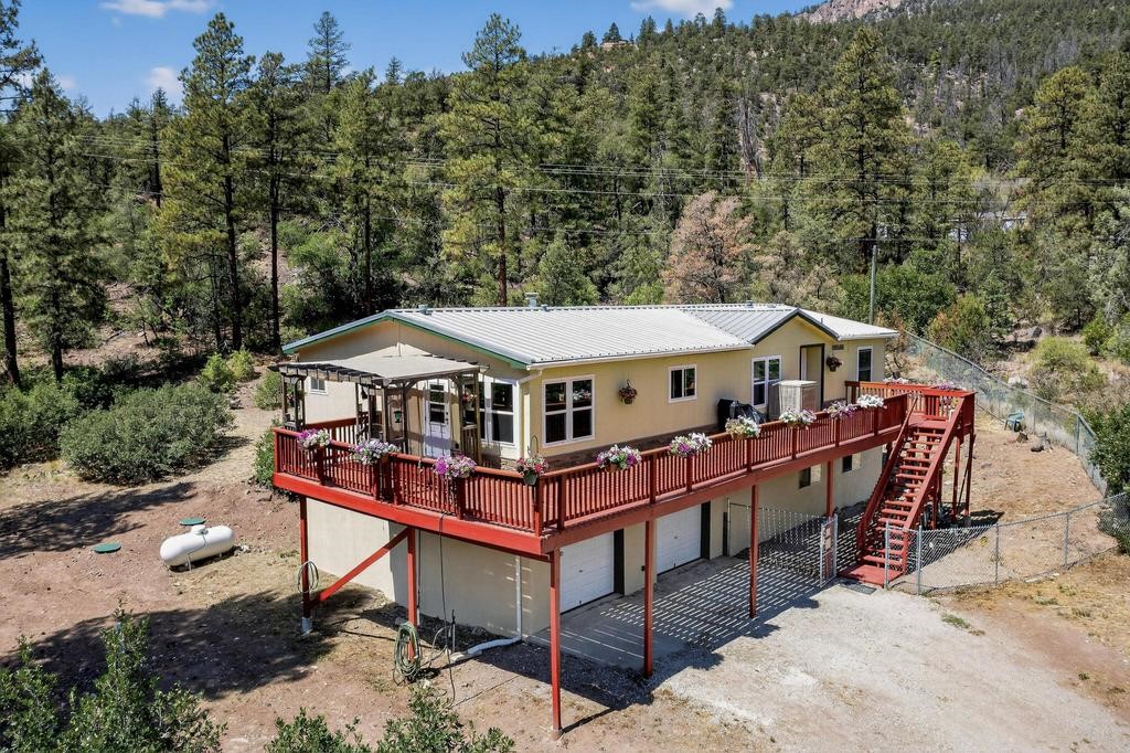 New Price- Come see this Spacious 5 Bedroom Home in Gorgeous Jemez! Top level features bright country kitchen, cheerful living room, fireplace, 3 bedrooms & two full baths. Freshly painted deck with pergola extends living space outdoors where morning coffee, evening meals & starry nights become part of daily life.The custom engineered lower level has its own entrance and was purpose built for strength and efficiency. This level offers two bedrooms, two spacious living areas, and a three quarter bath. Perfect for a second suite, guest wing, studio, or private rental. The 28x60 foam form monolithic foundation with ten foot walls adds long term durability and energy savings.Recent updates improve comfort throughout. Fresh interior and exterior paint, new sinks and faucets, a new primary bath vanity, six new lower level windows, upgraded upper level windows, and a brand new fifteen hundred gallon septic tank. A Whitfield pellet stove provides efficient heat and the oversized garage offers generous room for vehicles, tools, and storage.For animals and outdoor use, the property includes a dedicated half acre corral with feed shed, plus surrounding natural landscape for exploration, gardening, and future ideas. Two combined parcels, 11B and 11D, contribute additional privacy and flexibility. A two hundred twenty outlet is ready for larger projects.The location is rich with recreation. Public lands nearby offer riding, hiking, hunting permitting, Valles Caldera National Preserve provides skiing, fishing, endless trails. The mineral hot springs, restaurants, & shops of Jemez Springs are just minutes away.Access is practical for year round living. The home is near the start of the road which simplifies winter driving. Schools and bus stops are close and Los Alamos is approximately forty five minutes with Albuquerque and the Sunport about an hour away. This is abbsolutely one of the most compelling five bedroom opportunities in the Jemez Mountains.