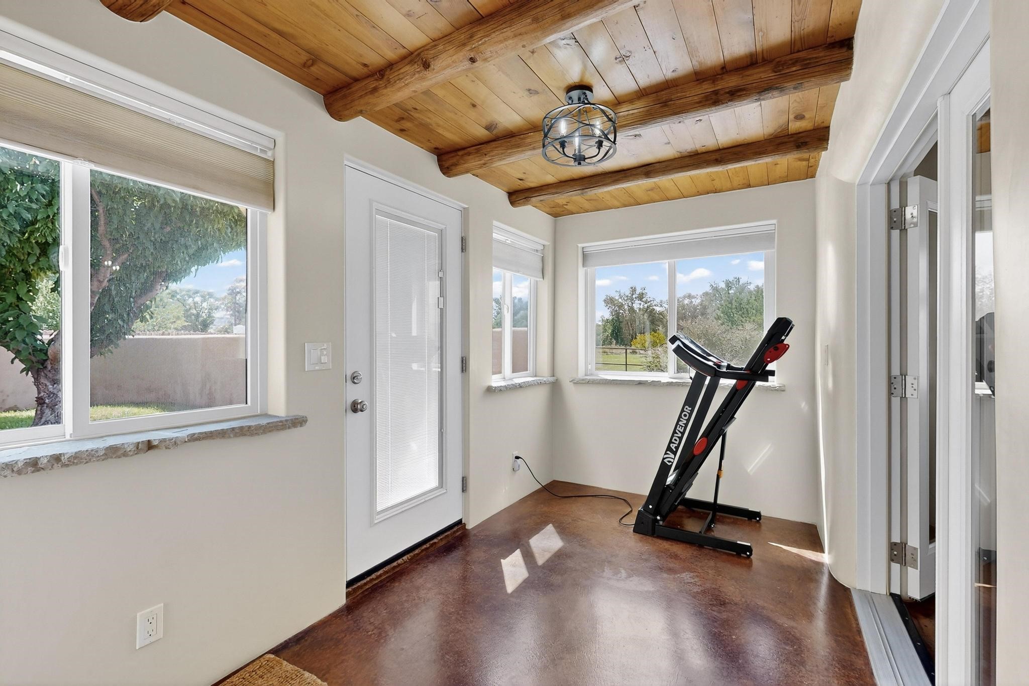 - Interior FeaturesBeamed Ceilings, No Interior Steps