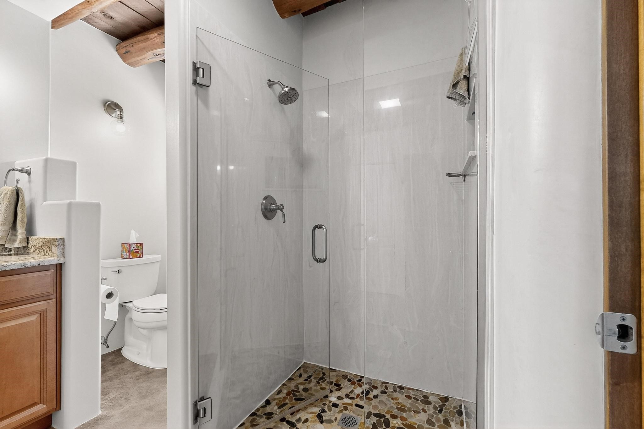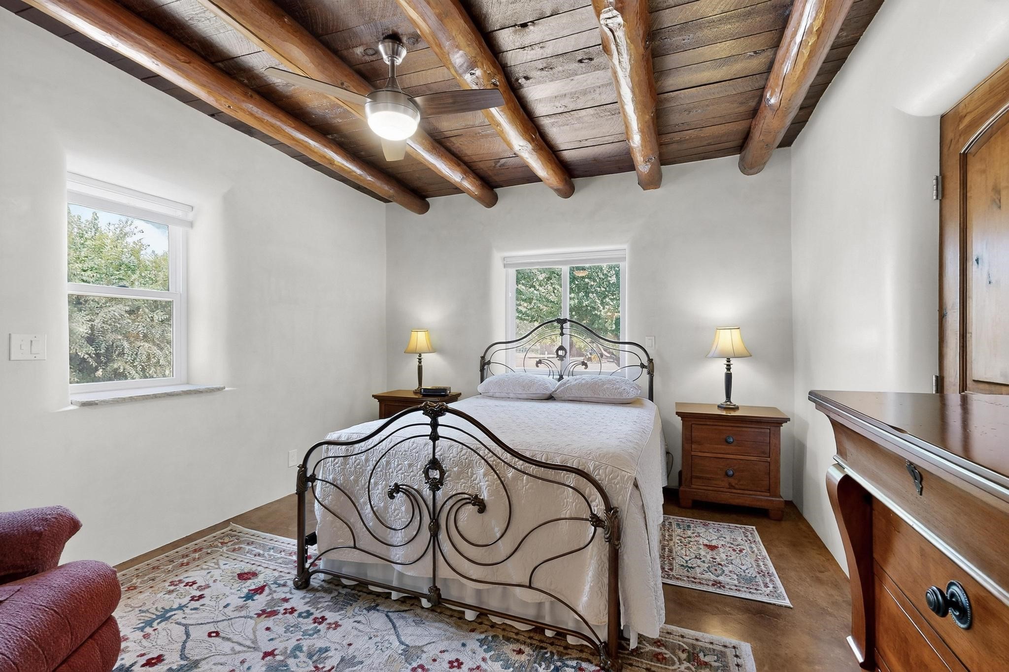 Beautiful home located in Pena Blanca. The home is located on .52 +/- acres. Outdoor areas include a walled courtyard with mature landscaping, fruit trees, and a small vineyard and 2 covered parking spaces. Adobe built home with stunning finishes such as viga ceilings, stained concrete floors, diamond finished walls and archways. The kitchen boasts granite countertops and an eat-in island with a separate large formal dining room. A 10X14 adobe storage building and a 10X12 Morgan Metal Storage is also located on the property. The property has community water plus a private well for irrigation. The private septic system is maintained by the community water and sanitation district. Newly replaced electrical and plumbing/heating/cooling systems. Easy commute via I-25 to Santa Fe and Albuquerque. Convenient access to Cochiti Lake.