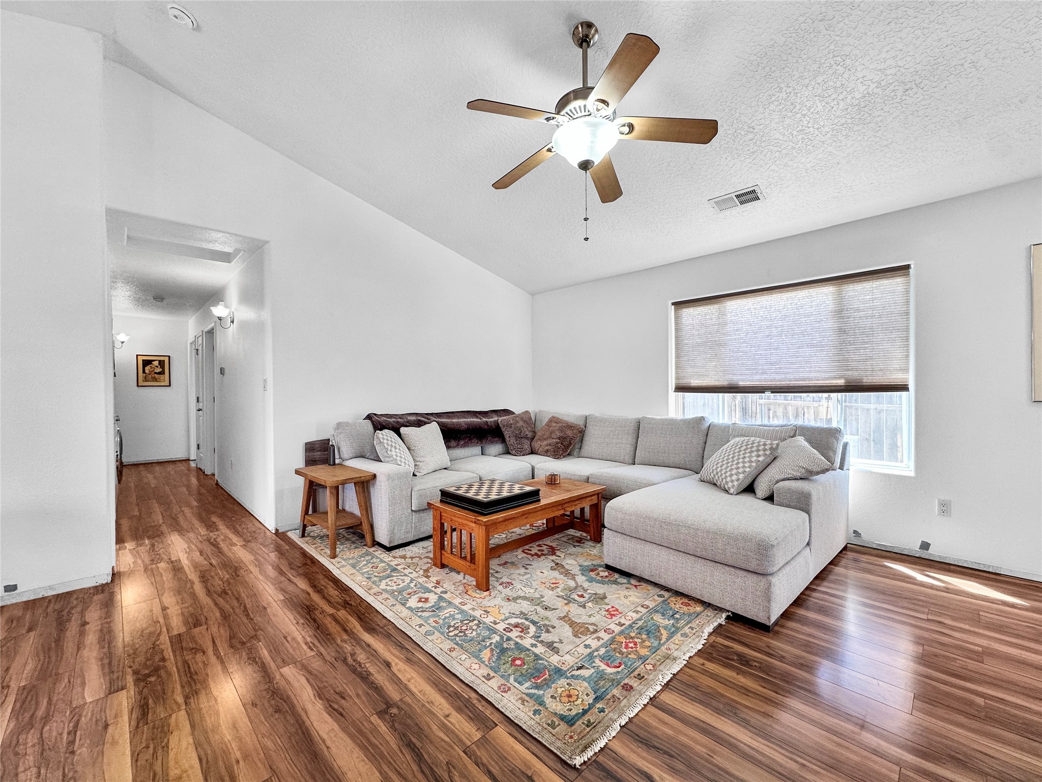 Come view this cozy three bedroom, two bathroom, two-car garage home. Nestled in a centrally located neighborhood, this home offers convenient access to multiple main roads, shopping, and bike trails. Inside, the home offers and comfortable and functional layout that creates a comfortable living space for all. The design balances privacy and openness, with bedrooms in the back and common areas in the front of the home. The backyard is the perfect size for relaxing and entertaining without needing a lot of maintenance.