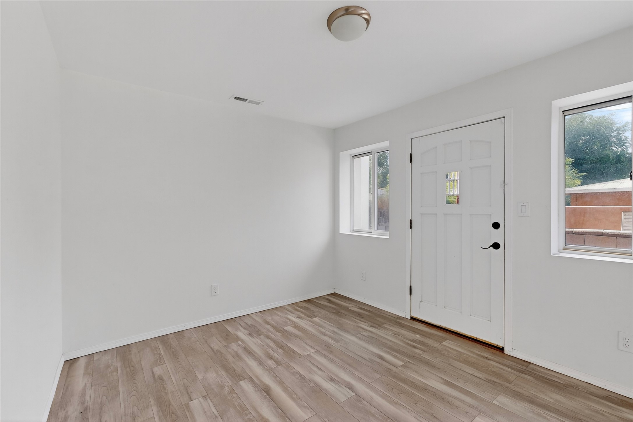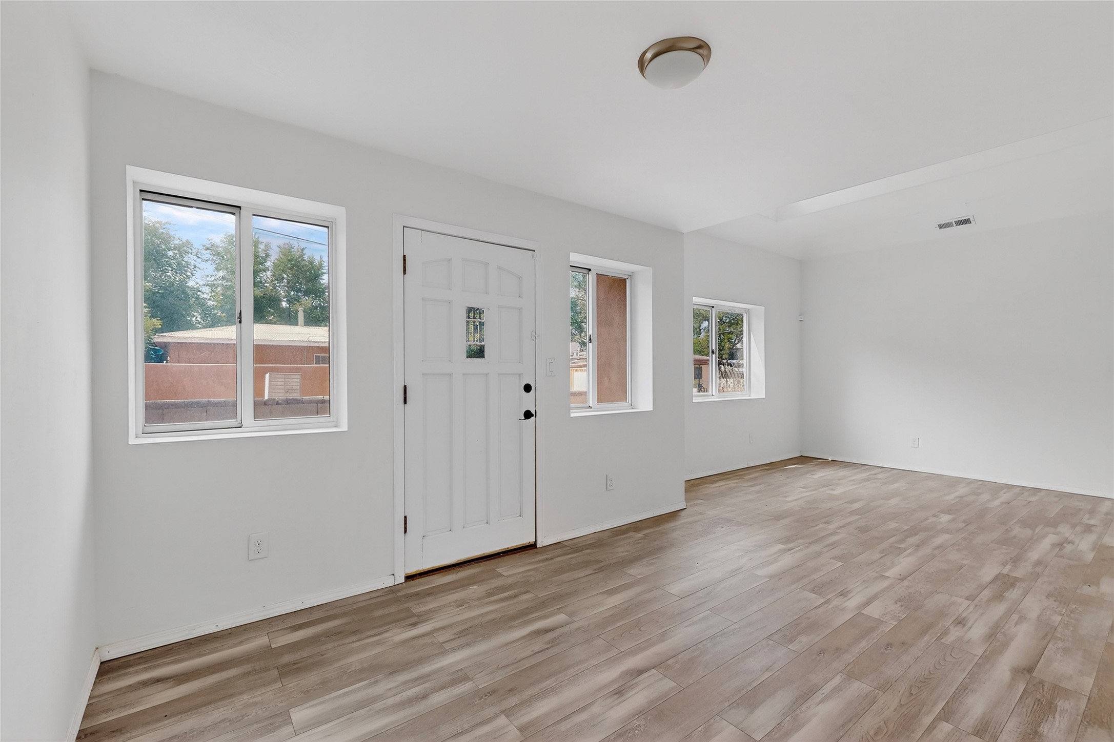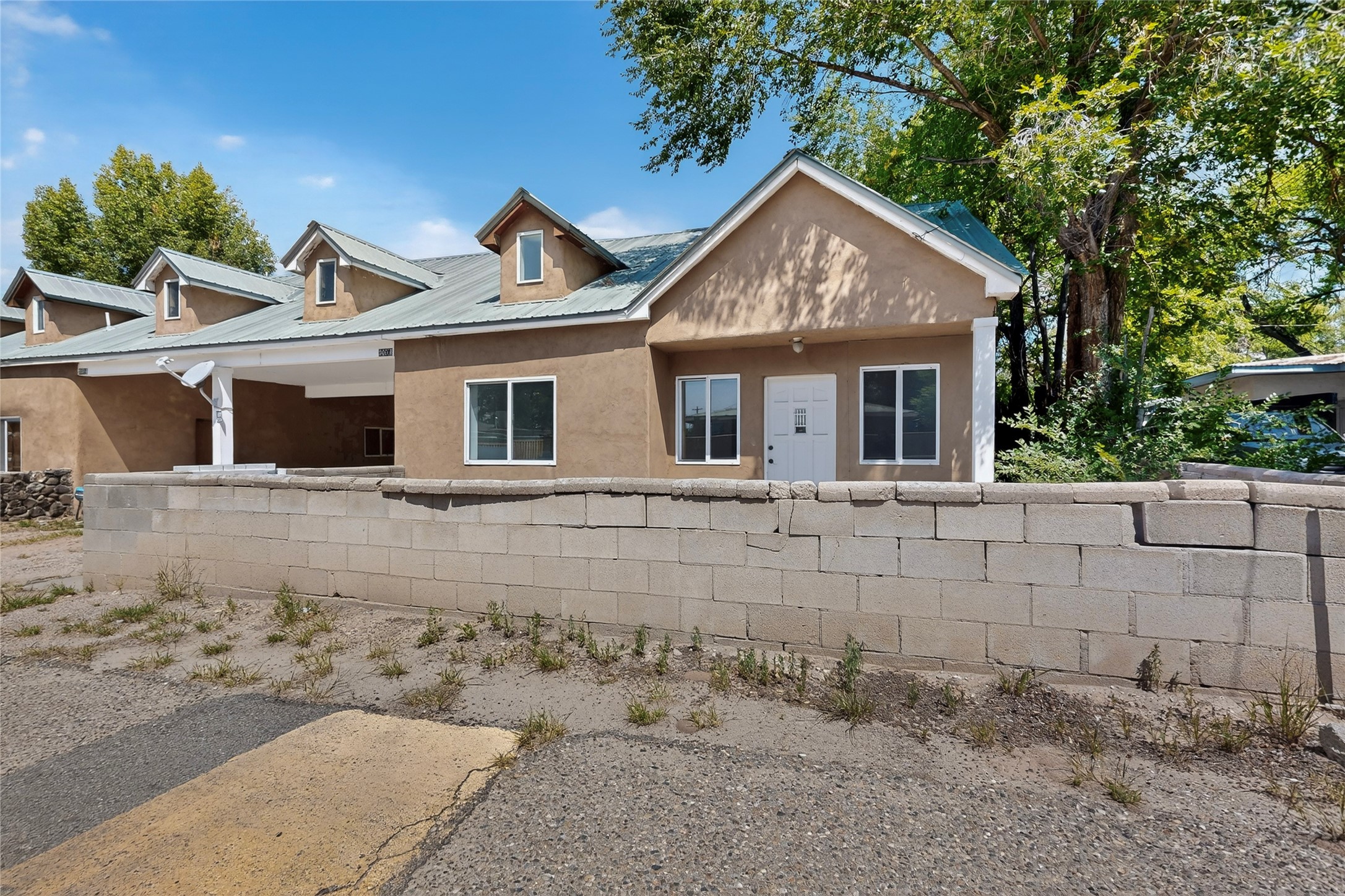 Located in Espanola, off of Riverside Drive, is a moderate sized Spanish style, adobe compound. There is a main home with oak flooring in the common areas, as well as, Saltillo tile. The bancos located throughout the house, provides that old fashioned, traditional sitting space that one could easily soften up, utilizing cushions and throw pillows. The Mexican tiled bathrooms add to the authenticity of the home design. The ceilings, in the common areas, are adorned with the traditional, Northern New Mexico vigas and latillas. A unique focal point, is the carved pillars that border two separate verticals walls and intersect with a horizontal carved beam, bordering the ceiling. The little touches added to the main home, accents Spanish Colonial charm the home represents. There is an attached two car garage (633 sqft) with storage space. There is a smaller dwelling attached to this home by the carport between the two structures, that together, represents the amazing Spanish Colonial architecture brought to the new world by the Spaniards in the late 15 hundreds. The pitched roof and dormers, along with the private courtyards, and the adobe construction, takes a person back in time. The photos tell the rest of the story. Together, multiple families could live in the compound. The compound could also serve as office spaces or home and offices. An incredible place to live or work, surrounded by old fashioned, traditional charm and comfort. Please, be sure to look through the photos and walk through the homes, as you view the 3-dimension videos. An easy 20 to 45 minute drive to Santa Fe, Los Alamos, Taos, and Abiquiu.