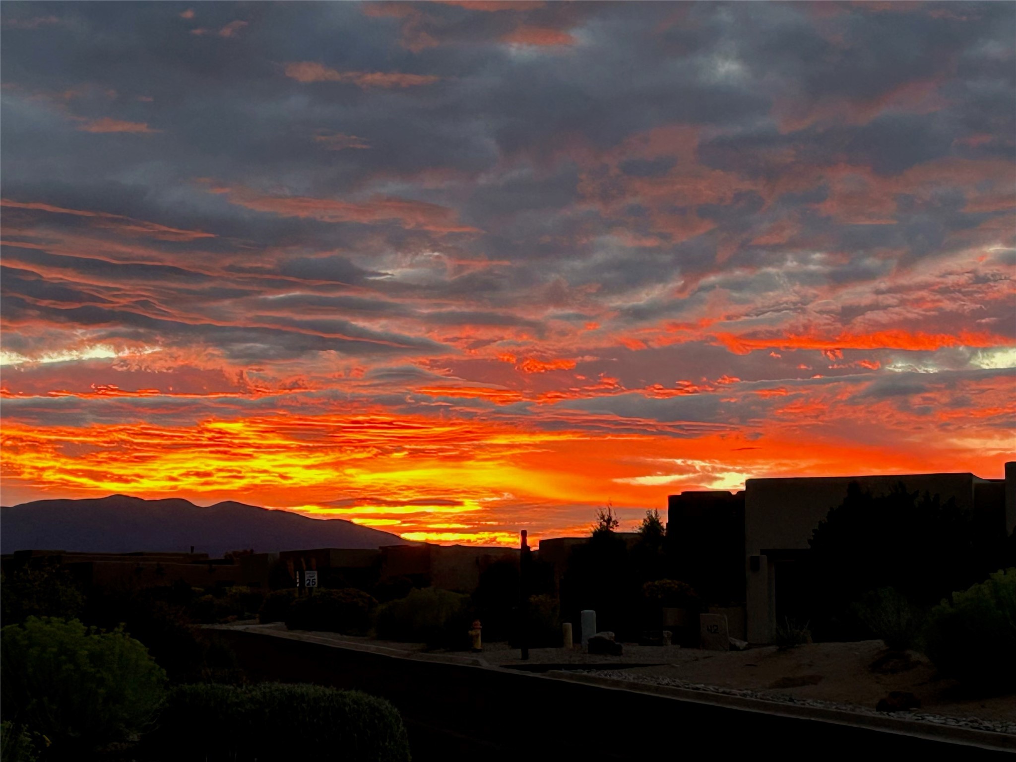 Exceptional value on this move in ready Las Campanas Contemporary Pueblo RetreatWhere contemporary design meets timeless Santa Fe elegance, this 3,715-square-foot single-level residence offers the perfect balance of sophistication, privacy, and sweeping mountain views. Completed in 2023, this home features upgraded modern finishes and is nicely sited on a corner lot -- backing to open space to the west.Light-filled and beautifully proportioned, the open-concept layout flows effortlessly between the living, dining, and outdoor spaces. The great room features beamed ceilings, a sleek gas fireplace, and panoramic views of the Jemez Mountains--capturing Santa Fe's legendary sunsets in every season.At the heart of the home, the chef's kitchen is both striking and functional, equipped with upgraded Wolf, Sub-Zero, and Asko appliances - including a six-burner double oven range, built-in convection oven and microwave, and dual dishwashers. Granite countertops, crisp white cabinetry, and a generous island create a gathering space as stylish as it is practical.The primary suite is a private sanctuary with breathtaking mountain views and a spa-like bath featuring dual vanities, a dedicated makeup area, and luxurious finishes. A separate guest suite with its own living area offers comfort and independence for visitors, while a dedicated office adds flexibility for work or creative pursuits.Outdoors, beautifully landscaped patios extend the living space--perfect for dining al fresco, entertaining, or simply enjoying the quiet beauty of the high desert. An oversized two-car garage offers abundant space for vehicles and storage.Located just minutes from The Club at Las Campanas, where fine dining, golf, fitness, and spa amenities await (membership optional), this residence embodies modern Santa Fe luxury--panoramic views, refined design, and tranquil living in one of the city's most prestigious communities.