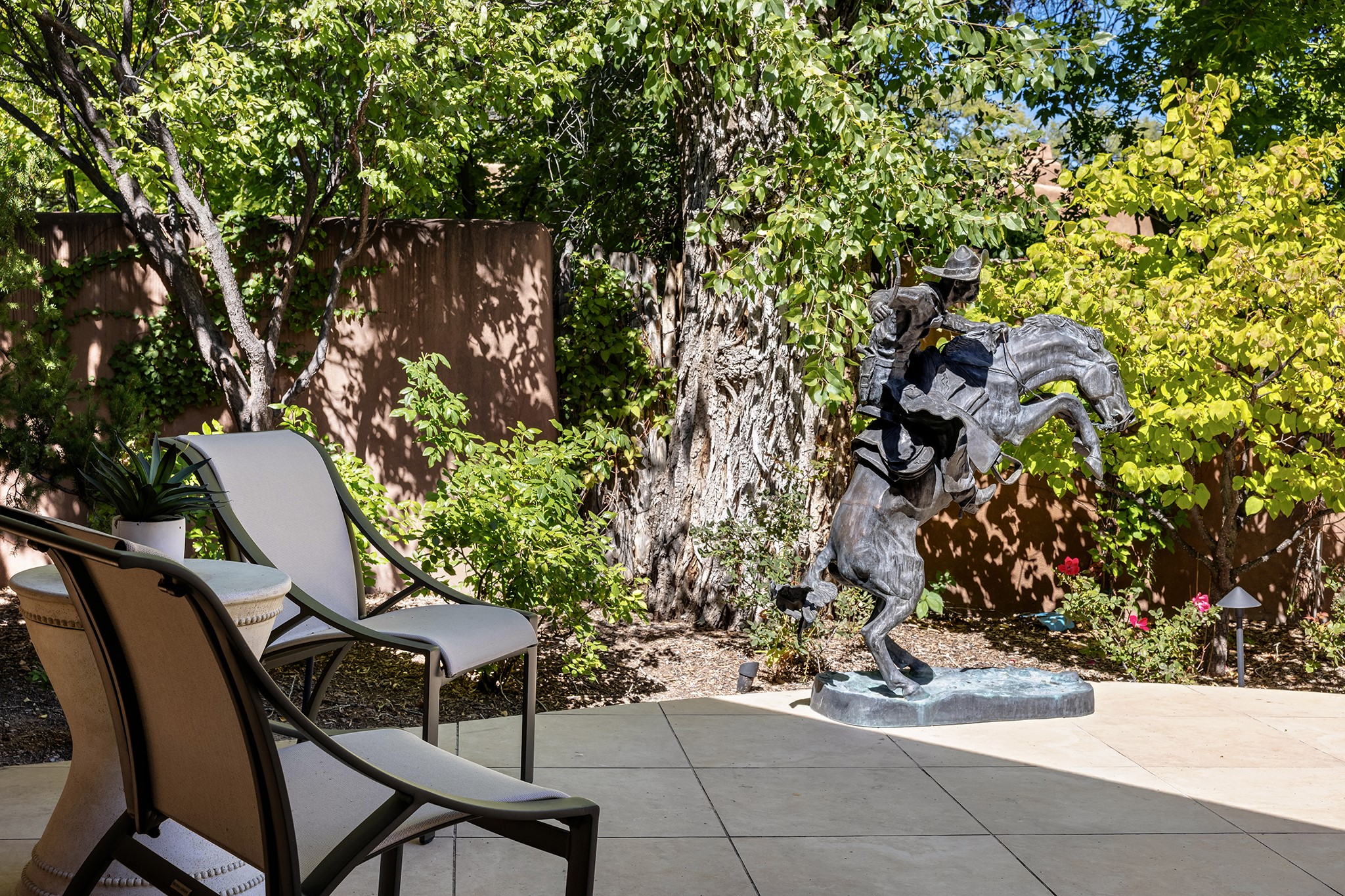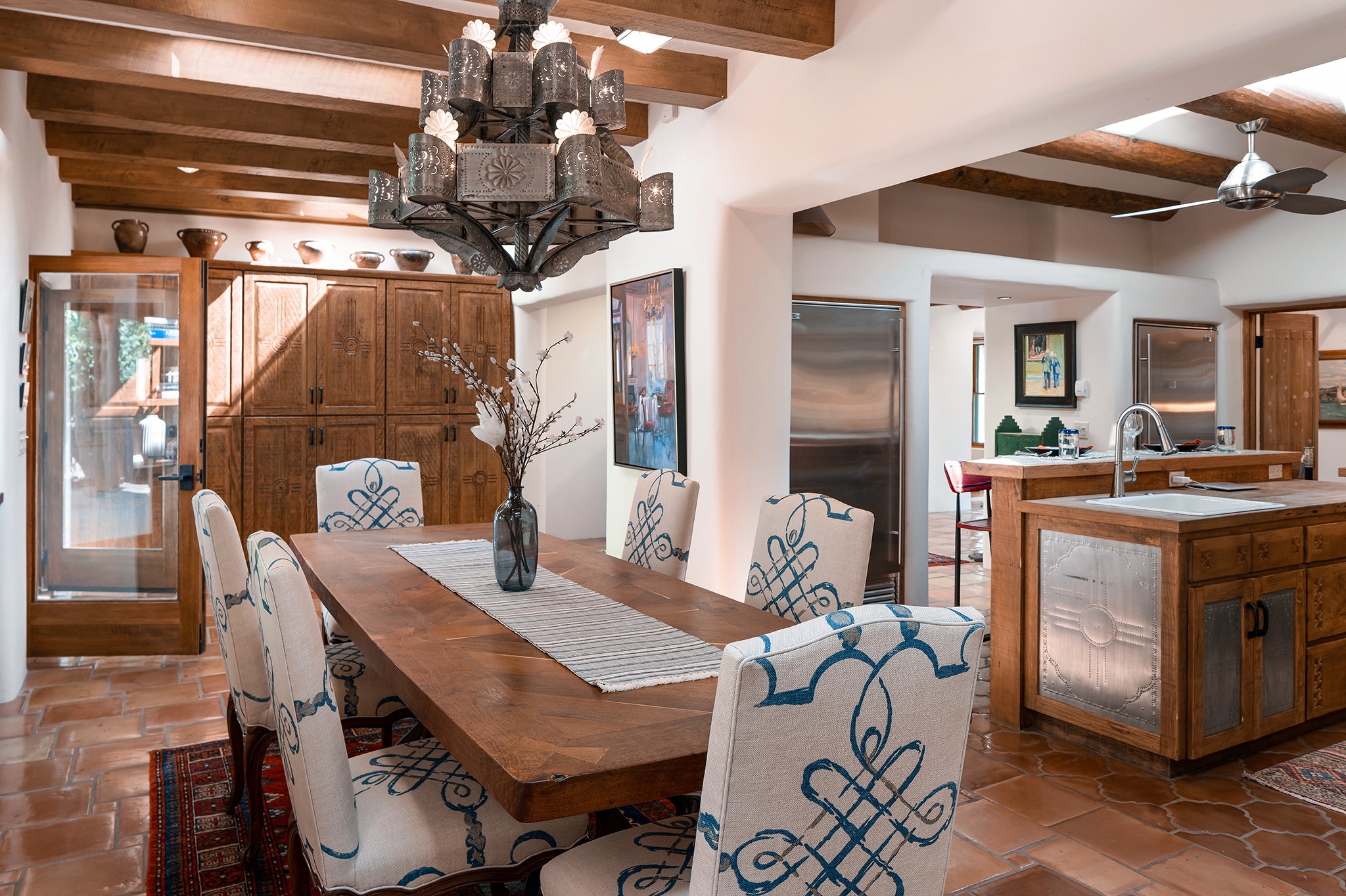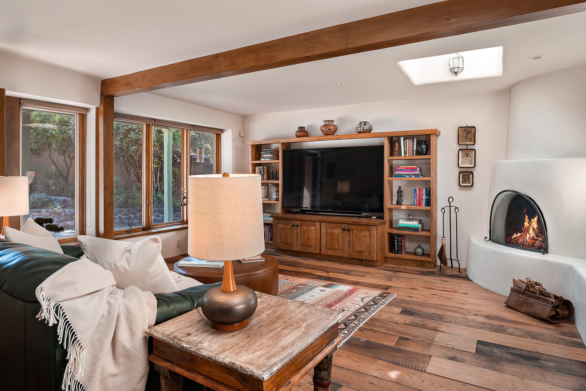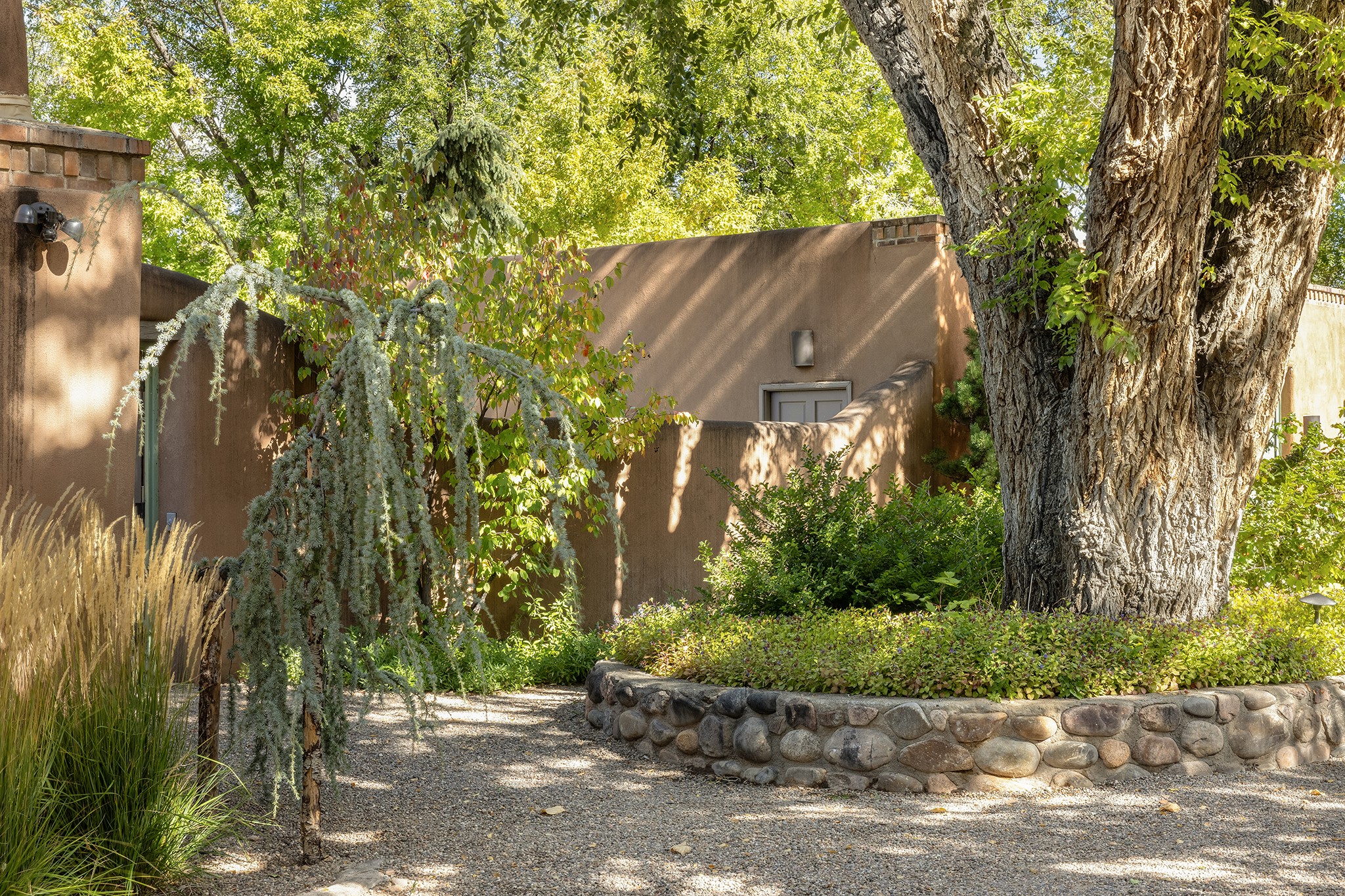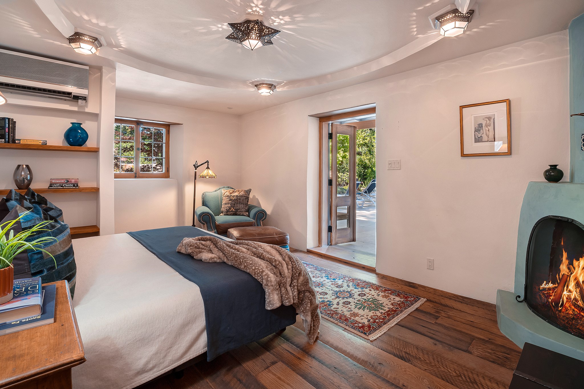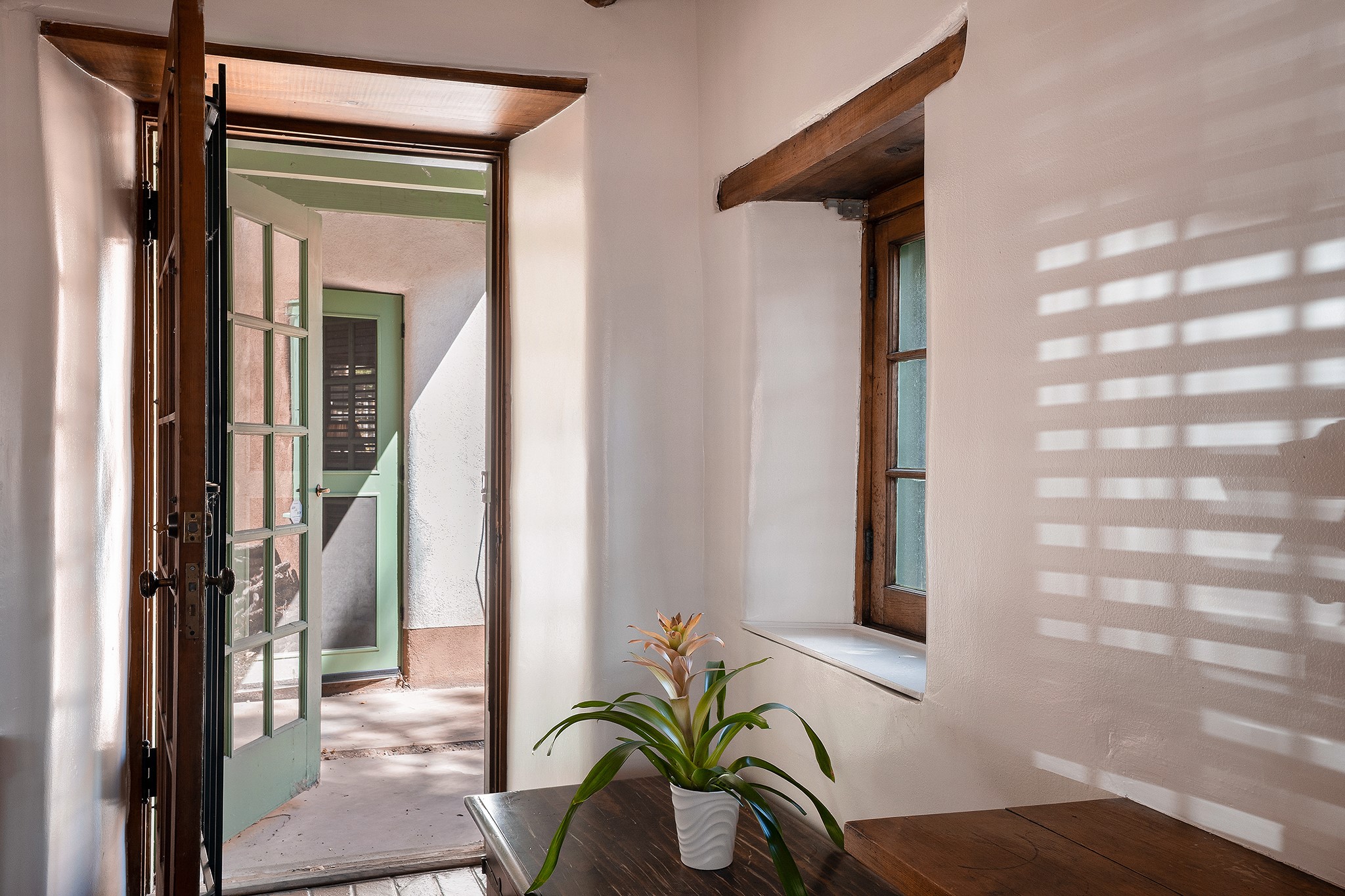 481 Arroyo Tenorio, behind an iconic stonewall in the heart of the Historic East side and the Acequia Madre runs through it! Tucked away and gated on a serene lane in the coveted Historic District is this enviable compound which blends traditional Santa Fe architecture with modern comforts. Thick plastered walls, vigas, coved ceilings, and multiple fireplaces create warmth and authenticity, while large windows and French doors invite abundant natural light. An elegantly designed pool, hot tub and extended outdoor living space and vegetable garden were added in 2022. The main house flexible floor plan offers gracious living and dining areas, a well-appointed kitchen, two private bedroom suites , additional guest bedroom , 2.5 baths office and media room. Perfect for full-time living or part time with privacy and security . The guest house features one bedroom , one bath , living area ,dining and kitchenette. Outdoor living is equally inviting, with lush, landscaped gardens, flagstone patios, and shaded portals ideal for entertaining or quiet retreat.Just moments from Canyon Road, the Plaza, and some of Santa Fe's finest restaurants and galleries, around the corner from famous local Downtown Subscription coffee shop and Garcia Street Books. This home provides the perfect balance of privacy and proximity. A rare opportunity to own a classic East side property in one of the city's most sought-after neighborhoods.