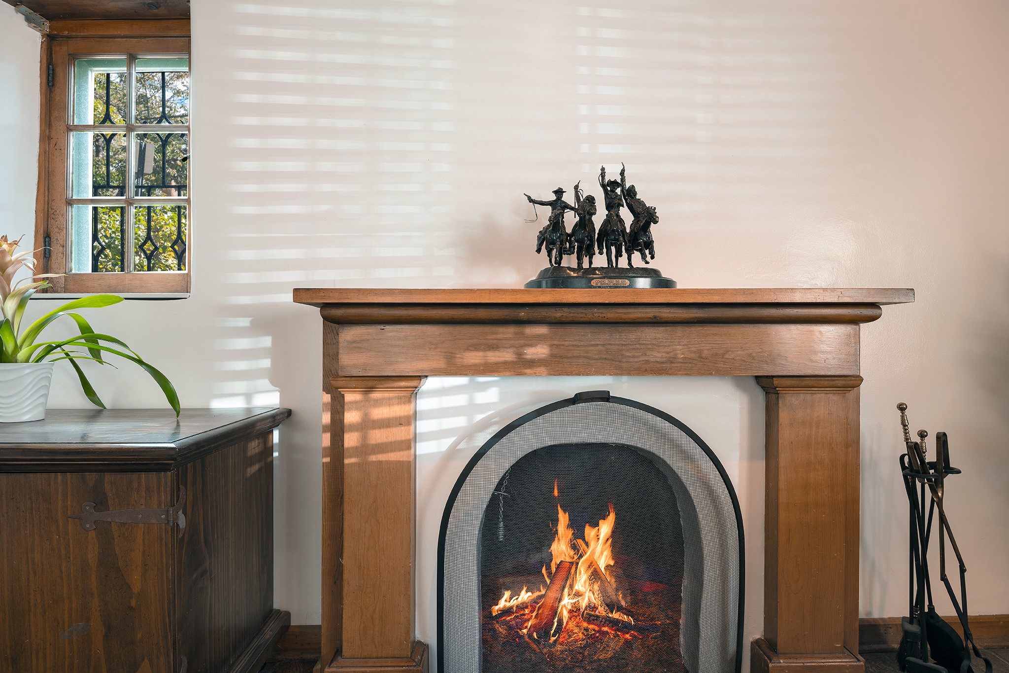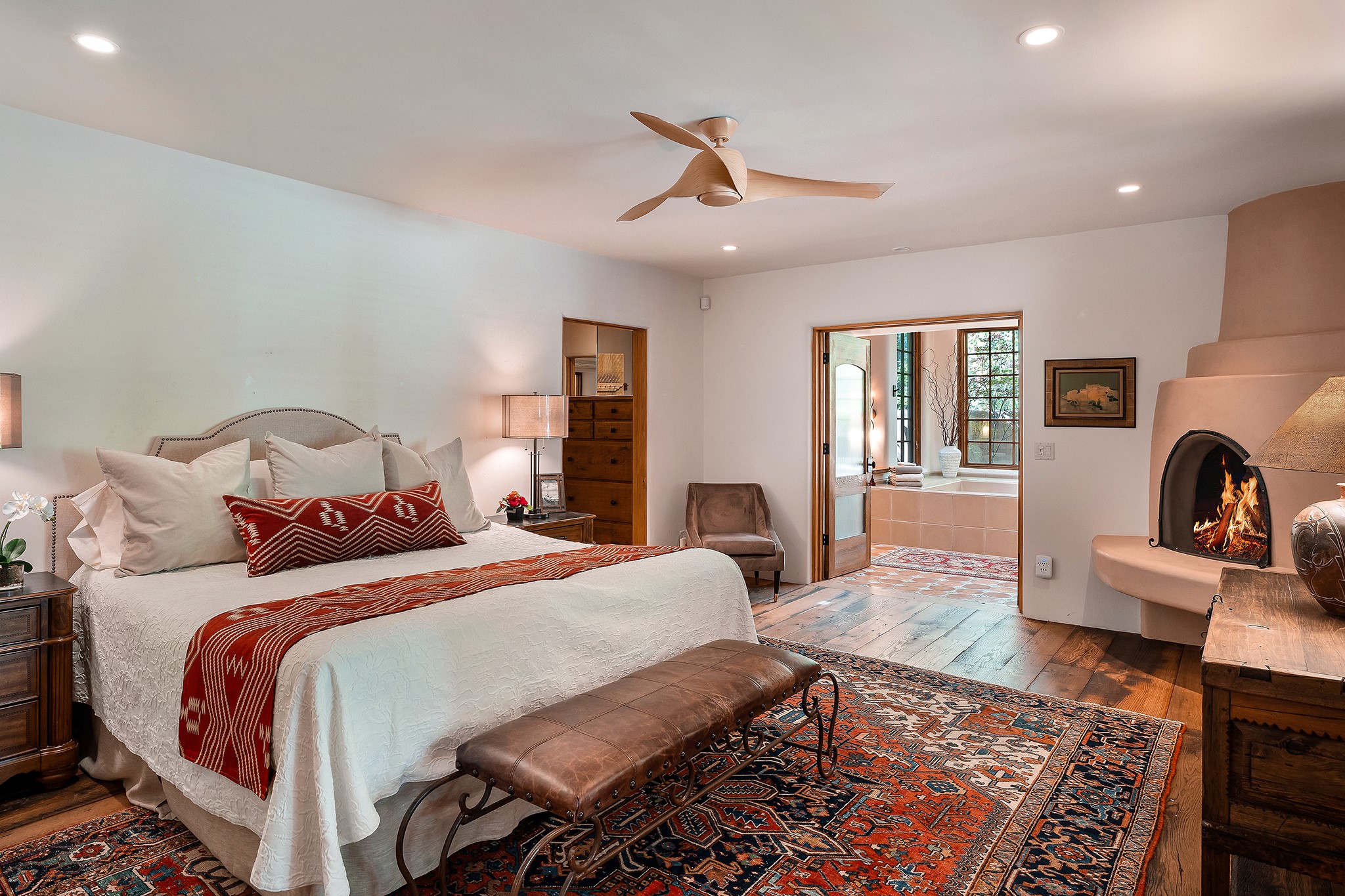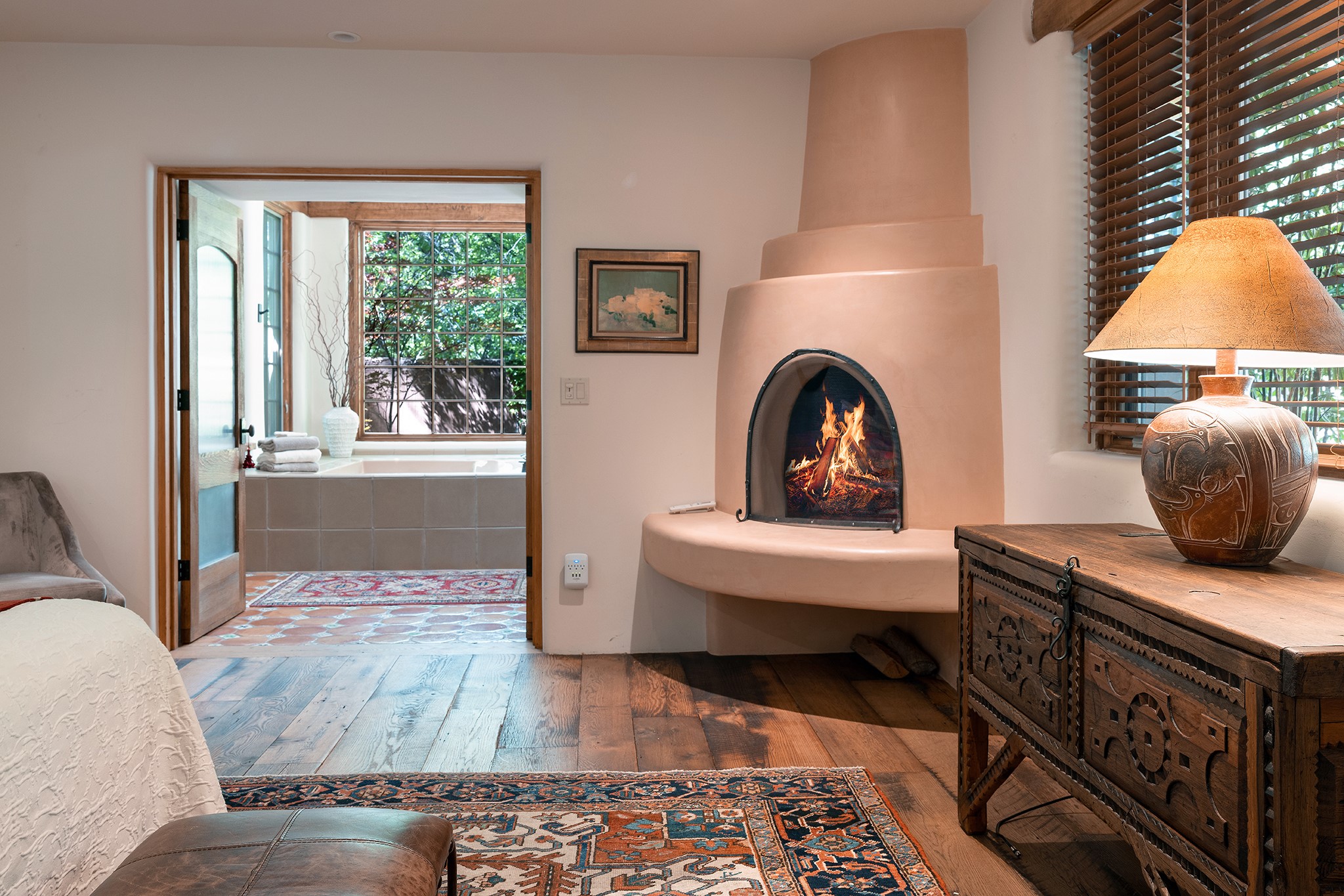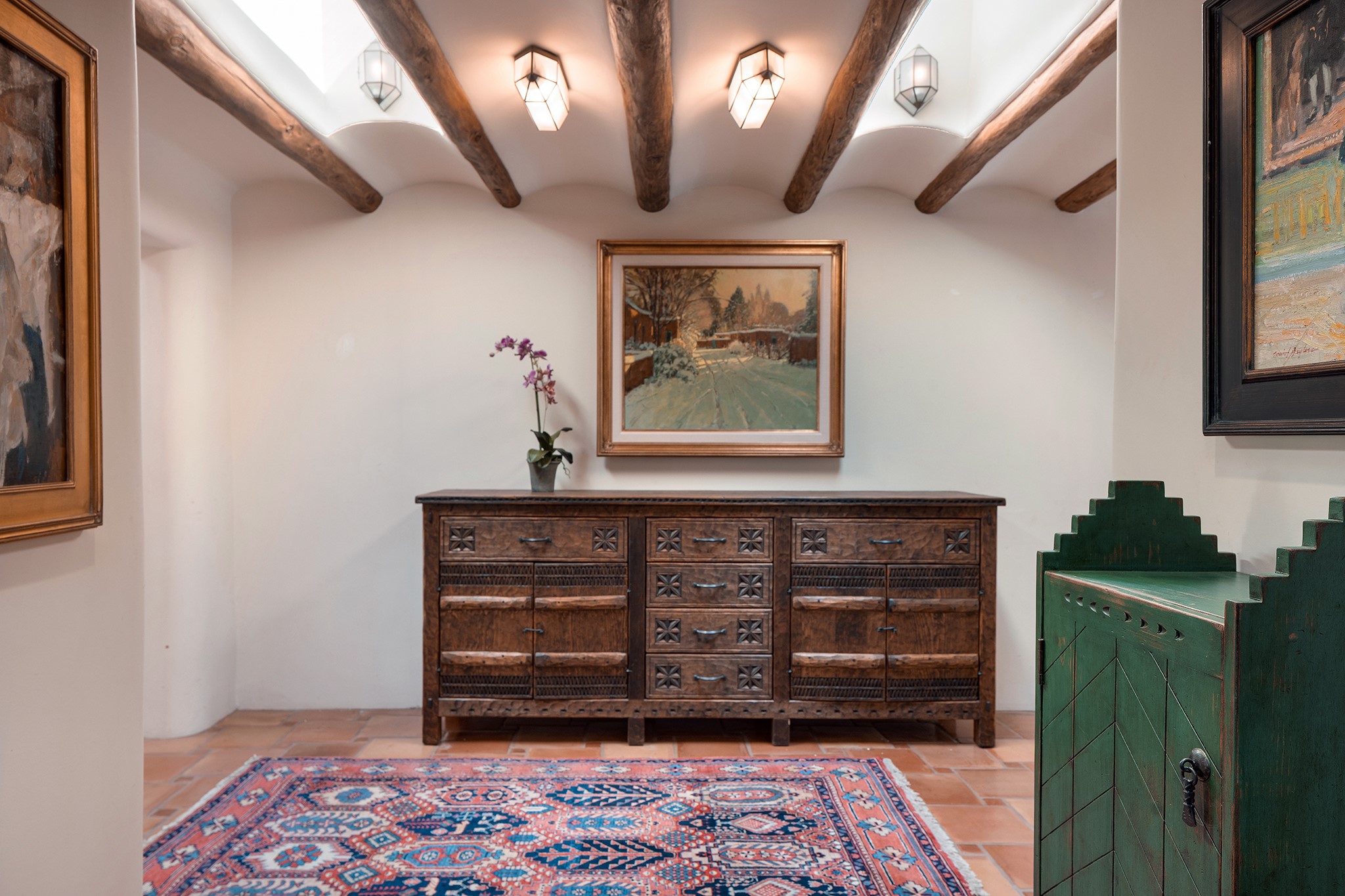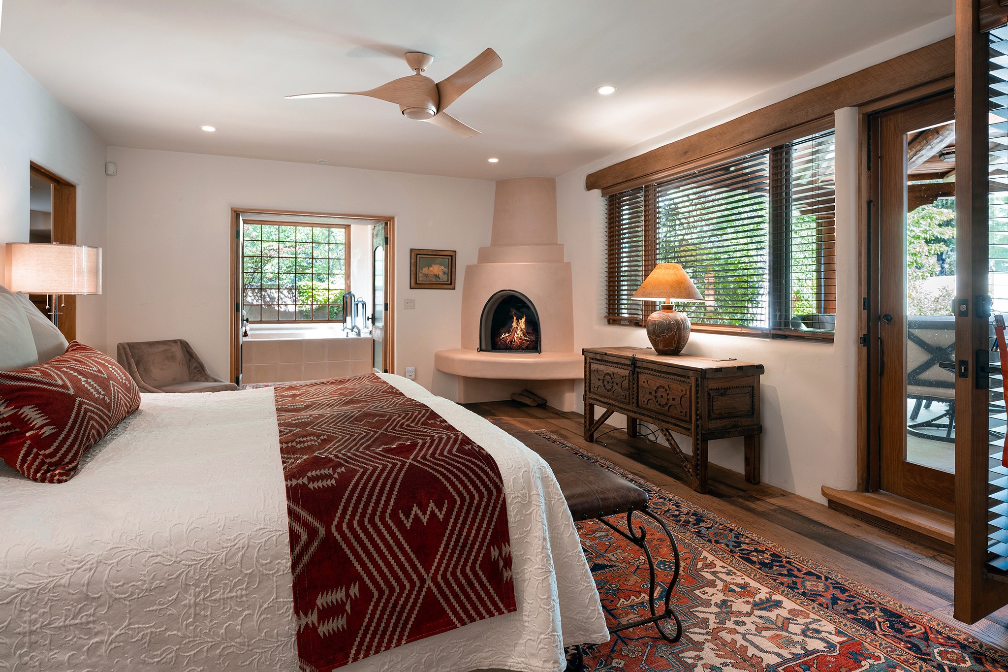 481 Arroyo Tenorio, behind an iconic stonewall in the heart of the Historic East side and the Acequia Madre runs through it! Tucked away and gated on a serene lane in the coveted Historic District is this enviable compound which blends traditional Santa Fe architecture with modern comforts. Thick plastered walls, vigas, coved ceilings, and multiple fireplaces create warmth and authenticity, while large windows and French doors invite abundant natural light. An elegantly designed pool, hot tub and extended outdoor living space and vegetable garden were added in 2022. The main house flexible floor plan offers gracious living and dining areas, a well-appointed kitchen, two private bedroom suites , additional guest bedroom , 2.5 baths office and media room. Perfect for full-time living or part time with privacy and security . The guest house features one bedroom , one bath , living area ,dining and kitchenette. Outdoor living is equally inviting, with lush, landscaped gardens, flagstone patios, and shaded portals ideal for entertaining or quiet retreat.Just moments from Canyon Road, the Plaza, and some of Santa Fe's finest restaurants and galleries, around the corner from famous local Downtown Subscription coffee shop and Garcia Street Books. This home provides the perfect balance of privacy and proximity. A rare opportunity to own a classic East side property in one of the city's most sought-after neighborhoods.