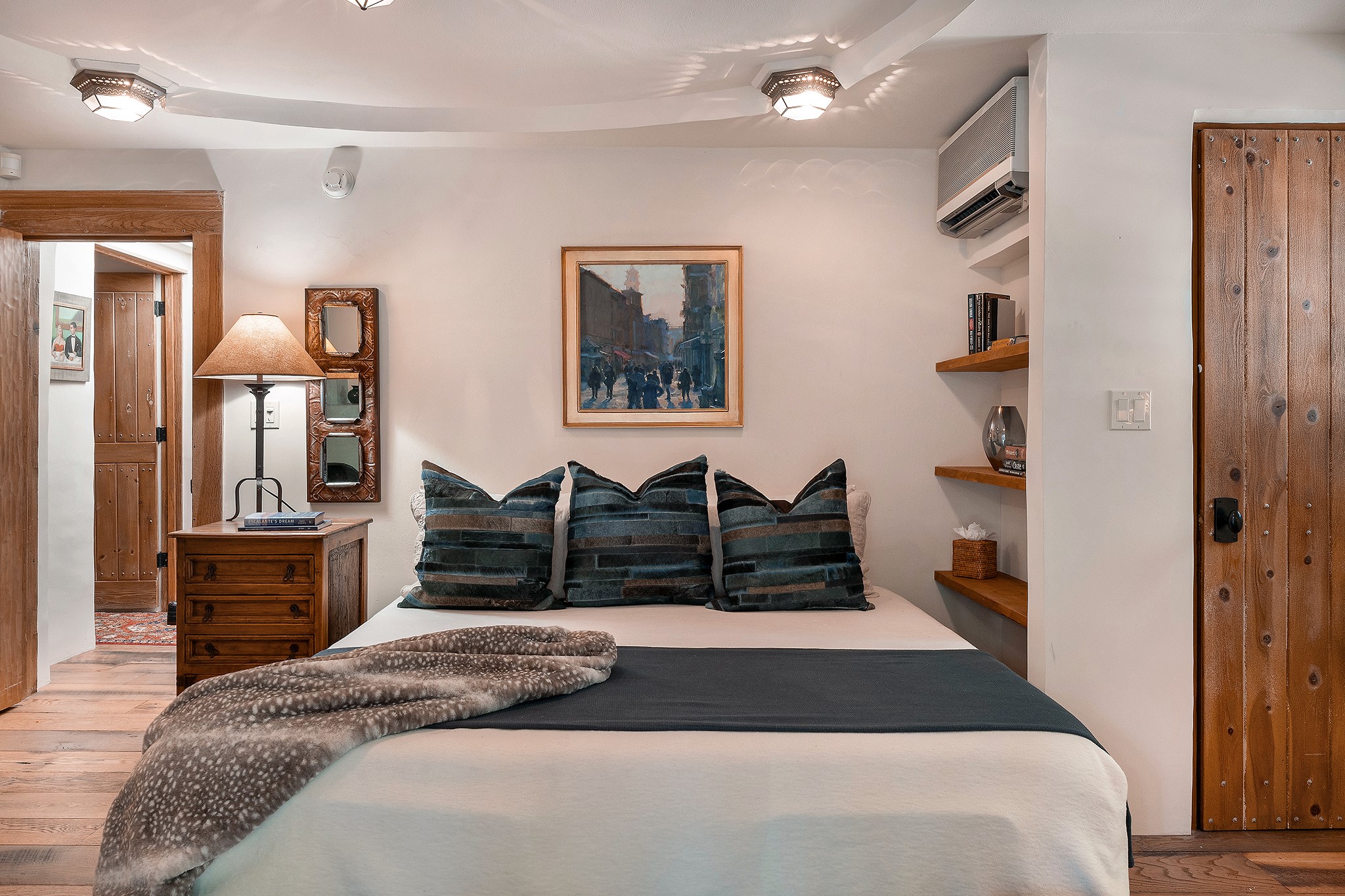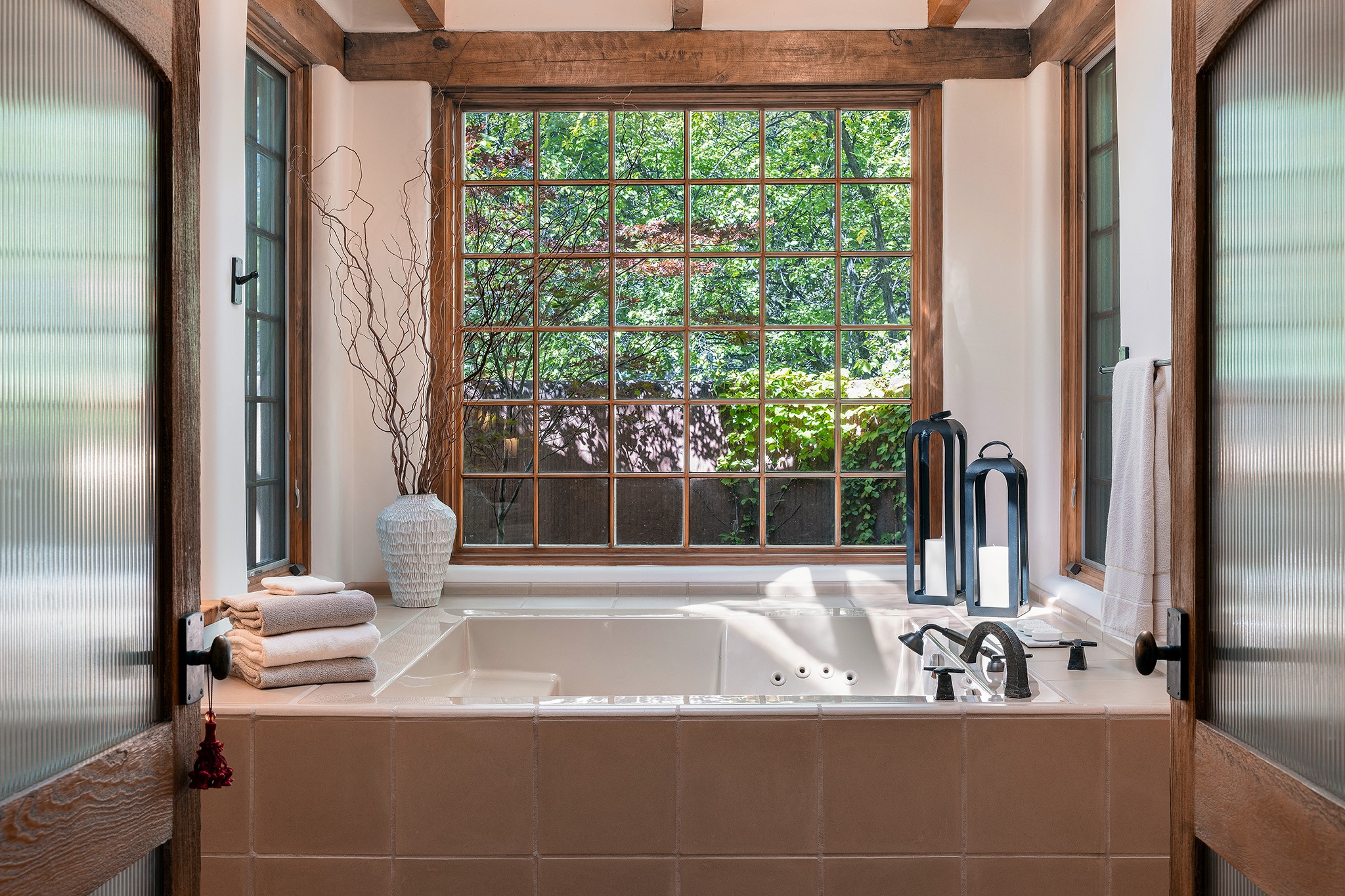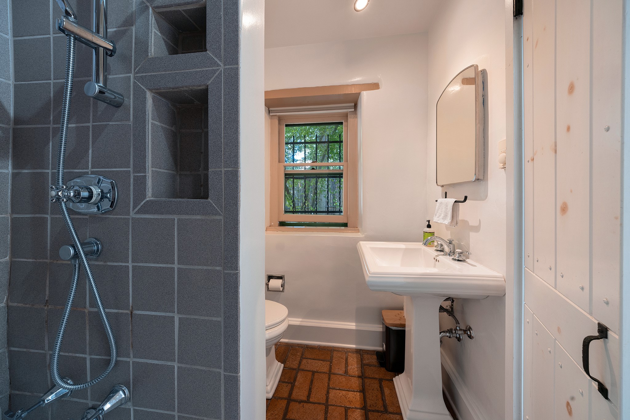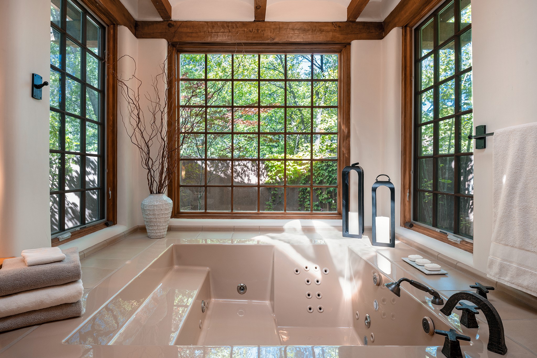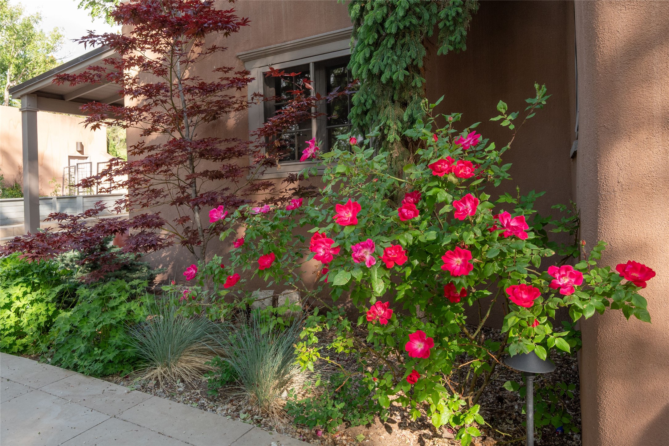 481 Arroyo Tenorio, behind an iconic stonewall in the heart of the Historic East side and the Acequia Madre runs through it! Tucked away and gated on a serene lane in the coveted Historic District is this enviable compound which blends traditional Santa Fe architecture with modern comforts. Thick plastered walls, vigas, coved ceilings, and multiple fireplaces create warmth and authenticity, while large windows and French doors invite abundant natural light. An elegantly designed pool, hot tub and extended outdoor living space and vegetable garden were added in 2022. The main house flexible floor plan offers gracious living and dining areas, a well-appointed kitchen, two private bedroom suites , additional guest bedroom , 2.5 baths office and media room. Perfect for full-time living or part time with privacy and security . The guest house features one bedroom , one bath , living area ,dining and kitchenette. Outdoor living is equally inviting, with lush, landscaped gardens, flagstone patios, and shaded portals ideal for entertaining or quiet retreat.Just moments from Canyon Road, the Plaza, and some of Santa Fe's finest restaurants and galleries, around the corner from famous local Downtown Subscription coffee shop and Garcia Street Books. This home provides the perfect balance of privacy and proximity. A rare opportunity to own a classic East side property in one of the city's most sought-after neighborhoods.