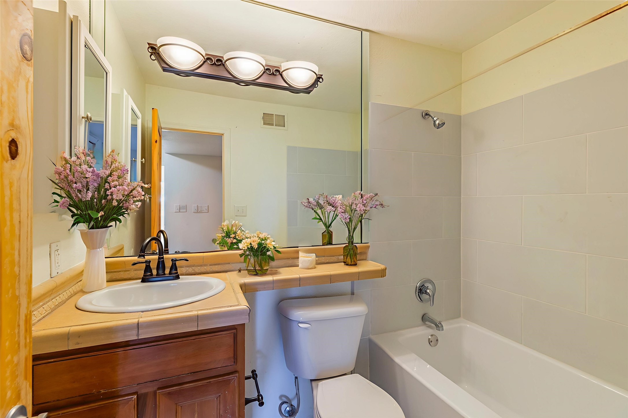 THINK SMALLER. LIVE LARGER. NOW IMAGINE A MORTGAGE RATE OF 4.33%! Sometimes the smartest home in Santa Fe isn't the biggest--it's the one that gives you back your time and money and your breathing room. Keep reading for details!This CORNER one-bedroom, one-bath, two-level condo in gated Dos Santos quietly rewrites what "AFFORDABLE" means. Perched on a gentle hilltop with no one above you, it feels private, light-filled, and free. The open living area flows to a sun-splashed patio, while the upstairs bedroom offers true separation for rest and creativity. A REMODELED bath with new cast iron tub brings a fresh, spa-like calm to everyday life.Here, HOME OWNERSHIP is designed for ease. The reasonable HOA fee covers nearly everything--roof, stucco, windows, cooling systems, water, and full exterior care--so your weekends belong to you. The community adds its own rhythm: heated POOL in summer, year-round spa tub, FITNESS center, outdoor fire pits, and a DOG PARK for your four-legged companion.And now, freedom runs deeper. The seller is OFFERING A 2-1 MORTGAGE RATE BUY DOWN, lowering your mortgage interest rate substantially over your first two years--giving you more space in your budget to explore, travel, or simply exhale. In a market where rates make headlines, this offer makes a difference you'll FEEL EVERY MONTH! LOCATION completes the picture: minutes to Christus St. Vincent Hospital, Trader Joe's, Whole Foods, the Plaza, and the Railyard Arts District, with easy access to the Zia Railrunner Station Albuquerque commuters or the highway for Los Alamos.Dos Santos isn't a compromise; IT'S A CHOICE for those who value time, connection, and flexibility over excess. Because in Santa Fe, less can truly live larger--and now, it can cost less too. Yes, asking is 260,000! Call to see your next home!
